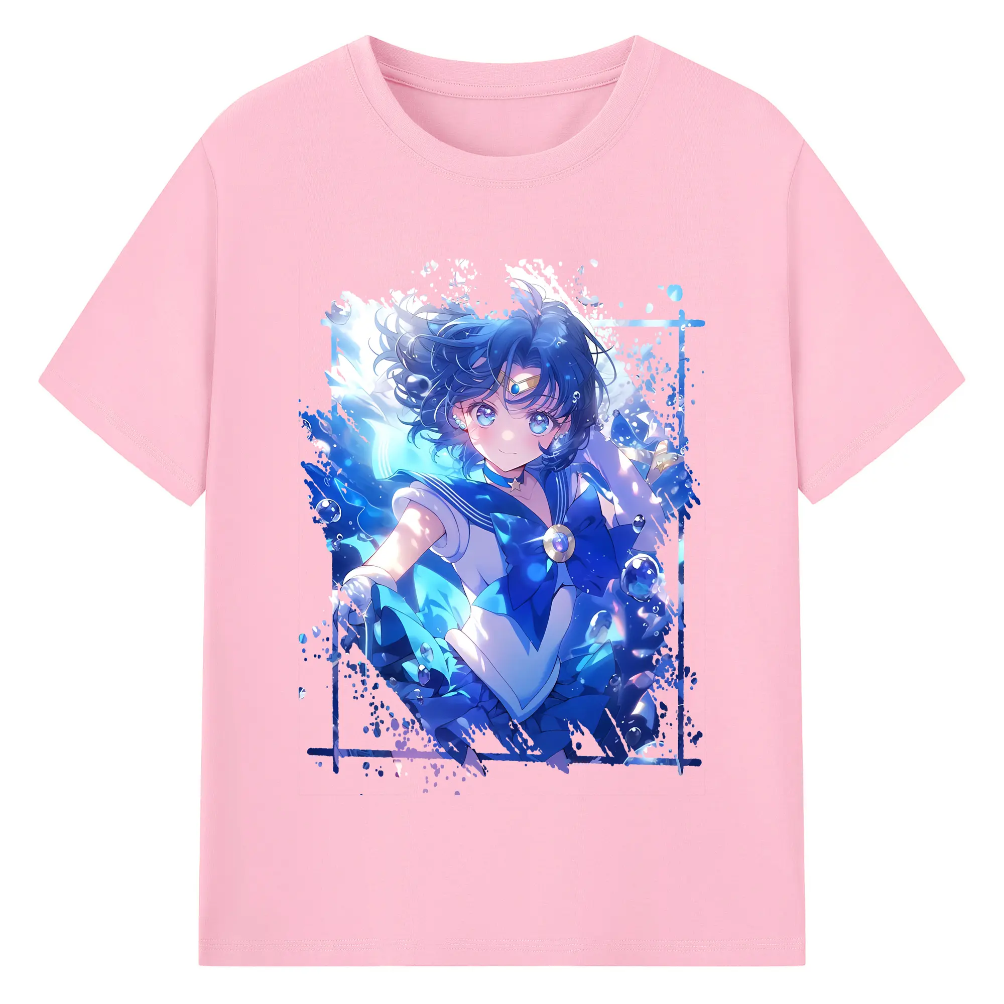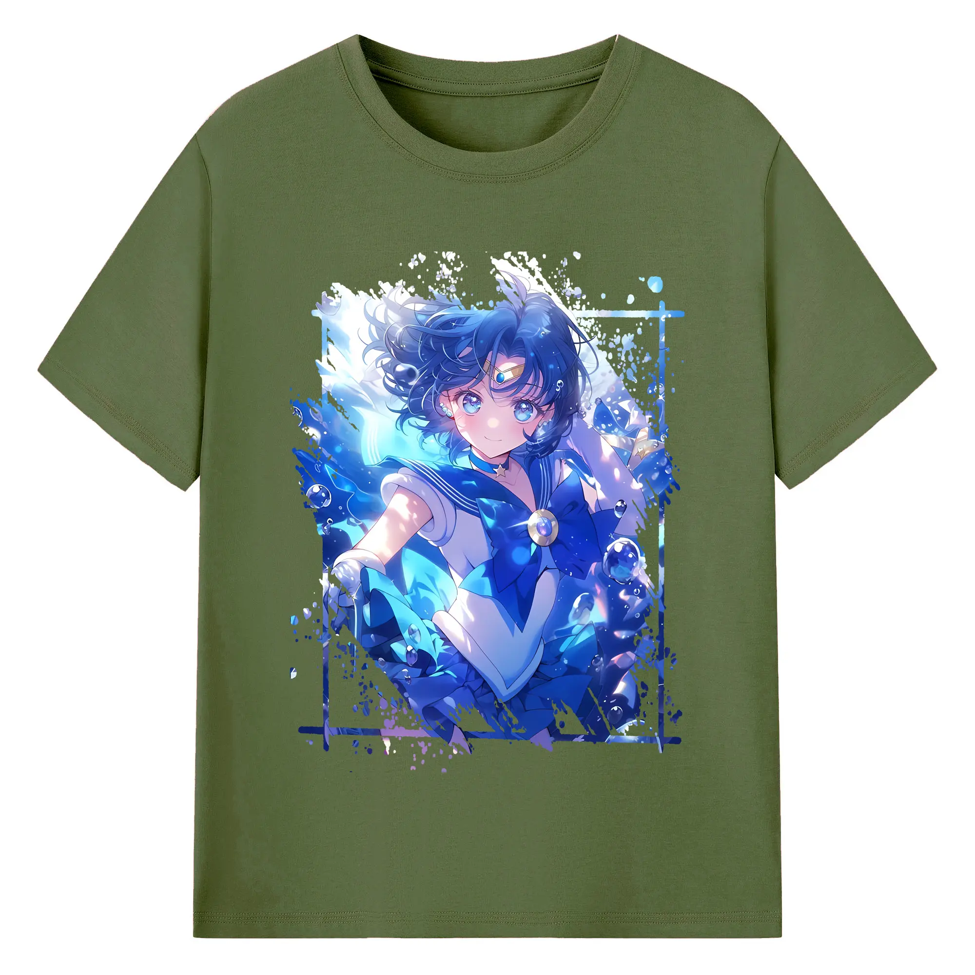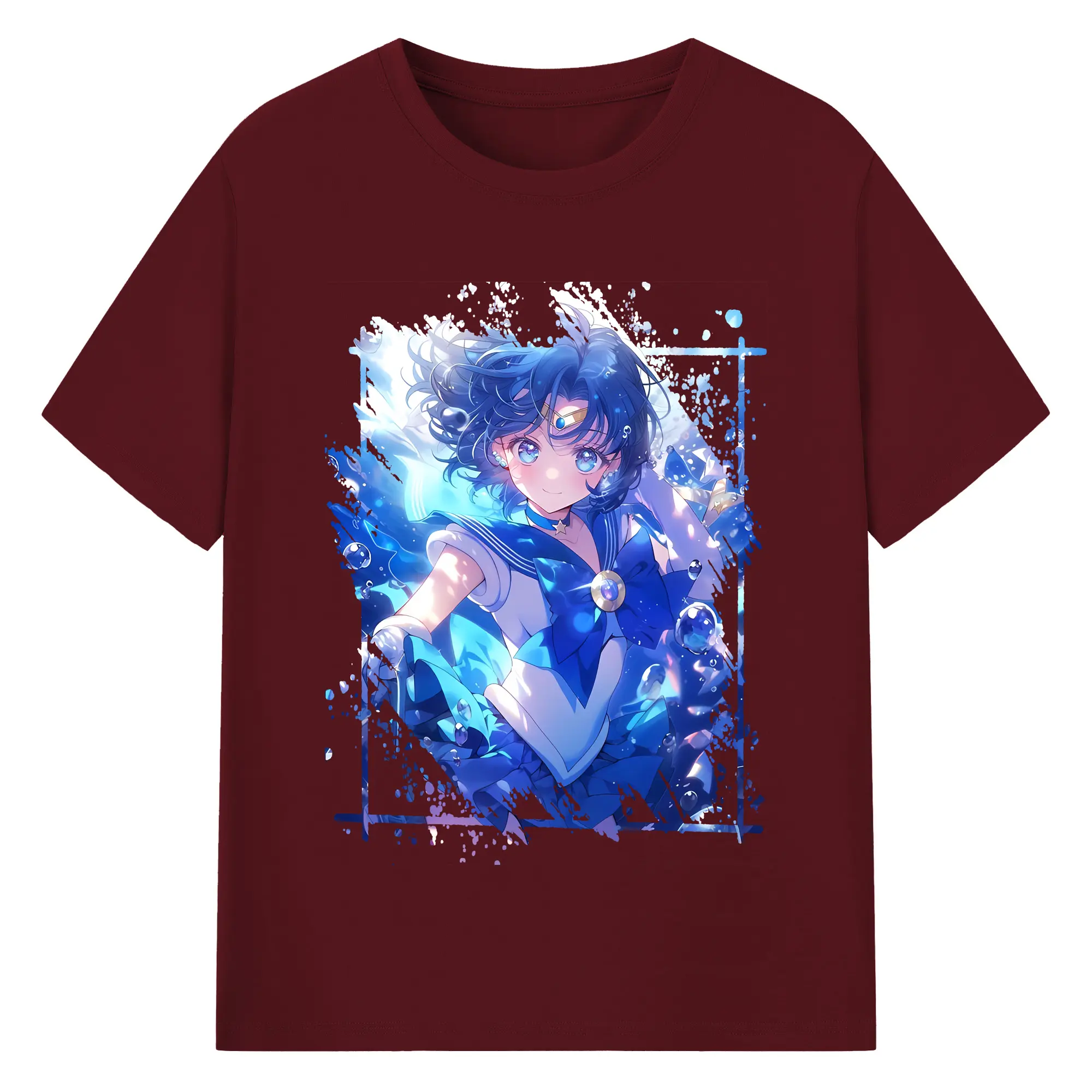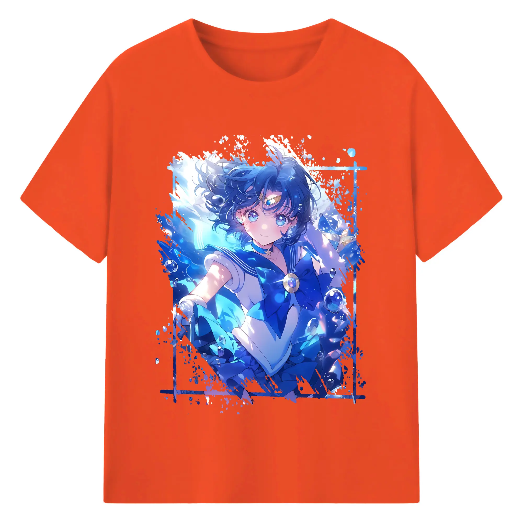 美少女戦士セーラームーン グッズ 水野 亜美 - 綿100% 半袖Tシャツ ・ フロントプリント ・ 快適 通気性 ・ 日常使い 散歩 スポーツ用