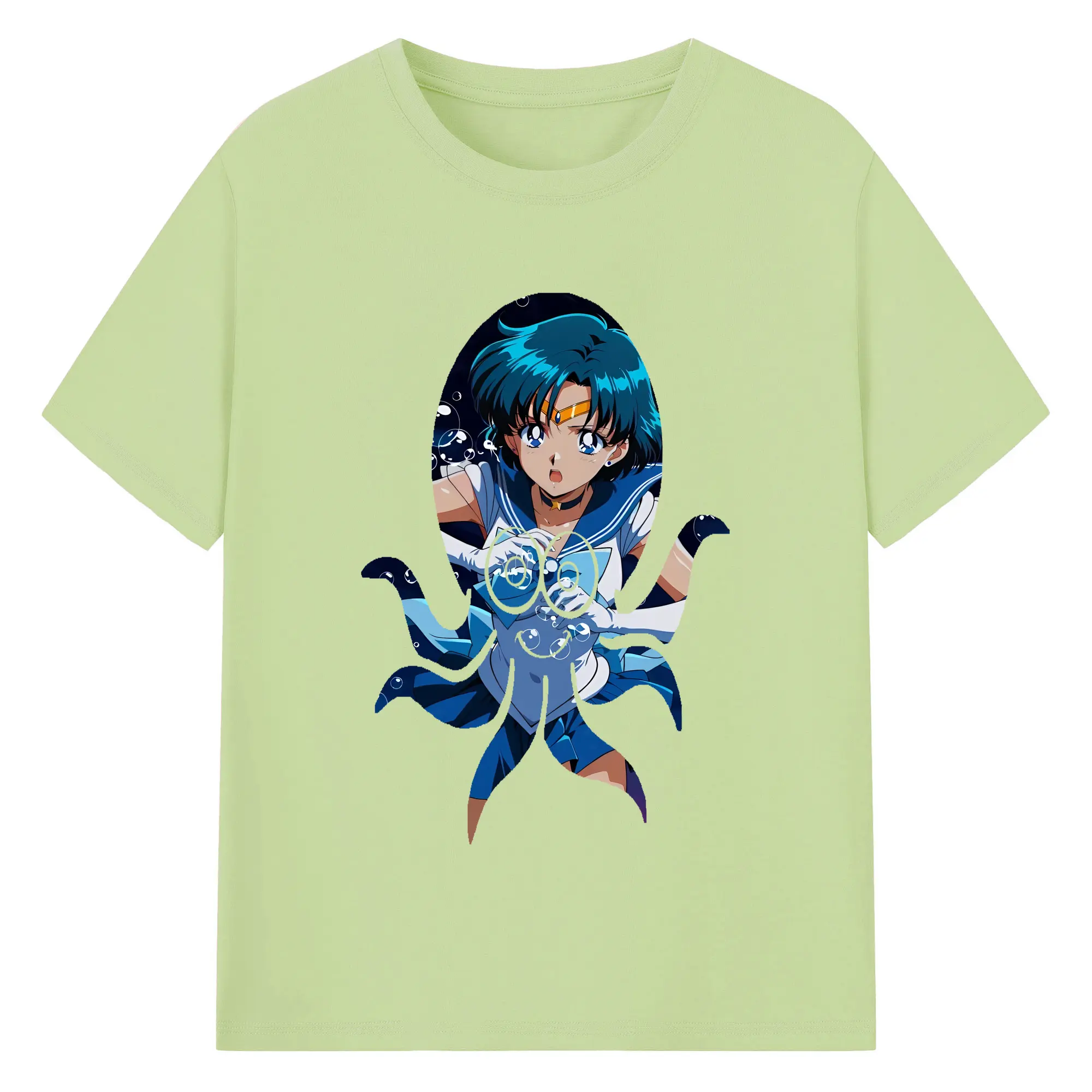 美少女戦士セーラームーン グッズ 水野 亜美 - 綿100% キッズTシャツ ・ フロントプリント ・ 快適 通気性 ・ スポーツ カジュアル 散歩用