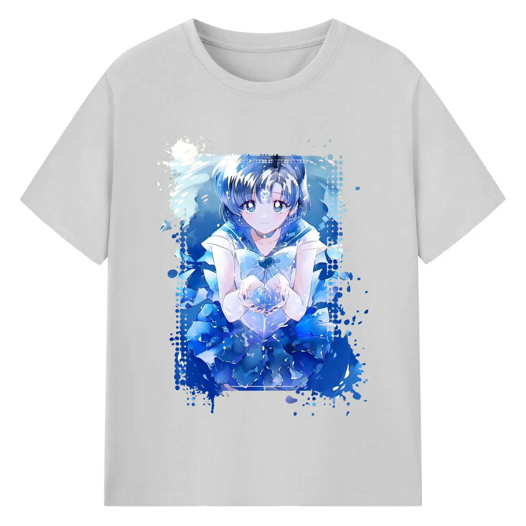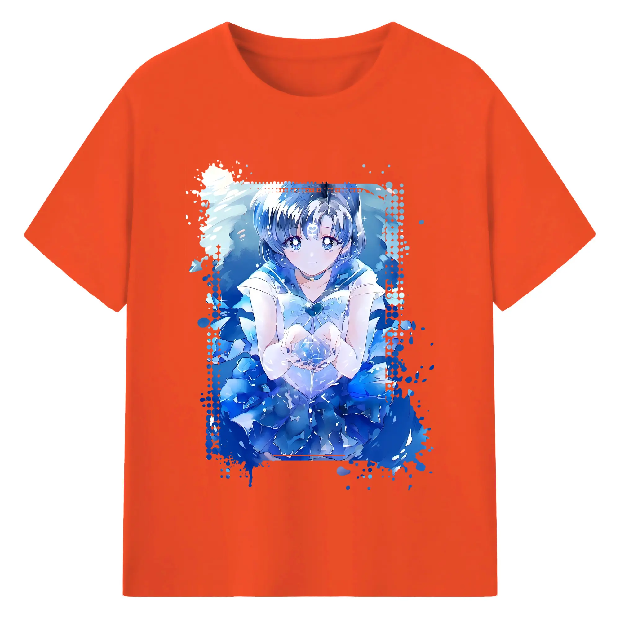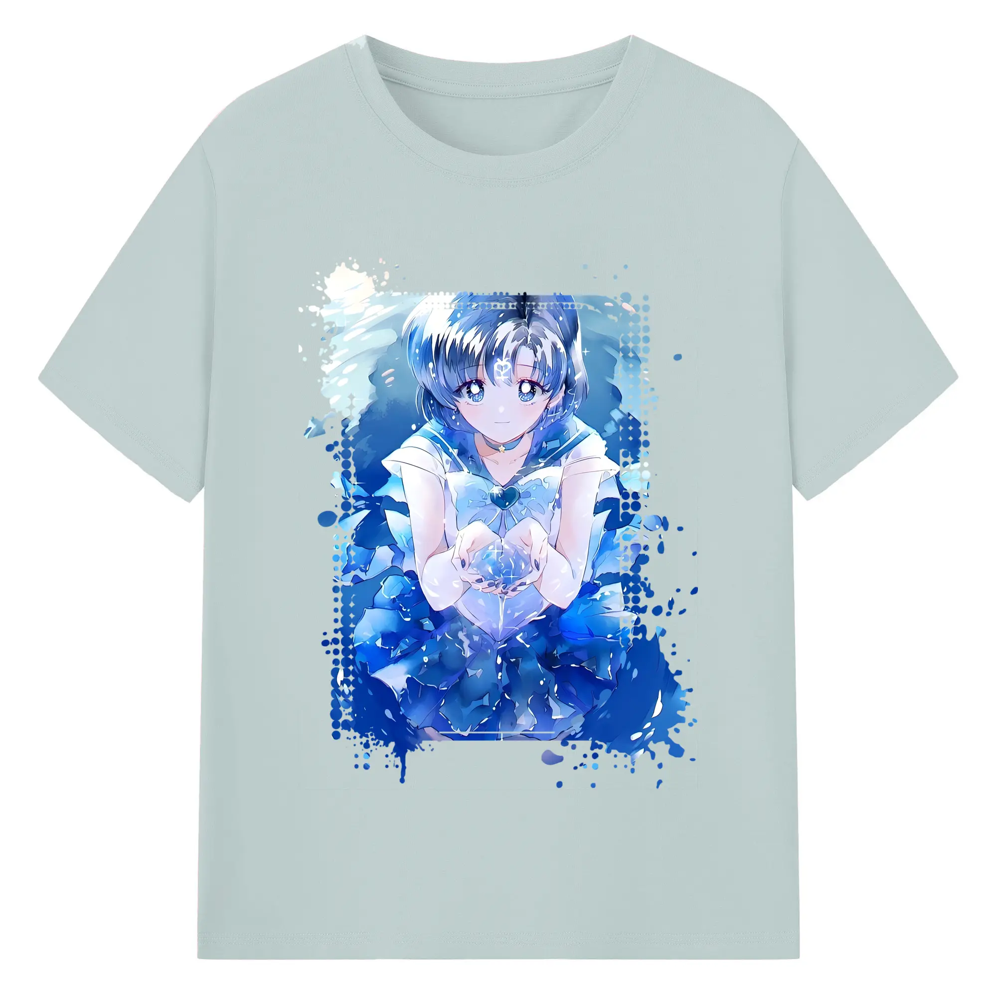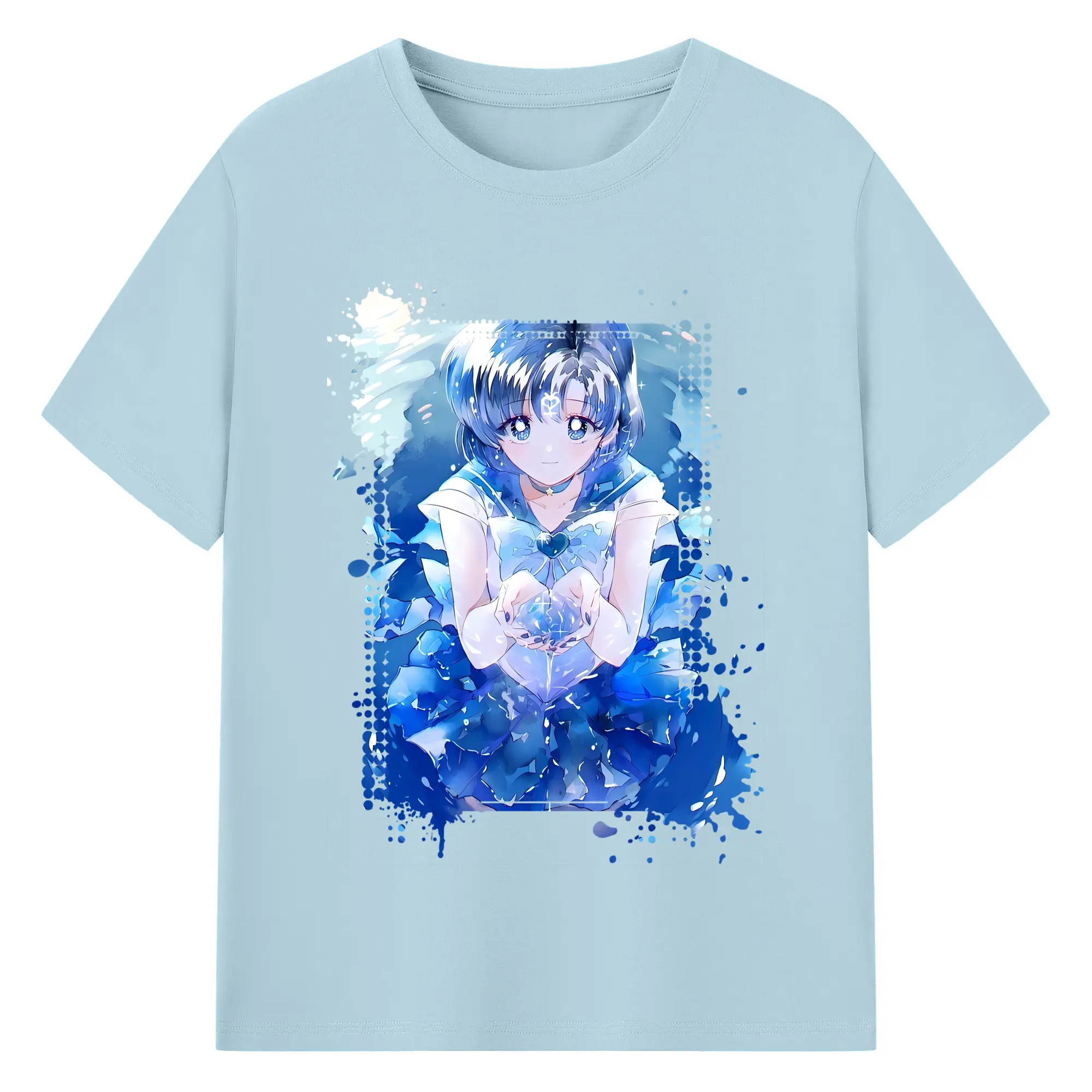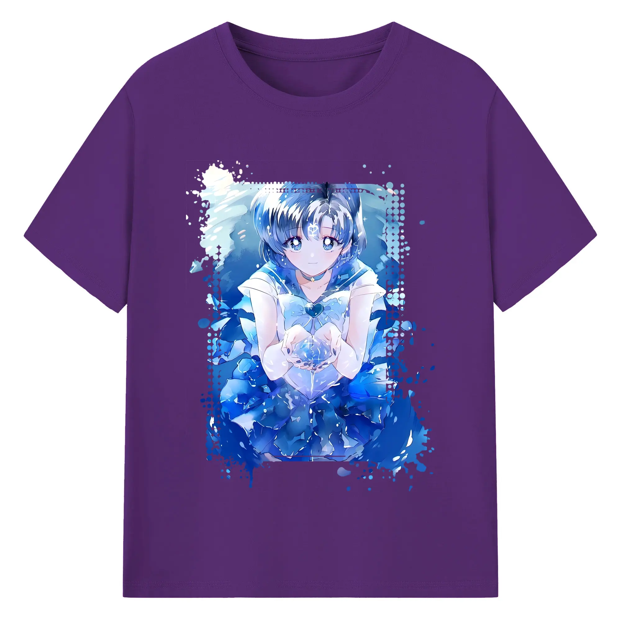 美少女戦士セーラームーン グッズ 水野 亜美 - 綿100% 半袖Tシャツ ・ バックプリント ・ 快適 通気性 ・ 日常使い 散歩 スポーツ用