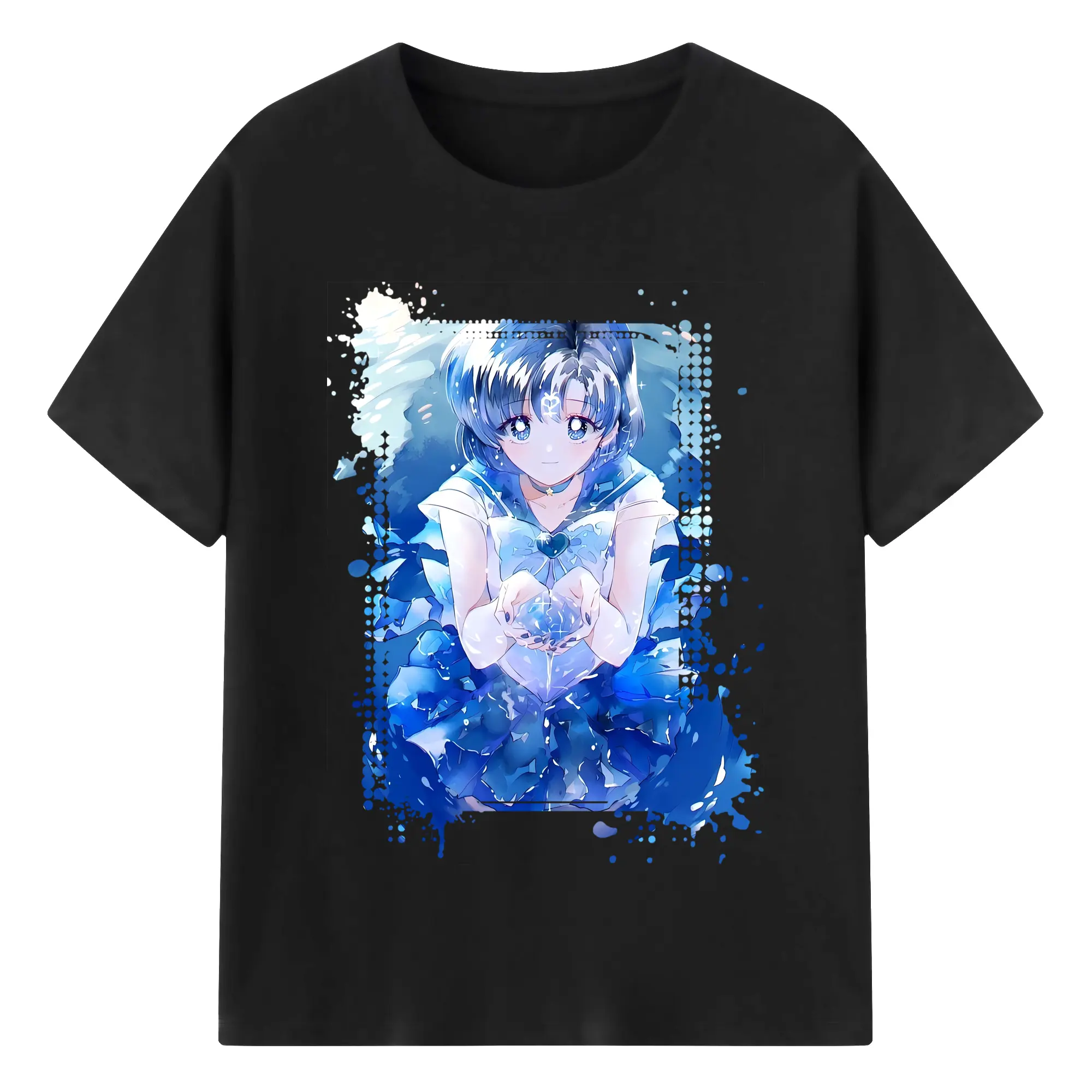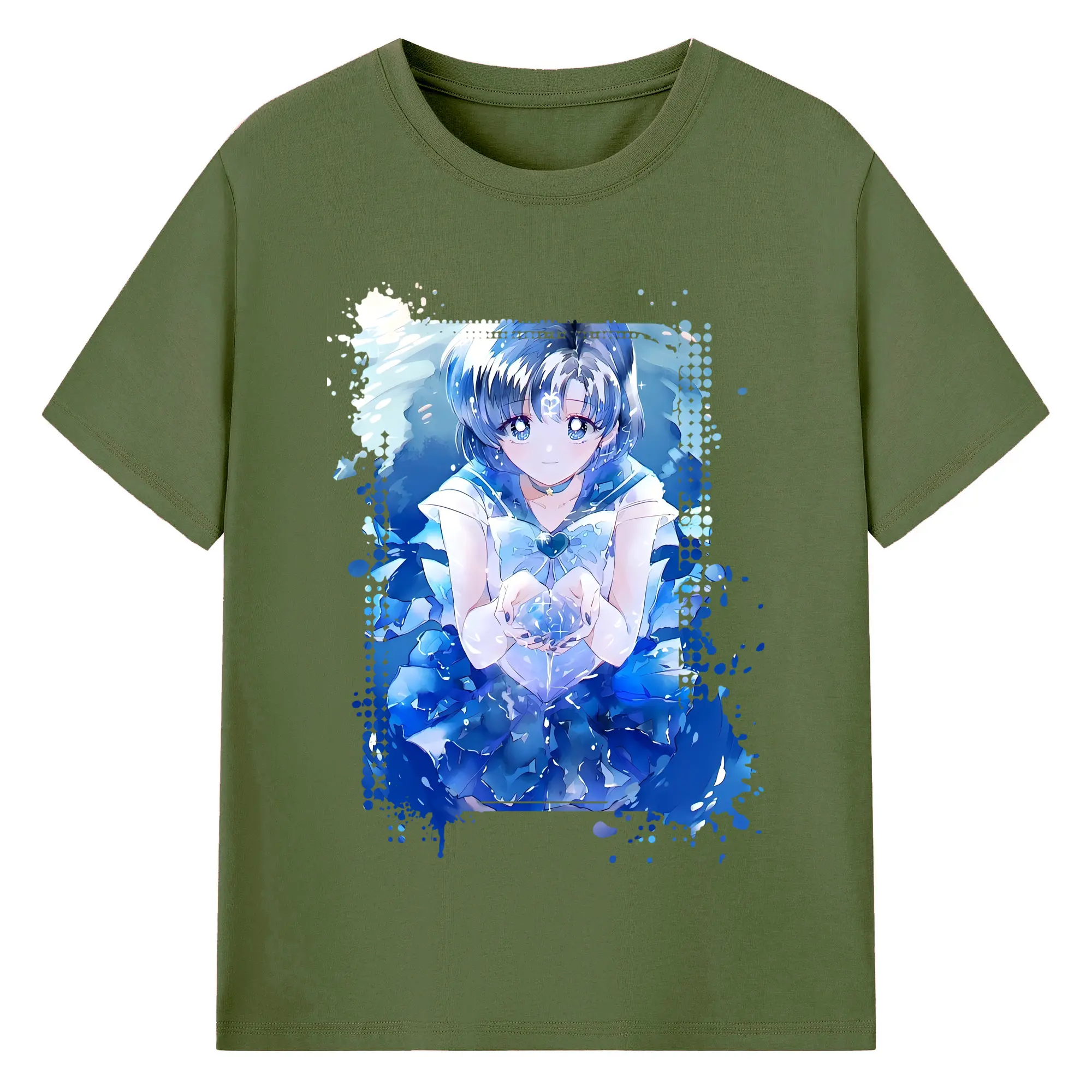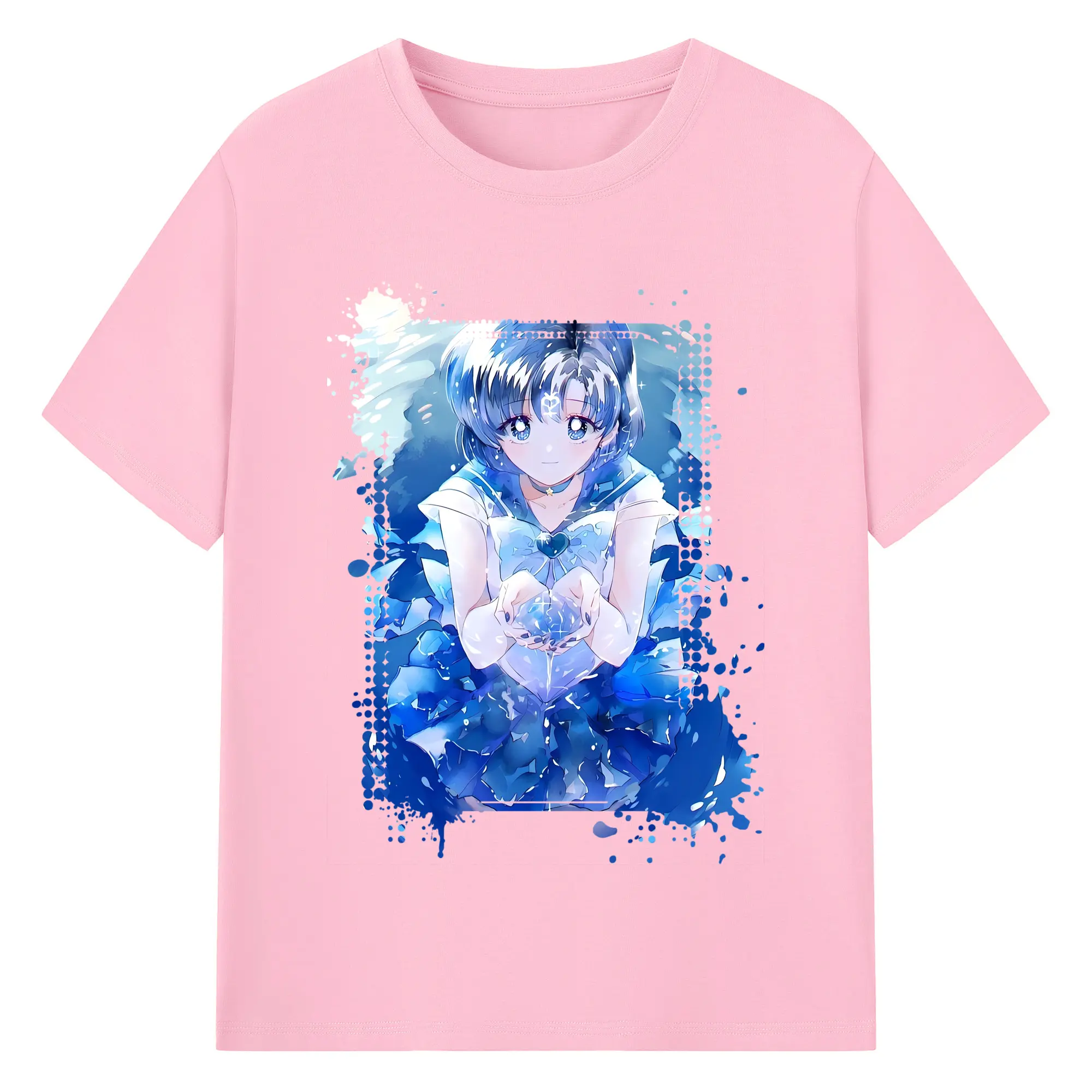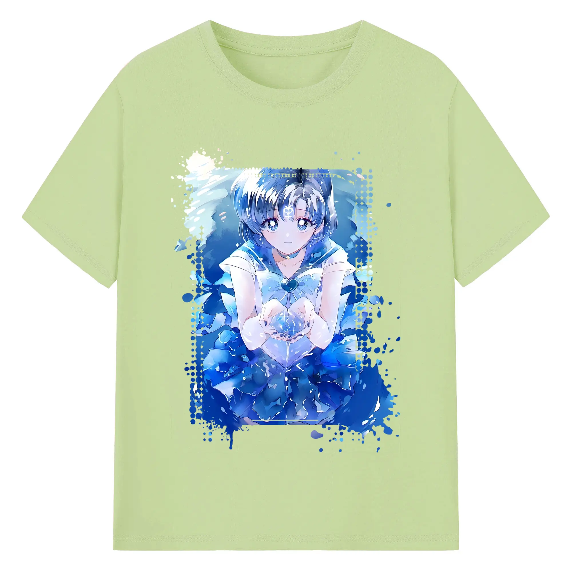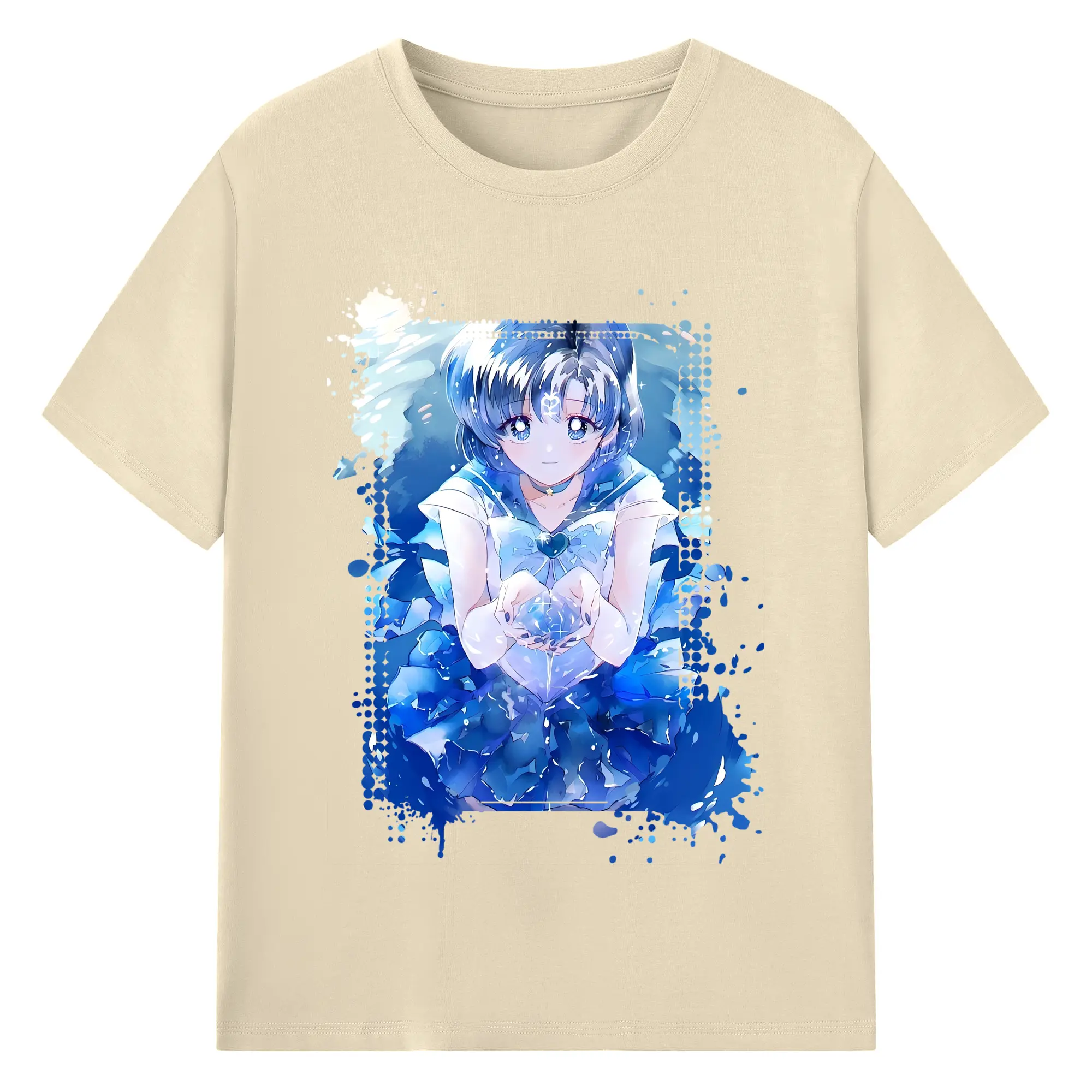 美少女戦士セーラームーン グッズ 水野 亜美 - 綿100% 半袖Tシャツ ・ バックプリント ・ 快適 通気性 ・ 日常使い 散歩 スポーツ用