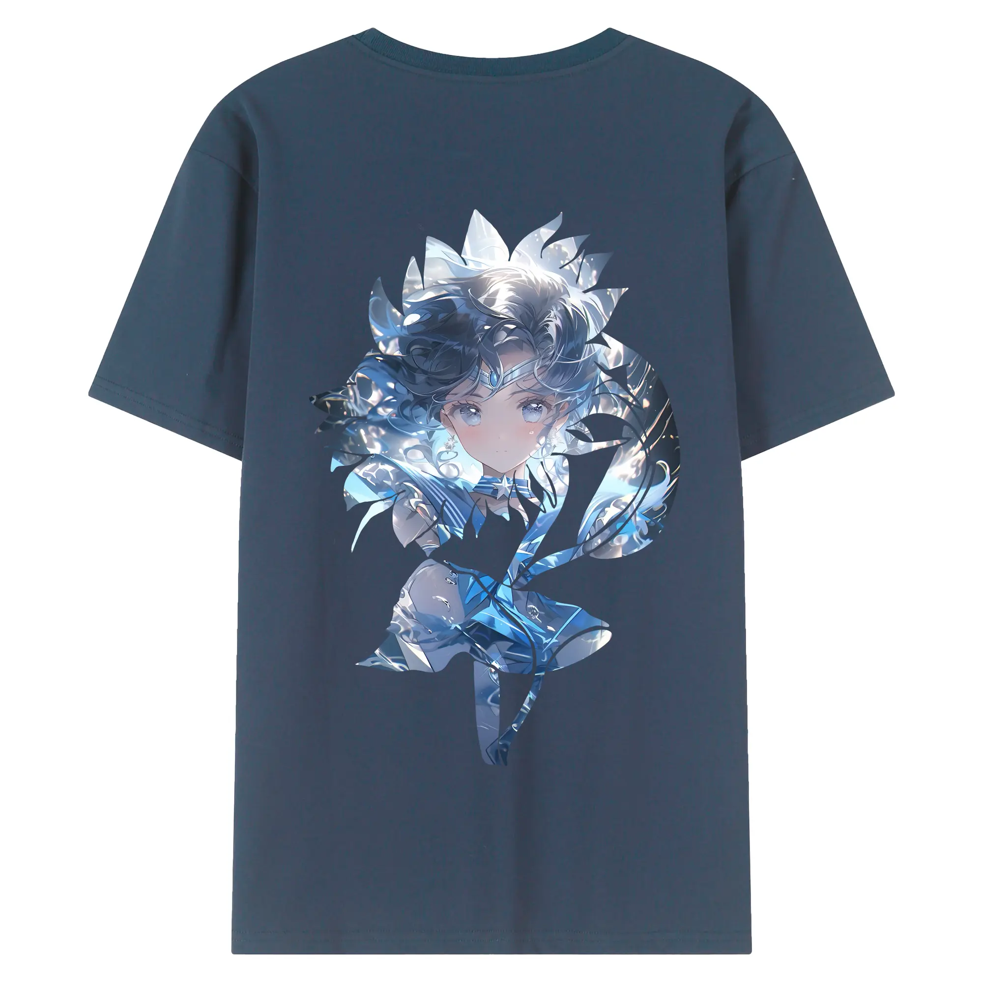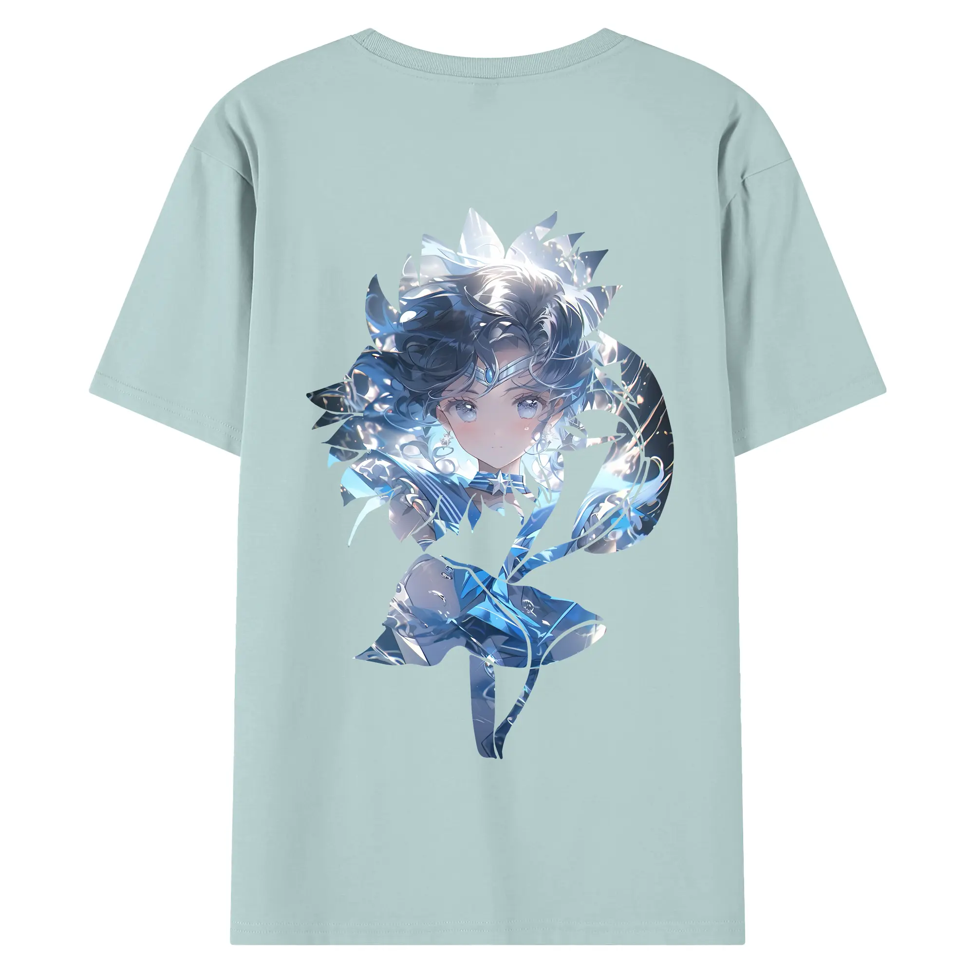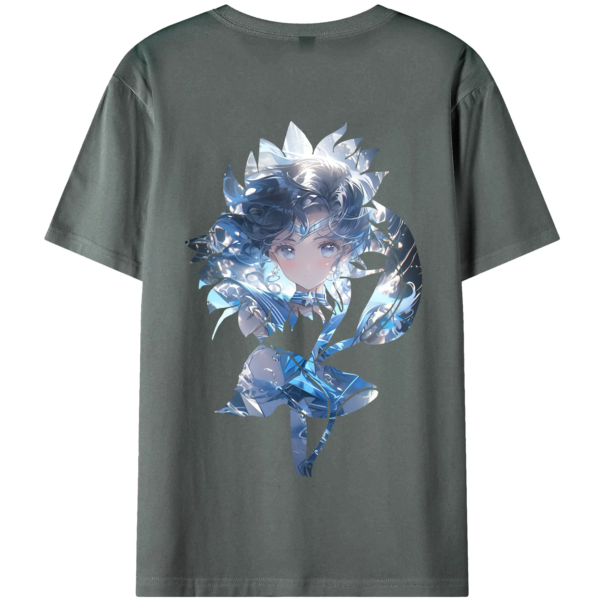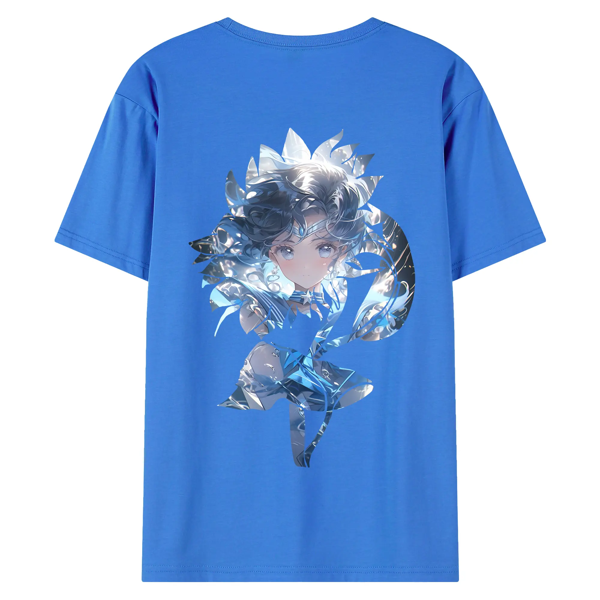 美少女戦士セーラームーン グッズ 水野 亜美 - 綿100% 半袖Tシャツ ・ フロントプリント ・ 快適 通気性 ・ 日常使い 散歩 スポーツ用