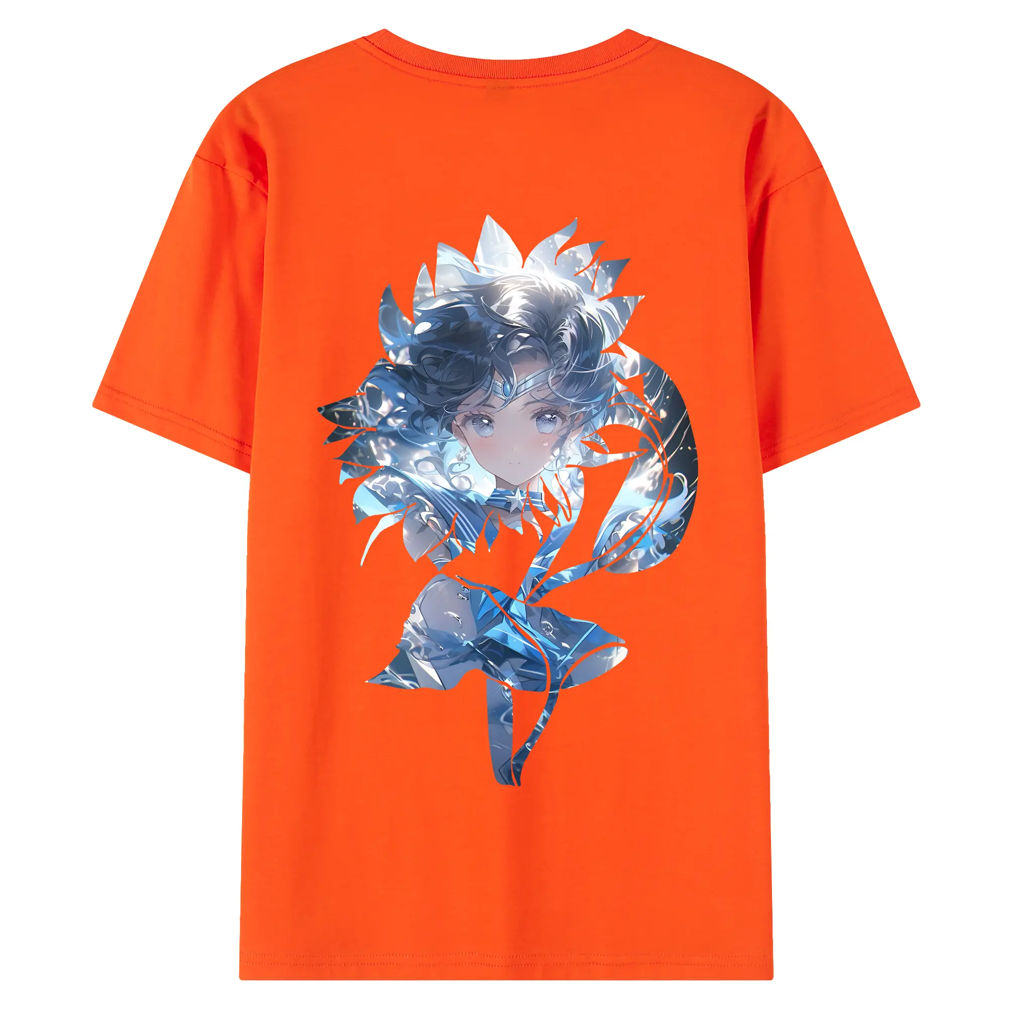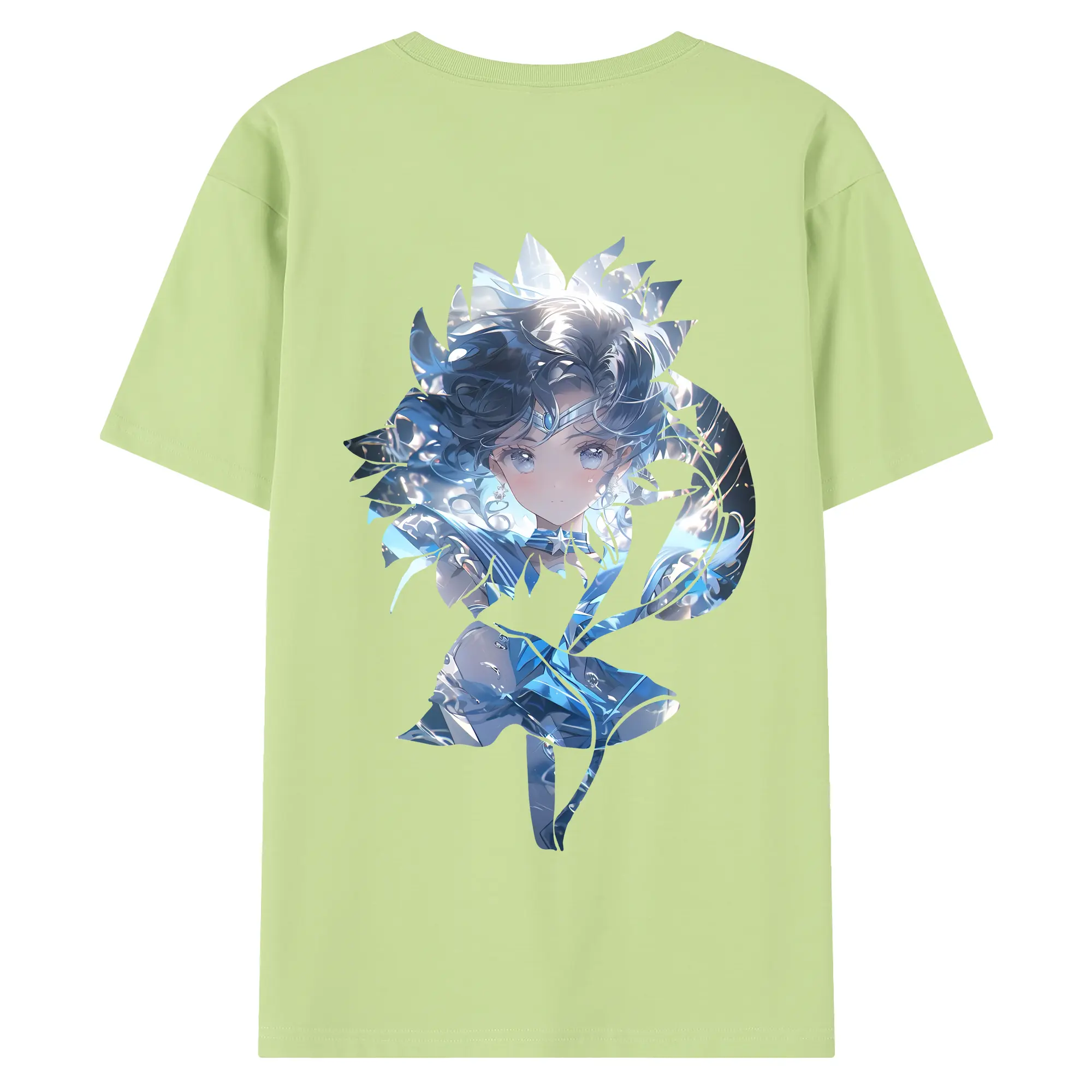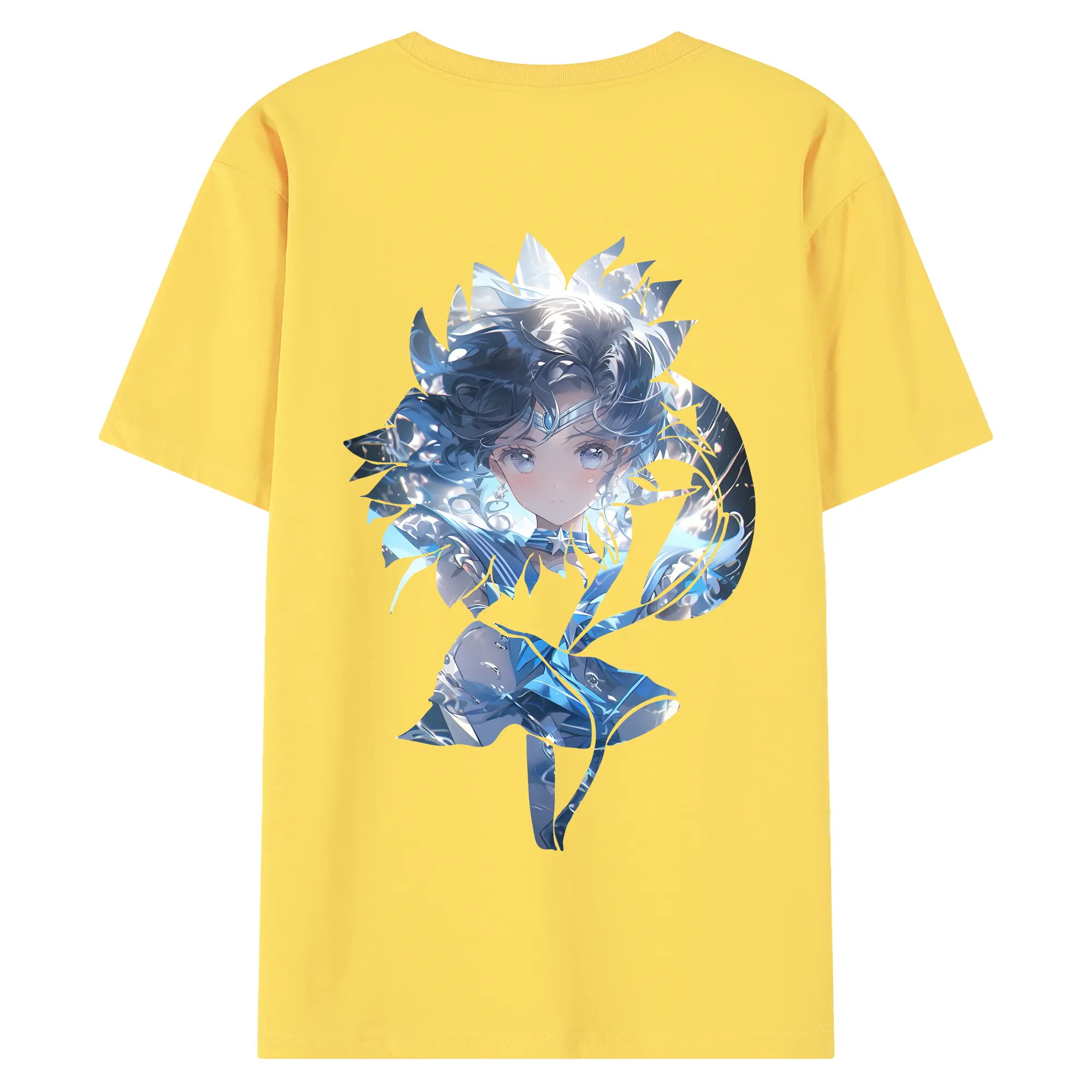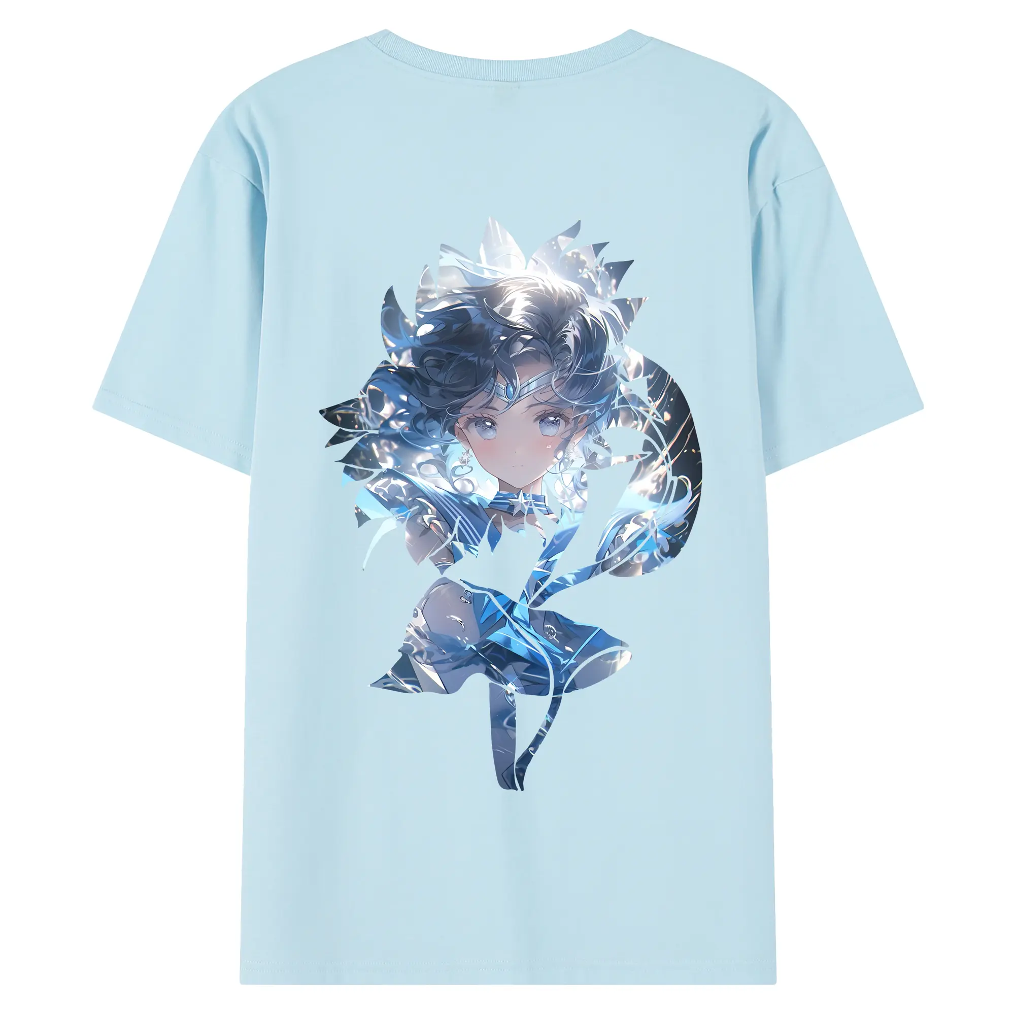 美少女戦士セーラームーン グッズ 水野 亜美 - 綿100% 半袖Tシャツ ・ フロントプリント ・ 快適 通気性 ・ 日常使い 散歩 スポーツ用