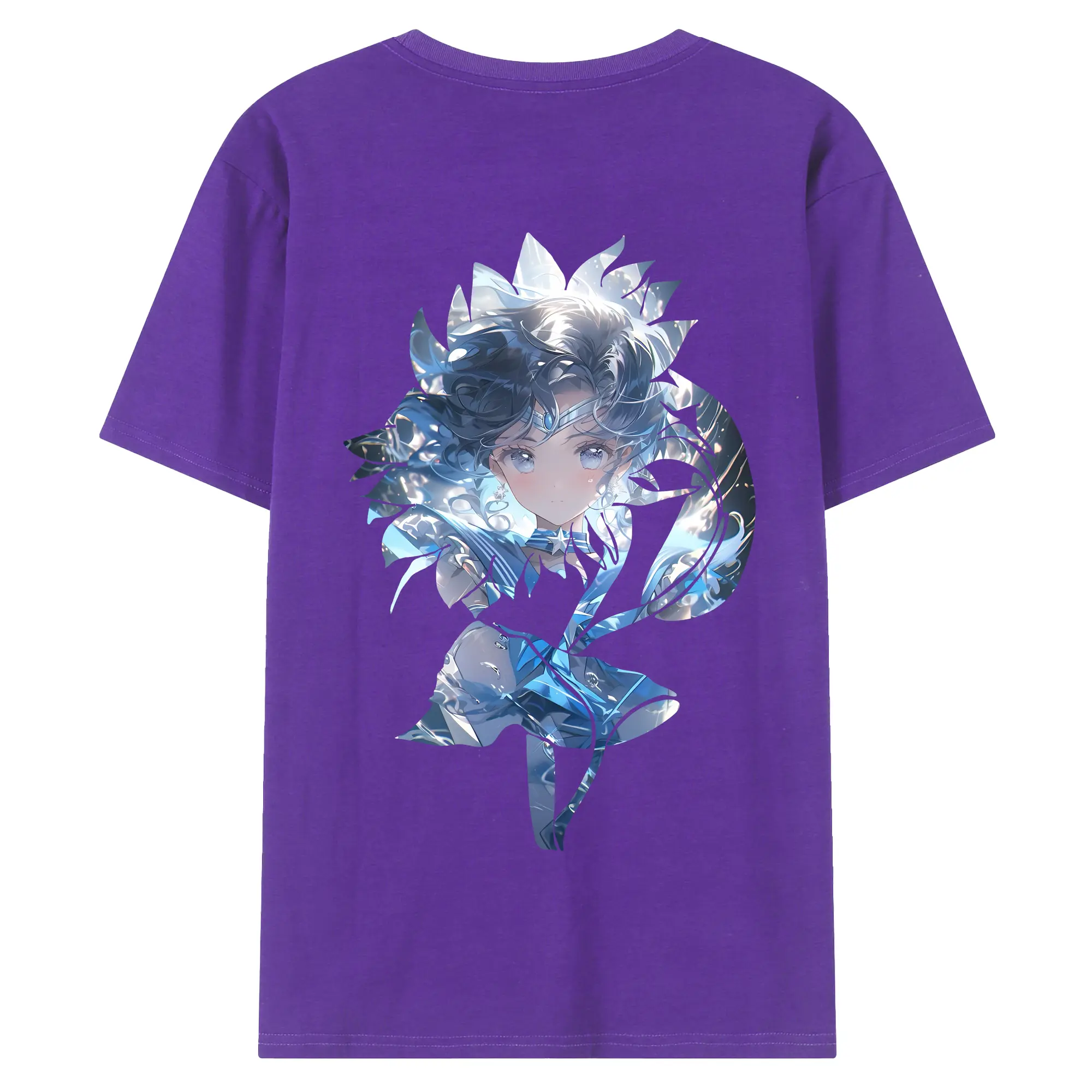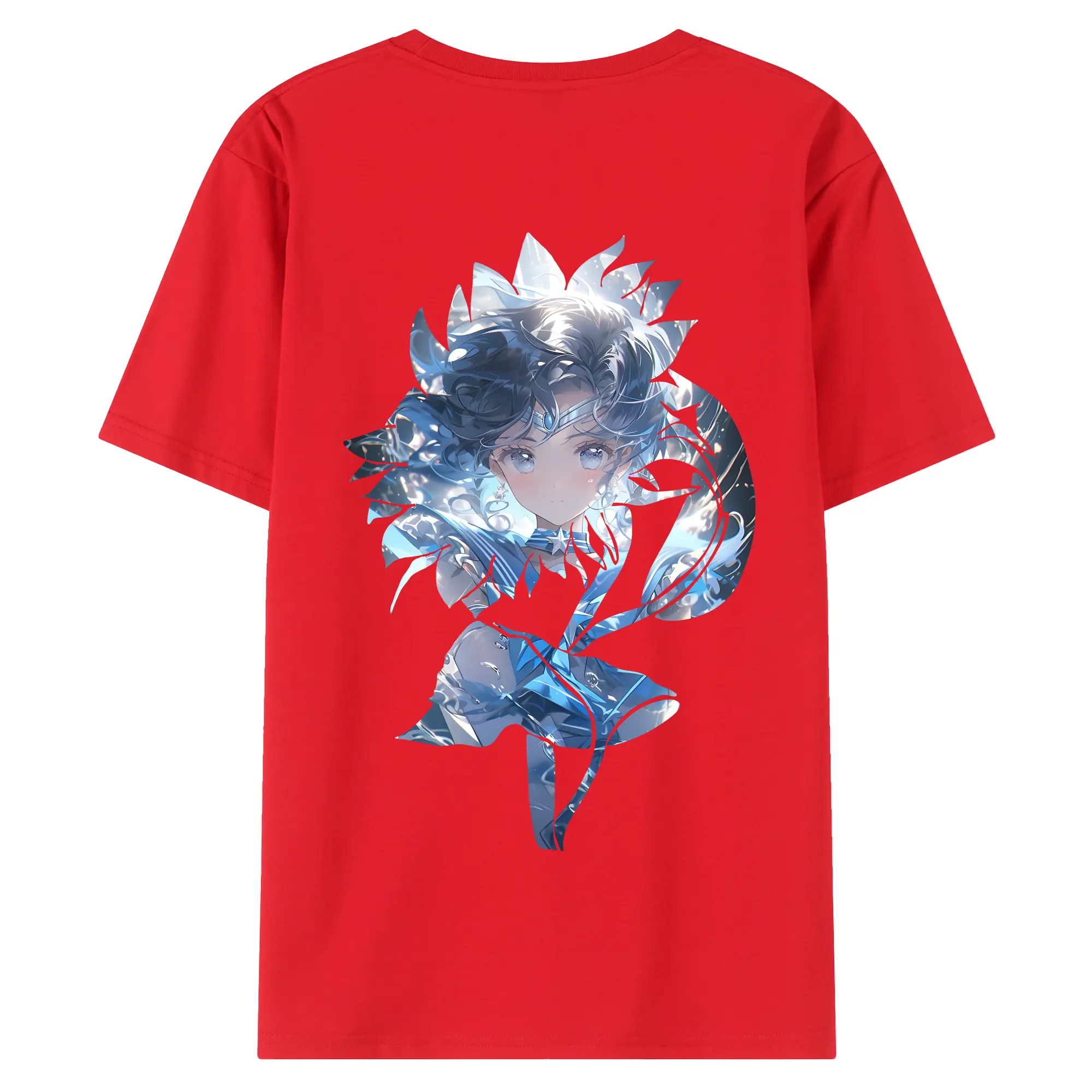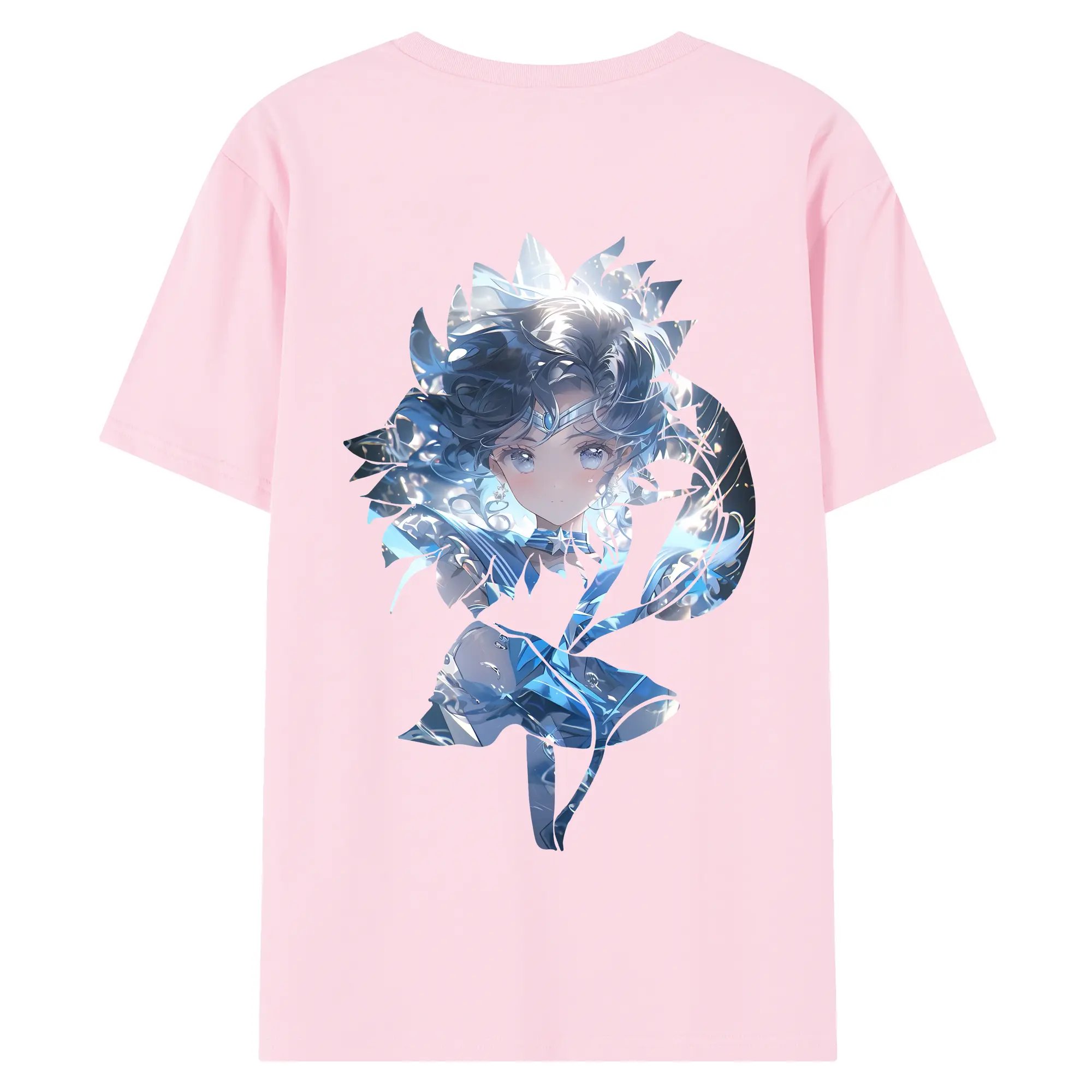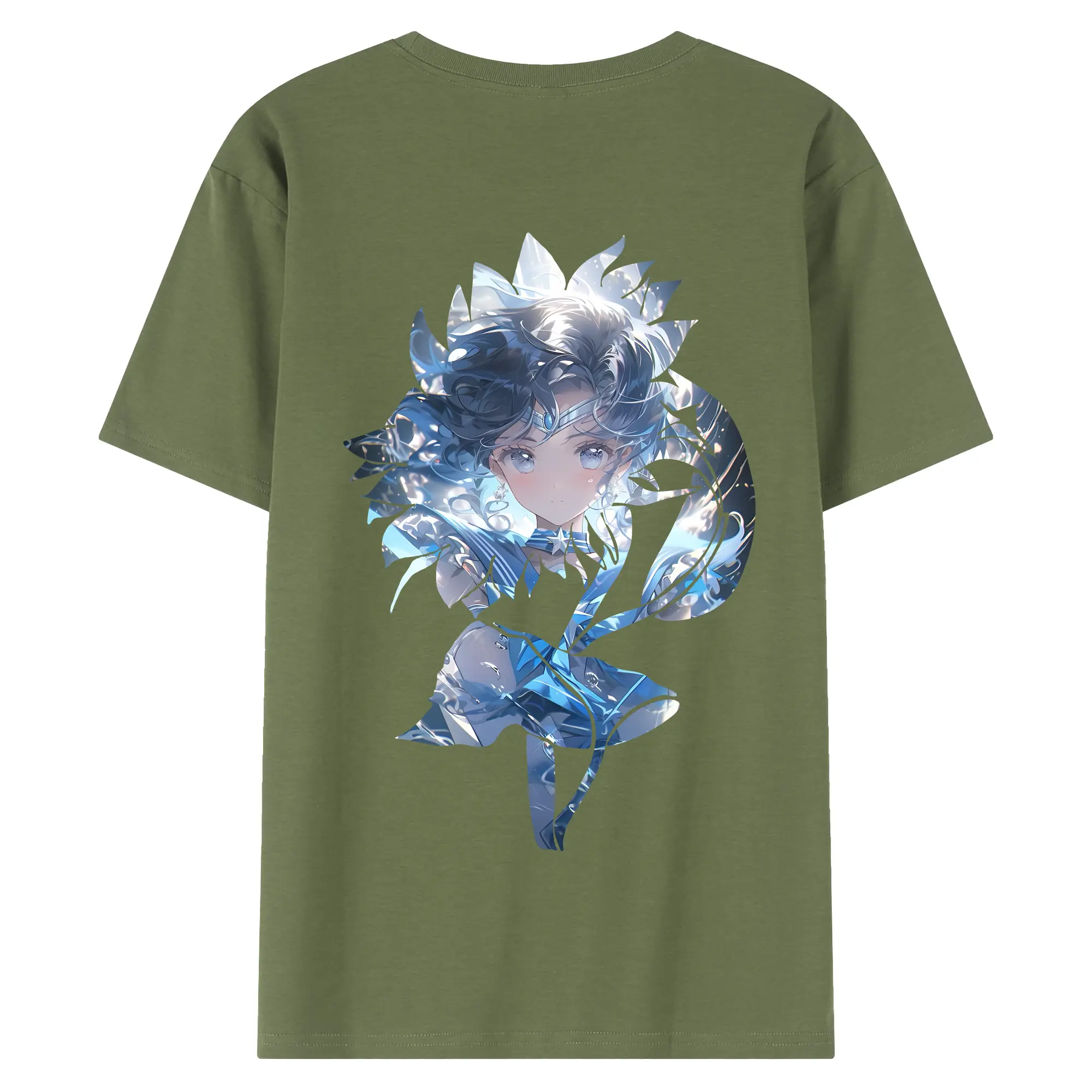 美少女戦士セーラームーン グッズ 水野 亜美 - 綿100% 半袖Tシャツ ・ フロントプリント ・ 快適 通気性 ・ 日常使い 散歩 スポーツ用