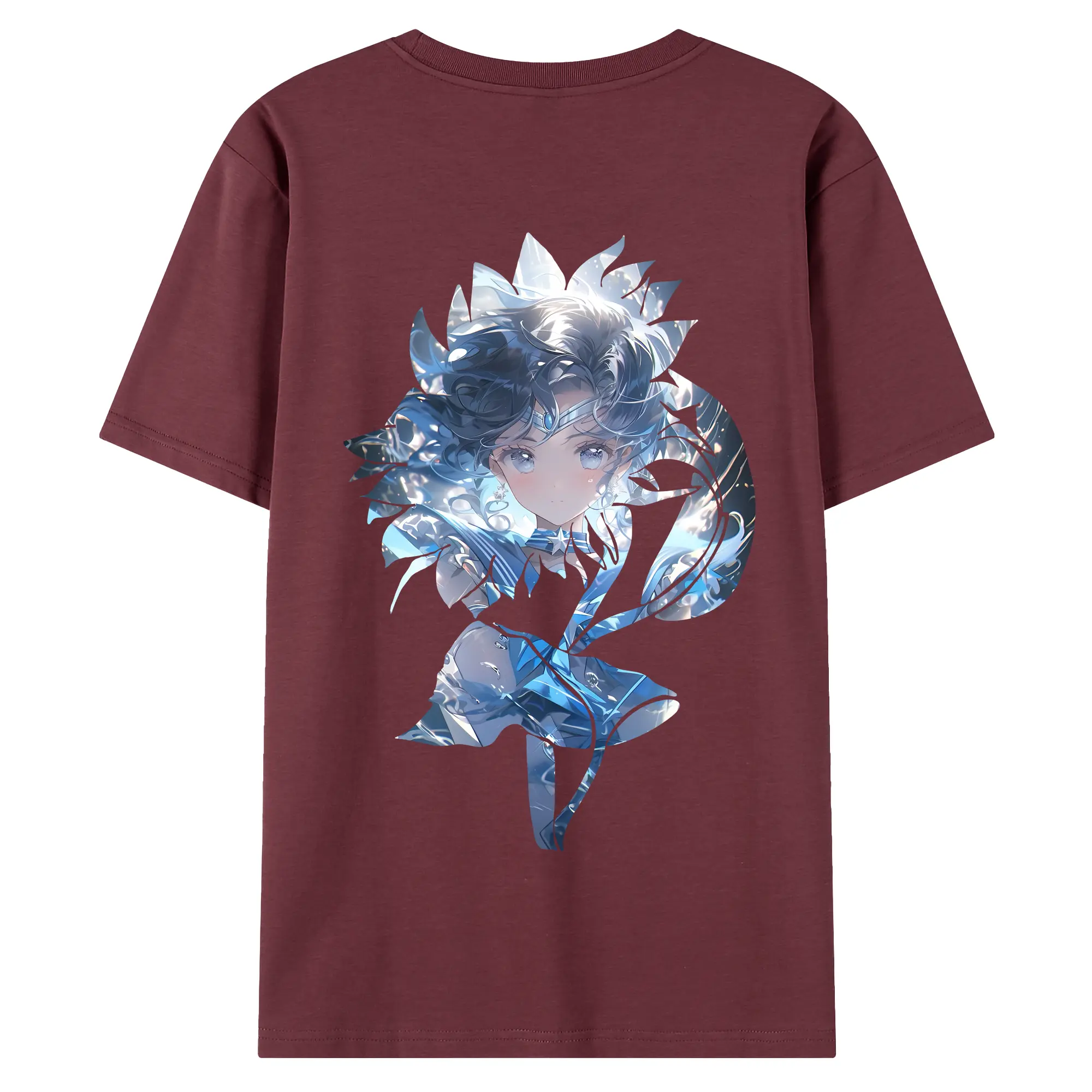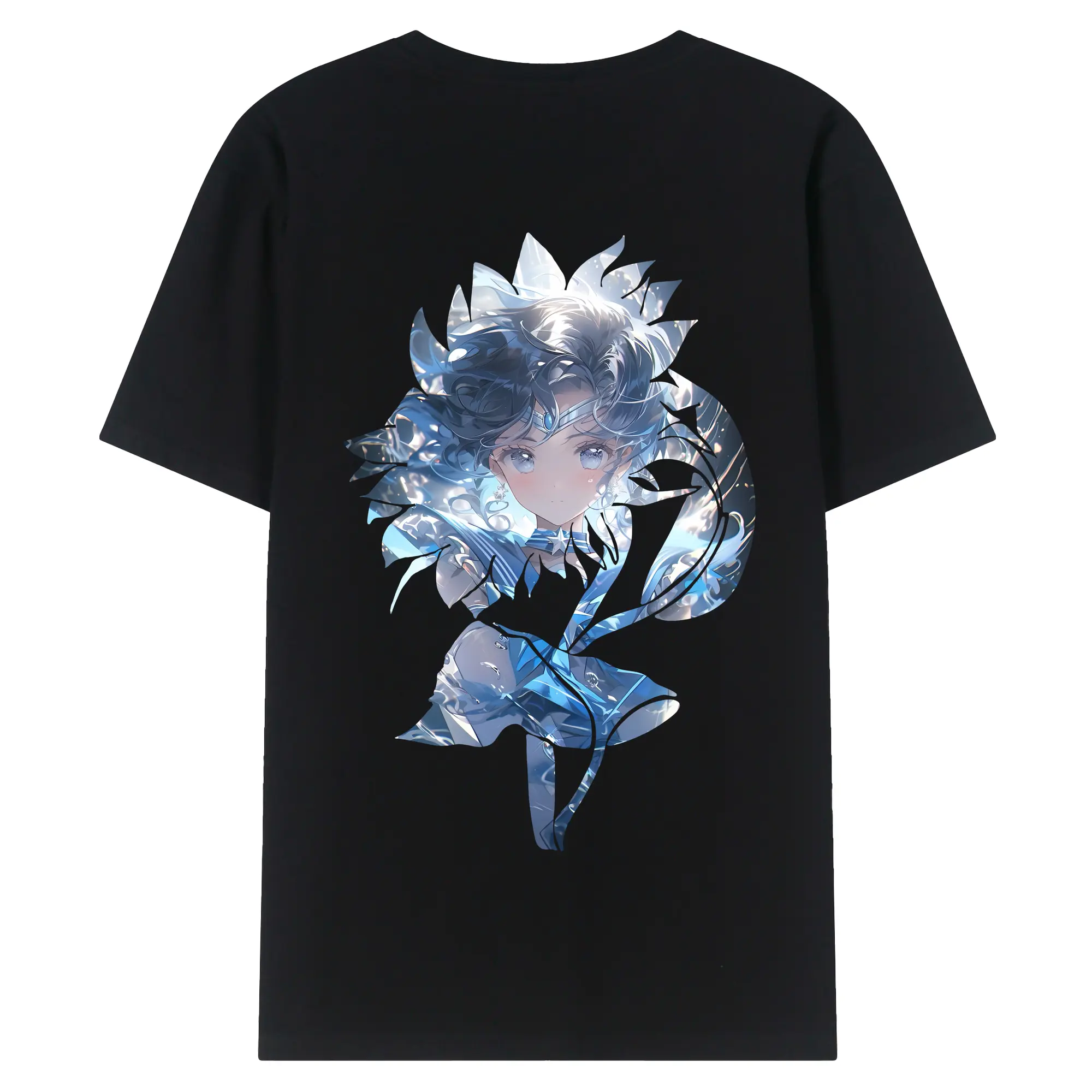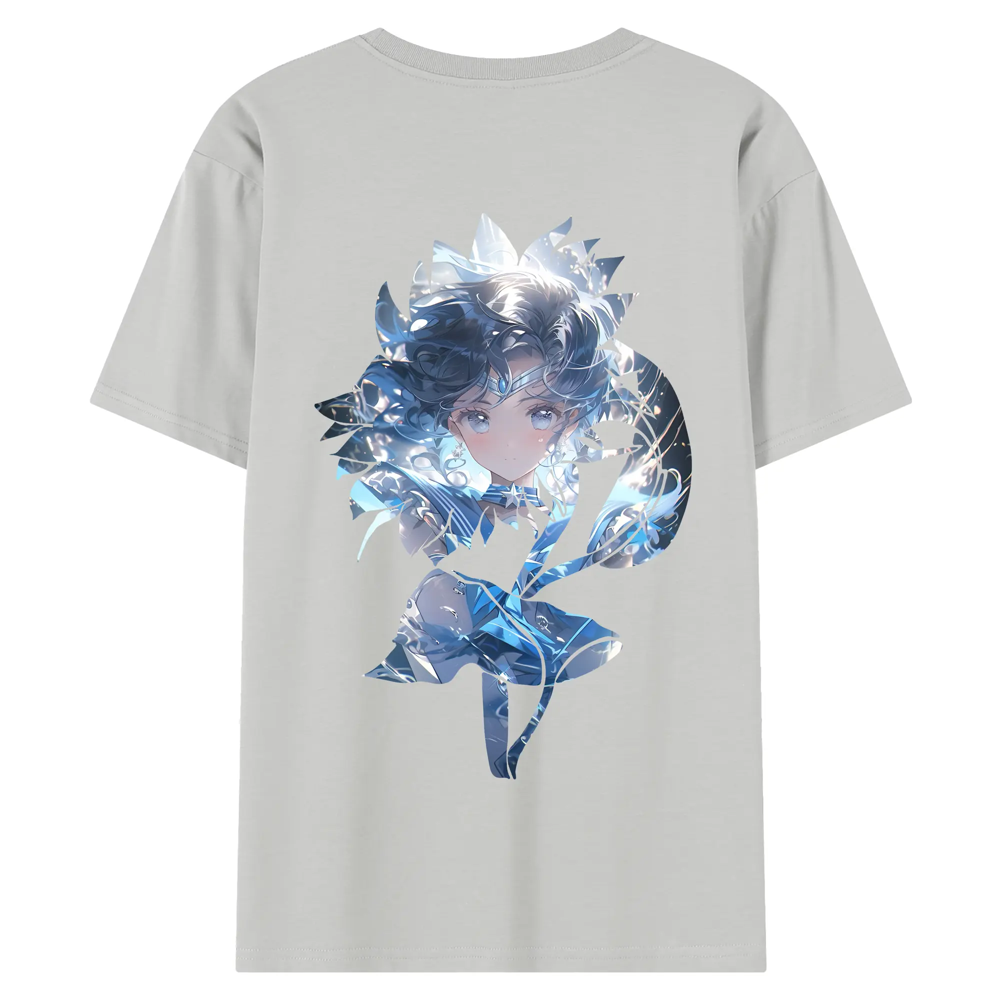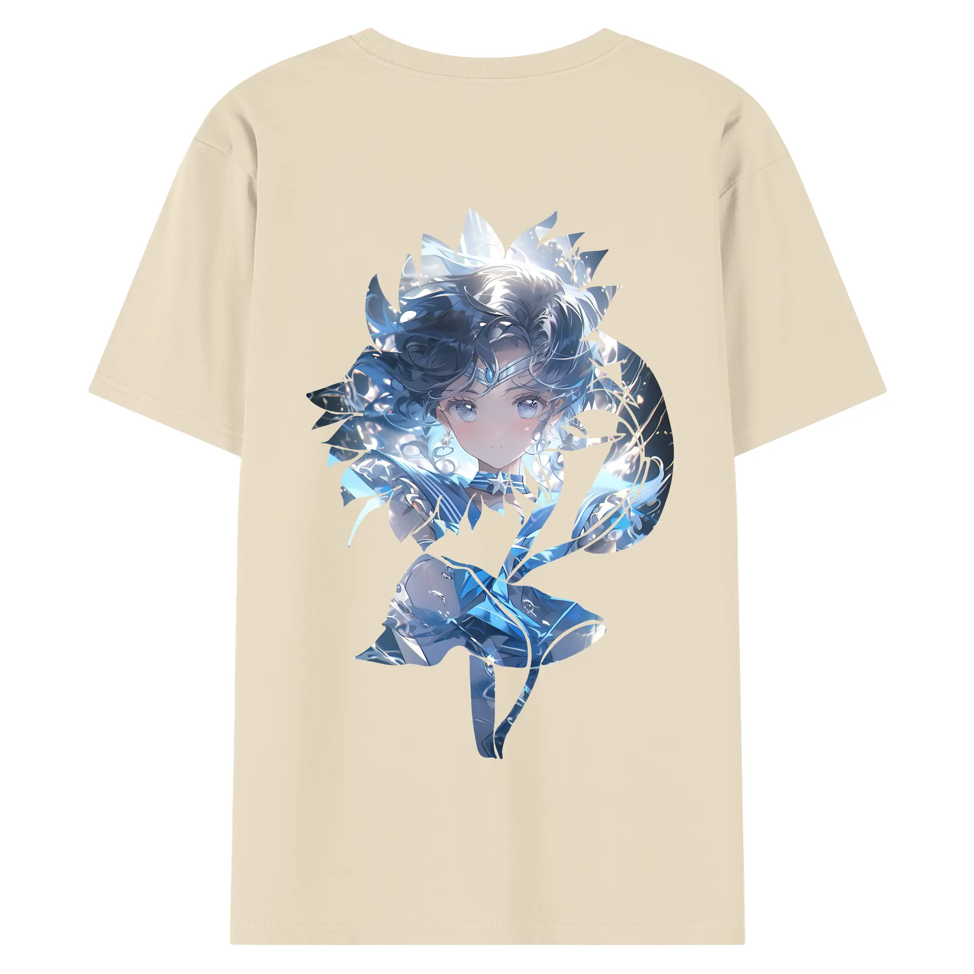 美少女戦士セーラームーン グッズ 水野 亜美 - 綿100% 半袖Tシャツ ・ フロントプリント ・ 快適 通気性 ・ 日常使い 散歩 スポーツ用