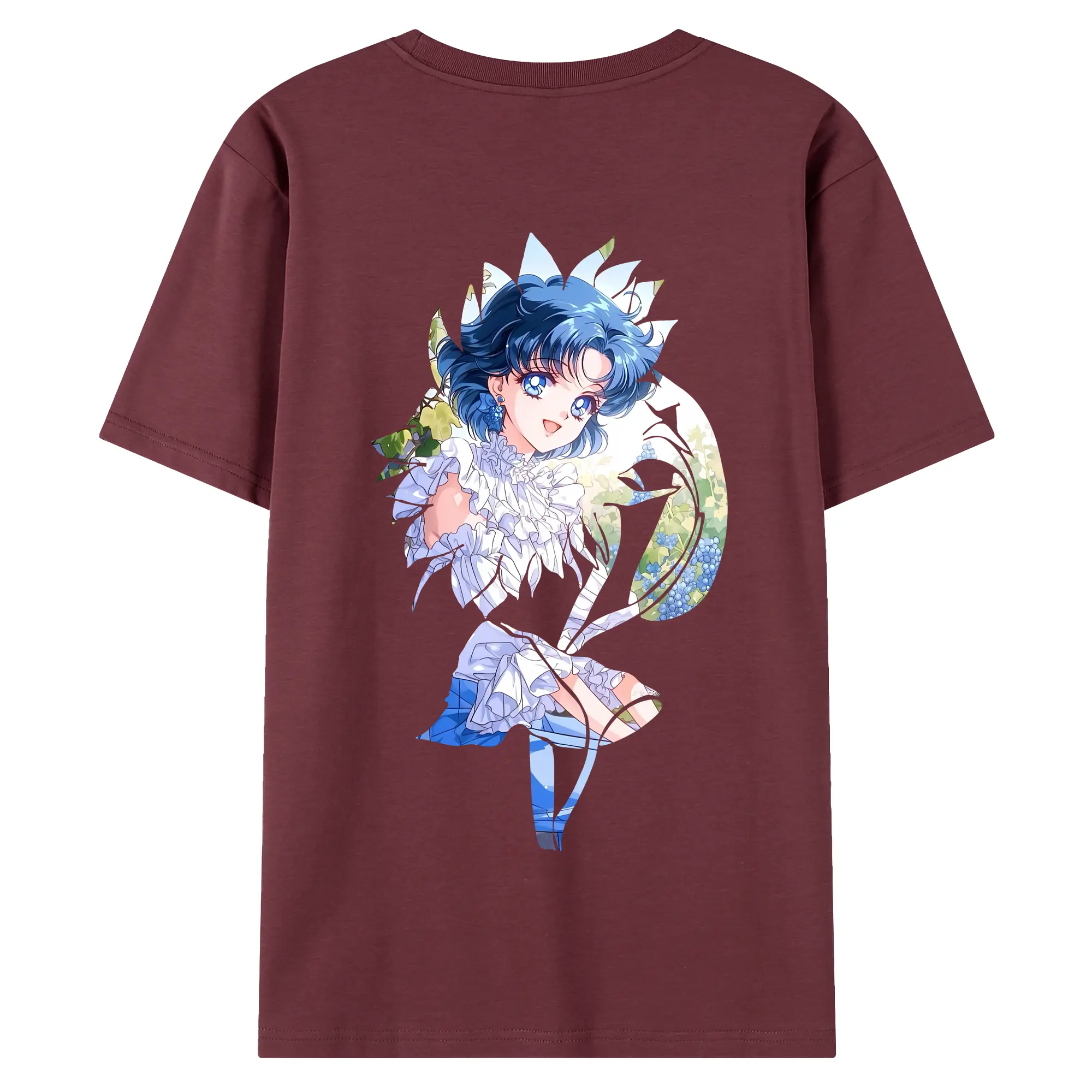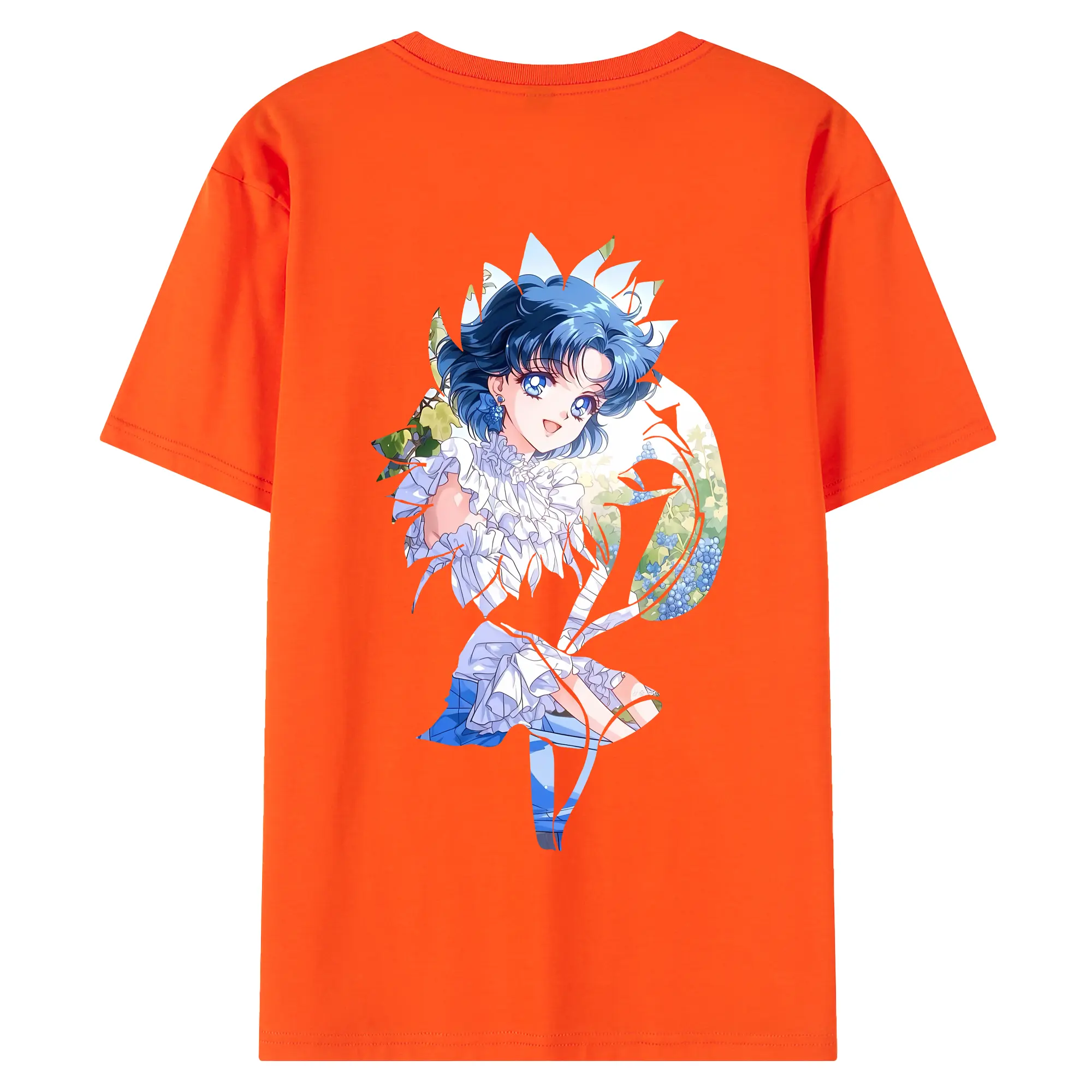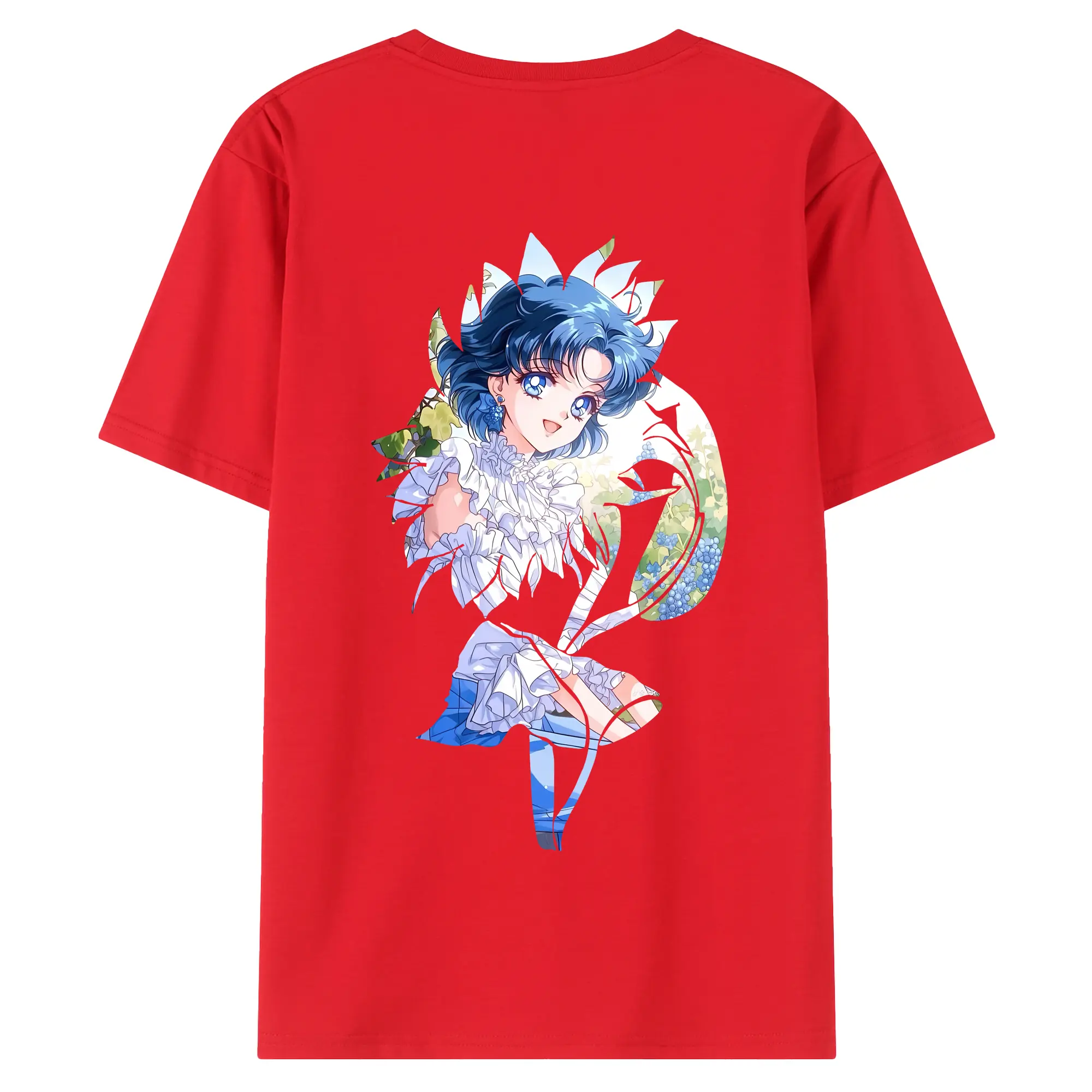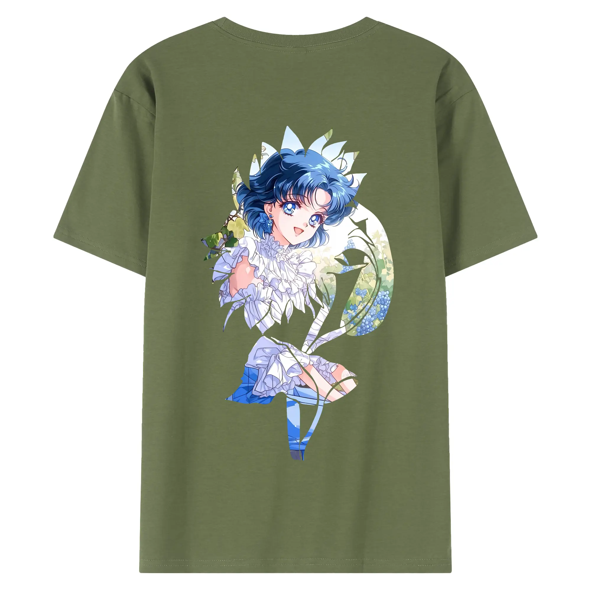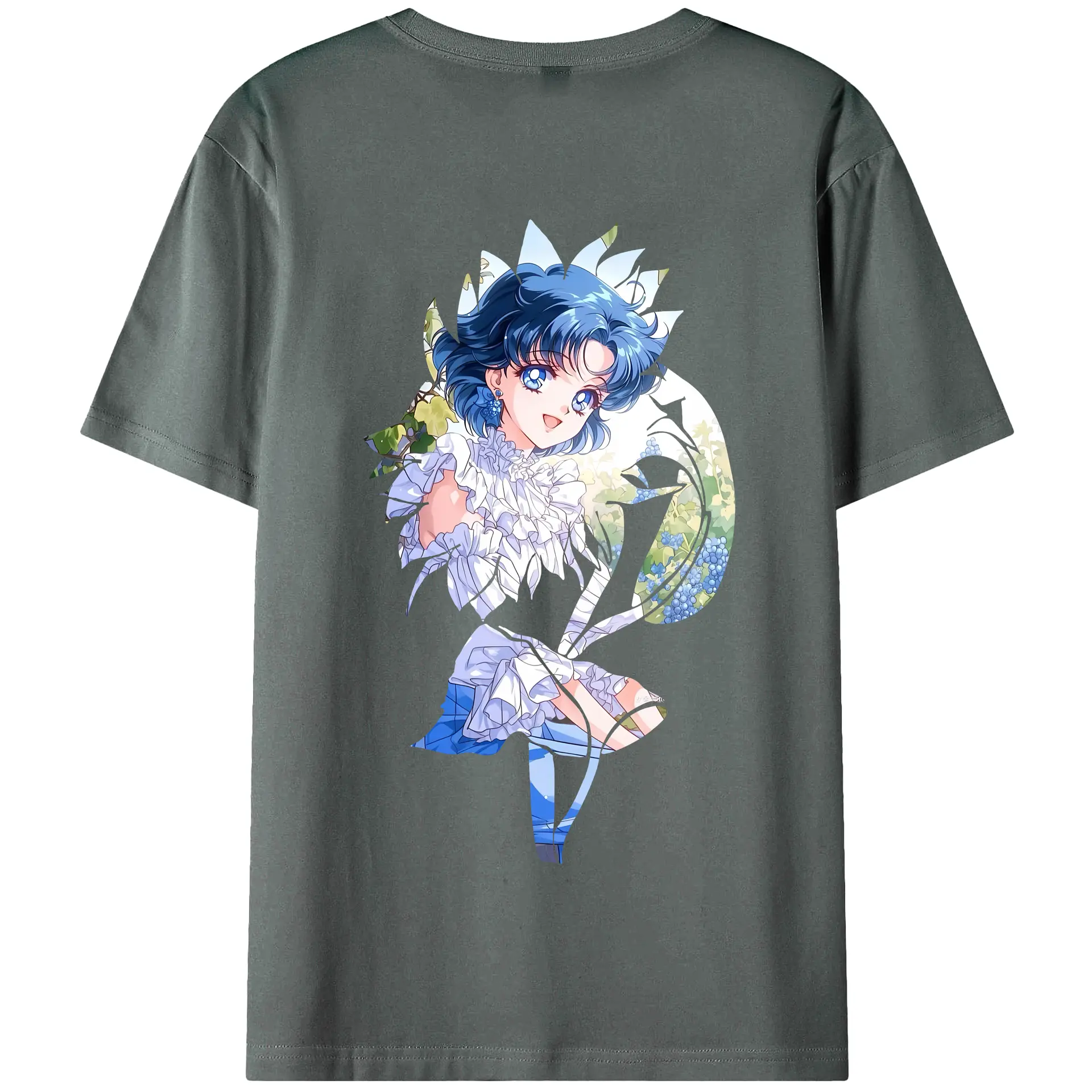 美少女戦士セーラームーン グッズ 水野 亜美 - 綿100% 半袖Tシャツ ・ フロントプリント ・ 快適 通気性 ・ 日常使い 散歩 スポーツ用