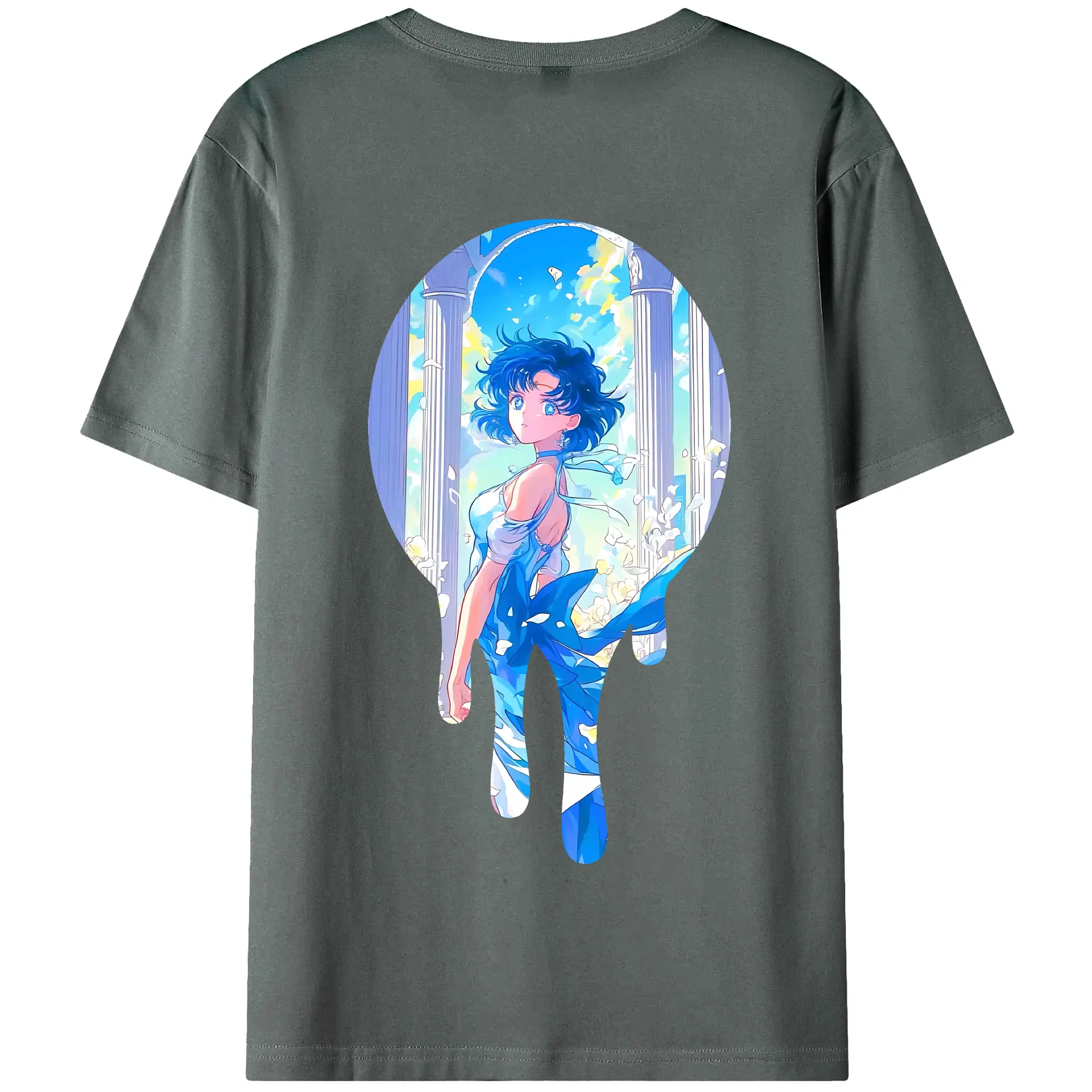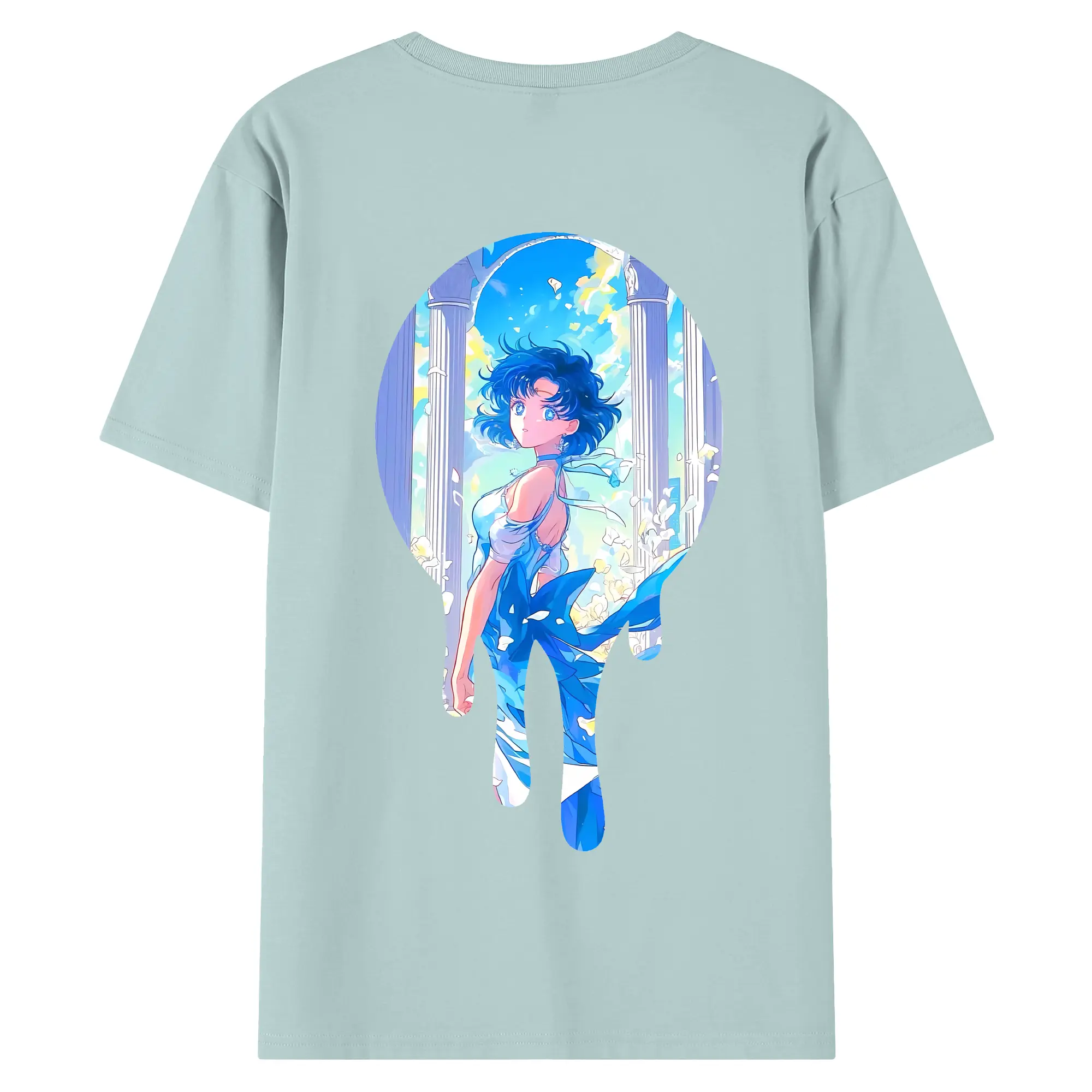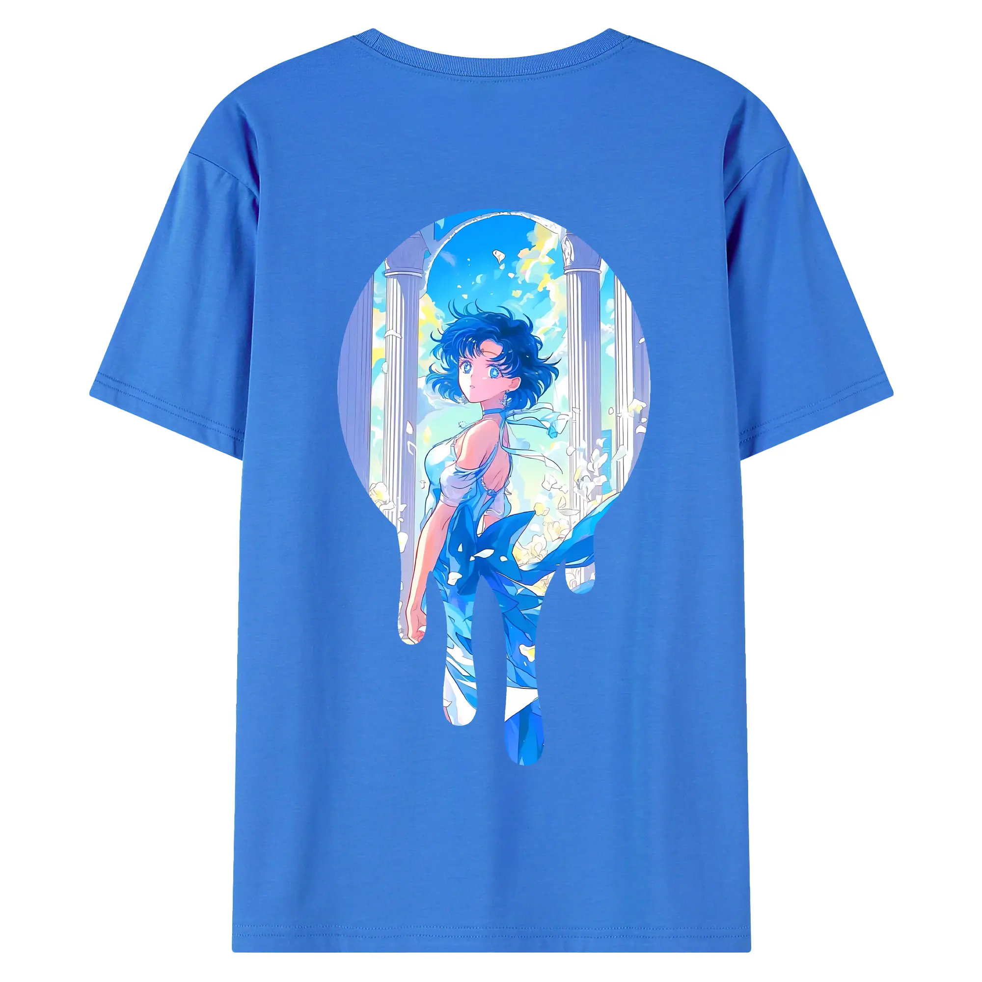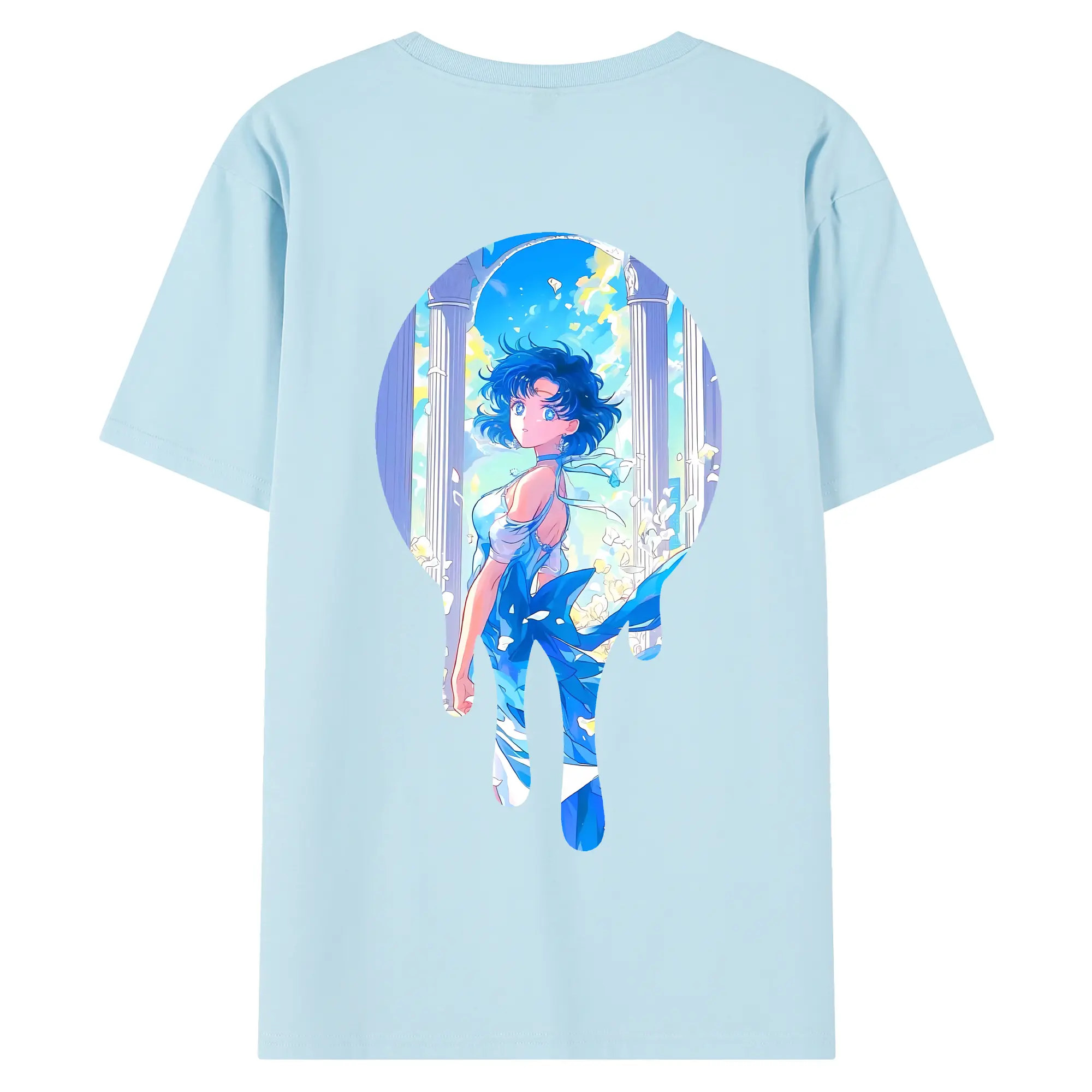 美少女戦士セーラームーン グッズ 水野 亜美 - 綿100% 半袖Tシャツ ・ フロントプリント ・ 快適 通気性 ・ 日常使い 散歩 スポーツ用