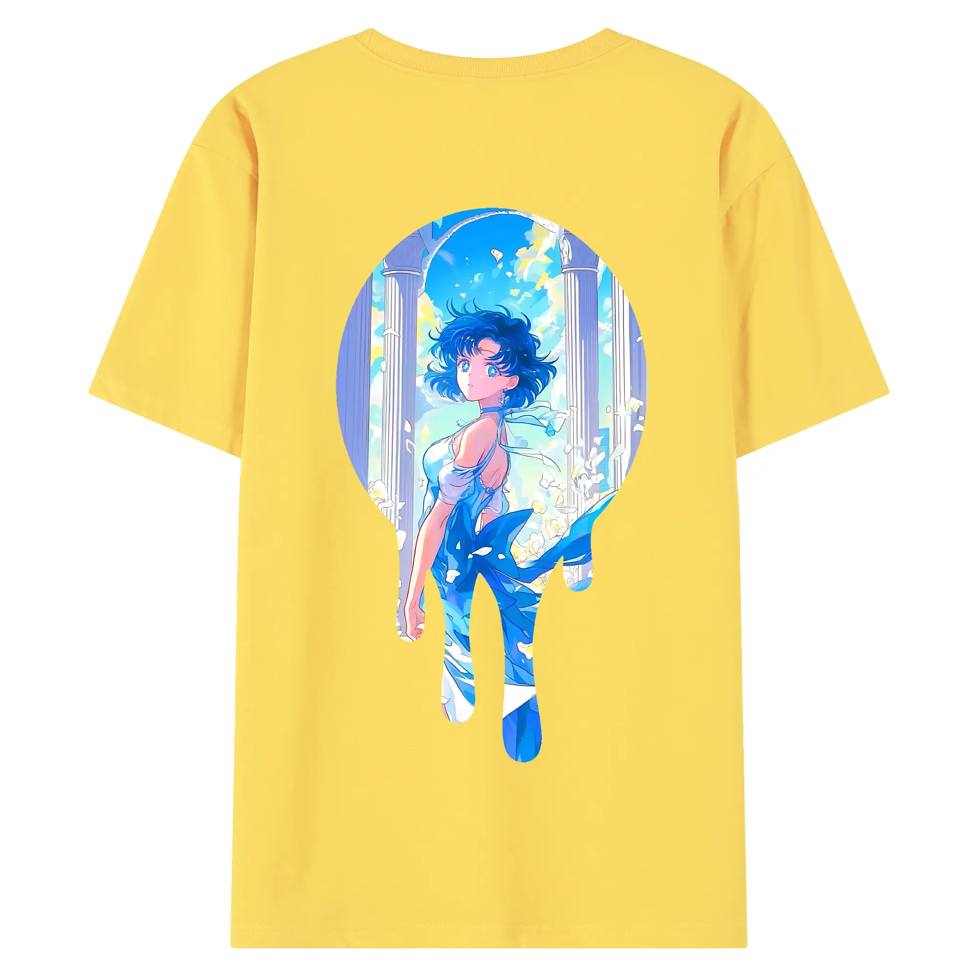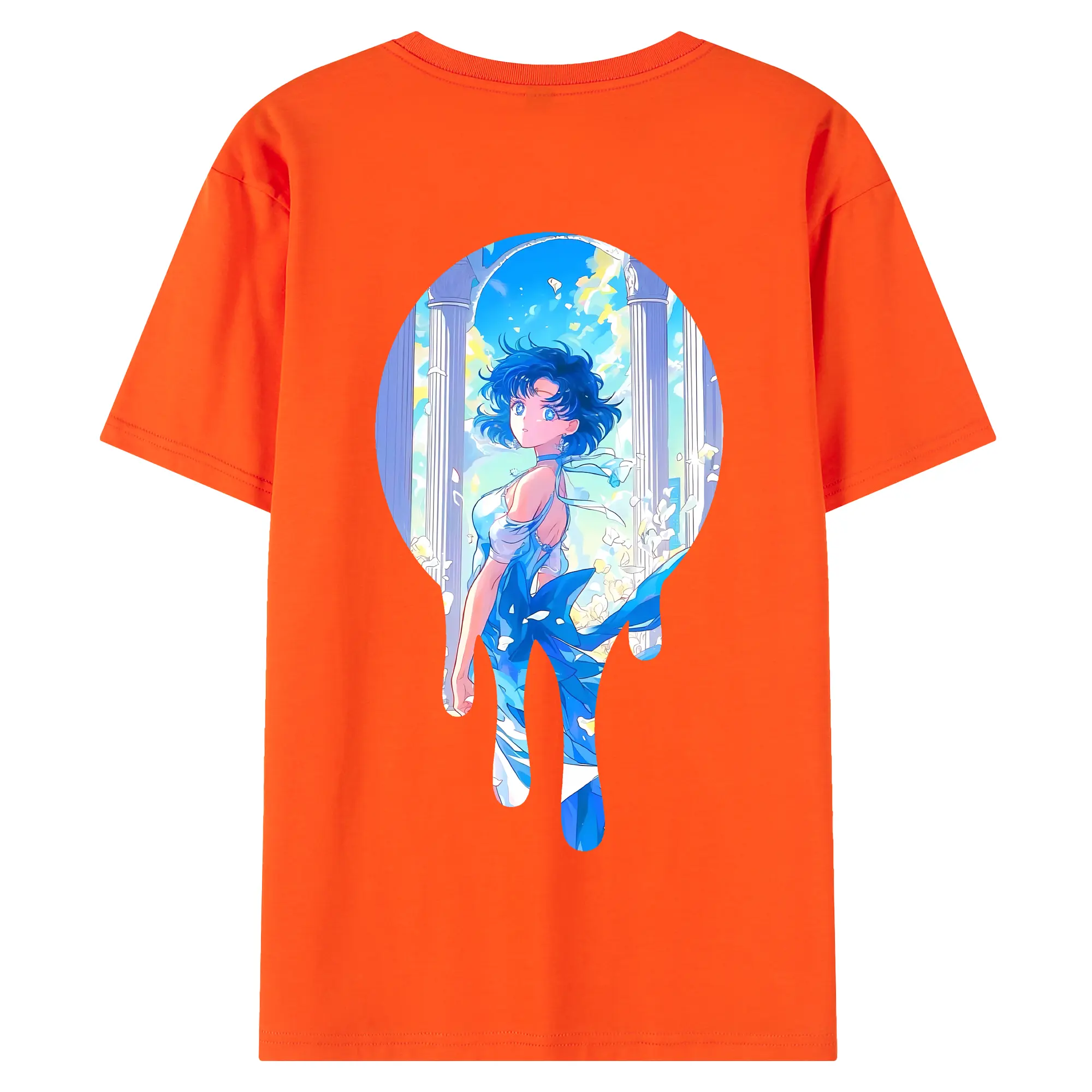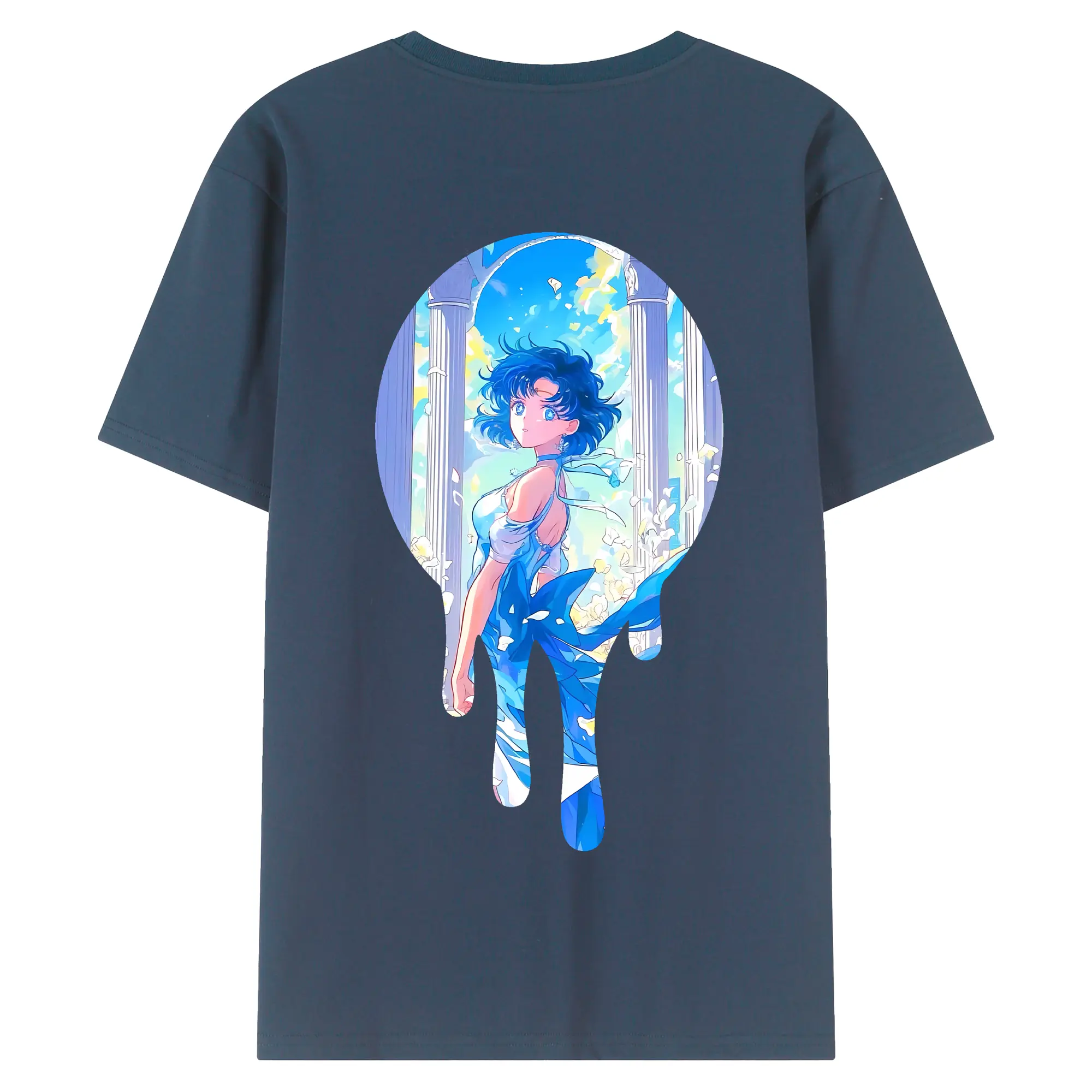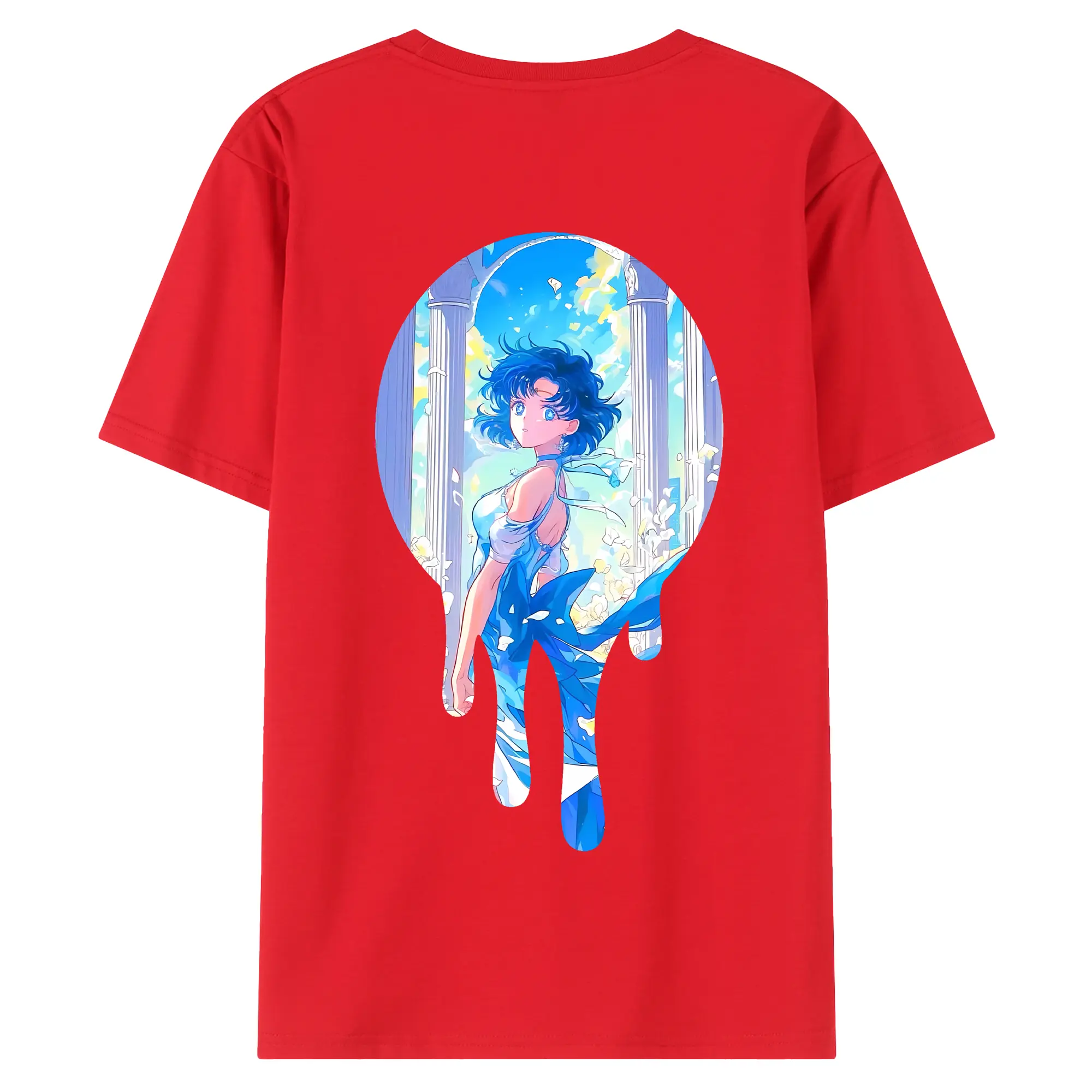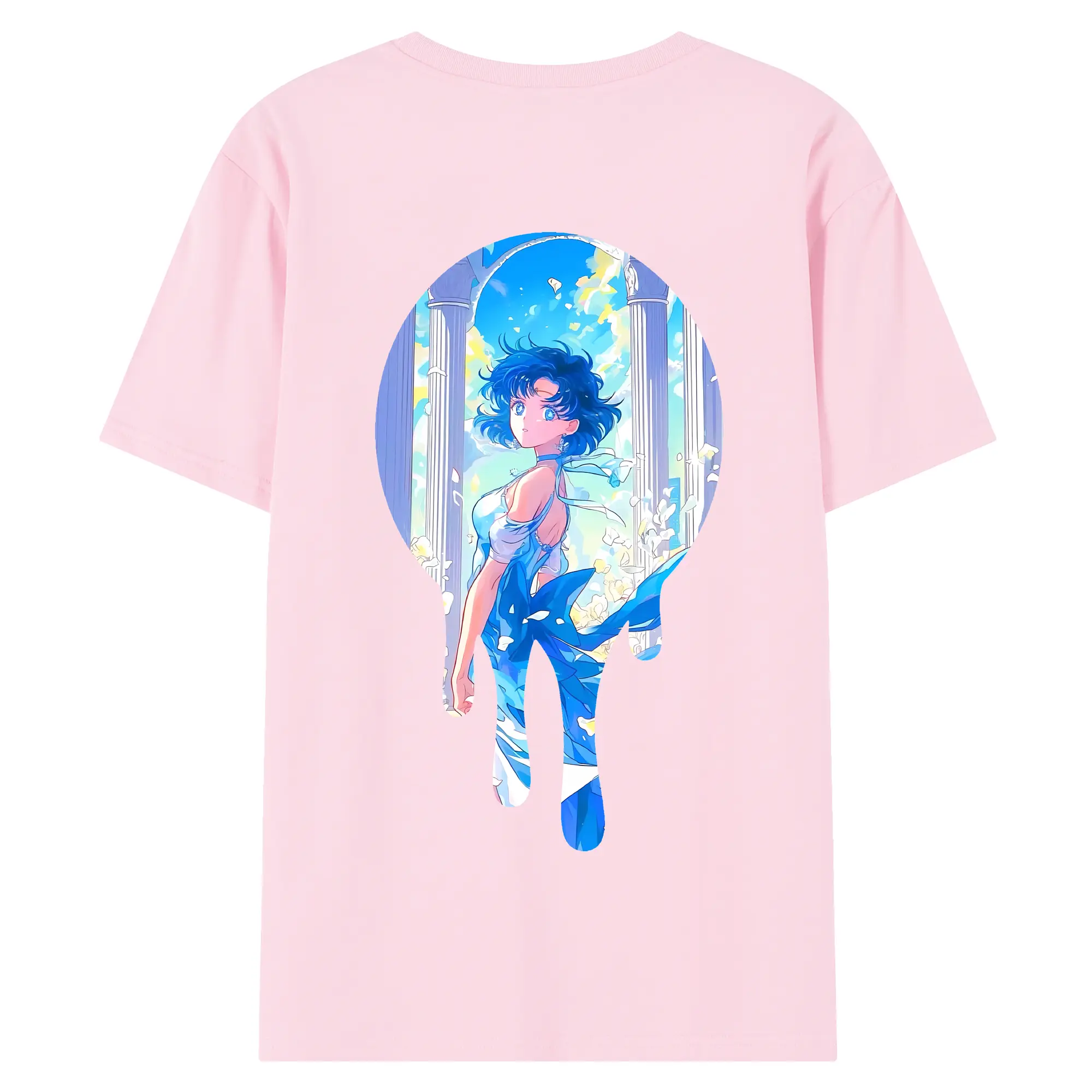 美少女戦士セーラームーン グッズ 水野 亜美 - 綿100% 半袖Tシャツ ・ フロントプリント ・ 快適 通気性 ・ 日常使い 散歩 スポーツ用
