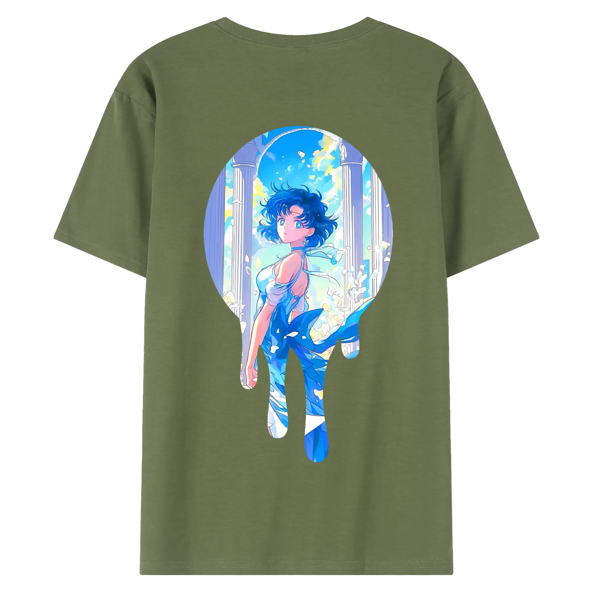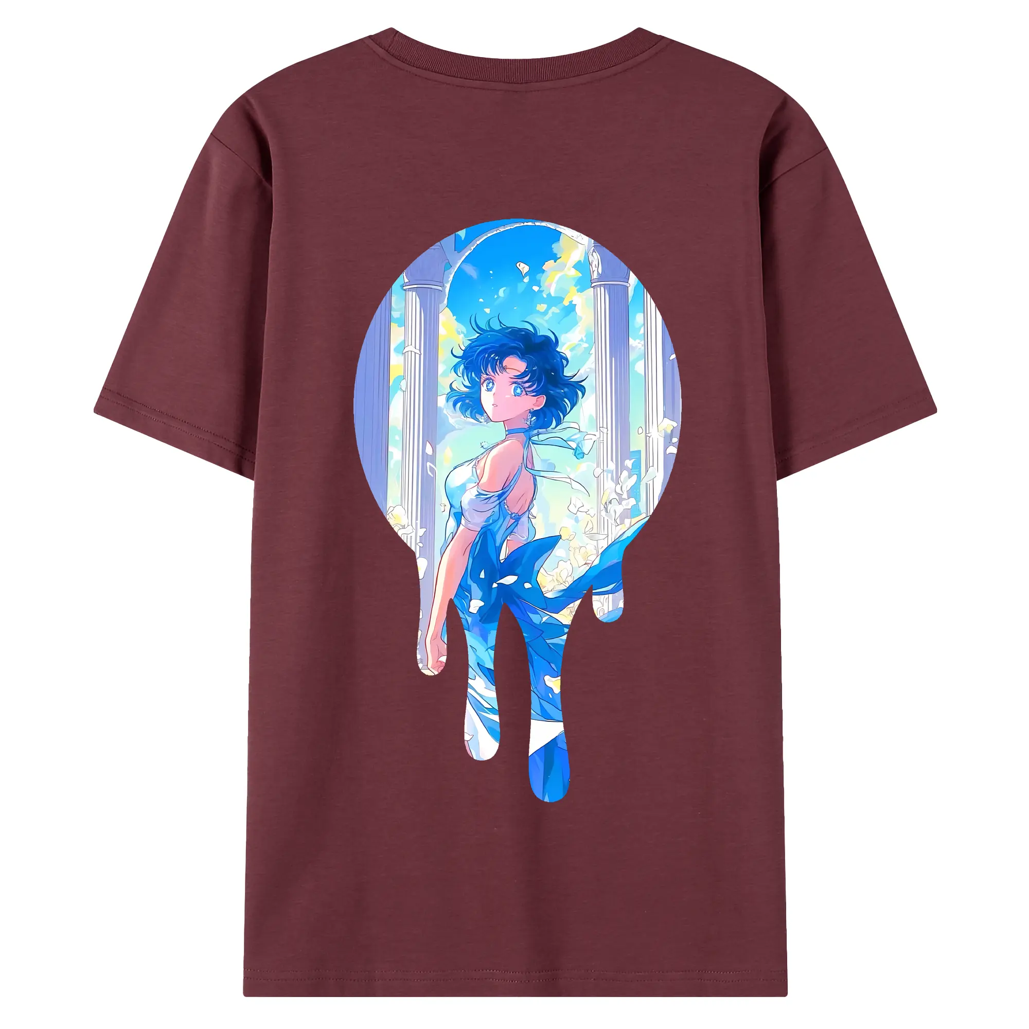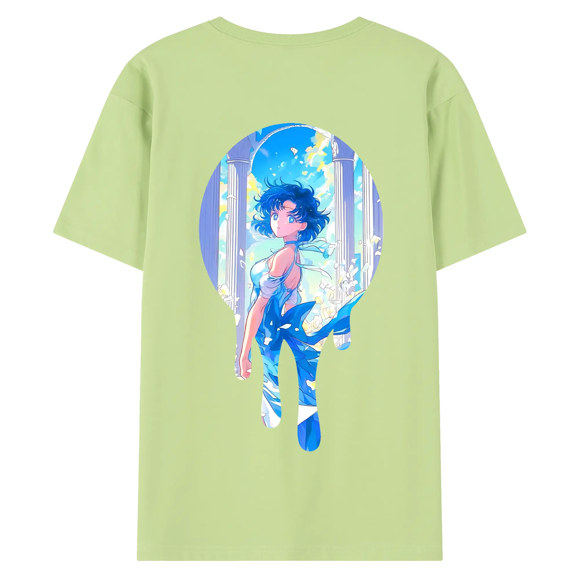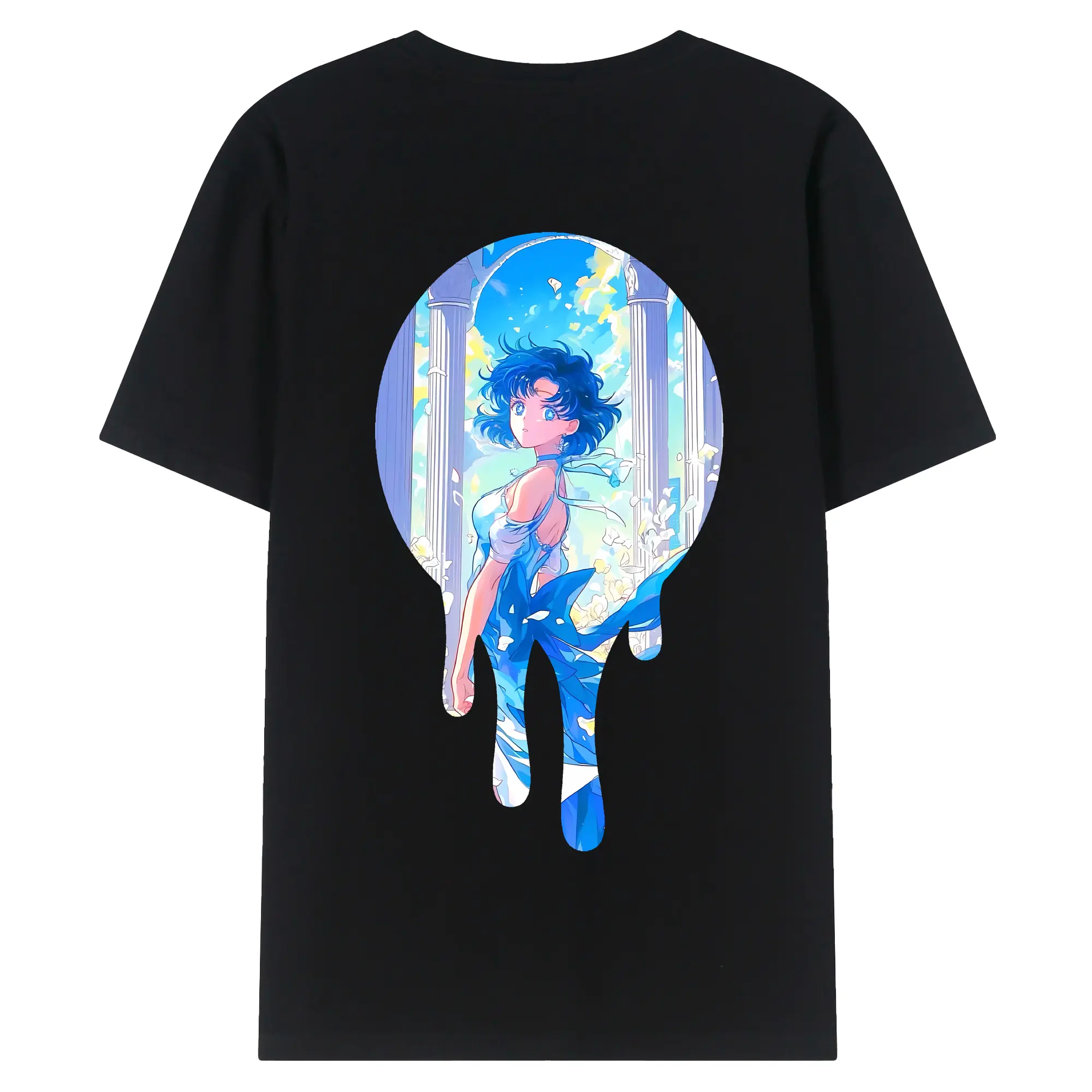美少女戦士セーラームーン グッズ 水野 亜美 - 綿100% 半袖Tシャツ ・ フロントプリント ・ 快適 通気性 ・ 日常使い 散歩 スポーツ用