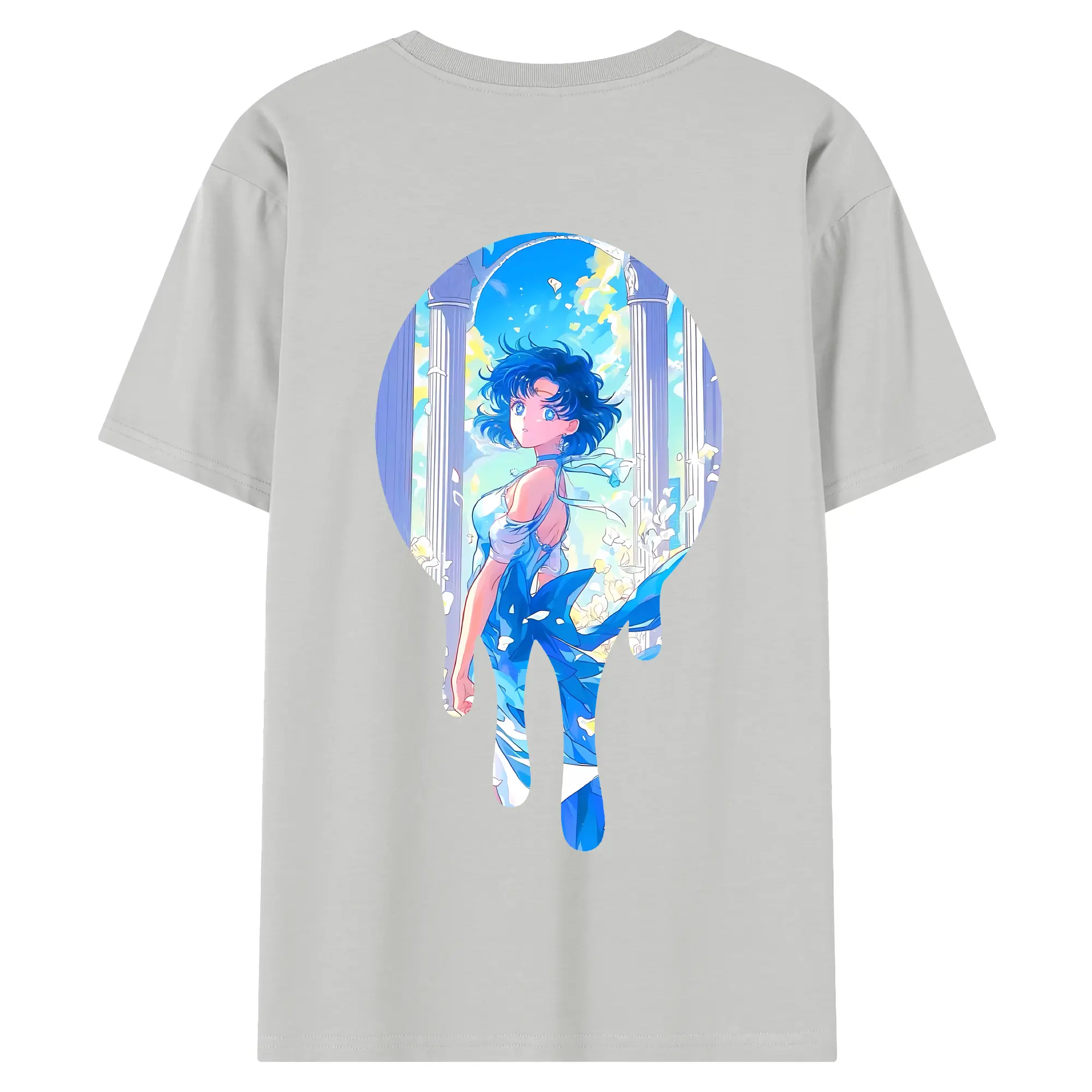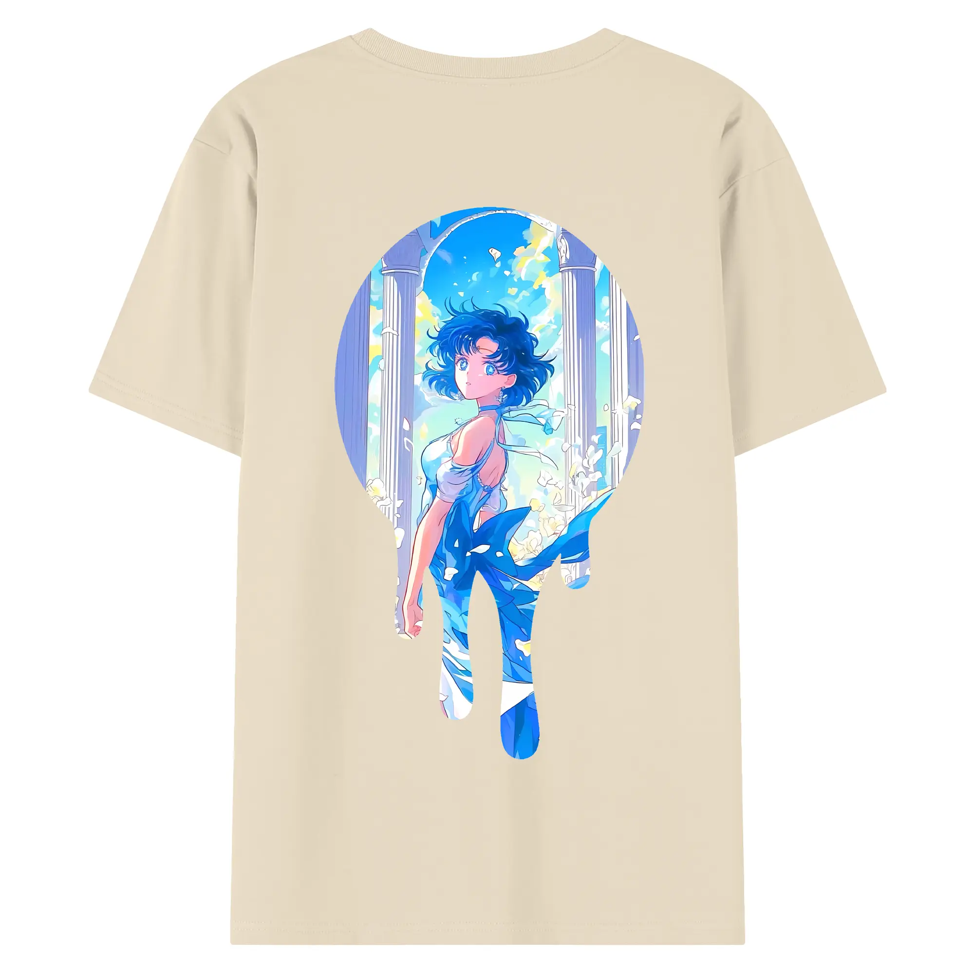 美少女戦士セーラームーン グッズ 水野 亜美 - 綿100% ヴィンテージ風 半袖Tシャツ ・ 背面プリント ・ 柔らか肌触り ・ 通気性 快適 ・ スポーツ カジュアル 外出用