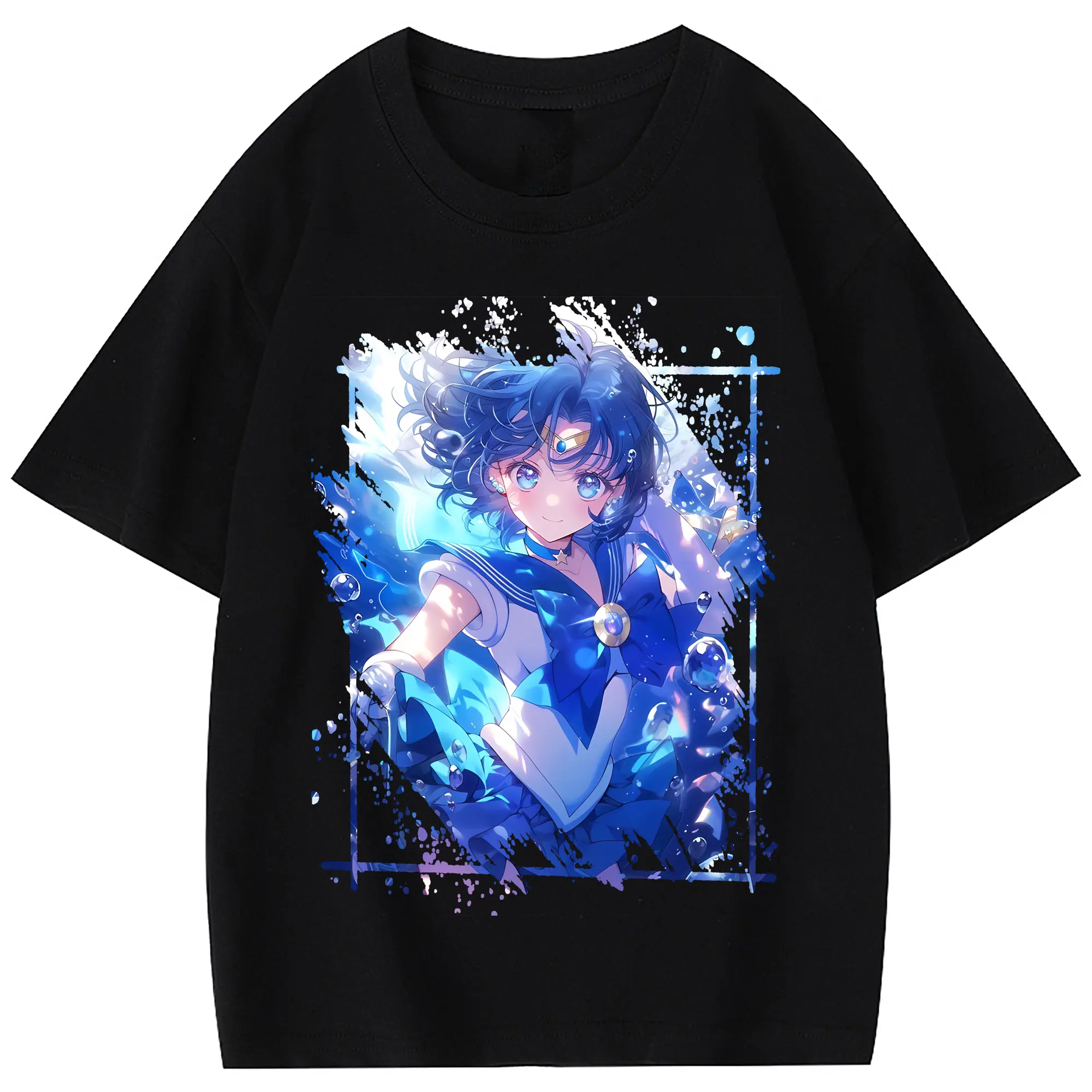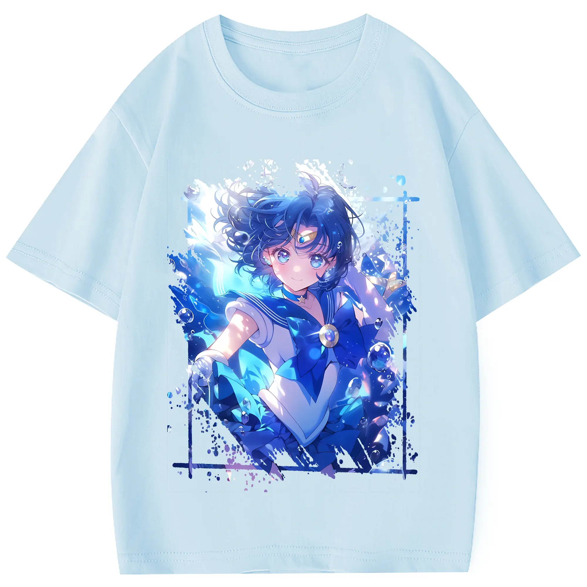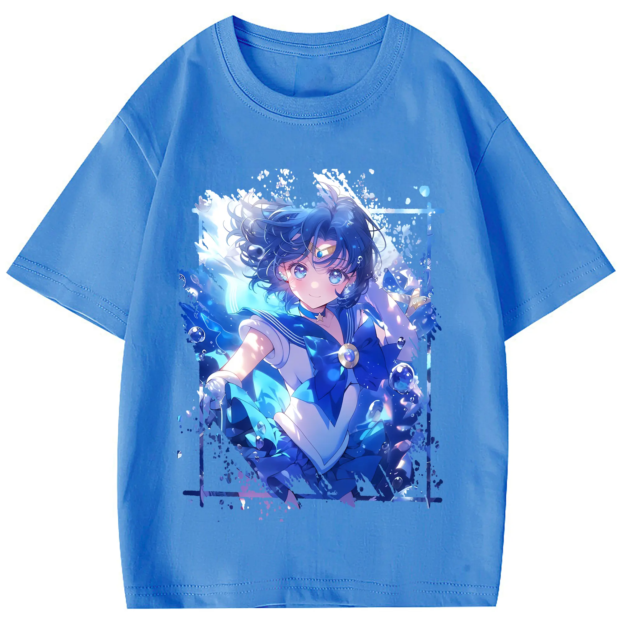 美少女戦士セーラームーン グッズ 水野 亜美 - 綿100% 半袖Tシャツ ・ フロントプリント ・ 快適 通気性 ・ 日常使い 散歩 スポーツ用