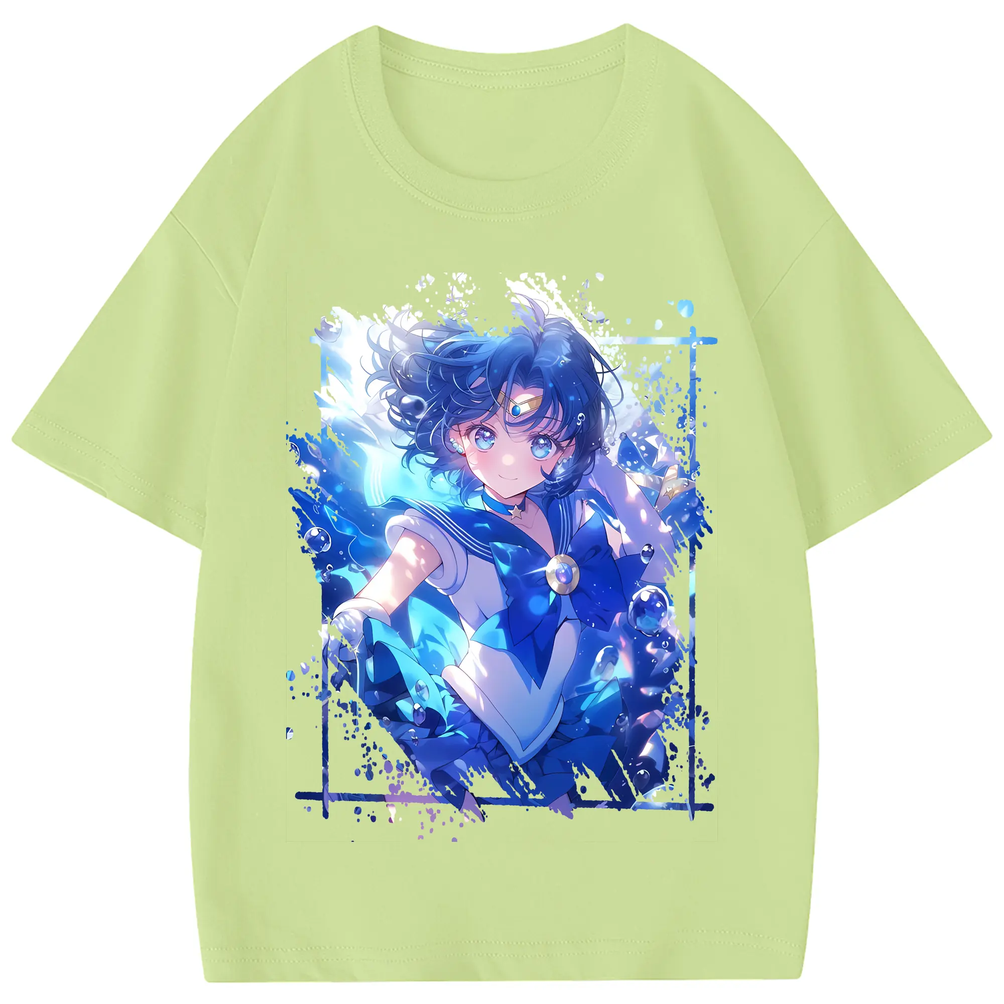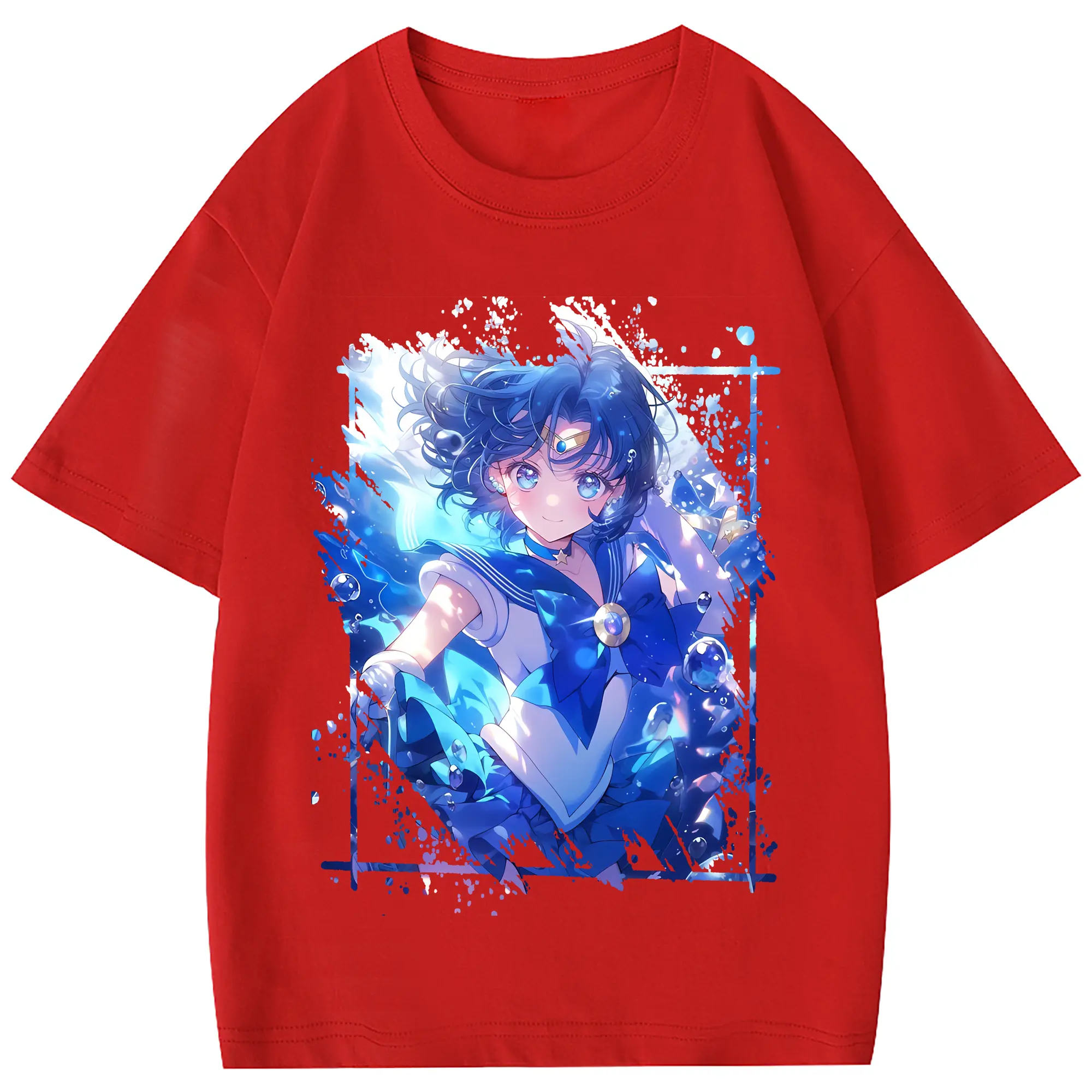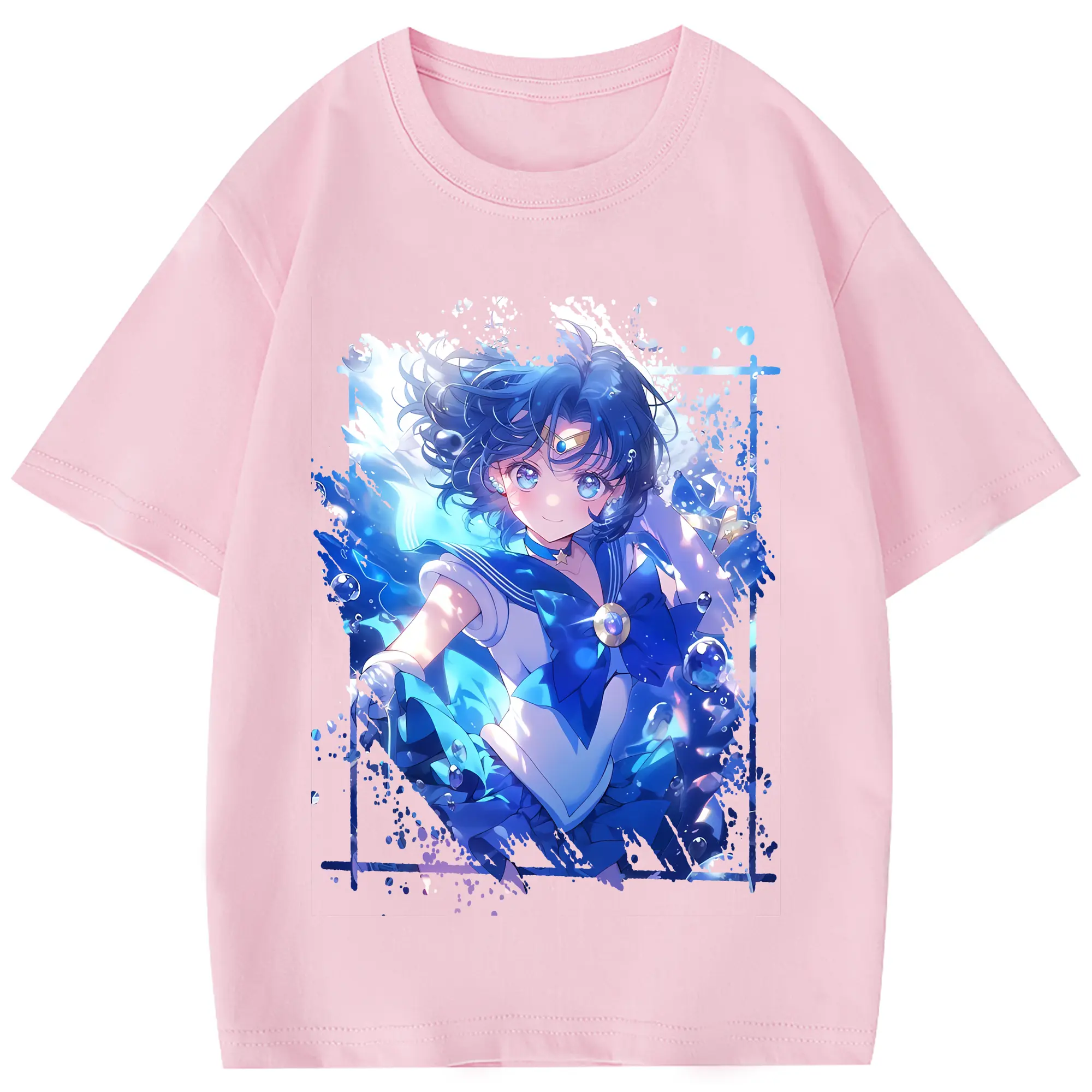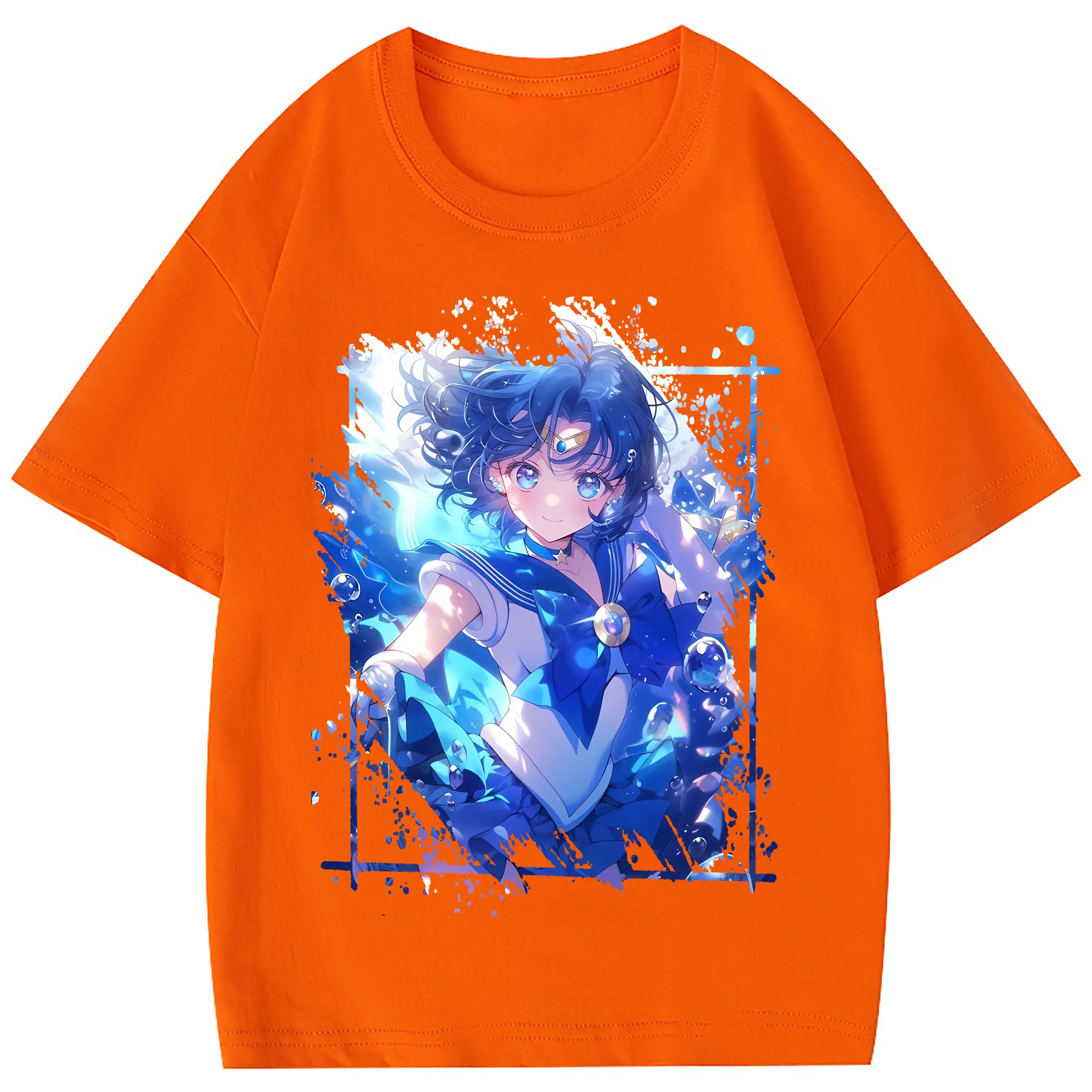 美少女戦士セーラームーン グッズ 水野 亜美 - 綿100% 半袖Tシャツ ・ フロントプリント ・ 快適 通気性 ・ 日常使い 散歩 スポーツ用
