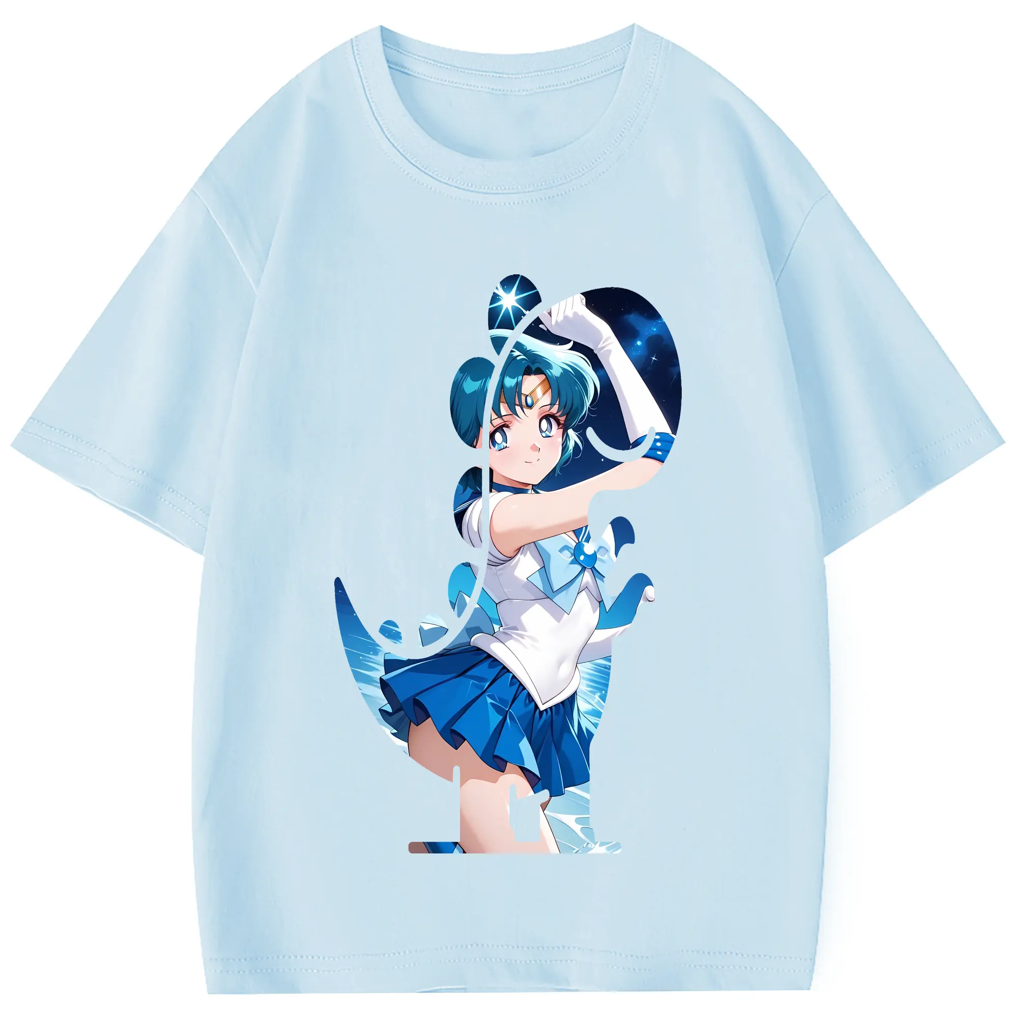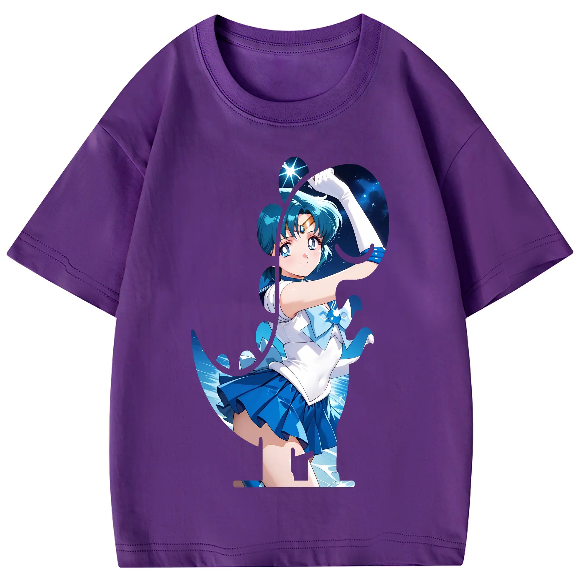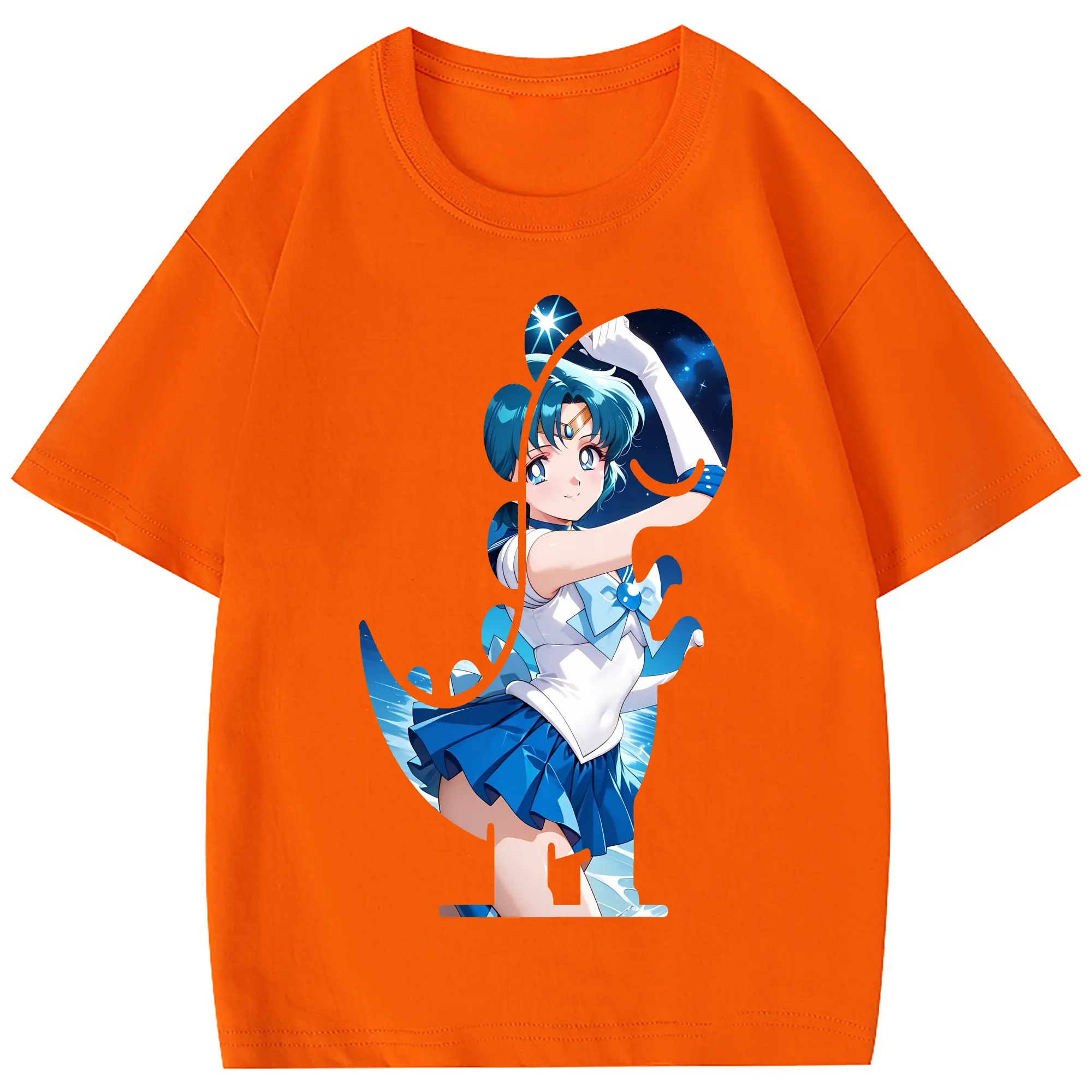 美少女戦士セーラームーン グッズ 水野 亜美 - 綿100% 半袖Tシャツ ・ フロントプリント ・ 快適 通気性 ・ 日常使い 散歩 スポーツ用