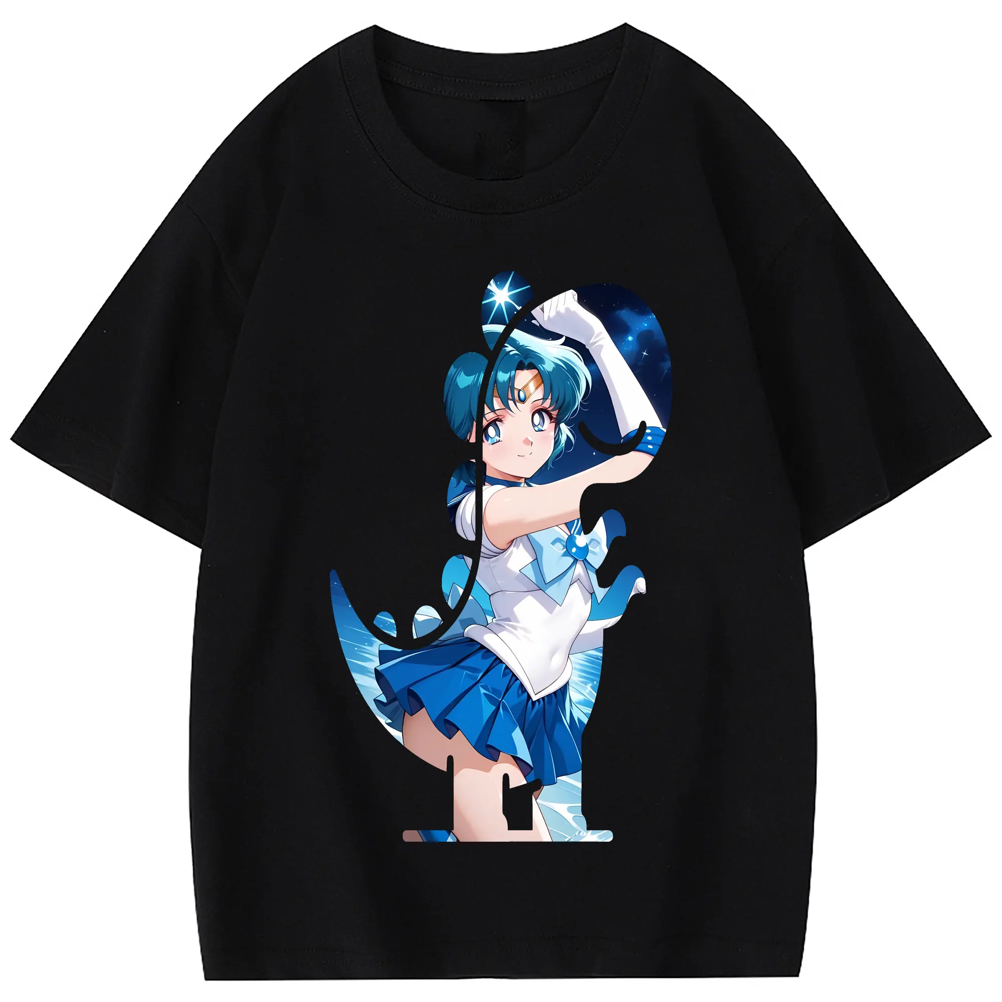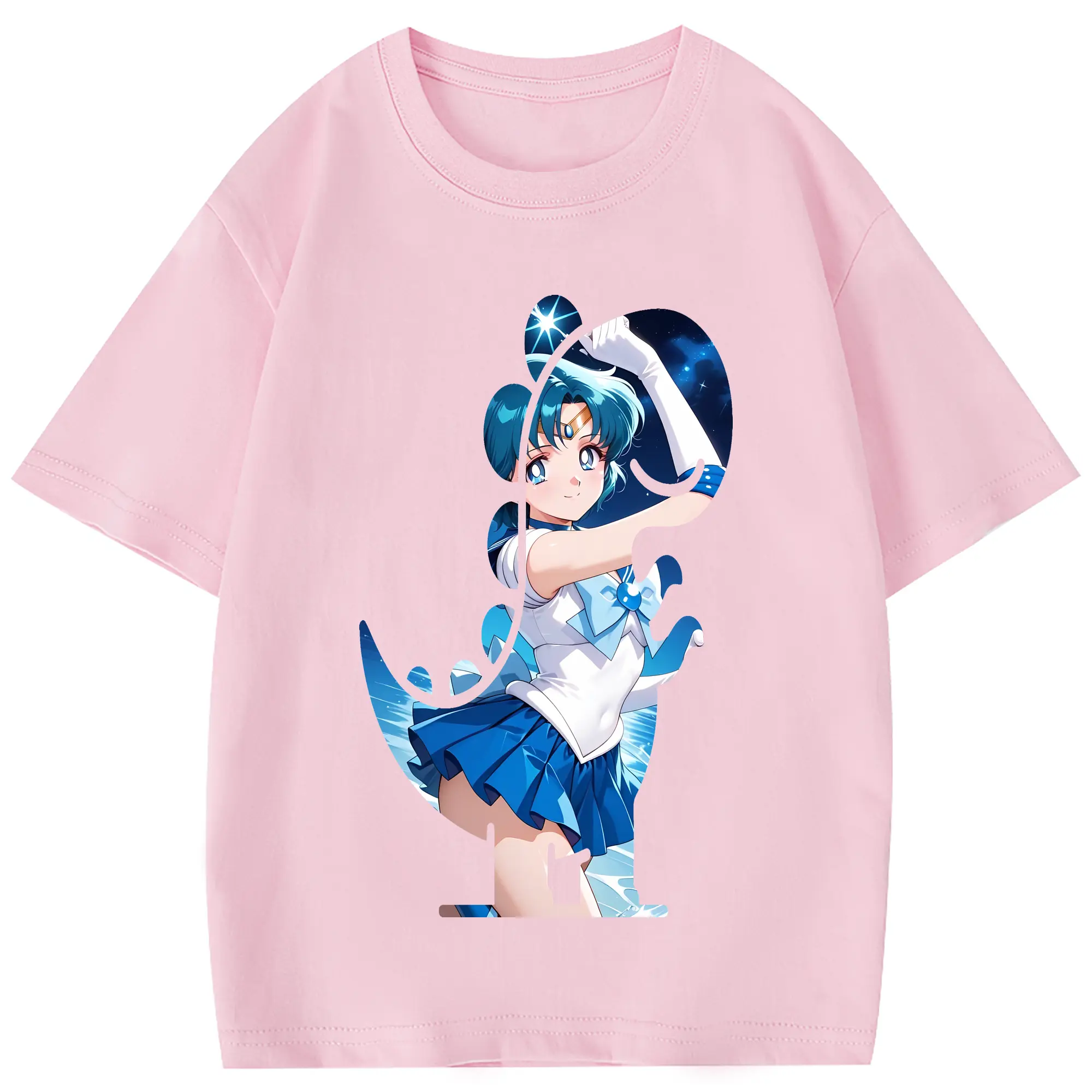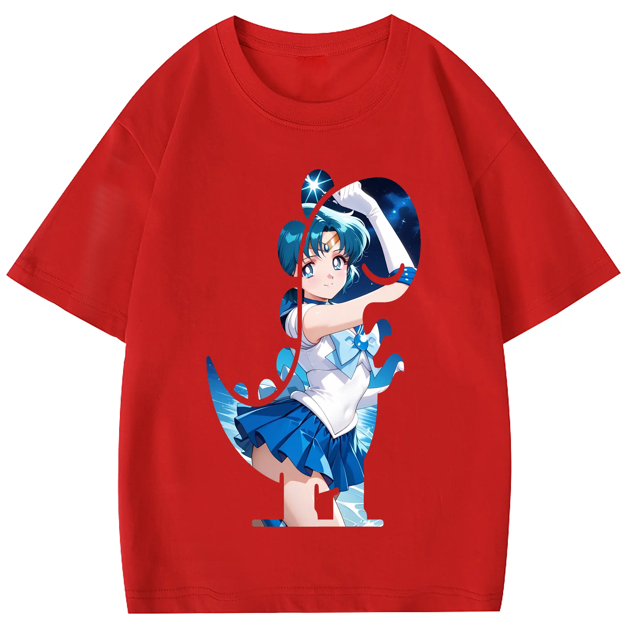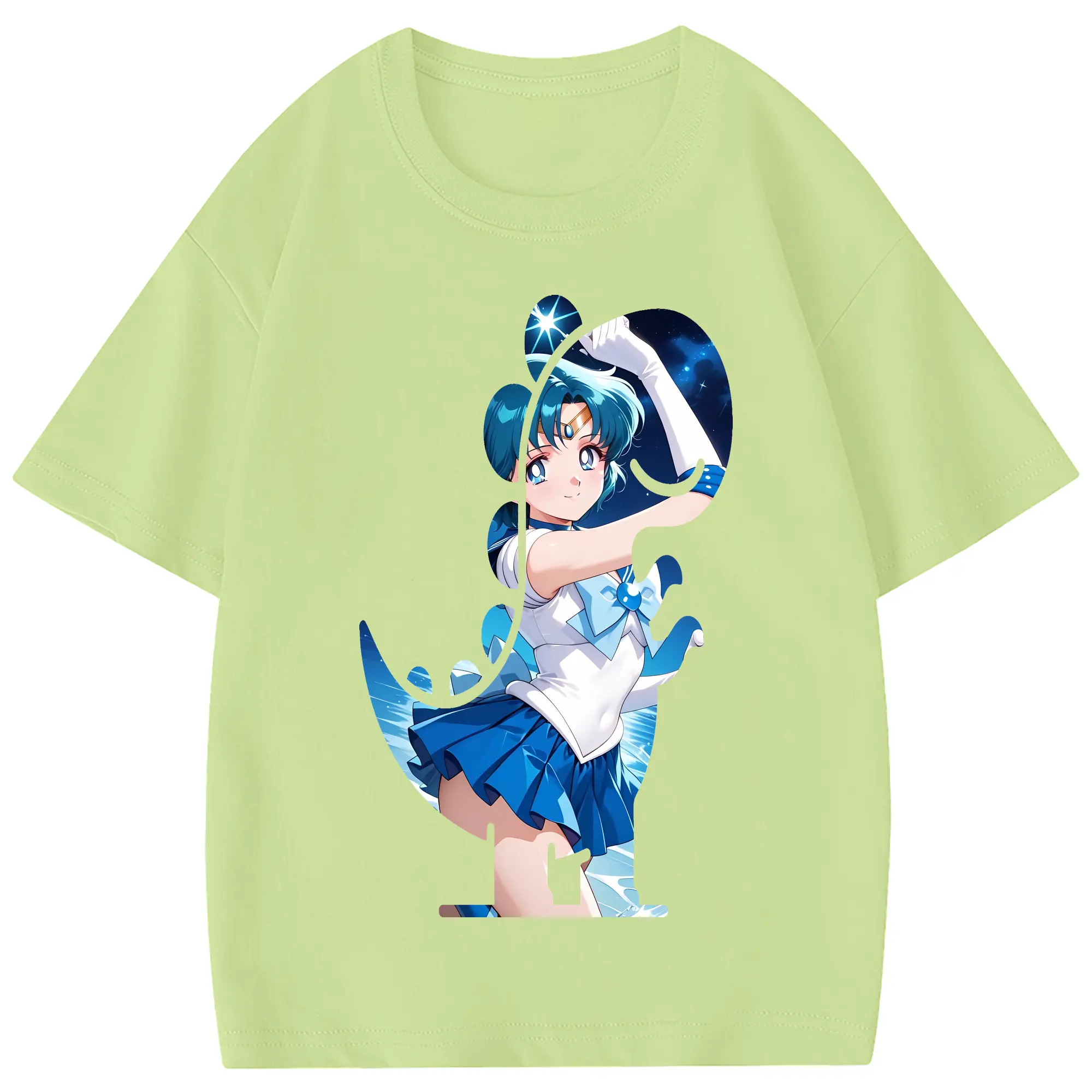 美少女戦士セーラームーン グッズ 水野 亜美 - 綿100% 半袖Tシャツ ・ フロントプリント ・ 快適 通気性 ・ 日常使い 散歩 スポーツ用