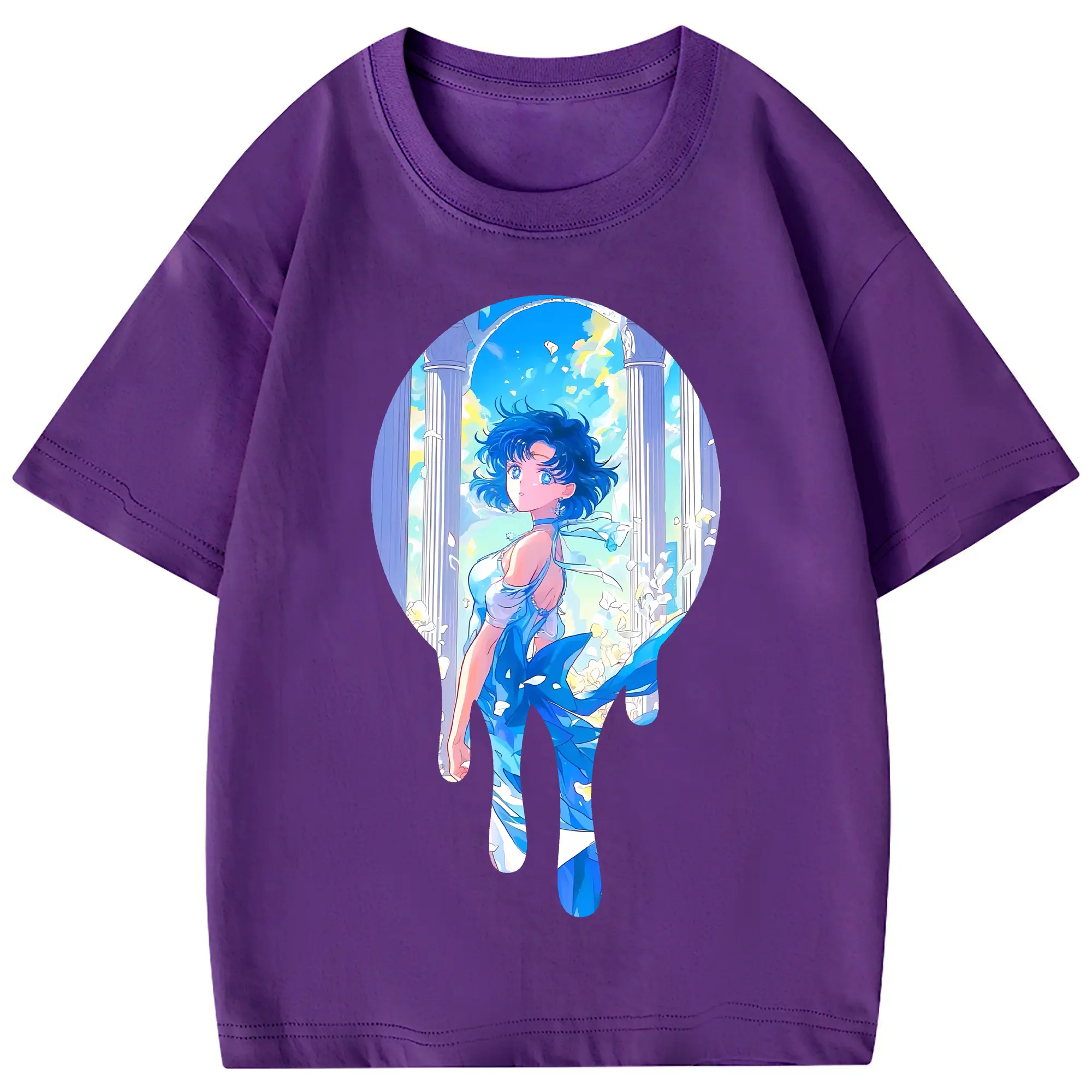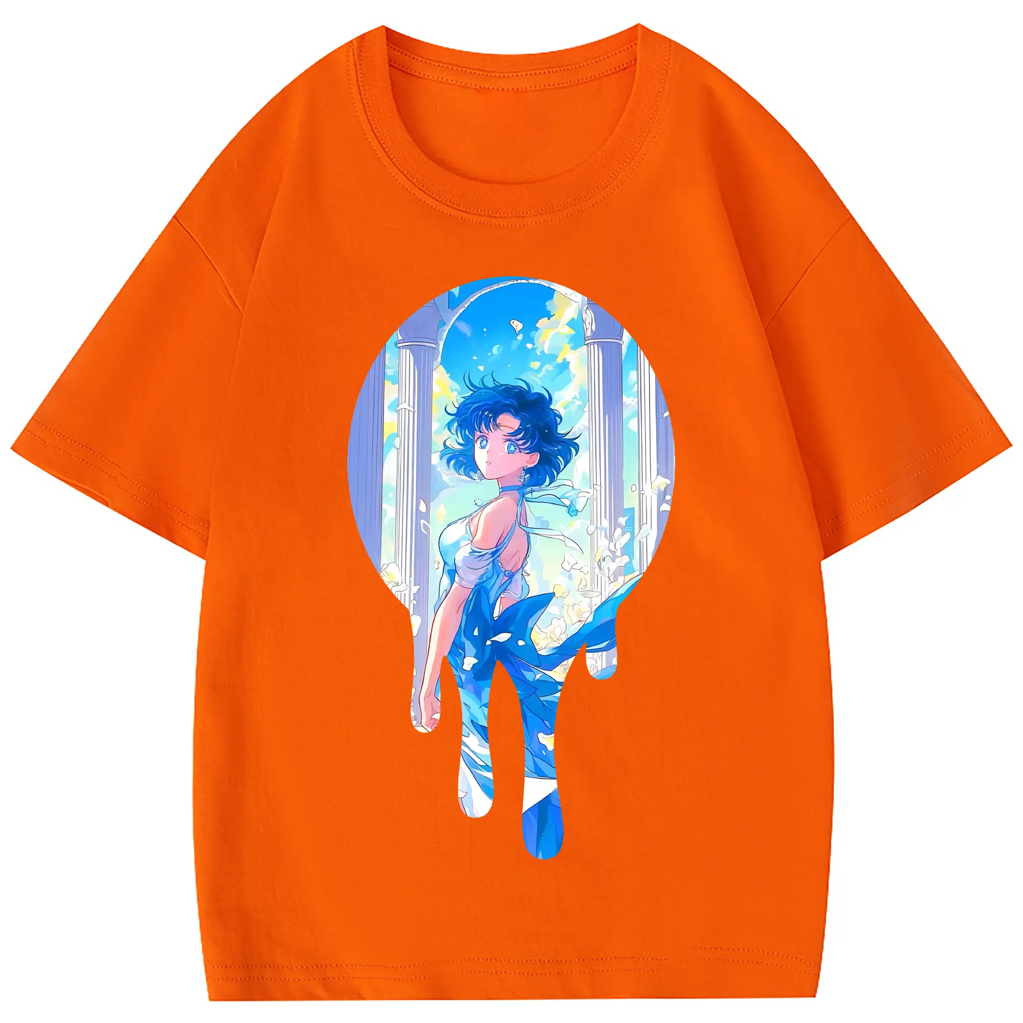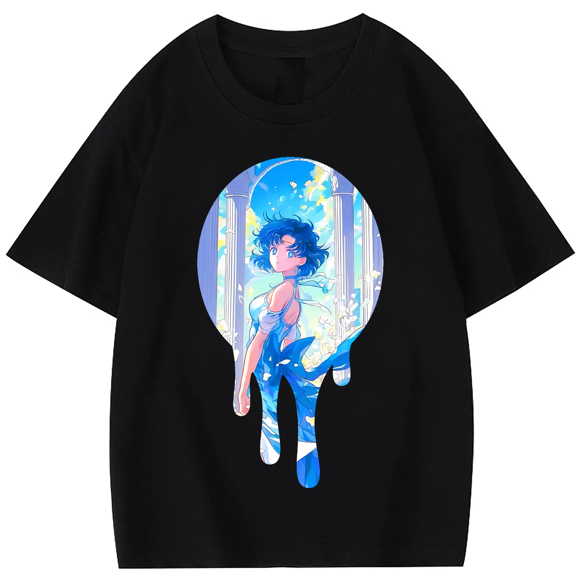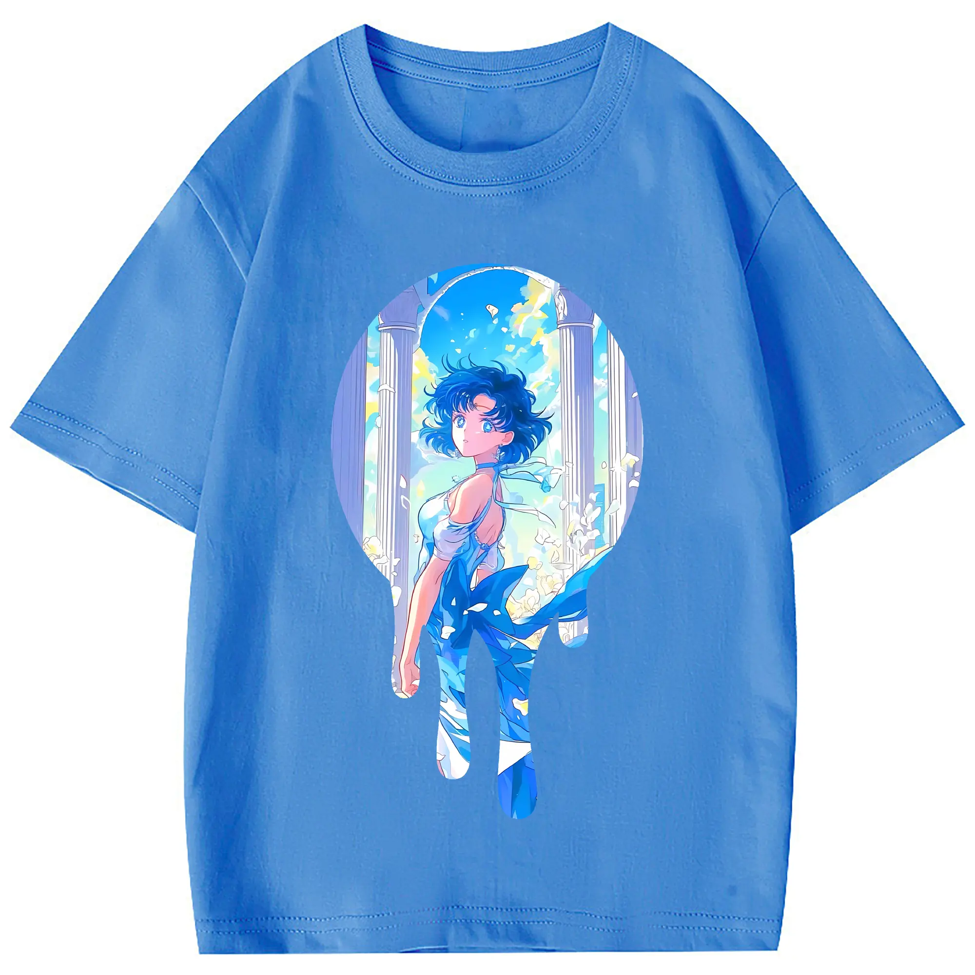 美少女戦士セーラームーン グッズ 水野 亜美 - 綿100% 半袖Tシャツ ・ フロントプリント ・ 快適 通気性 ・ 日常使い 散歩 スポーツ用