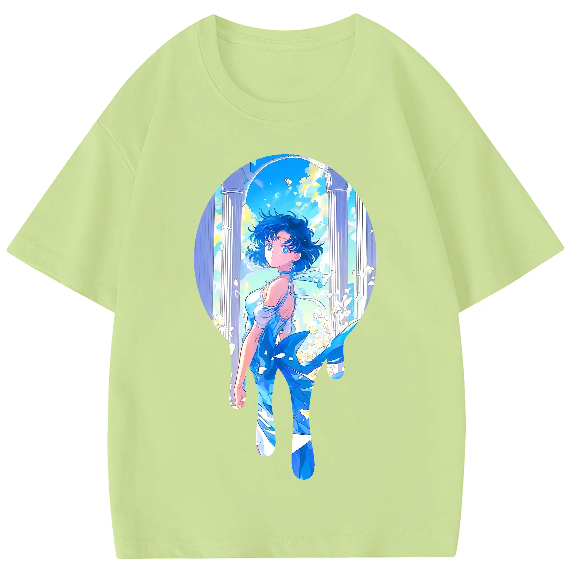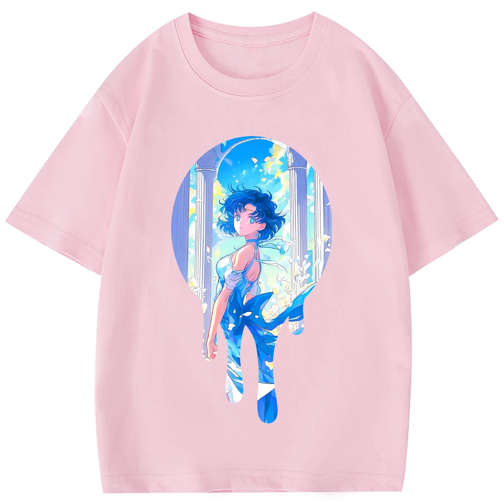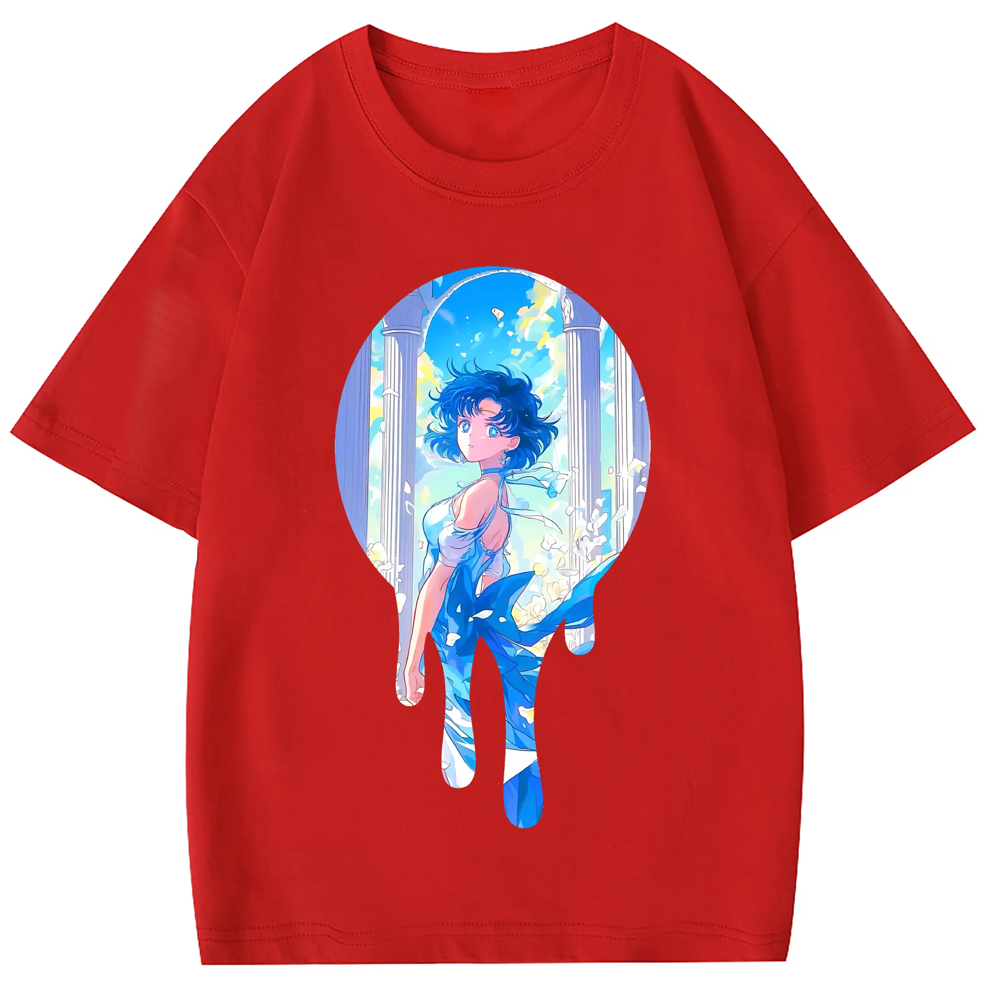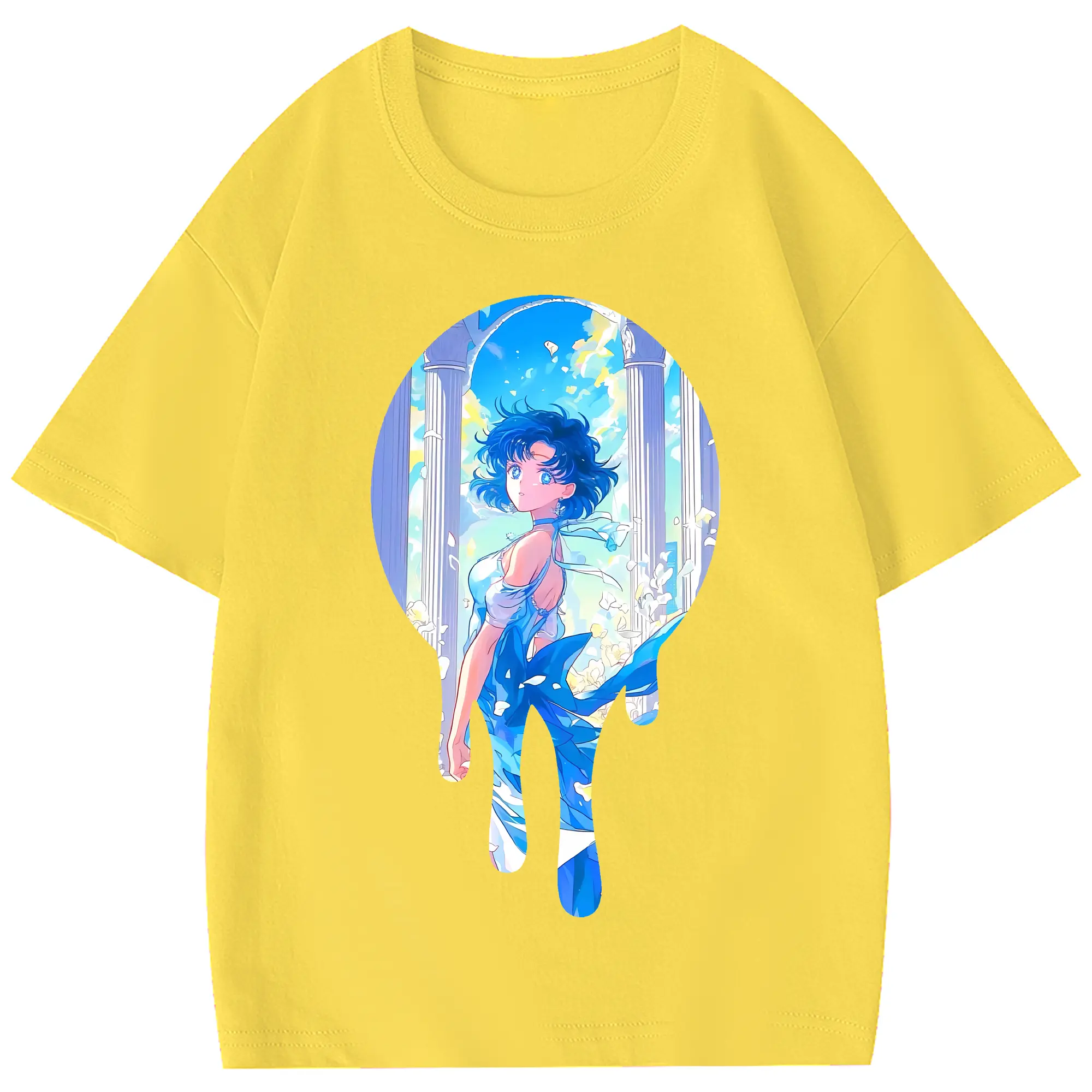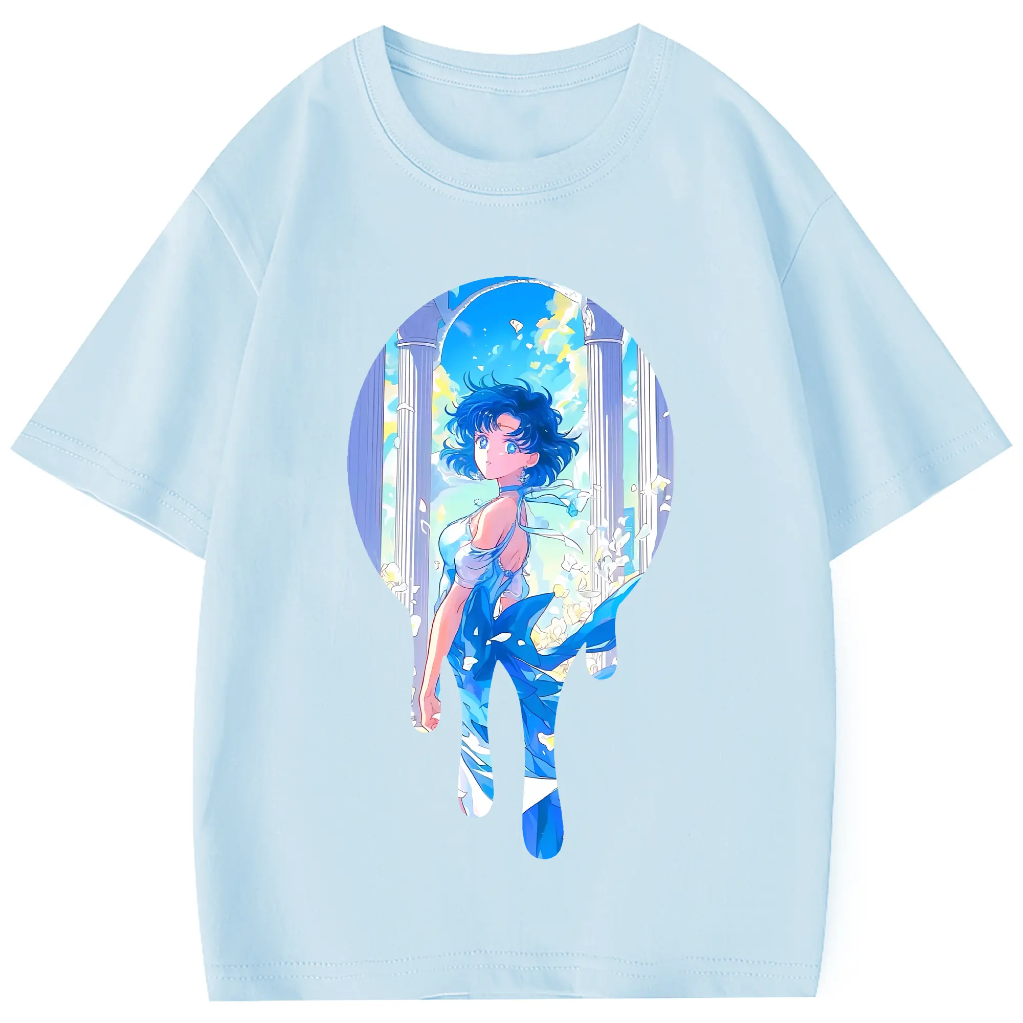 美少女戦士セーラームーン グッズ 水野 亜美 - 綿100% 半袖Tシャツ ・ フロントプリント ・ 快適 通気性 ・ 日常使い 散歩 スポーツ用