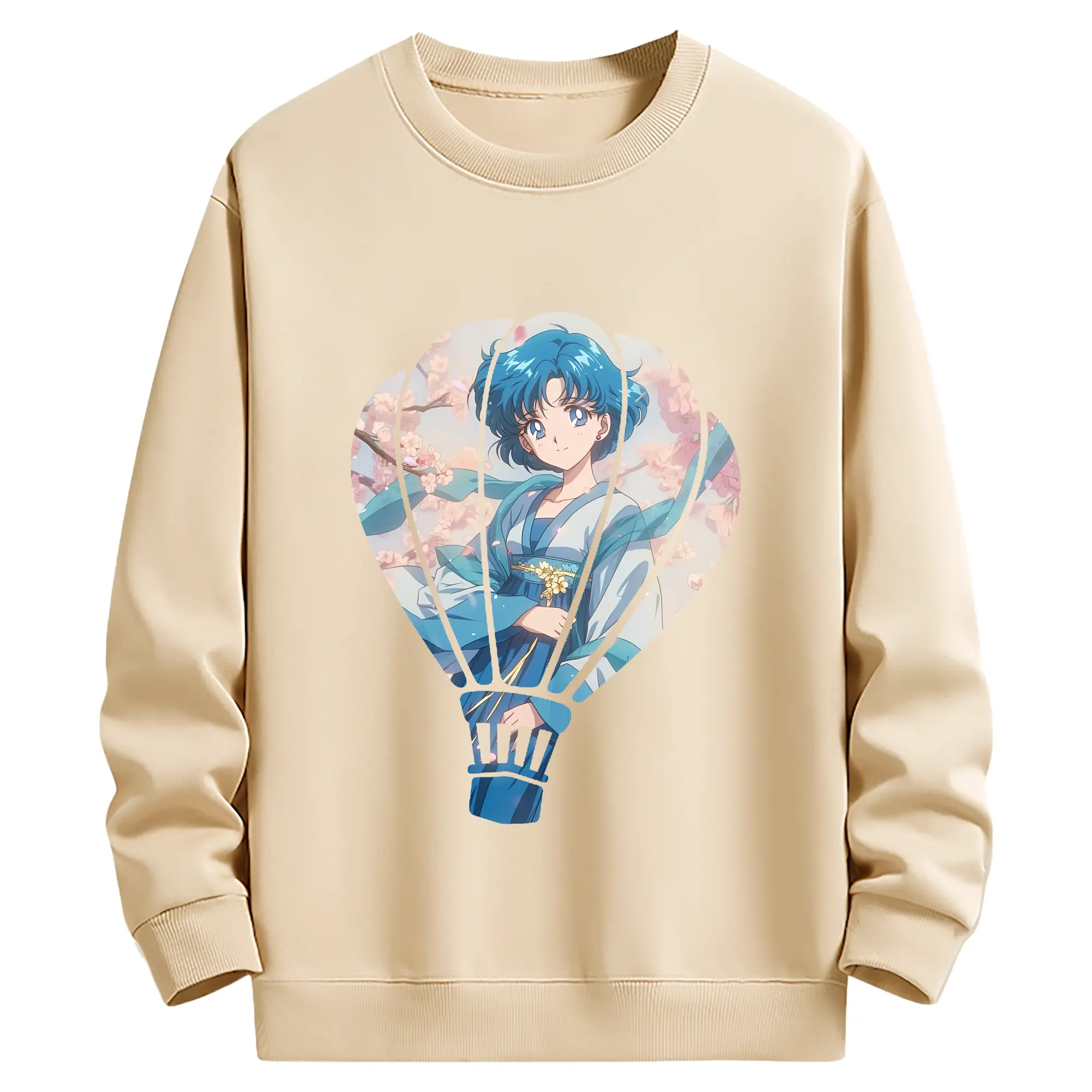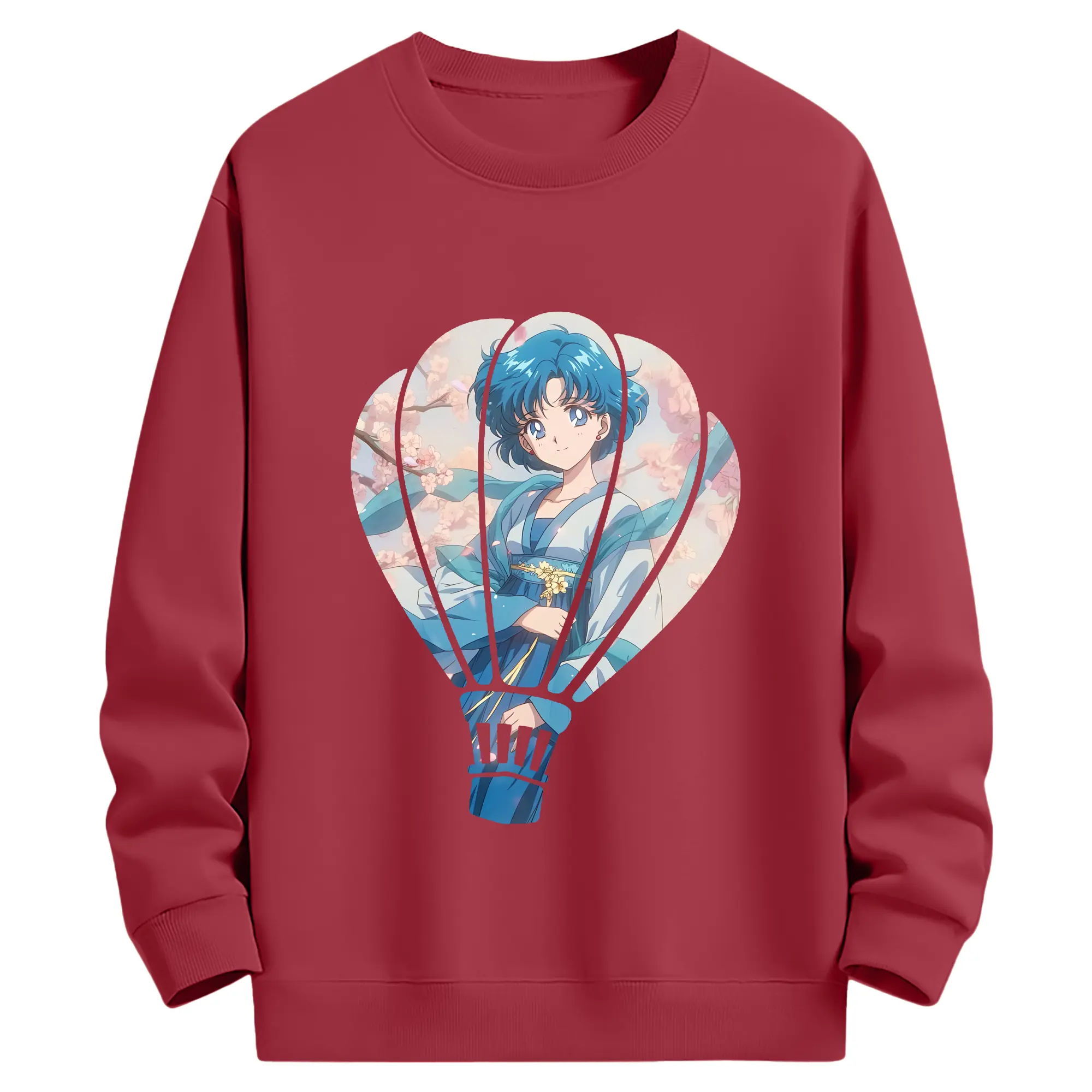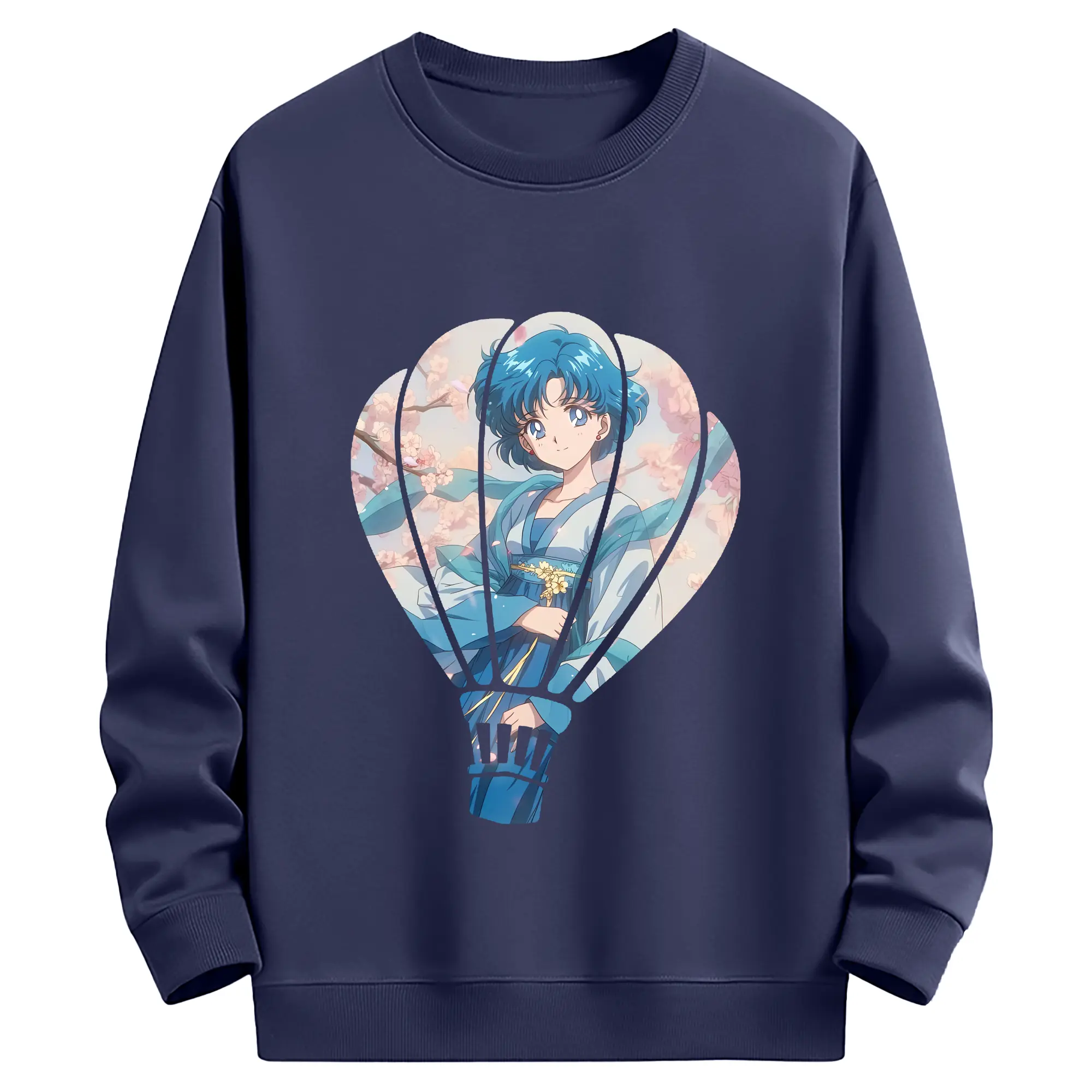 美少女戦士セーラームーン グッズ 水野 亜美 - 薄手 クルーネック スウェット 裏毛260g · ポリエステル 春秋向け カジュアル 男女兼用 · トレーナー デイリー スポーツ 散歩に最適