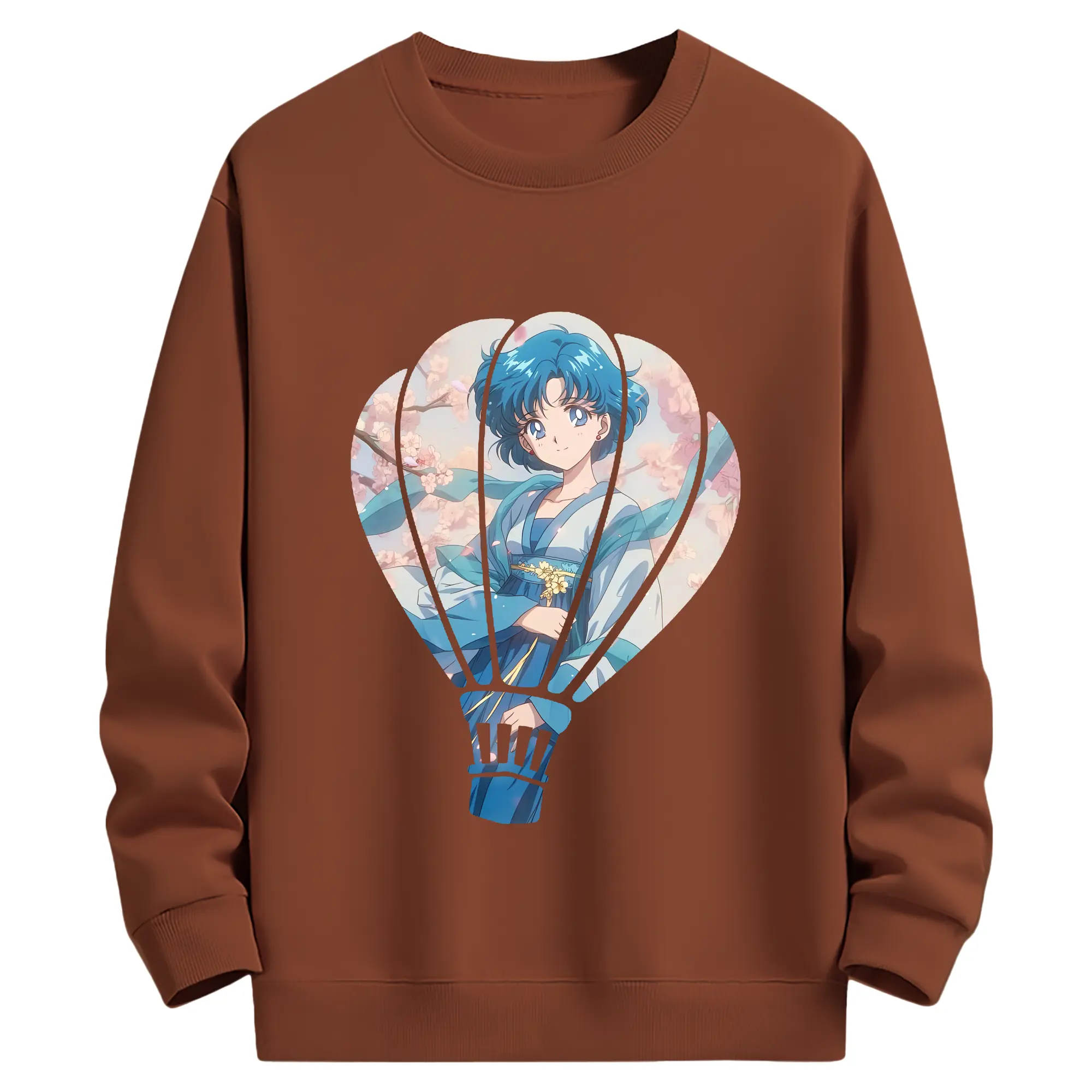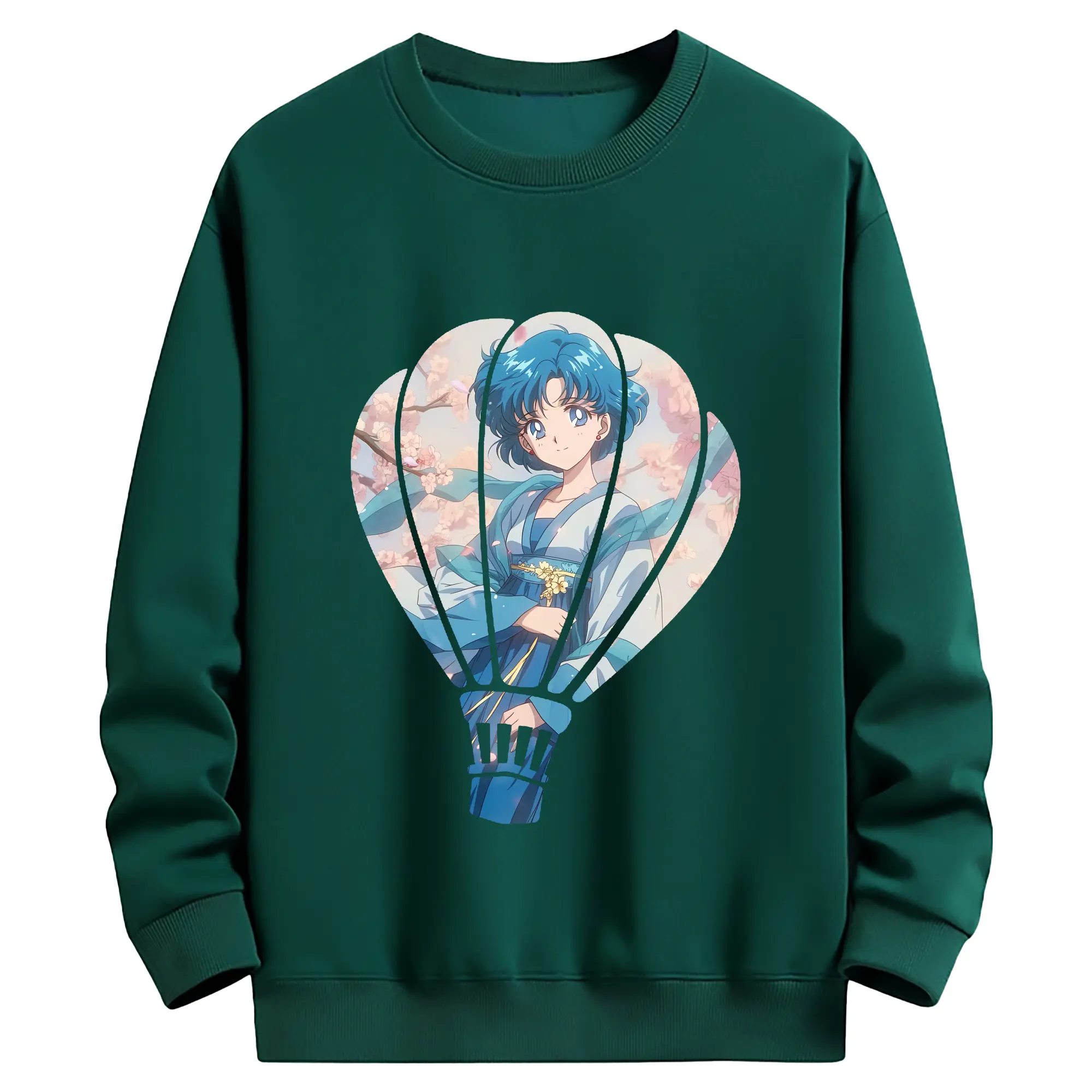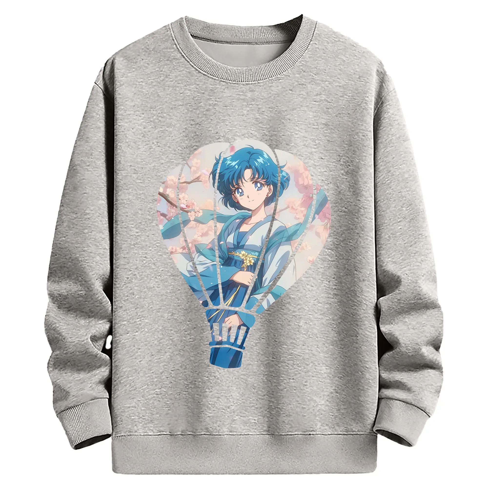 美少女戦士セーラームーン グッズ 水野 亜美 - 薄手 クルーネック スウェット 裏毛260g · ポリエステル 春秋向け カジュアル 男女兼用 · トレーナー デイリー スポーツ 散歩に最適
