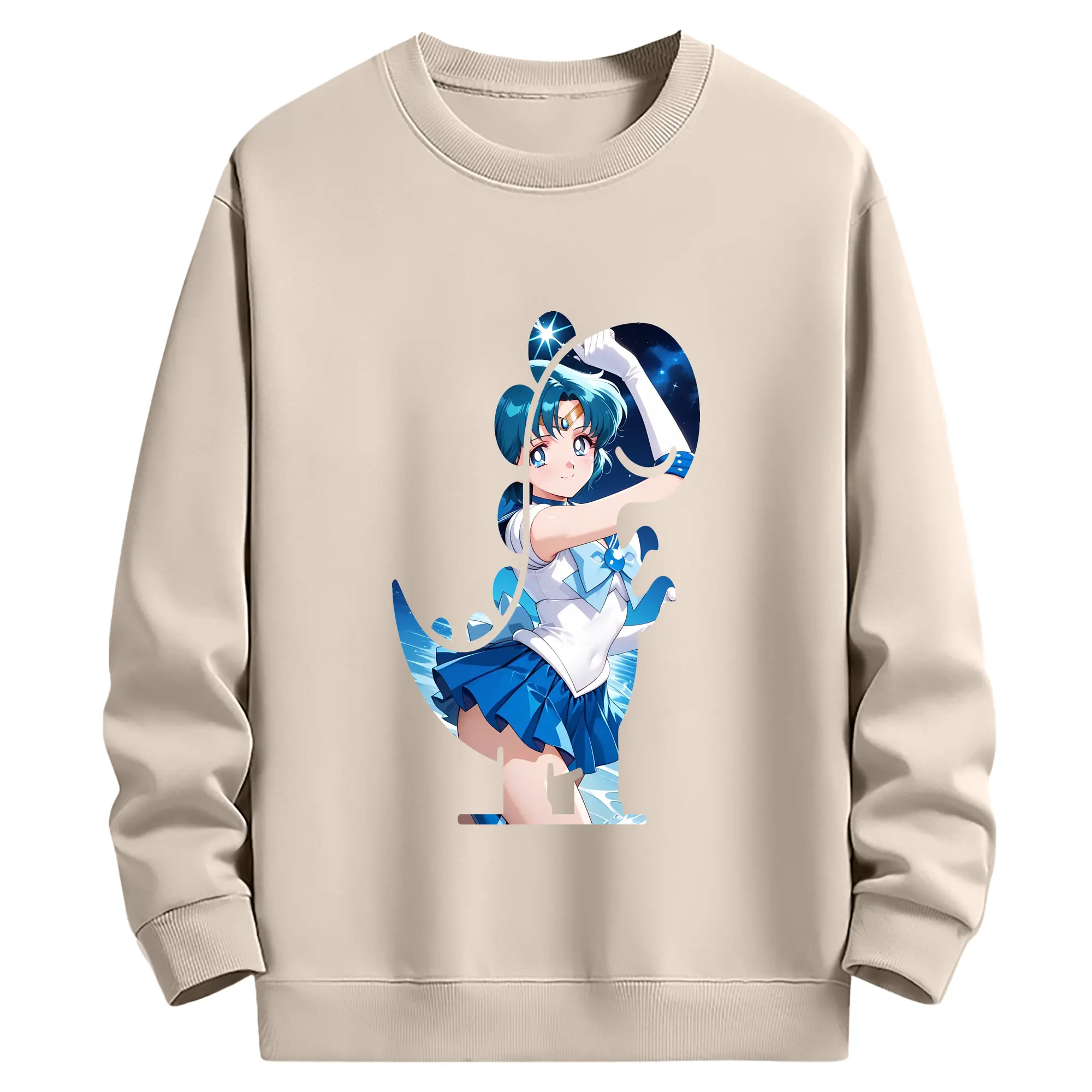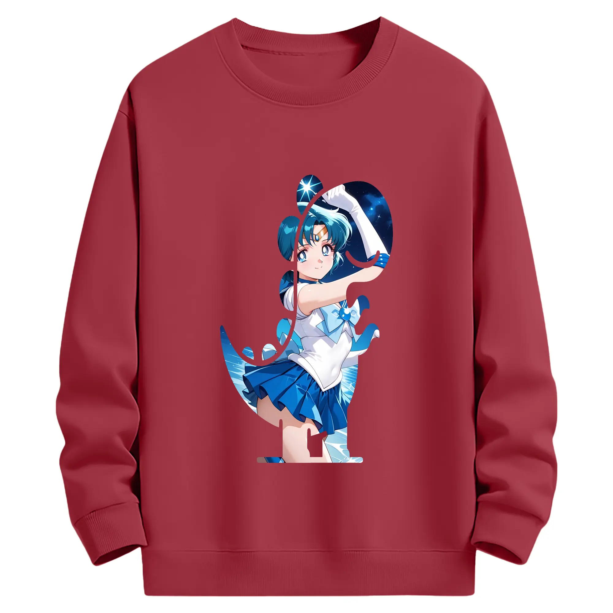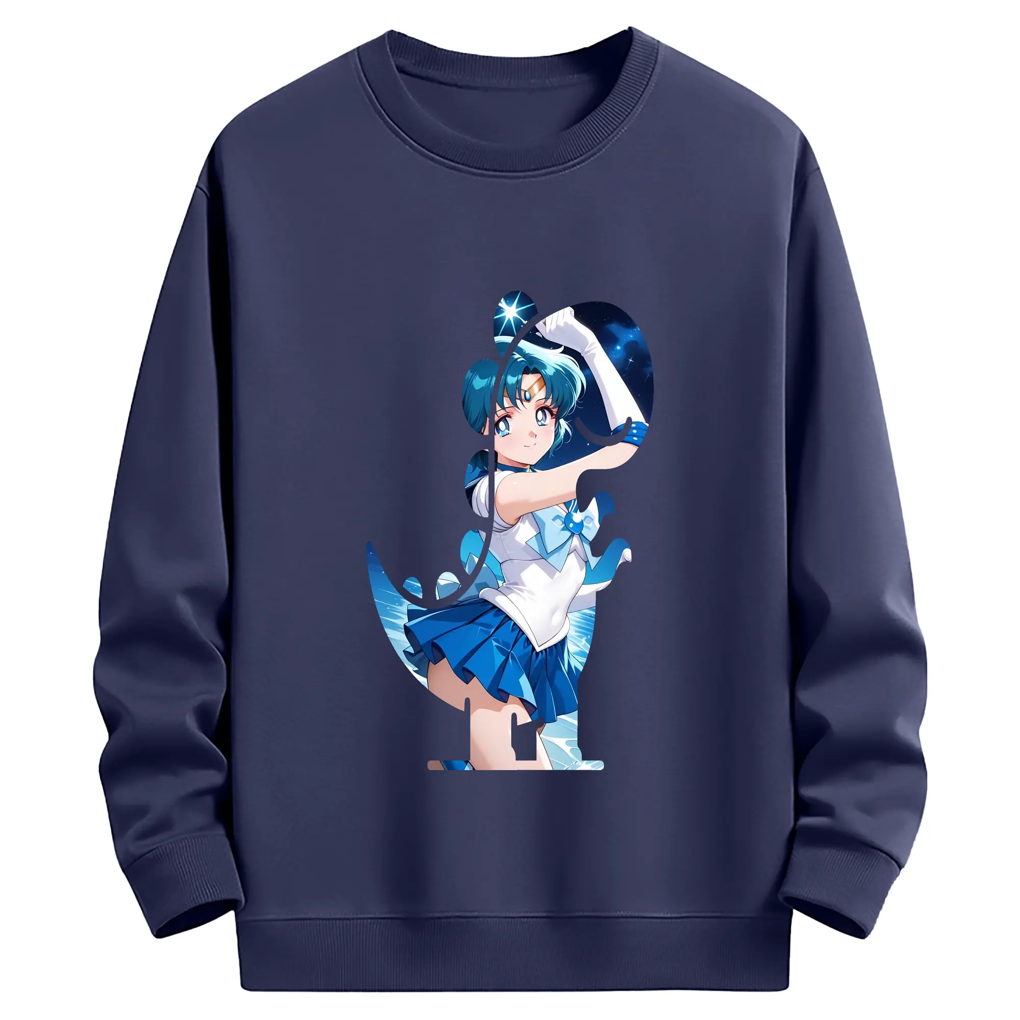 美少女戦士セーラームーン グッズ 水野 亜美 - 薄手 クルーネック スウェット 裏毛260g · ポリエステル 春秋向け カジュアル 男女兼用 · トレーナー デイリー スポーツ 散歩に最適