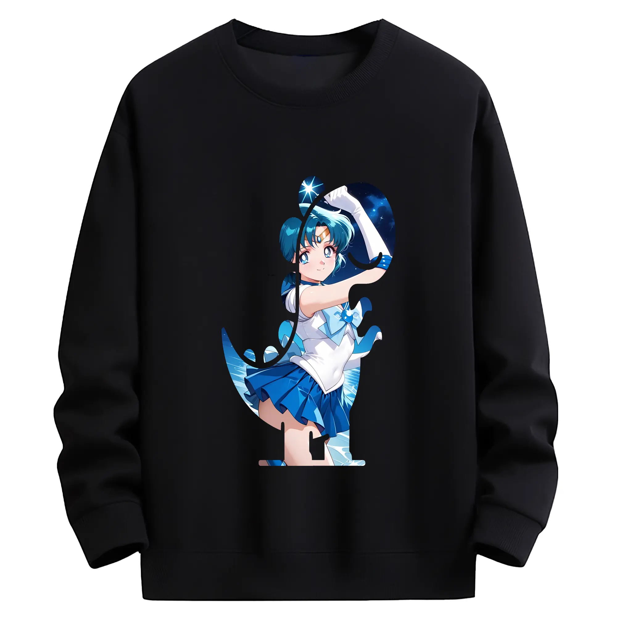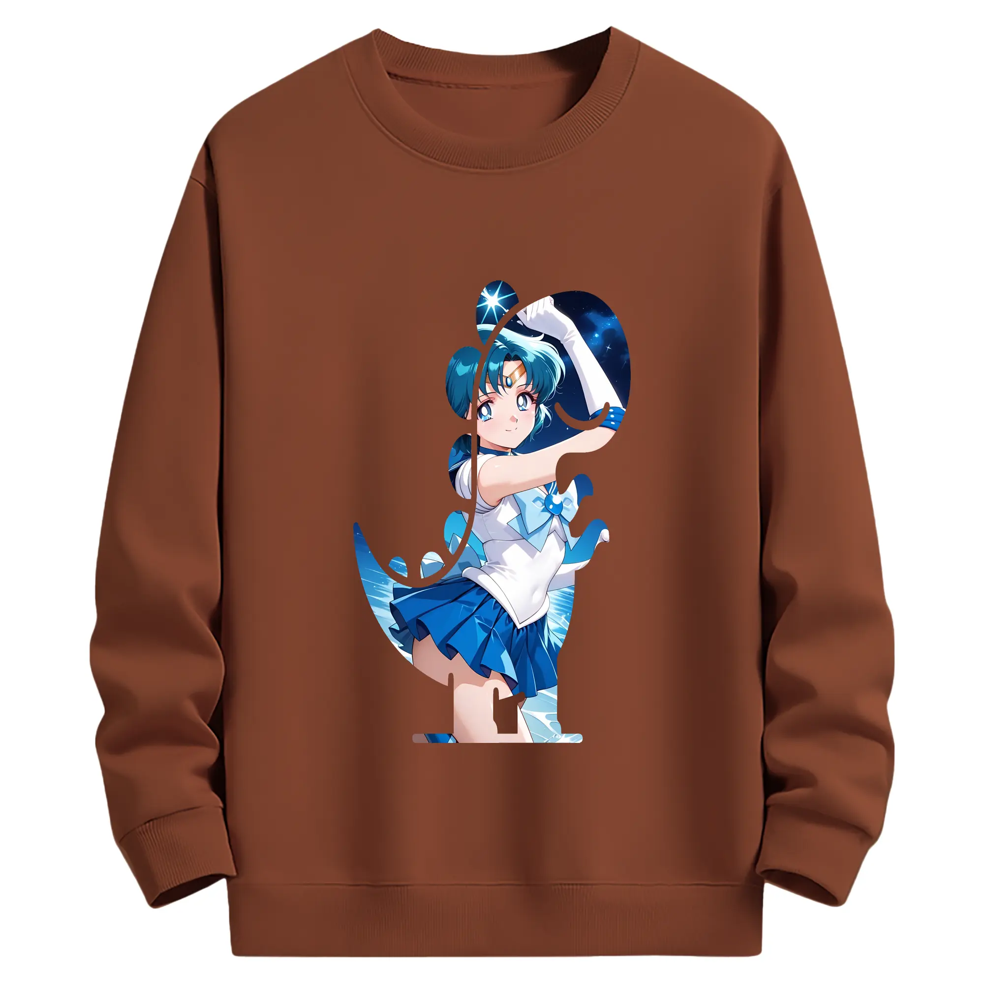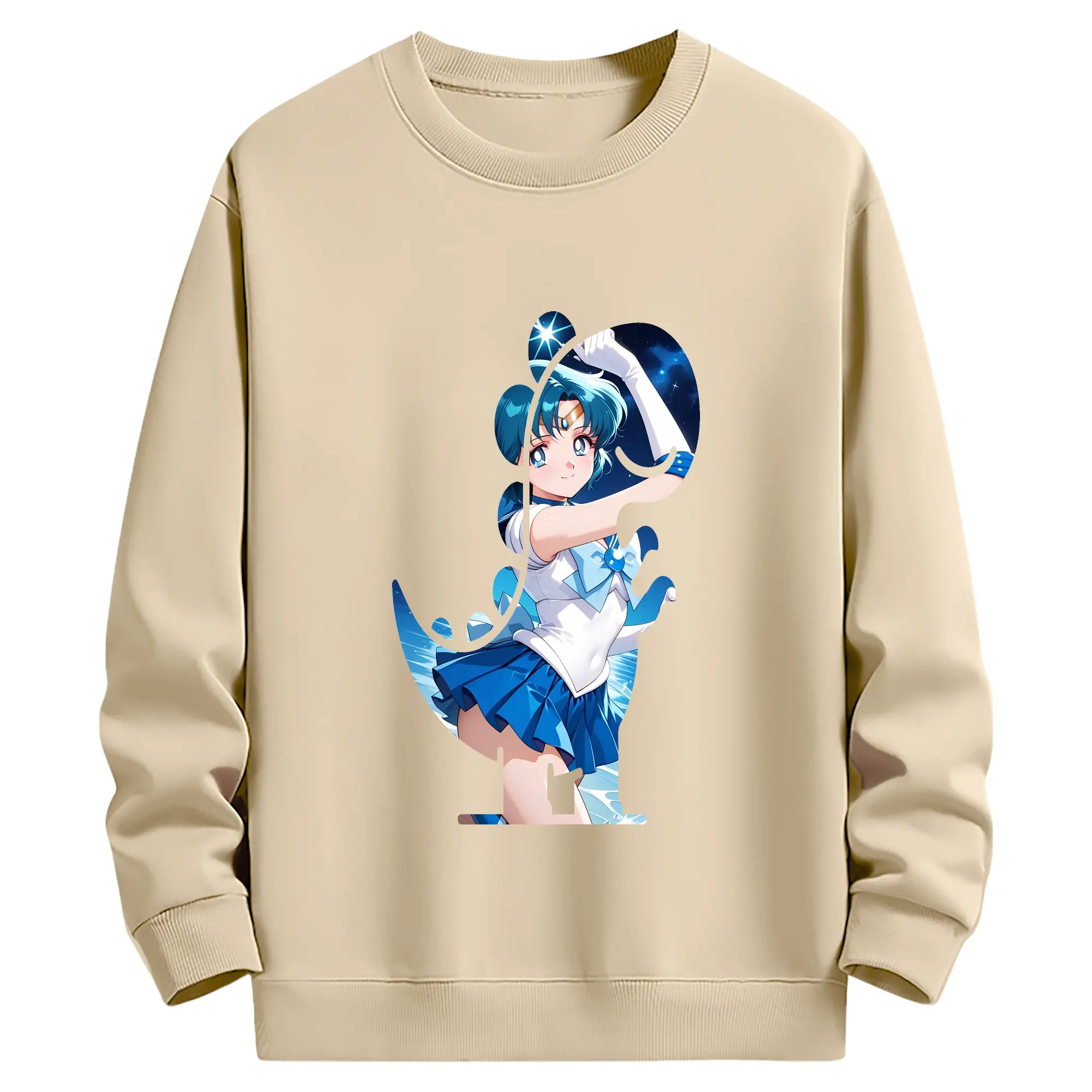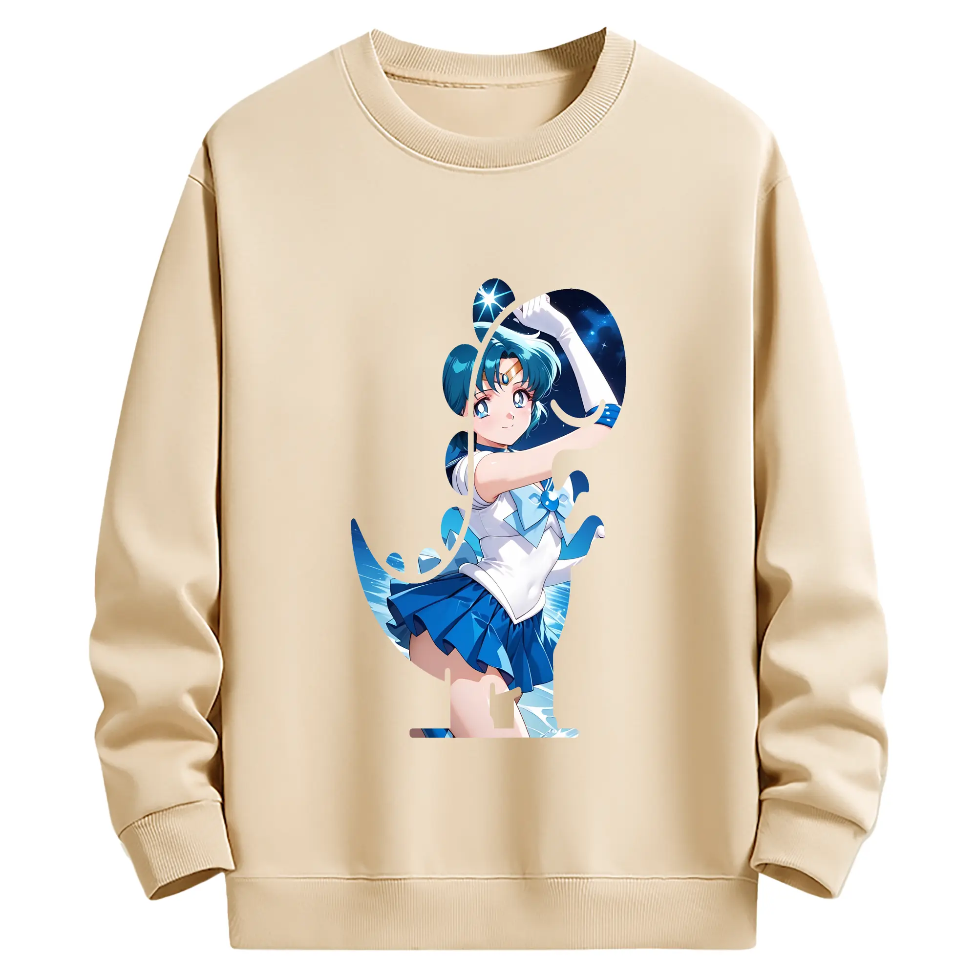美少女戦士セーラームーン グッズ 水野 亜美 - 薄手 クルーネック スウェット 裏毛260g · ポリエステル 春秋向け カジュアル 男女兼用 · トレーナー デイリー スポーツ 散歩に最適