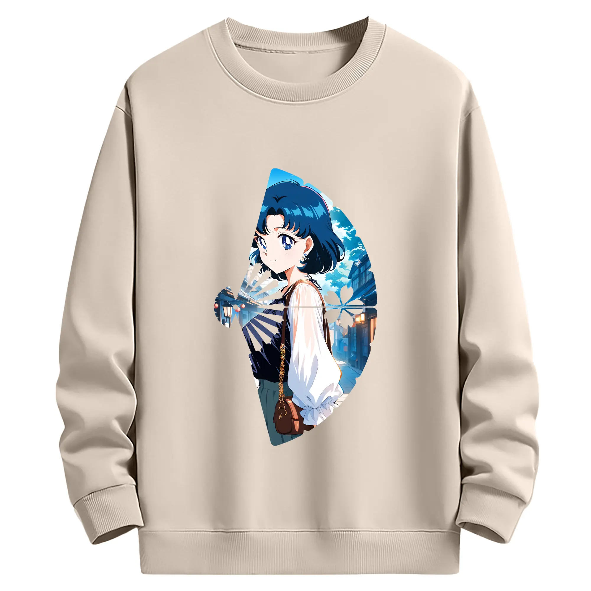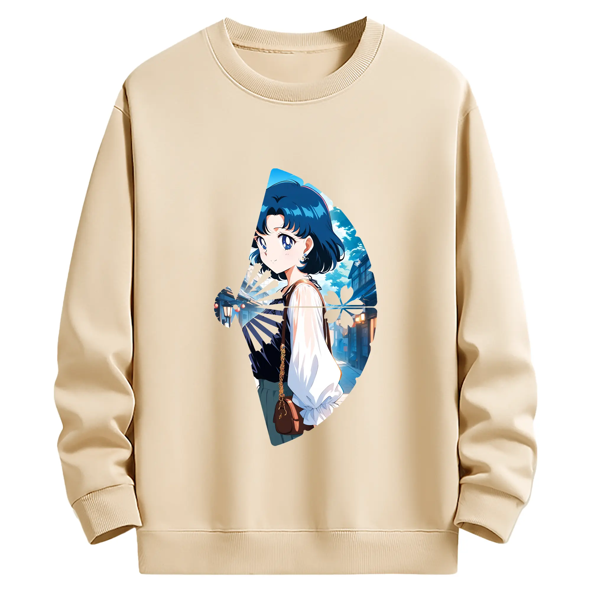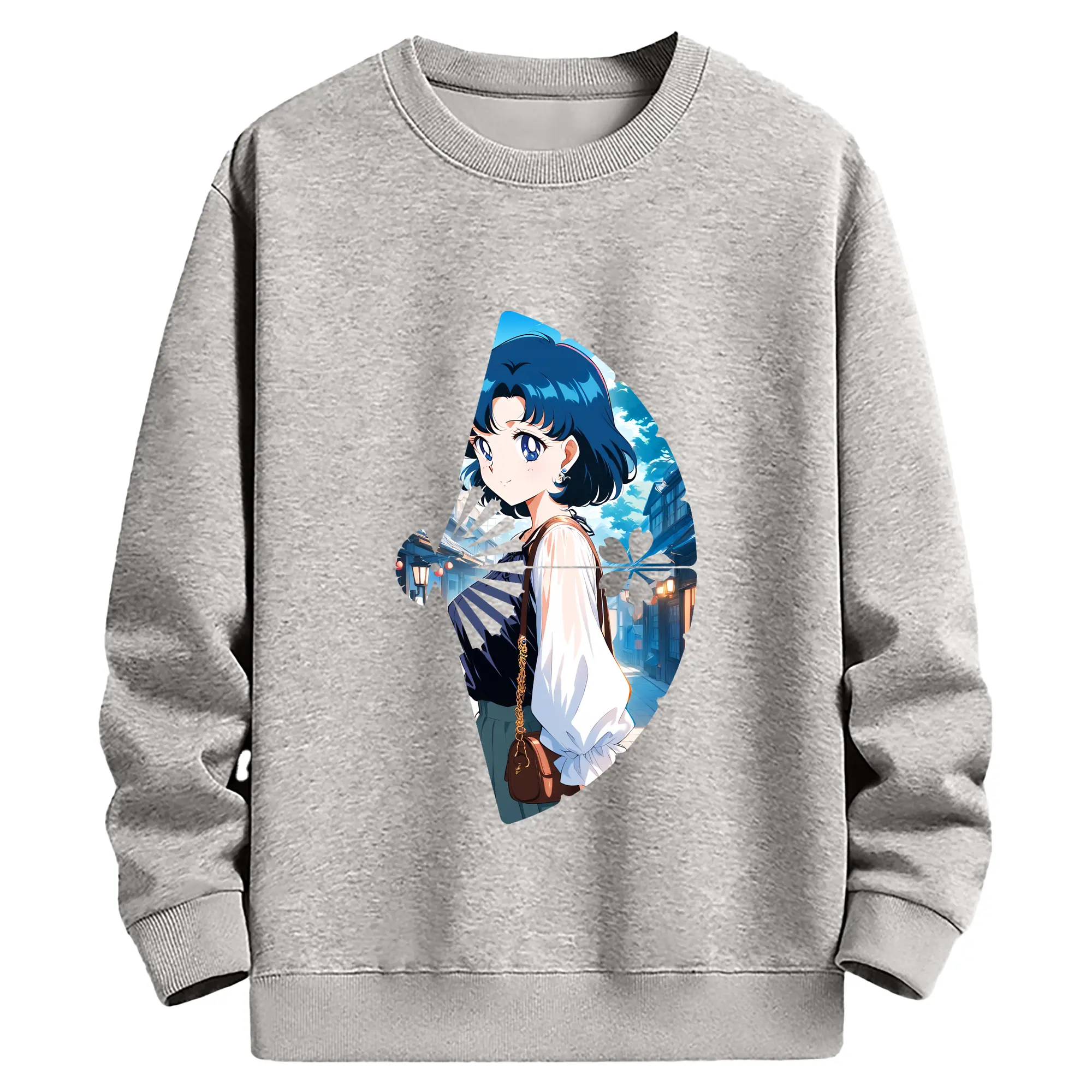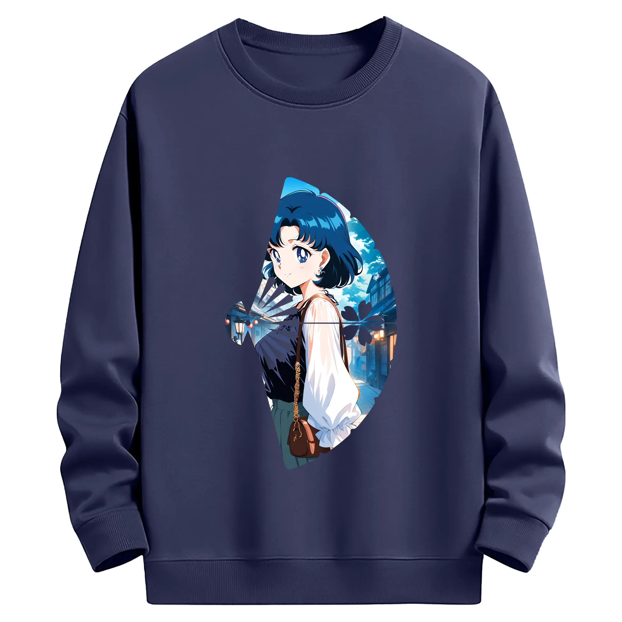 美少女戦士セーラームーン グッズ 水野 亜美 - 薄手 クルーネック スウェット 裏毛260g · ポリエステル 春秋向け カジュアル 男女兼用 · トレーナー デイリー スポーツ 散歩に最適