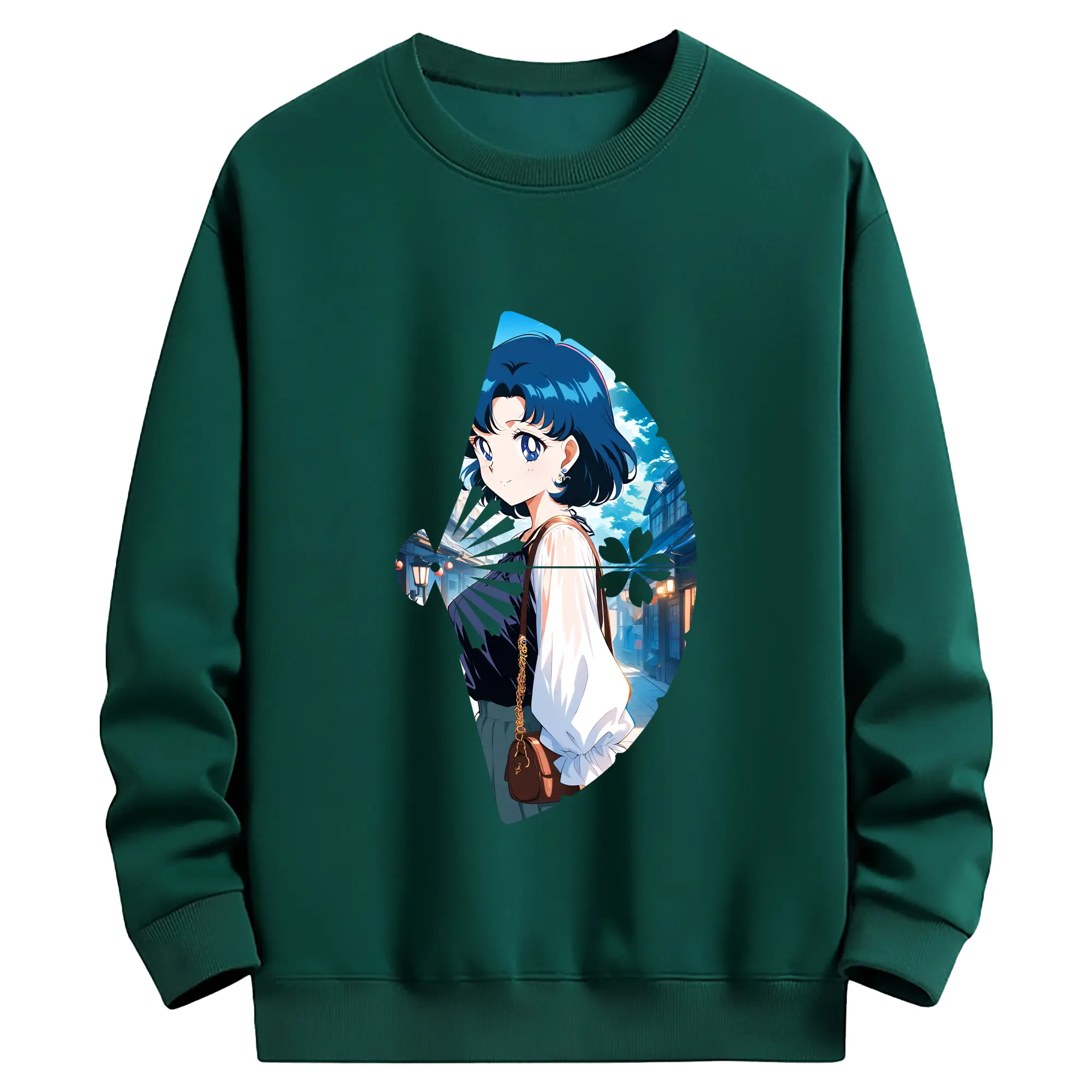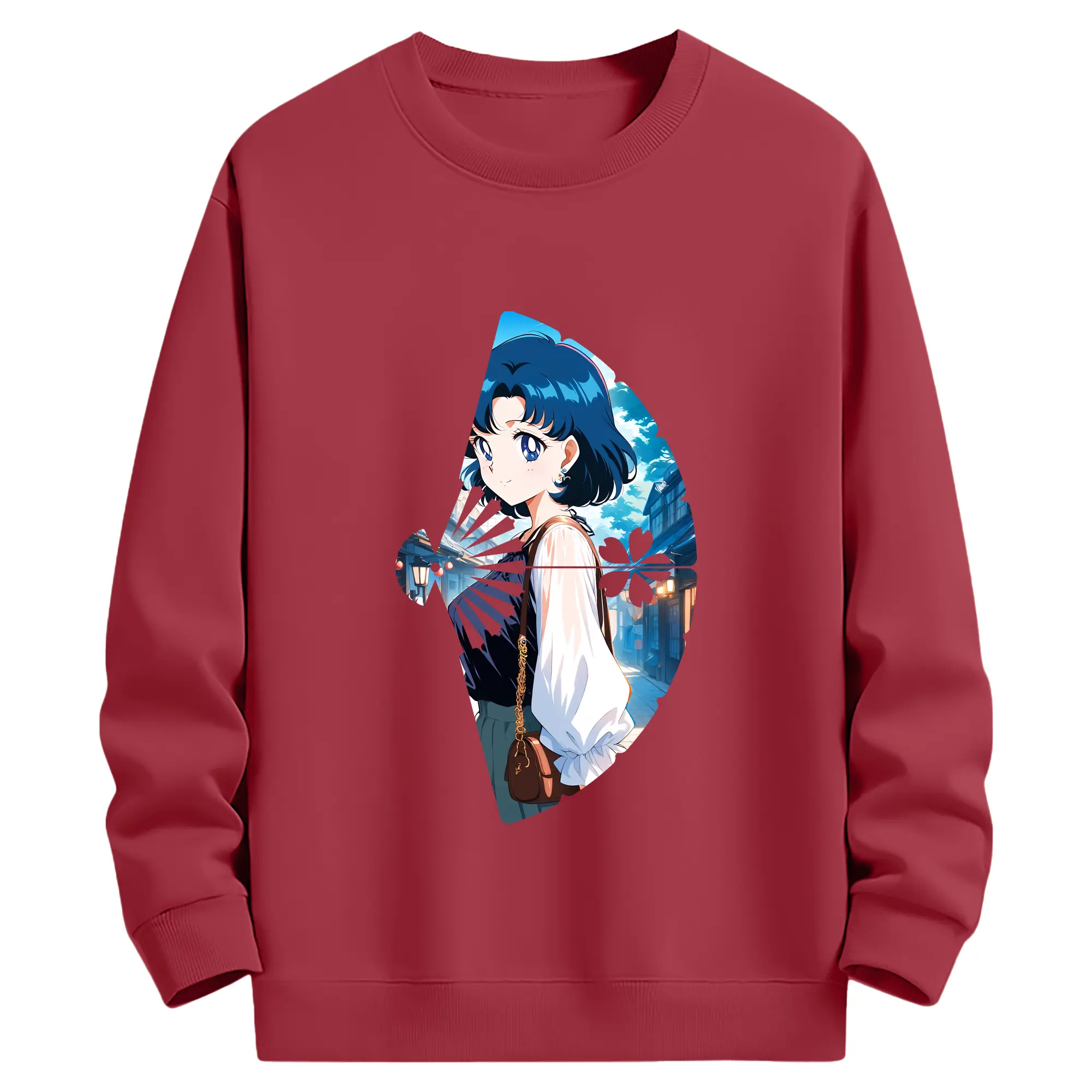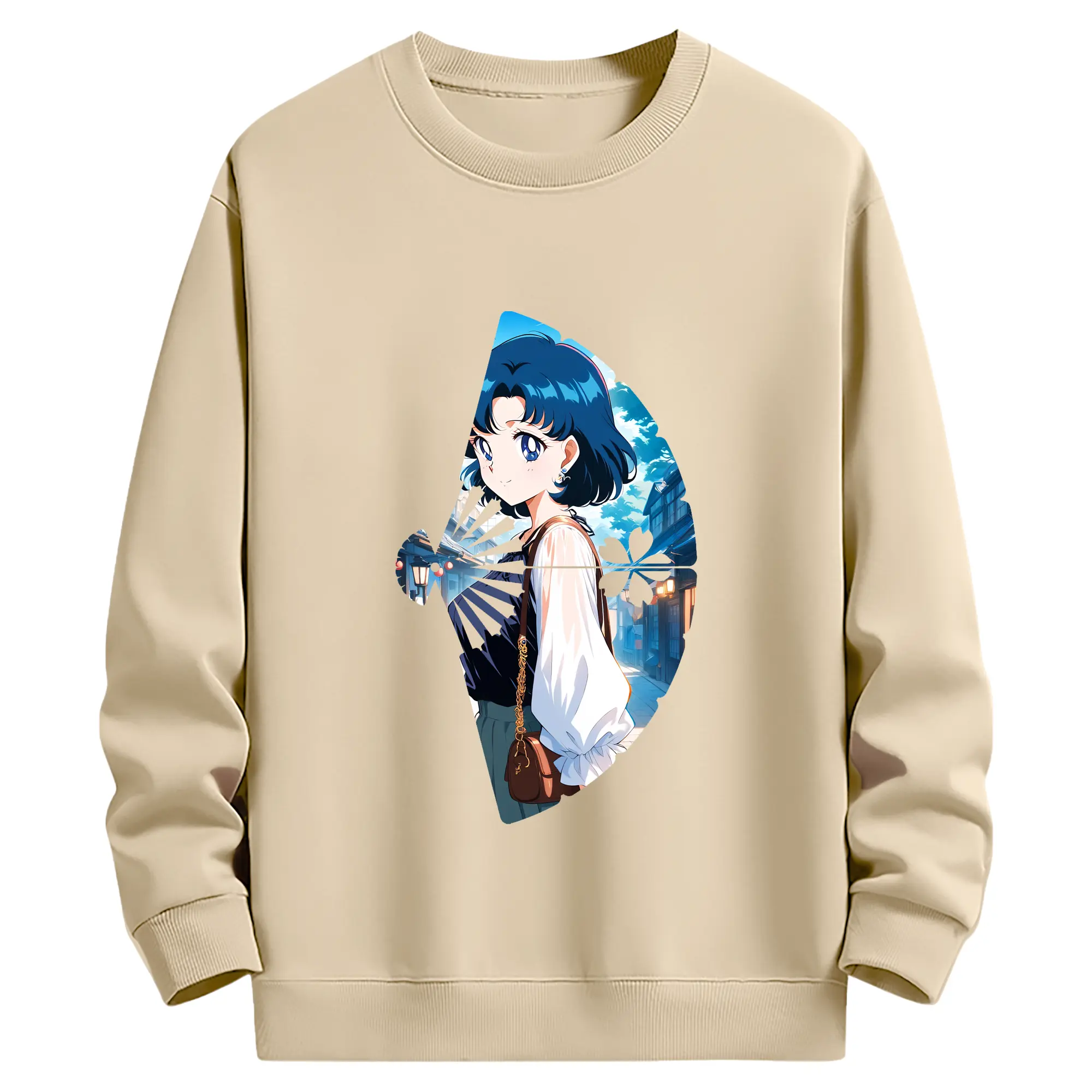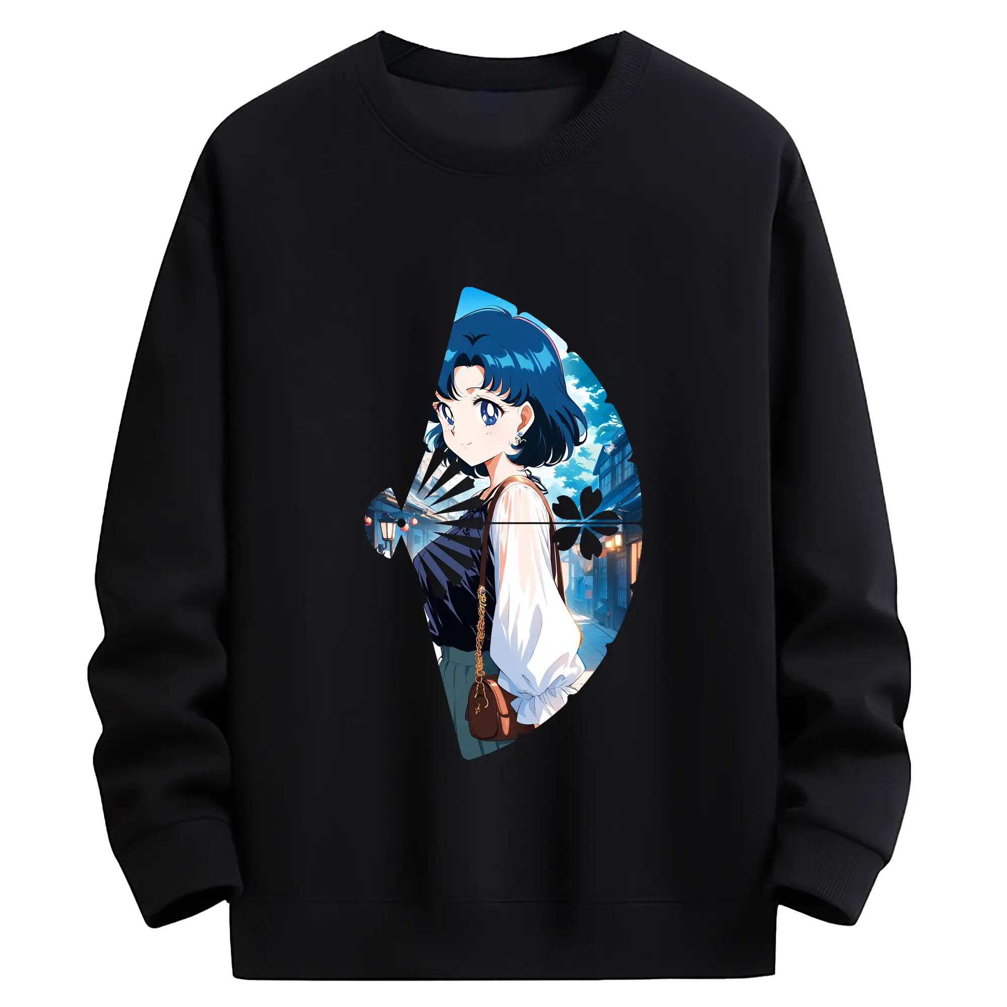 美少女戦士セーラームーン グッズ 水野 亜美 - 薄手 クルーネック スウェット 裏毛260g · ポリエステル 春秋向け カジュアル 男女兼用 · トレーナー デイリー スポーツ 散歩に最適