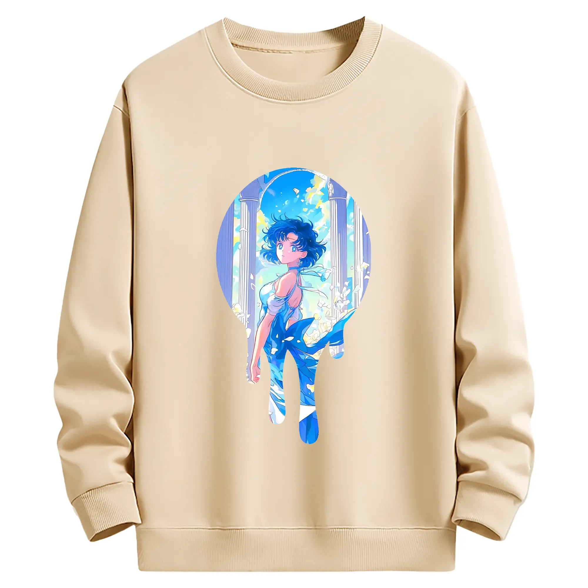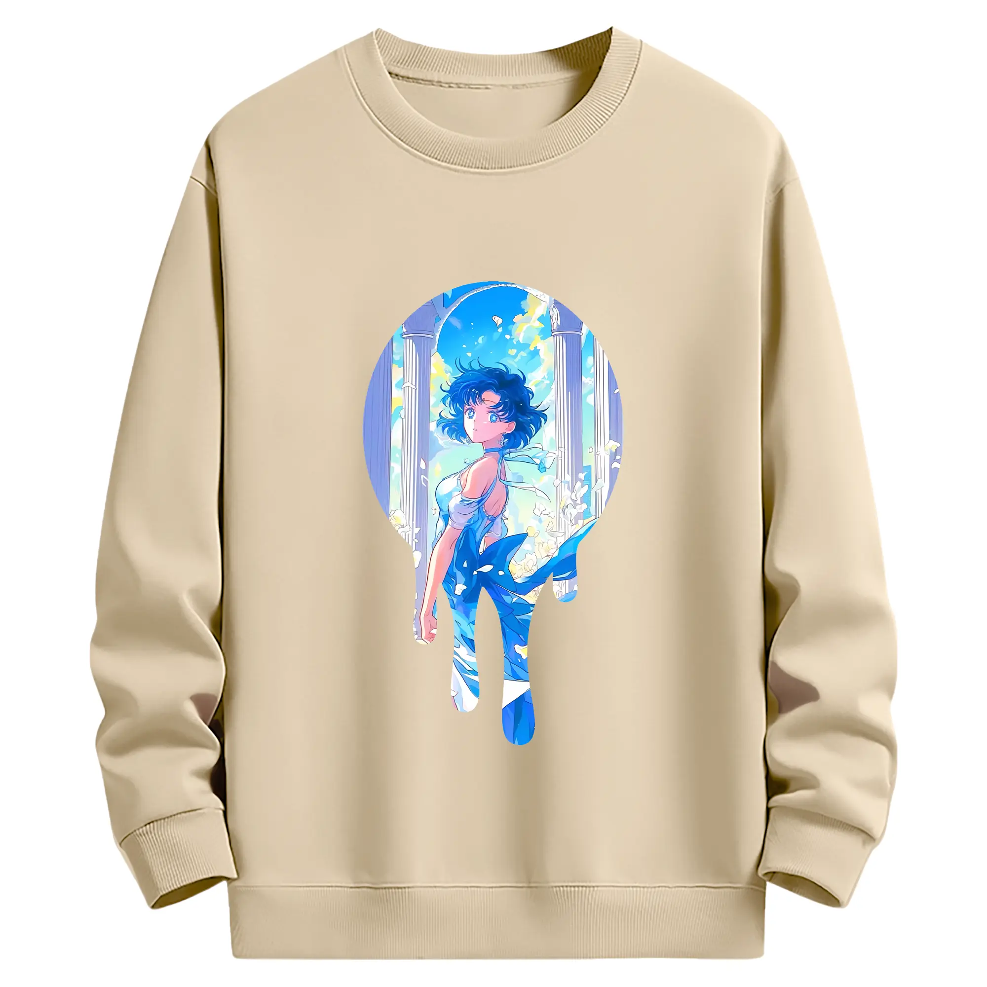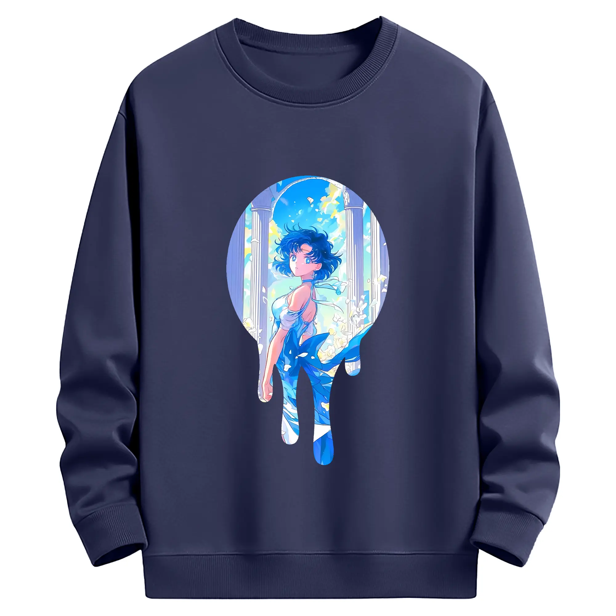 美少女戦士セーラームーン グッズ 水野 亜美 - 薄手 クルーネック スウェット 裏毛260g · ポリエステル 春秋向け カジュアル 男女兼用 · トレーナー デイリー スポーツ 散歩に最適