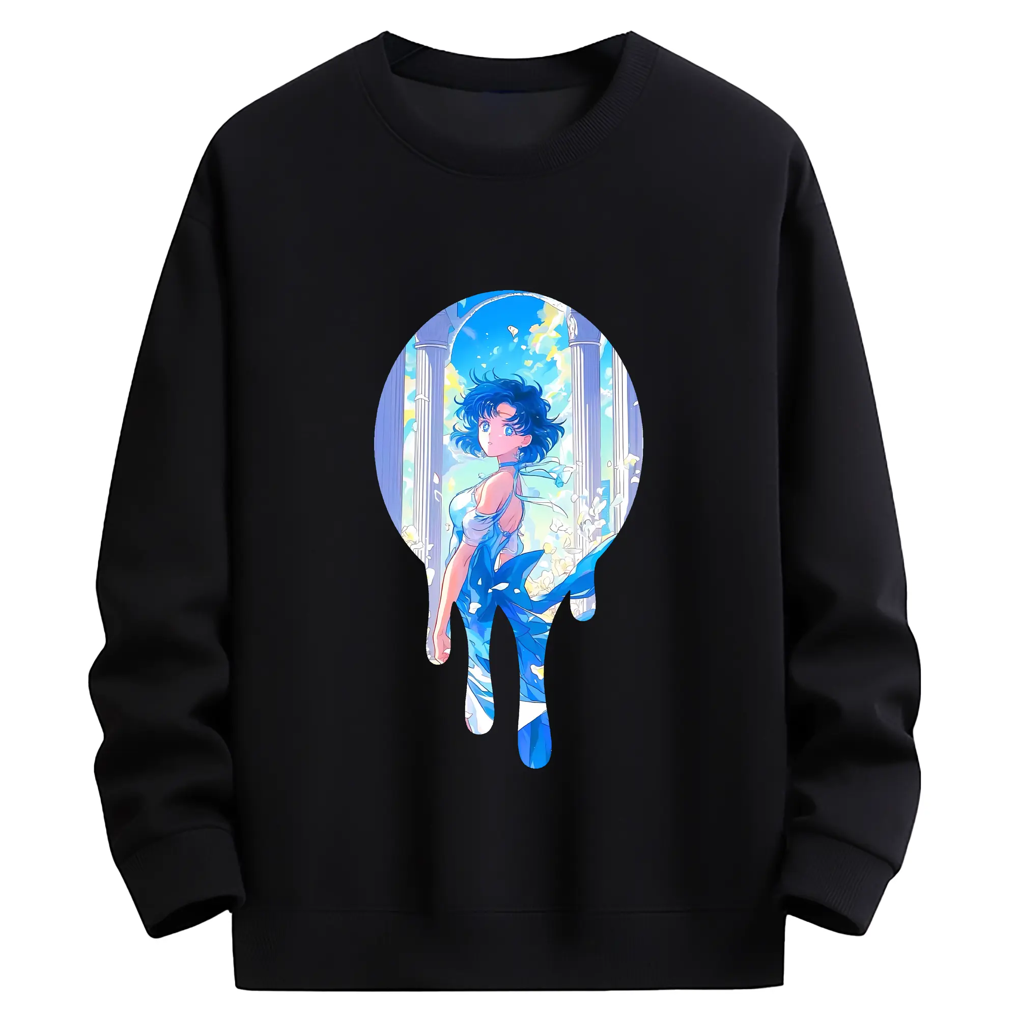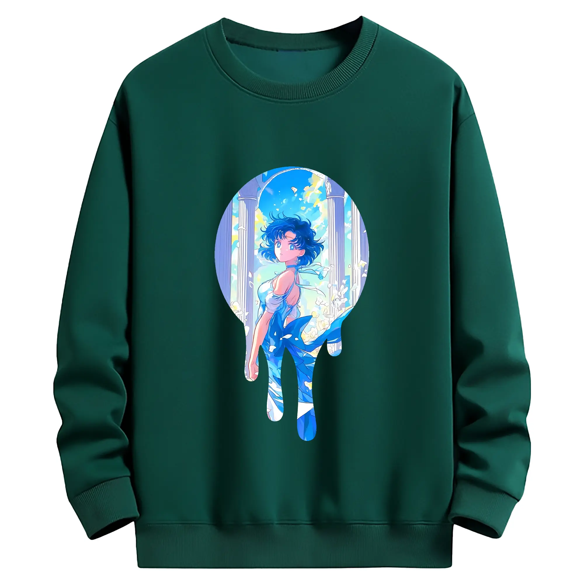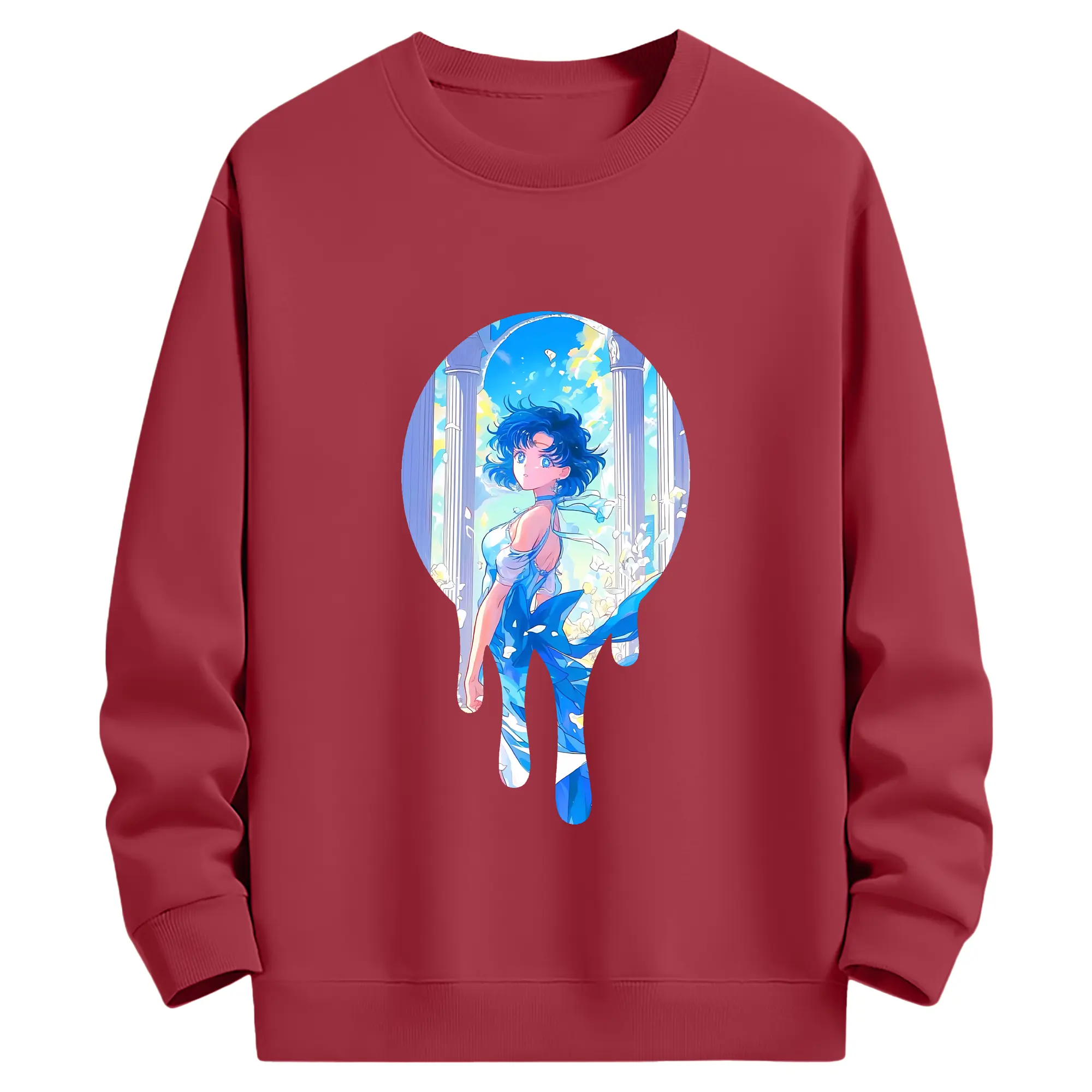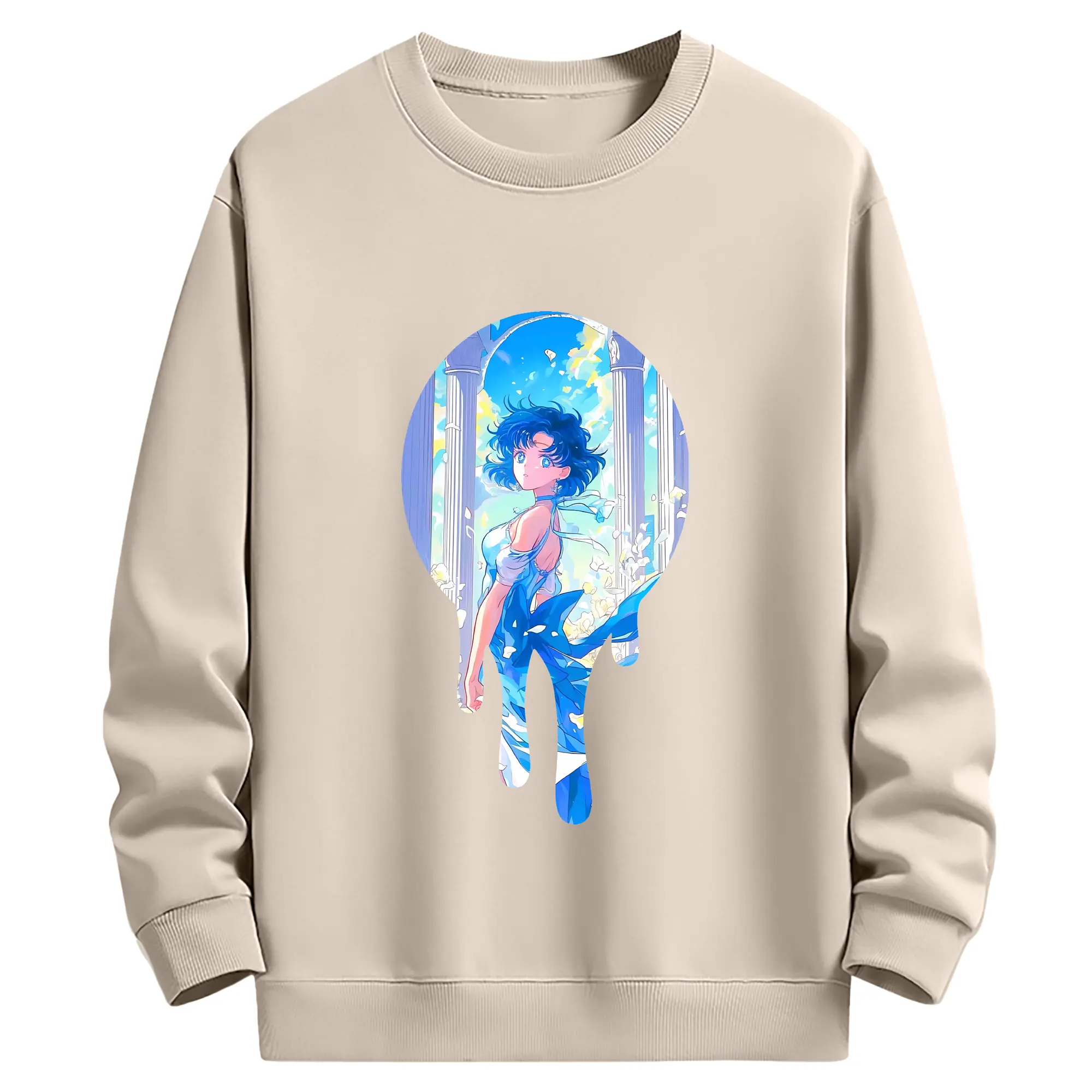 美少女戦士セーラームーン グッズ 水野 亜美 - 薄手 クルーネック スウェット 裏毛260g · ポリエステル 春秋向け カジュアル 男女兼用 · トレーナー デイリー スポーツ 散歩に最適