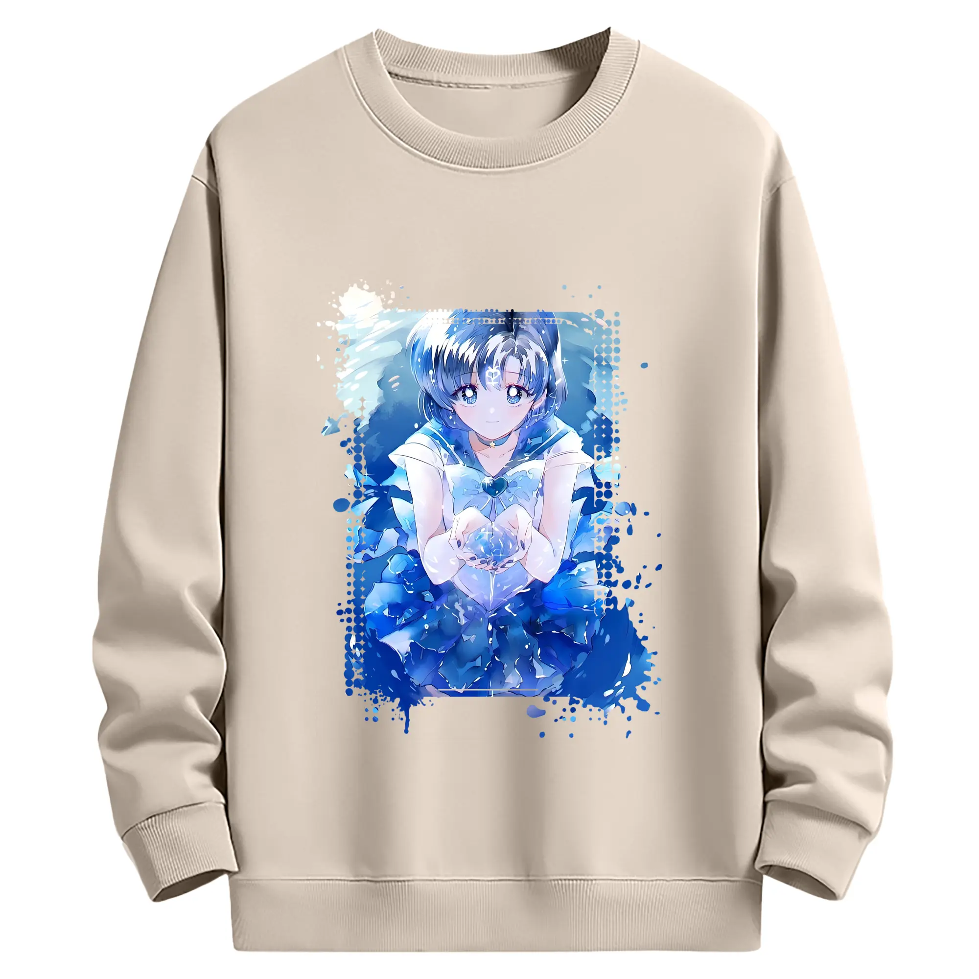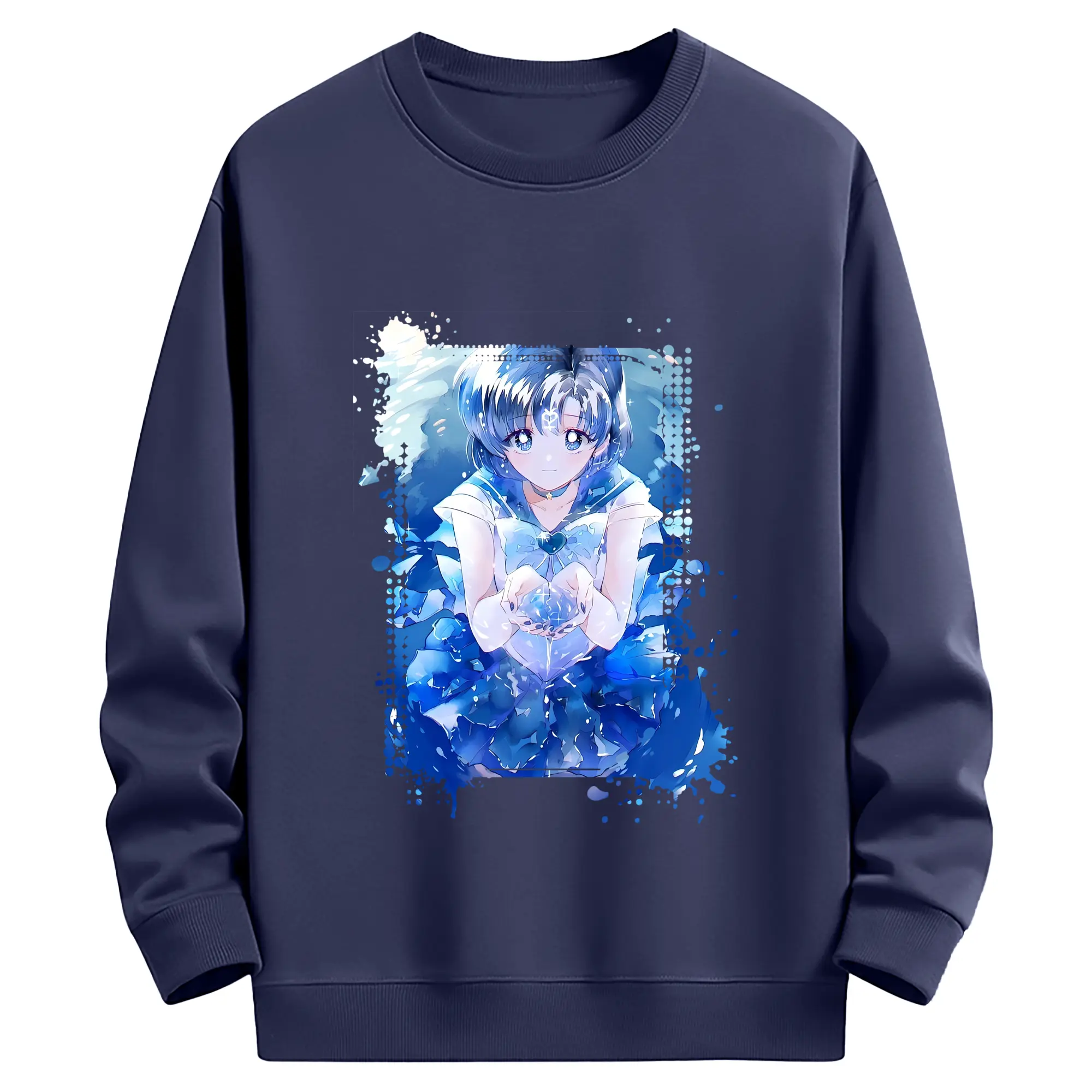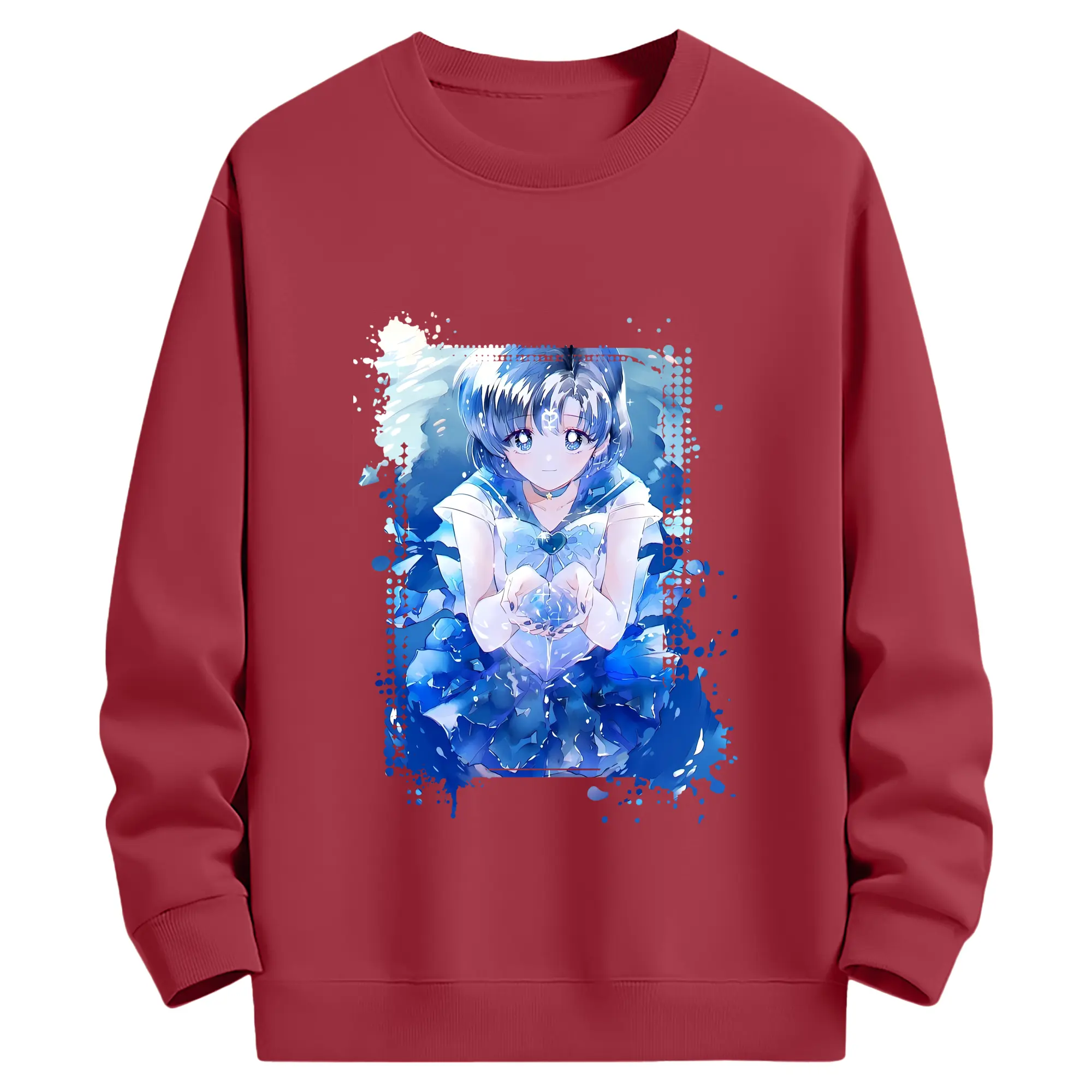 美少女戦士セーラームーン グッズ 水野 亜美 - 薄手 クルーネック スウェット 裏毛260g · ポリエステル 春秋向け カジュアル 男女兼用 · トレーナー デイリー スポーツ 散歩に最適