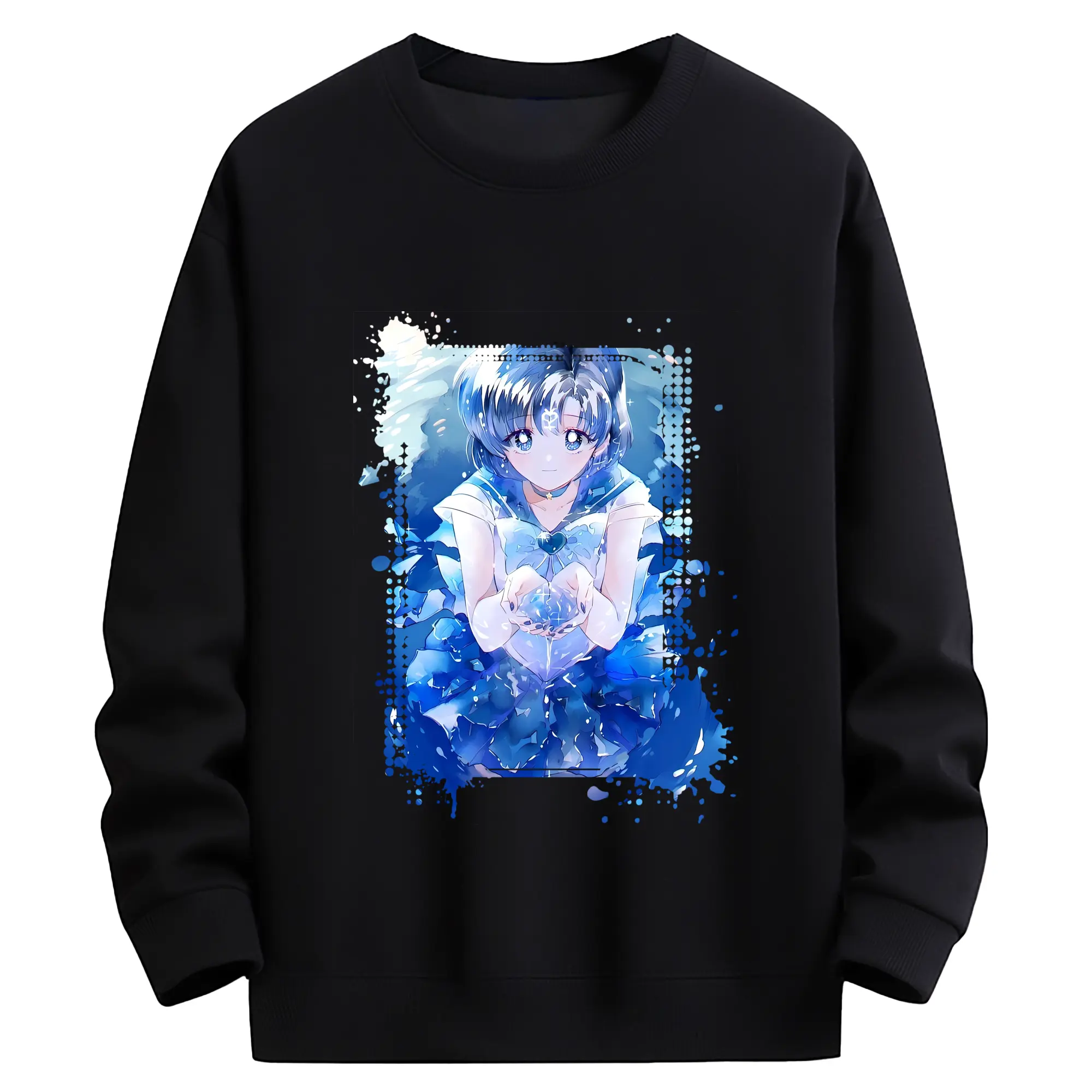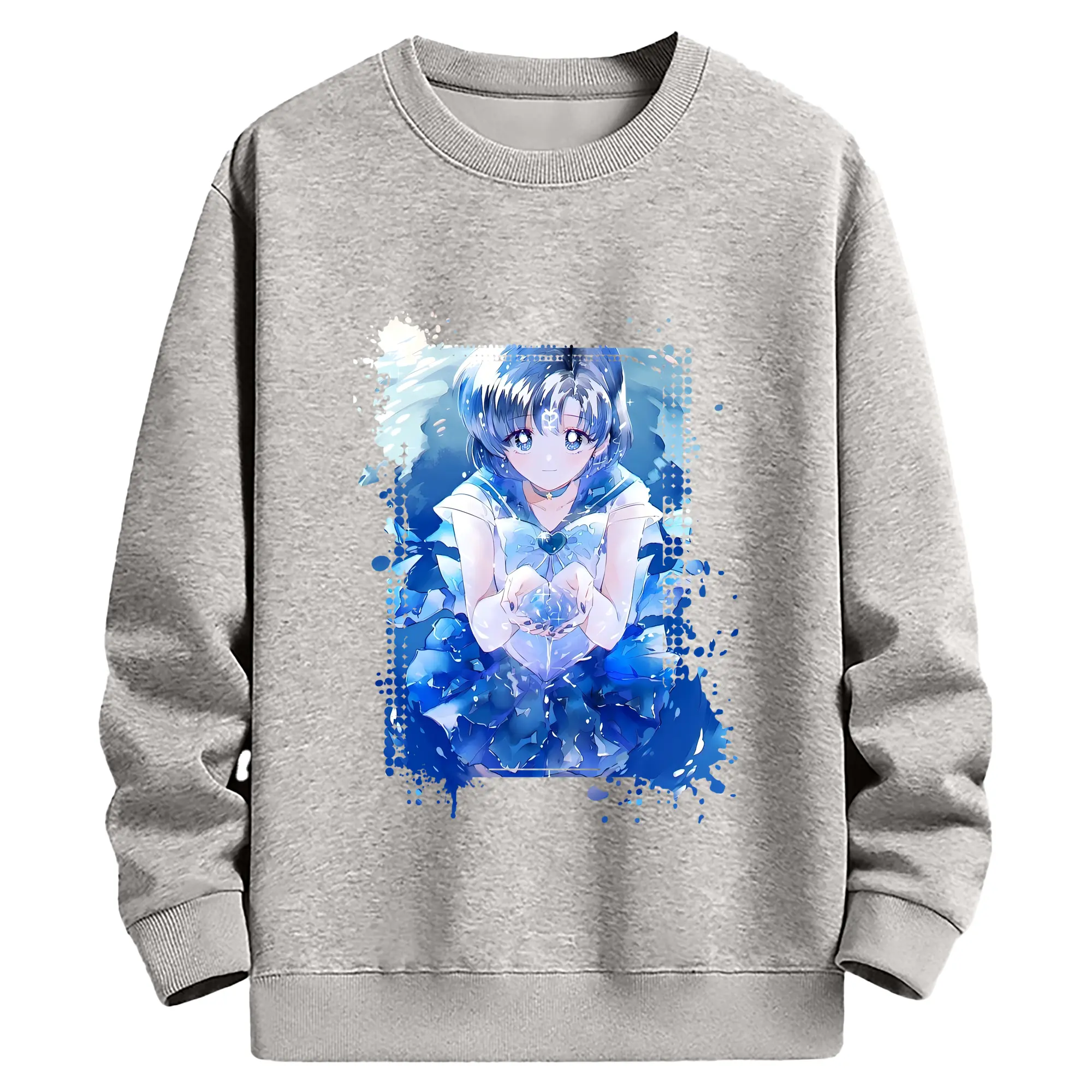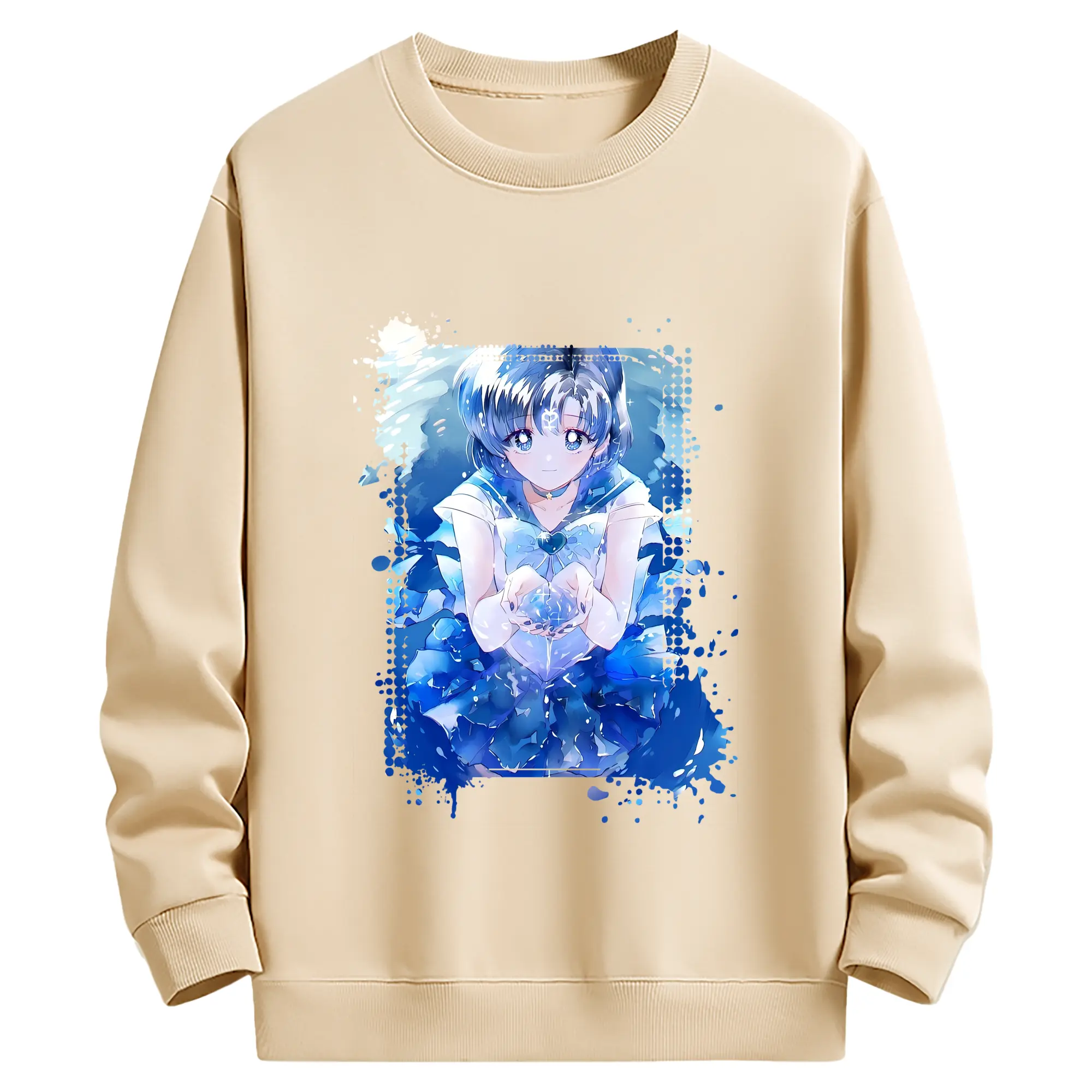 美少女戦士セーラームーン グッズ 水野 亜美 - 薄手 クルーネック スウェット 裏毛260g · ポリエステル 春秋向け カジュアル 男女兼用 · トレーナー デイリー スポーツ 散歩に最適