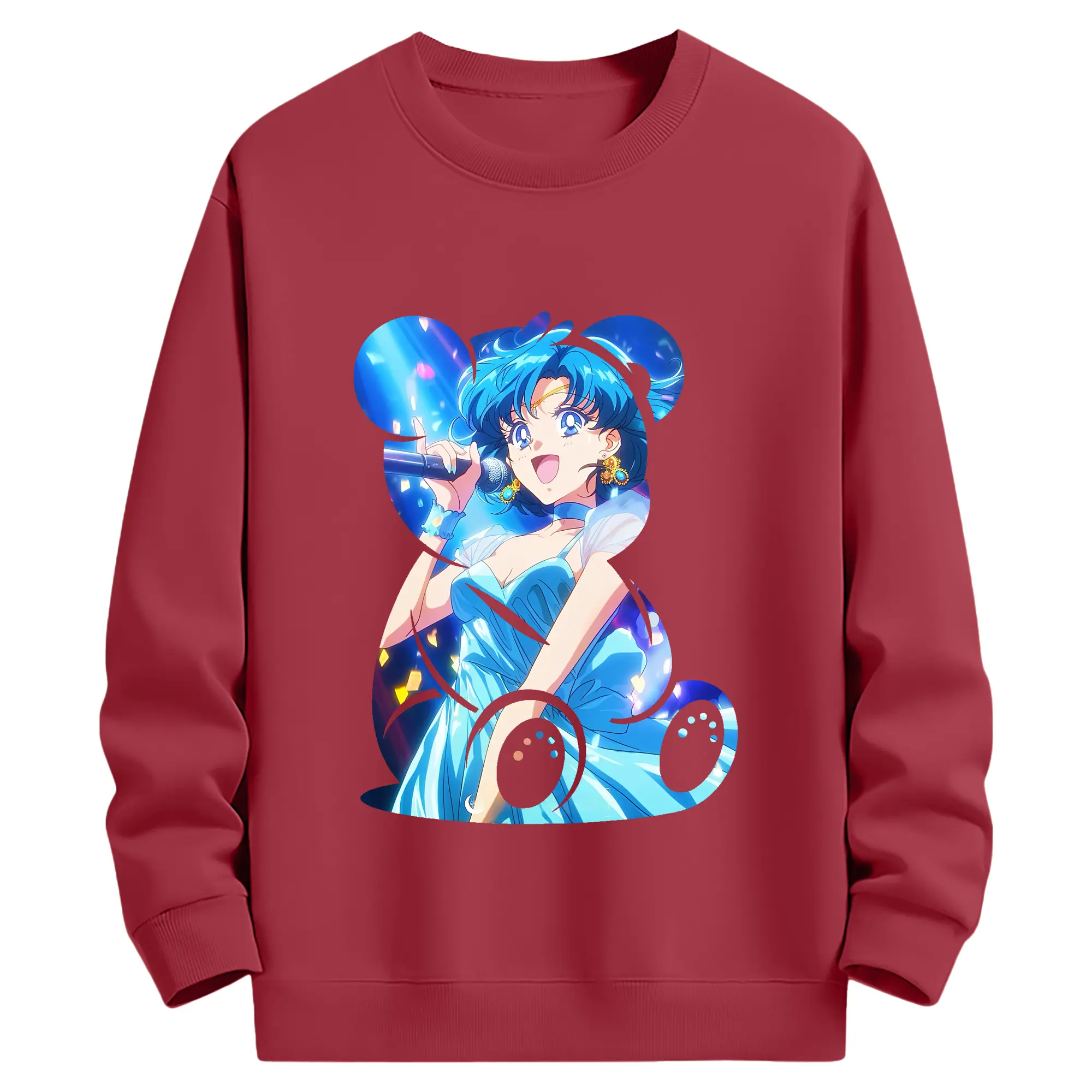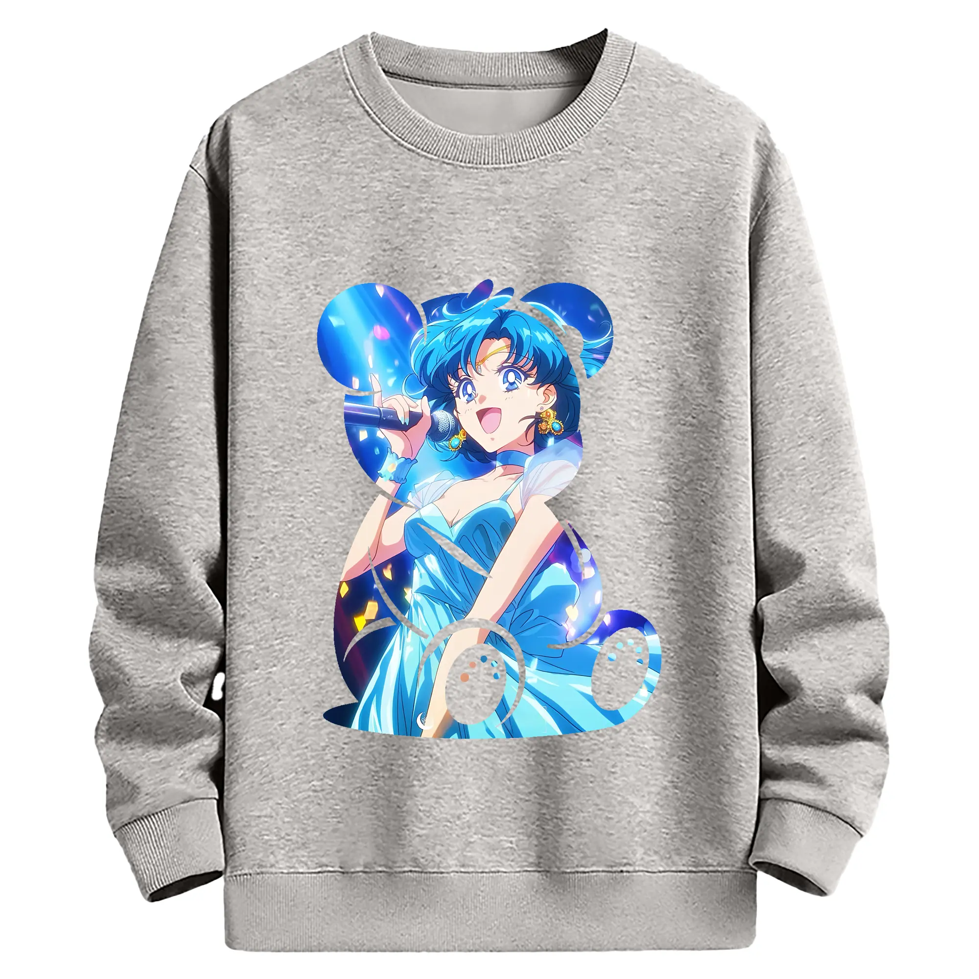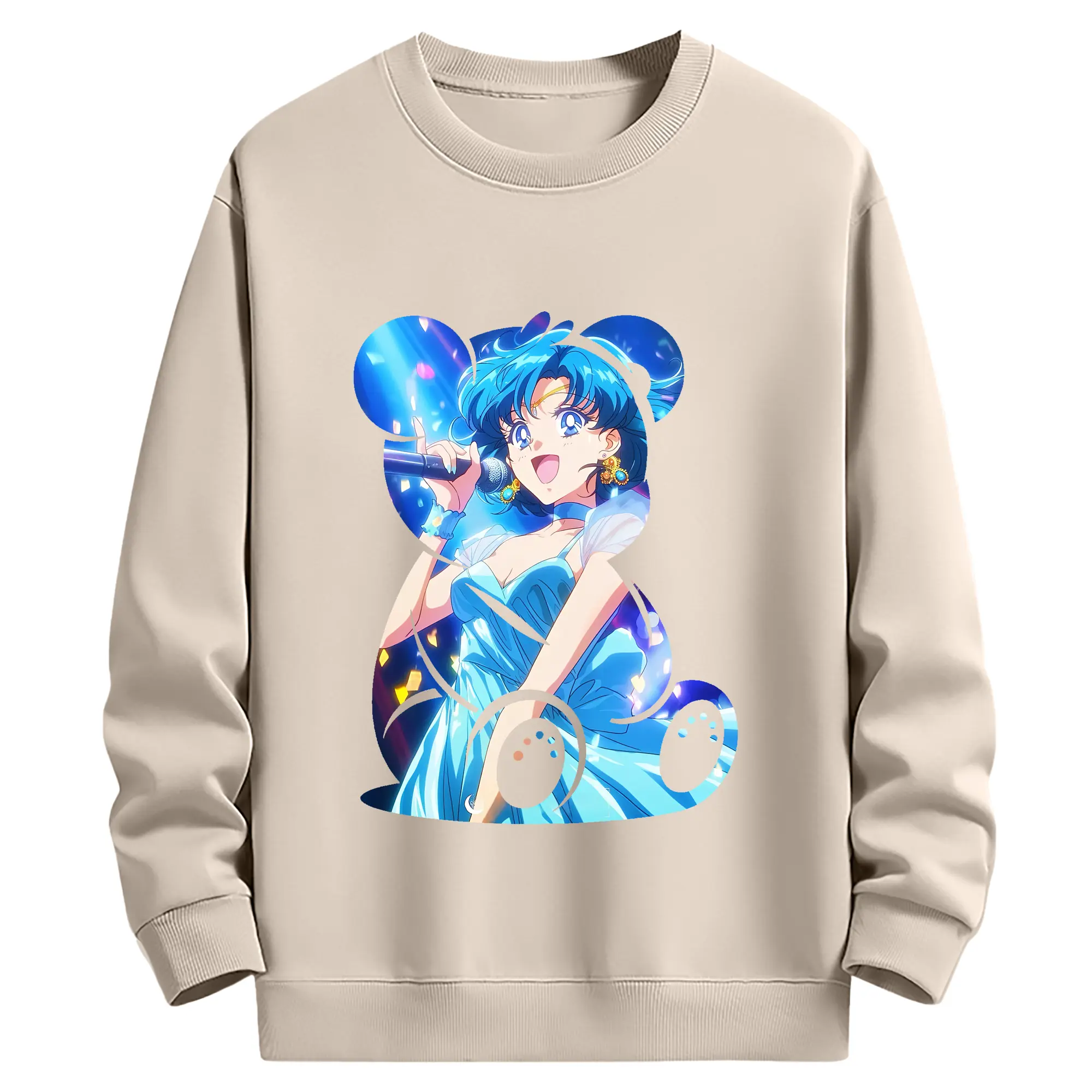 美少女戦士セーラームーン グッズ 水野 亜美 - 薄手 クルーネック スウェット 裏毛260g · ポリエステル 春秋向け カジュアル 男女兼用 · トレーナー デイリー スポーツ 散歩に最適
