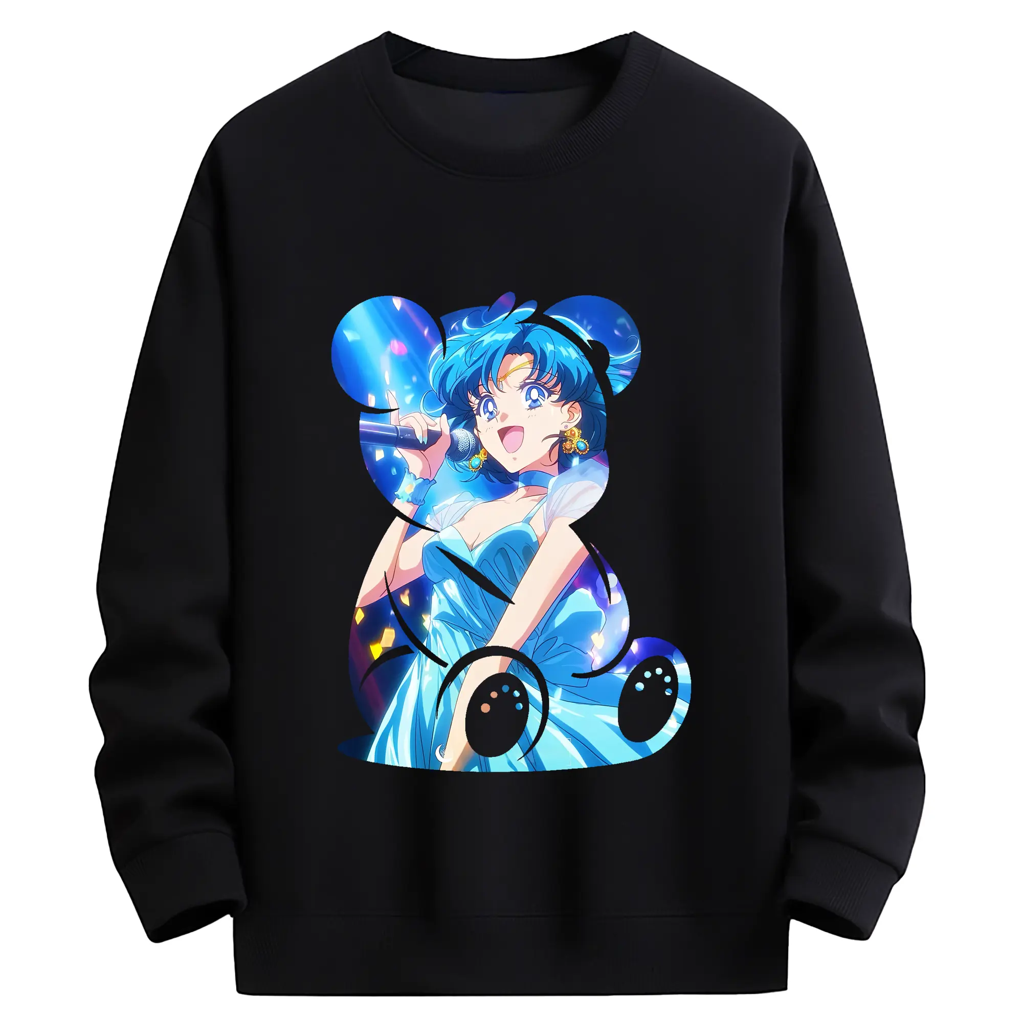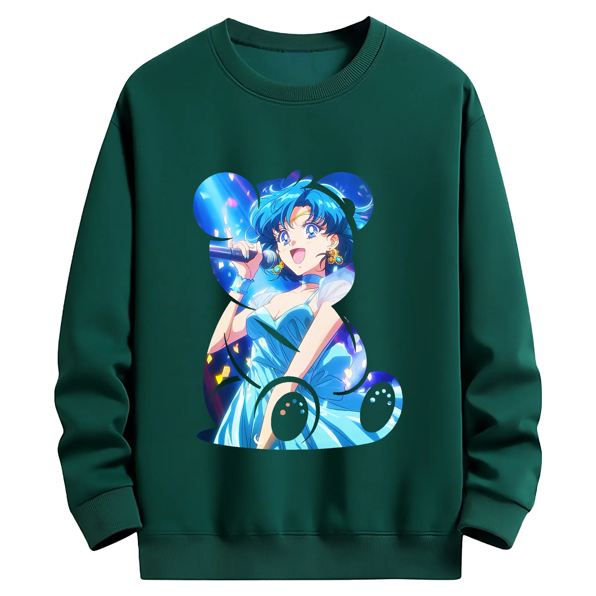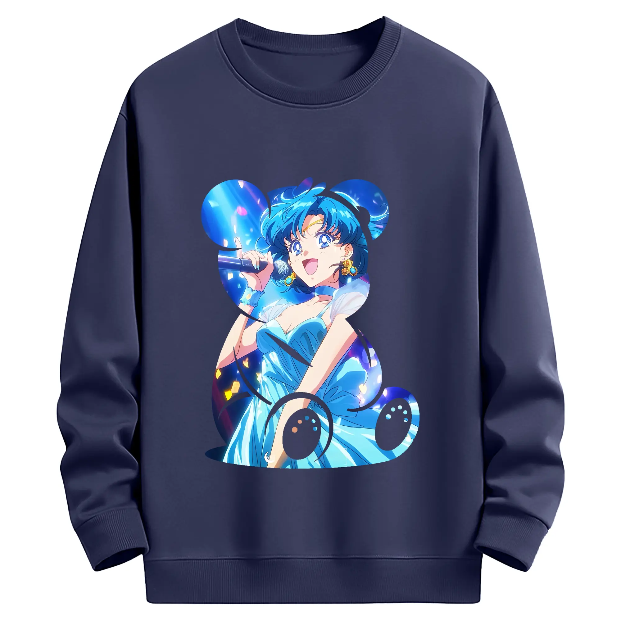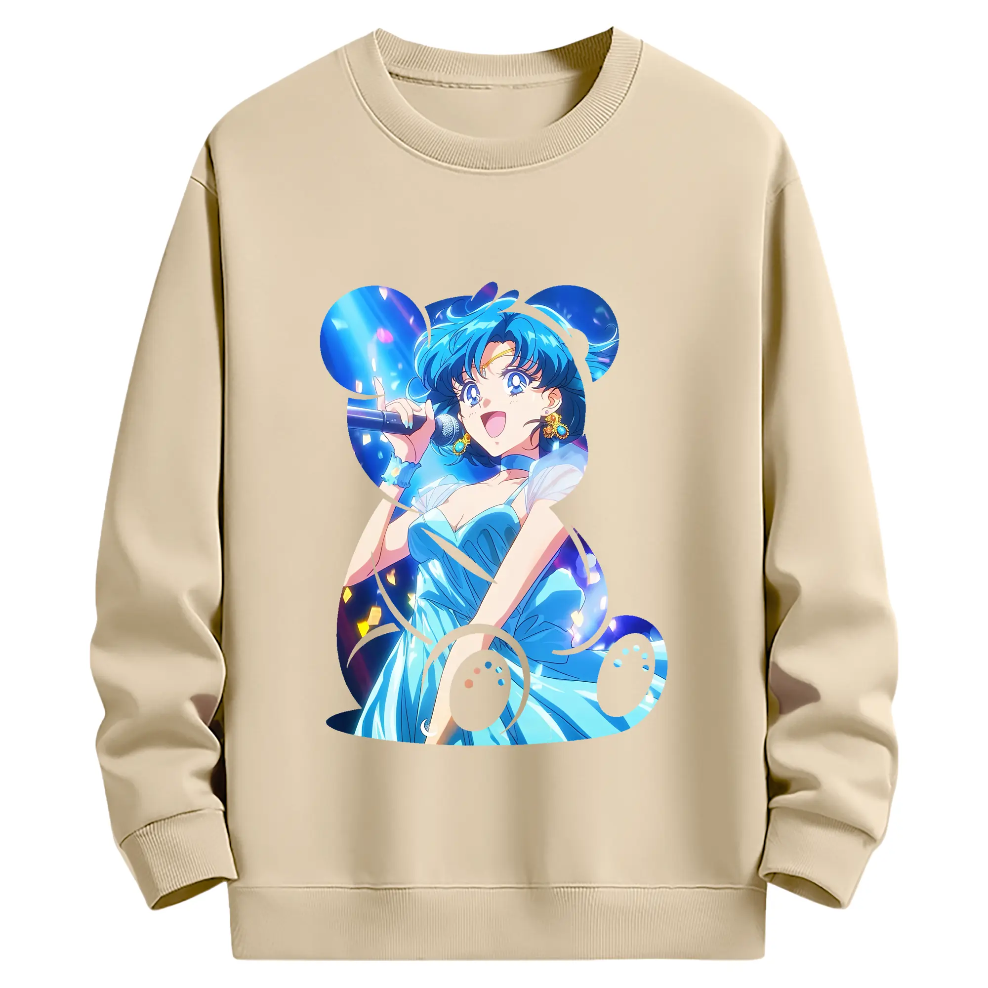 美少女戦士セーラームーン グッズ 水野 亜美 - 薄手 クルーネック スウェット 裏毛260g · ポリエステル 春秋向け カジュアル 男女兼用 · トレーナー デイリー スポーツ 散歩に最適