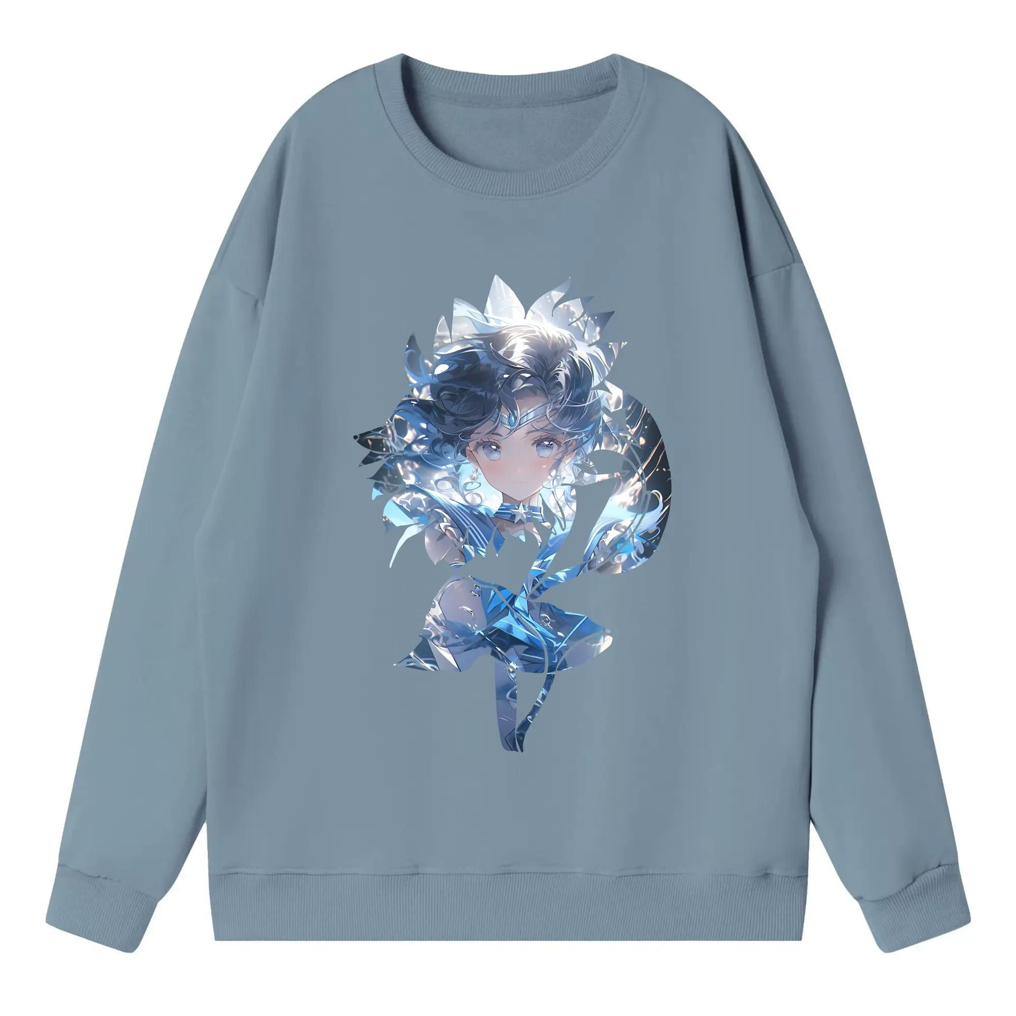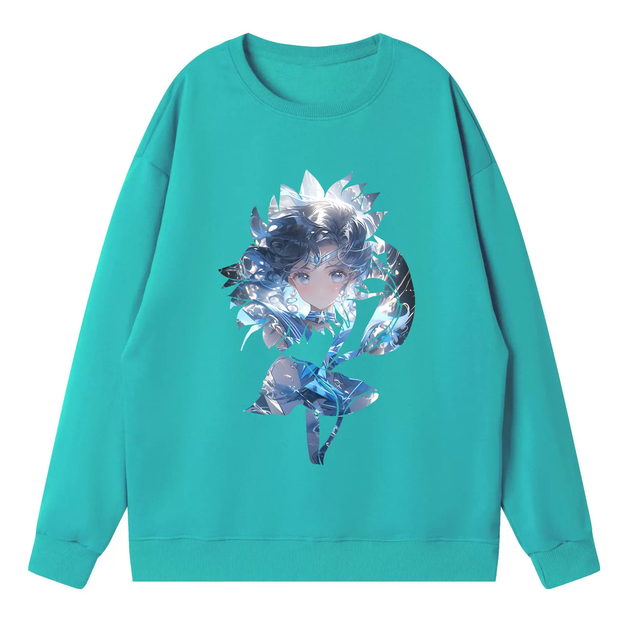 美少女戦士セーラームーン グッズ 水野 亜美 - 高品質 クルーネック スウェット ・ コットン59% ポリエステル41% ・ ユニセックス 長袖 トレーナー ・ カジュアル デイリー スポーツ 散歩用