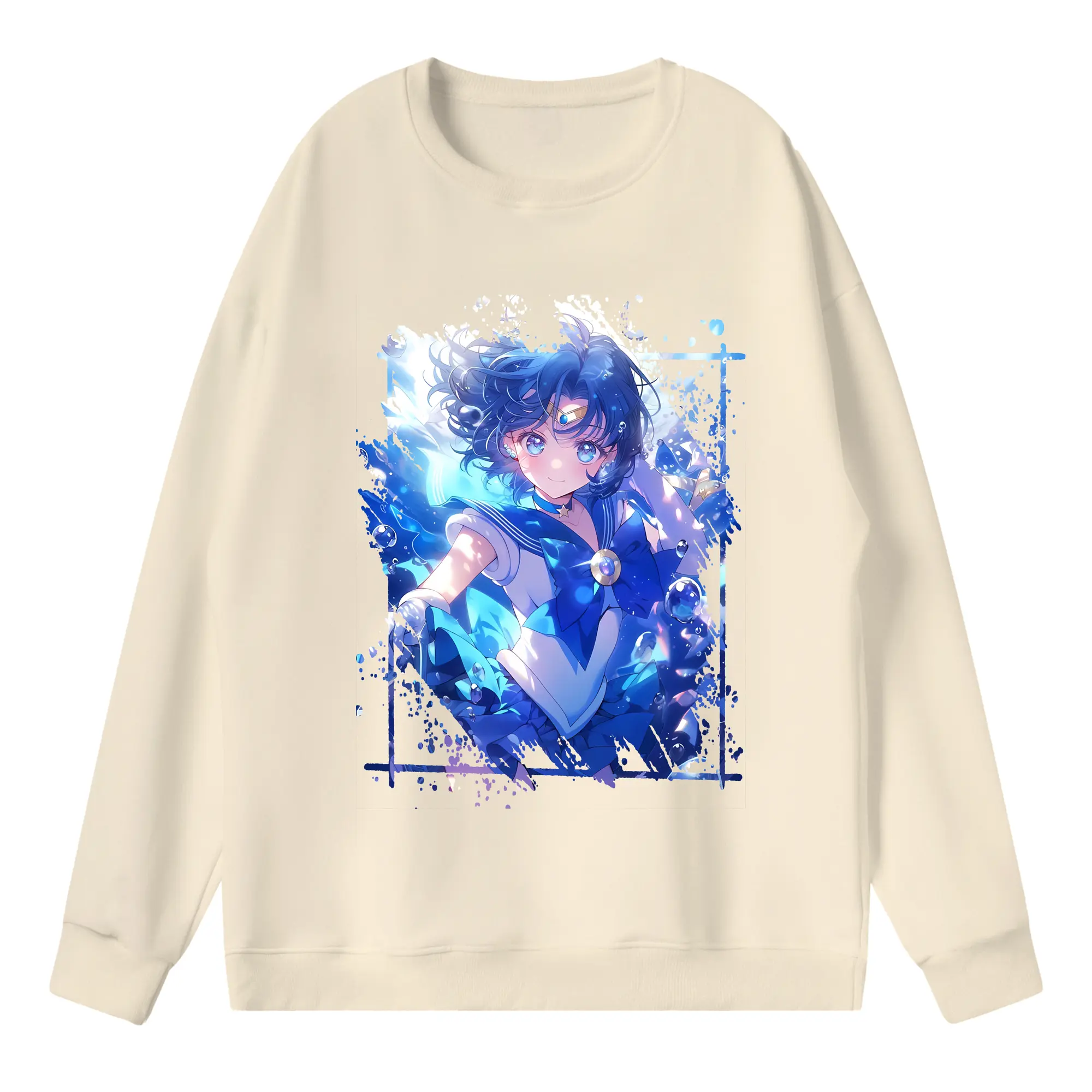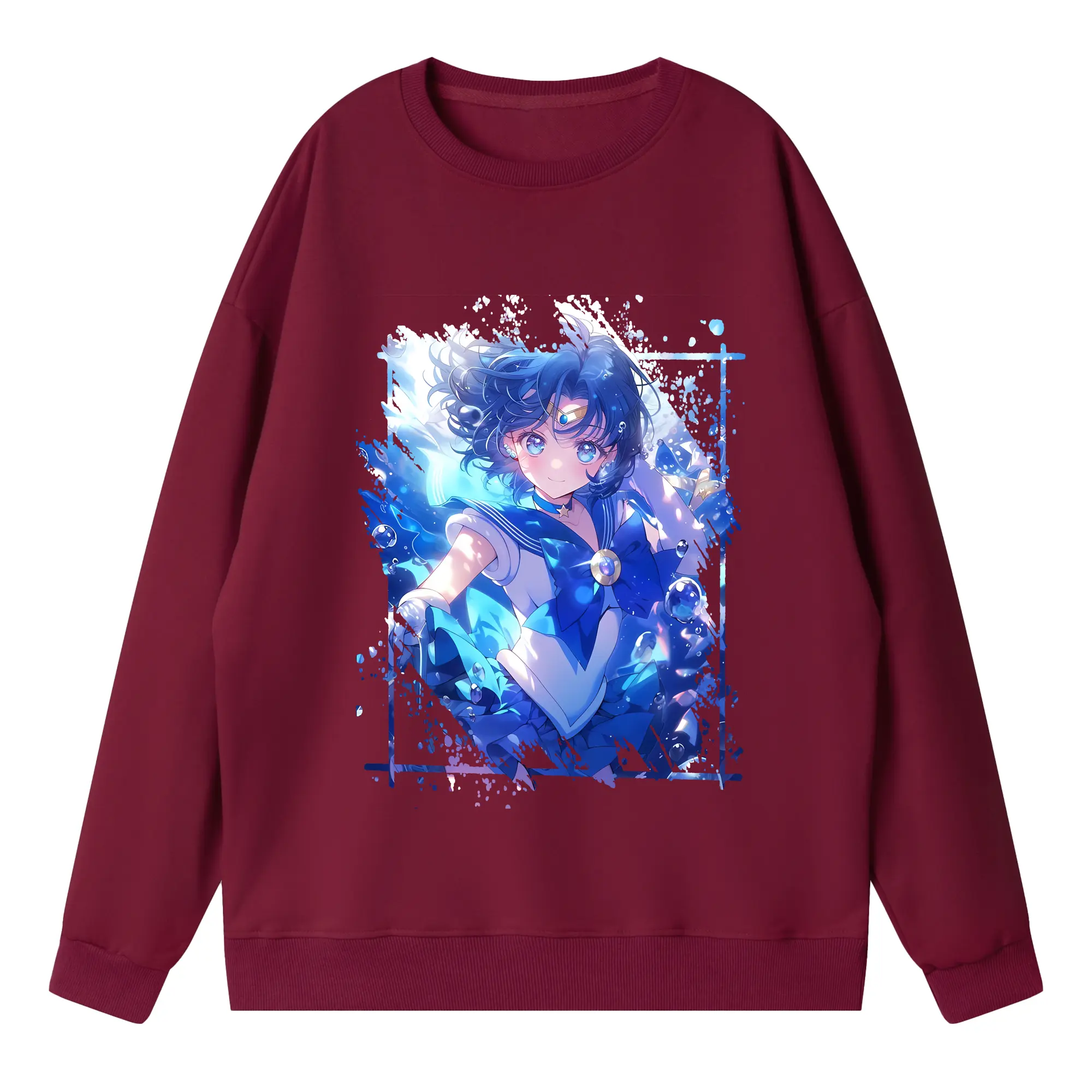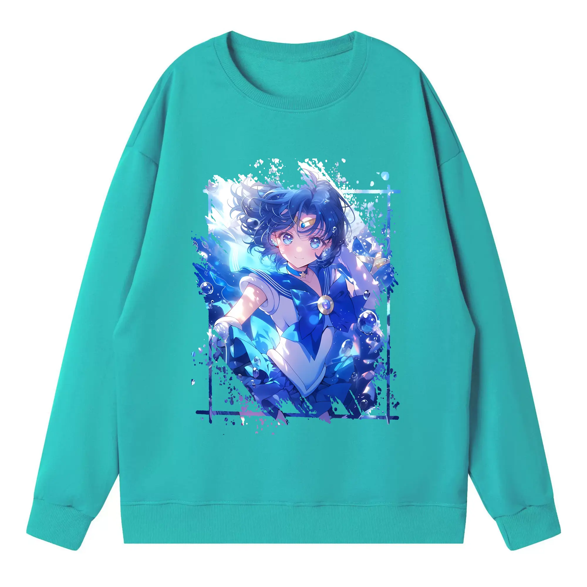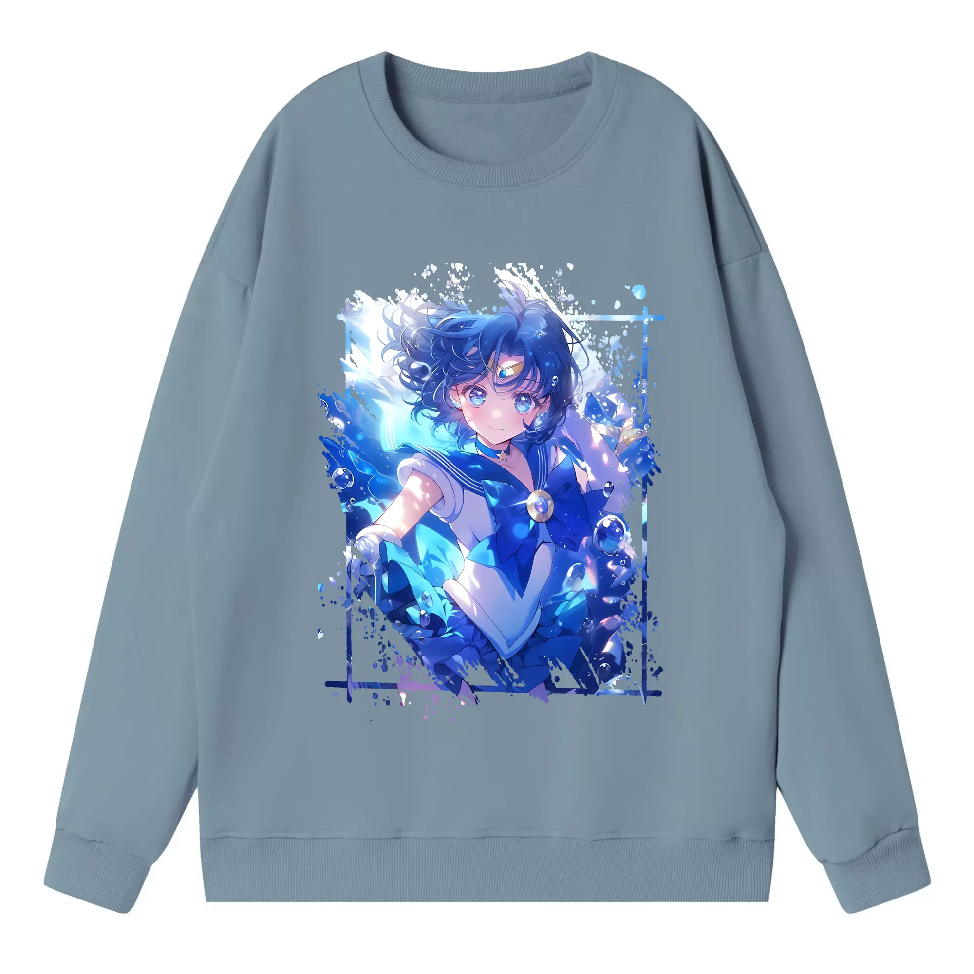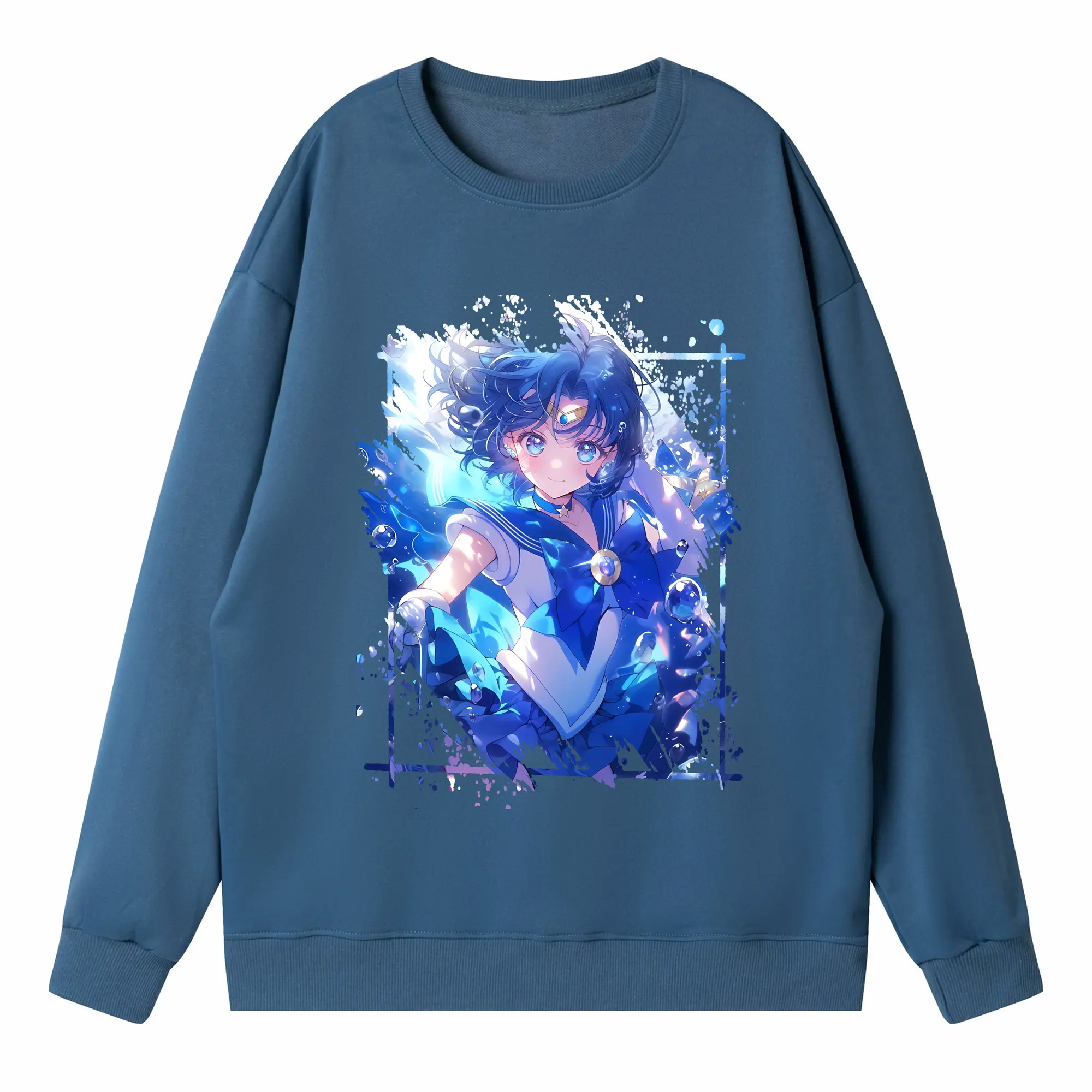 美少女戦士セーラームーン グッズ 水野 亜美 - 高品質 クルーネック スウェット ・ コットン59% ポリエステル41% ・ ユニセックス 長袖 トレーナー ・ カジュアル デイリー スポーツ 散歩用