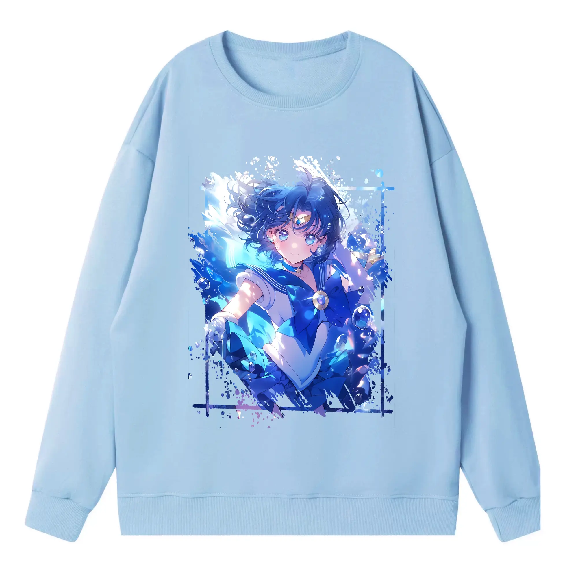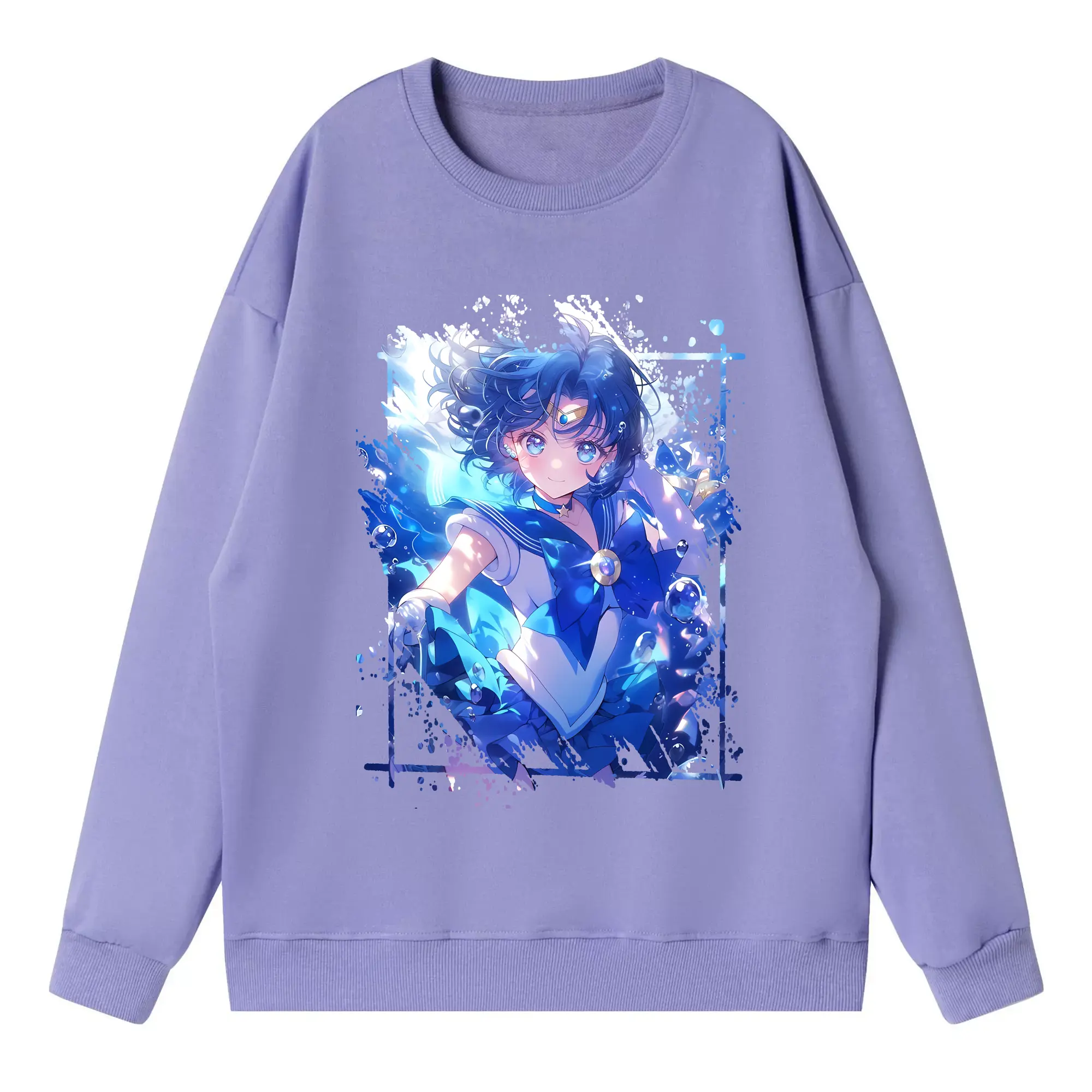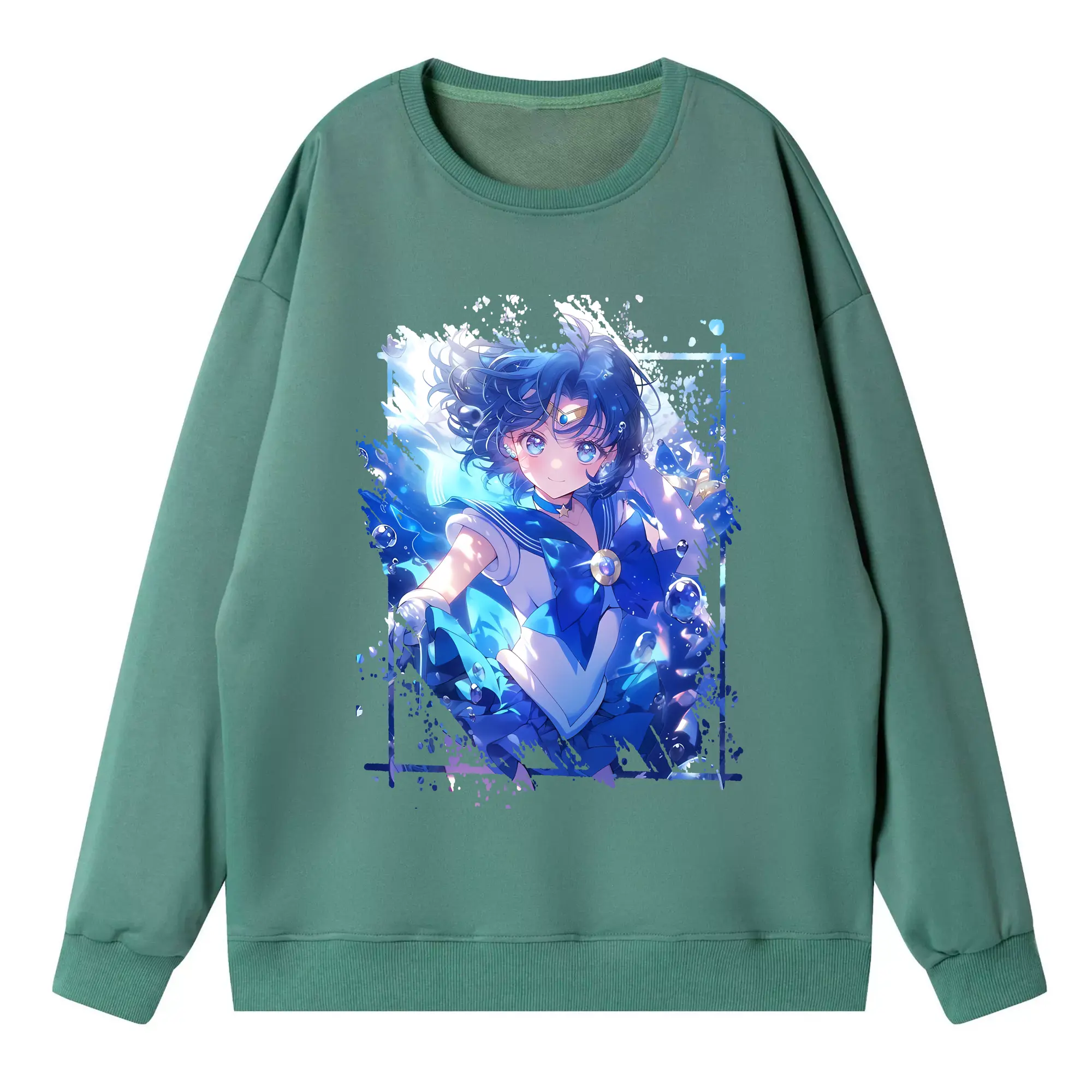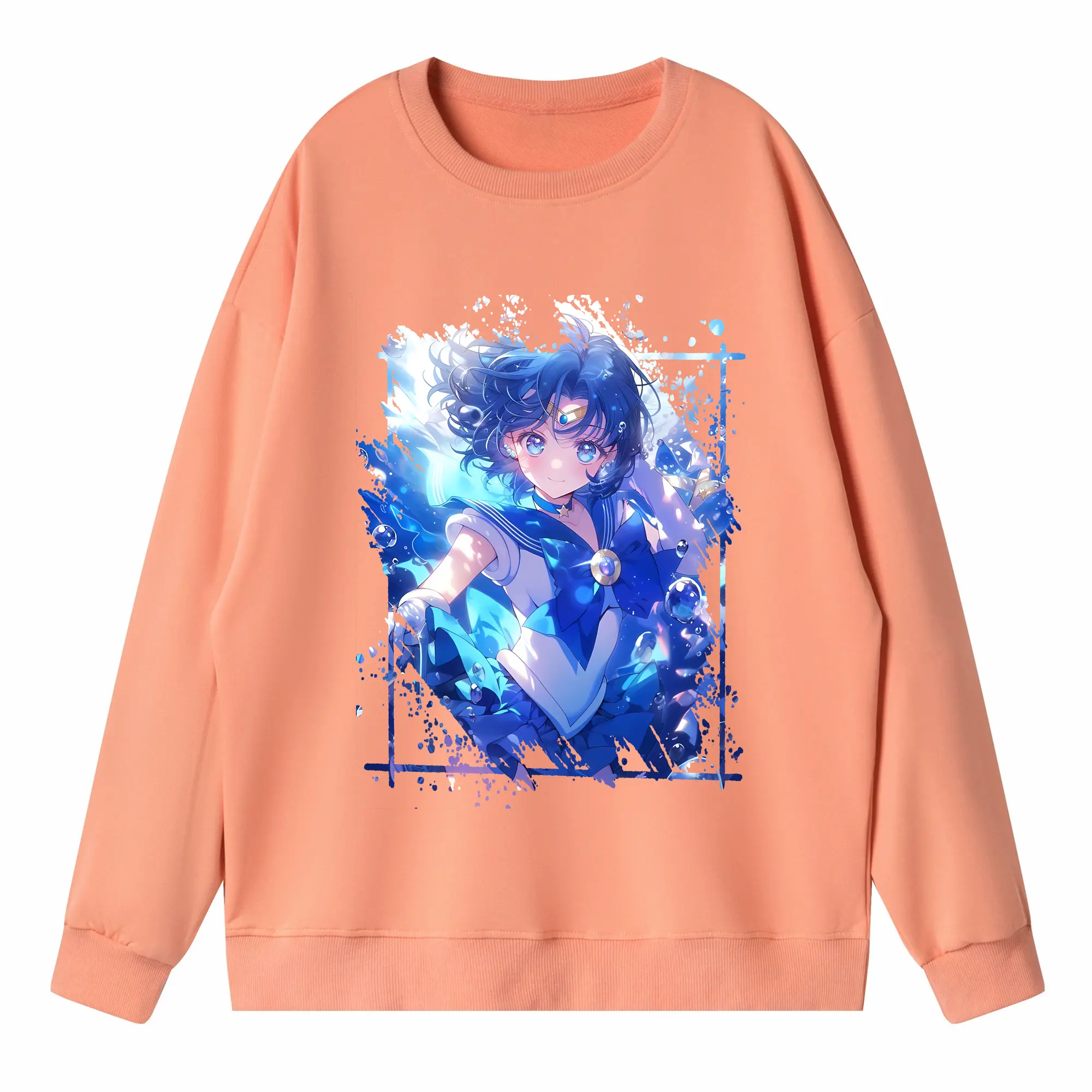 美少女戦士セーラームーン グッズ 水野 亜美 - 高品質 クルーネック スウェット ・ コットン59% ポリエステル41% ・ ユニセックス 長袖 トレーナー ・ カジュアル デイリー スポーツ 散歩用