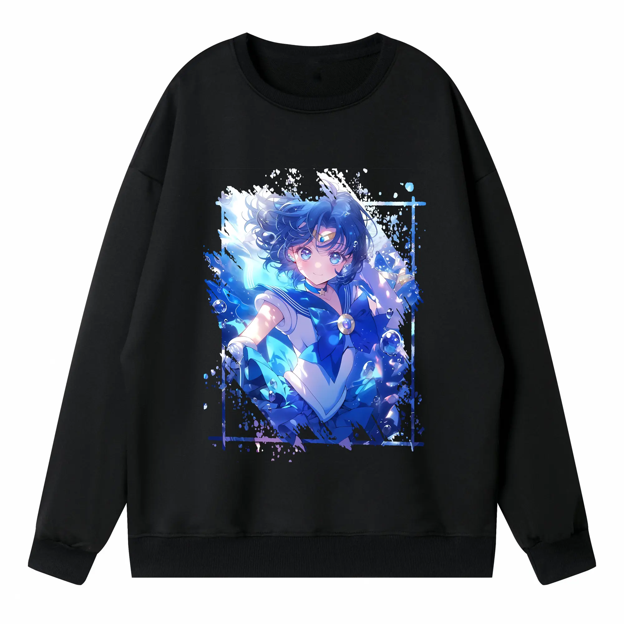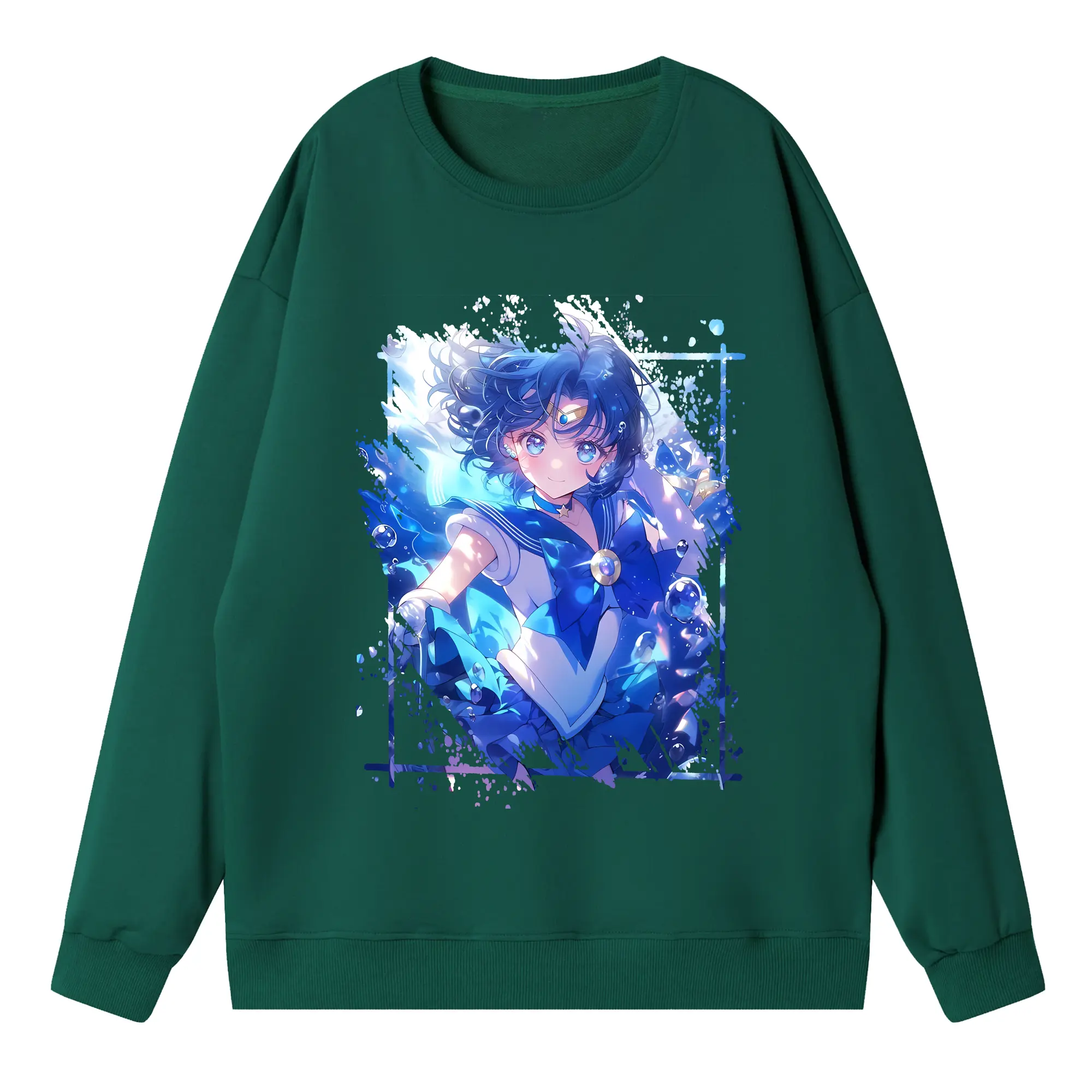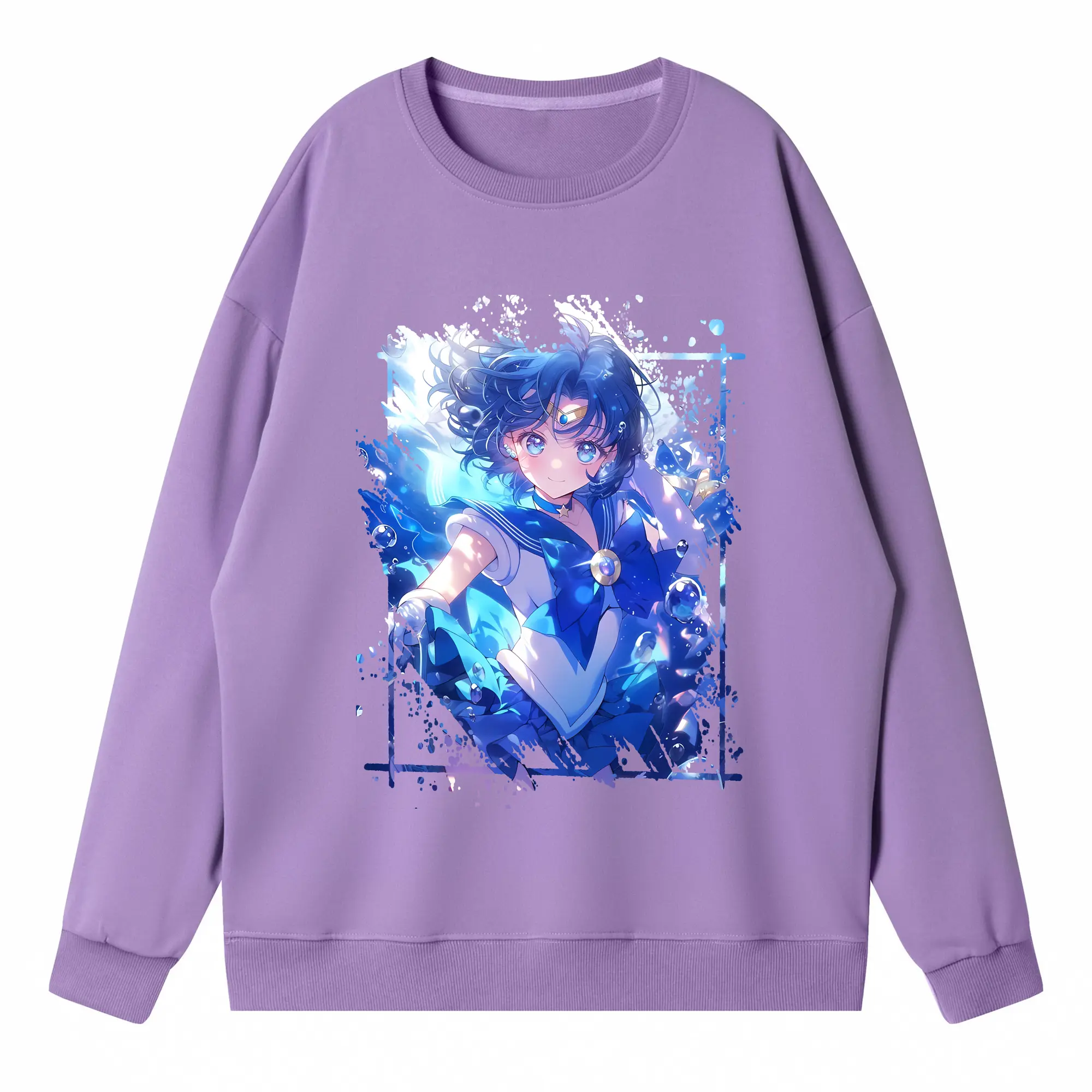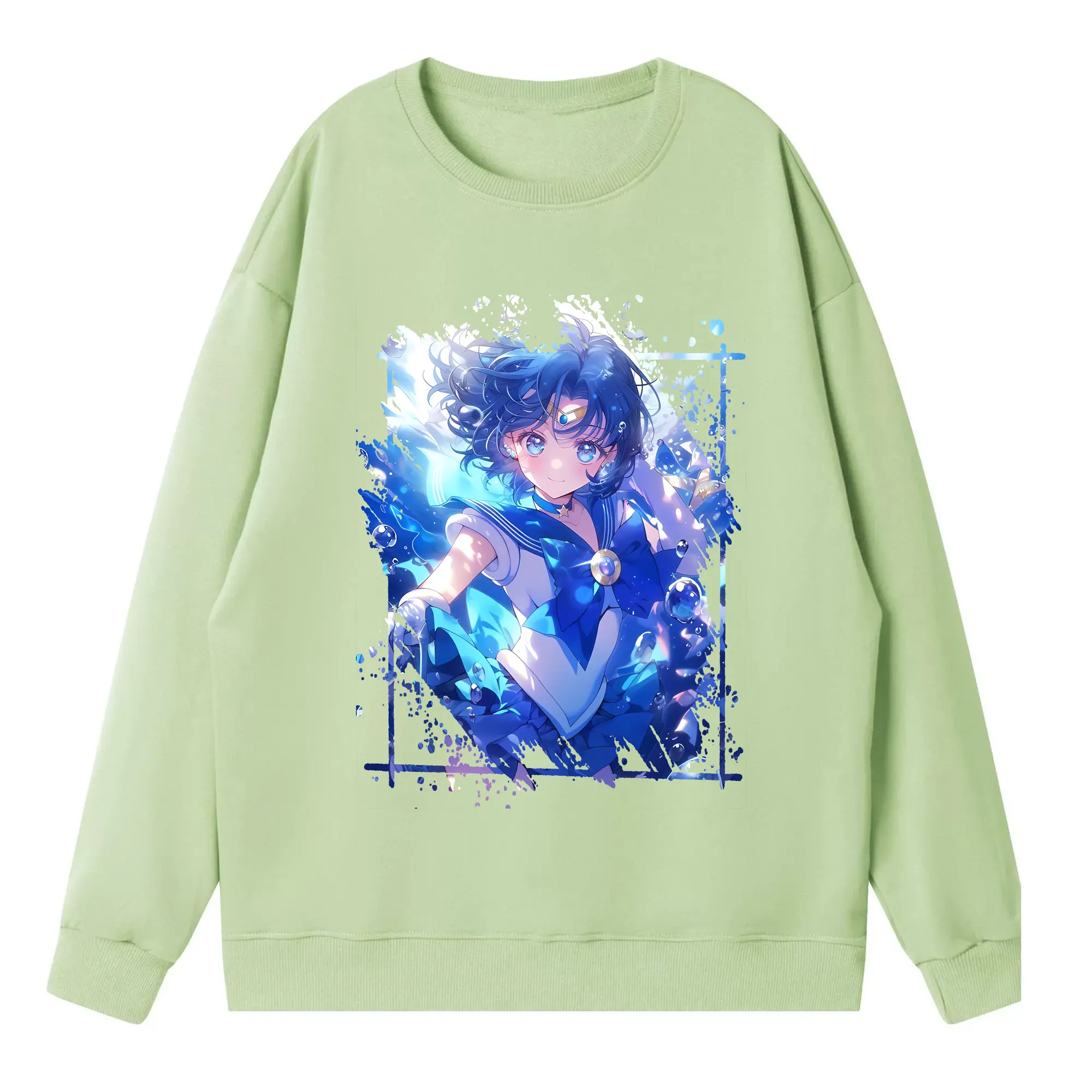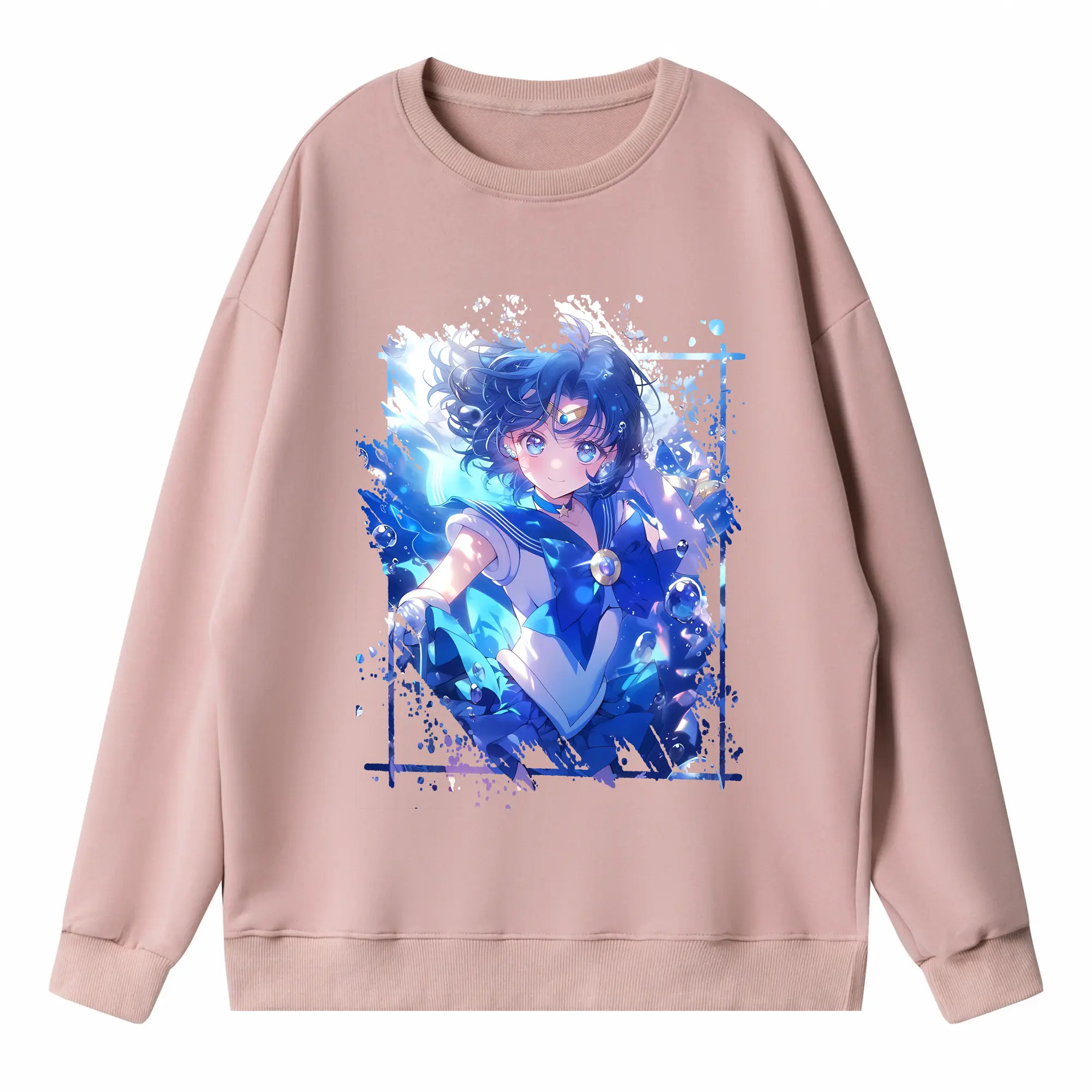 美少女戦士セーラームーン グッズ 水野 亜美 - 高品質 クルーネック スウェット ・ コットン59% ポリエステル41% ・ ユニセックス 長袖 トレーナー ・ カジュアル デイリー スポーツ 散歩用