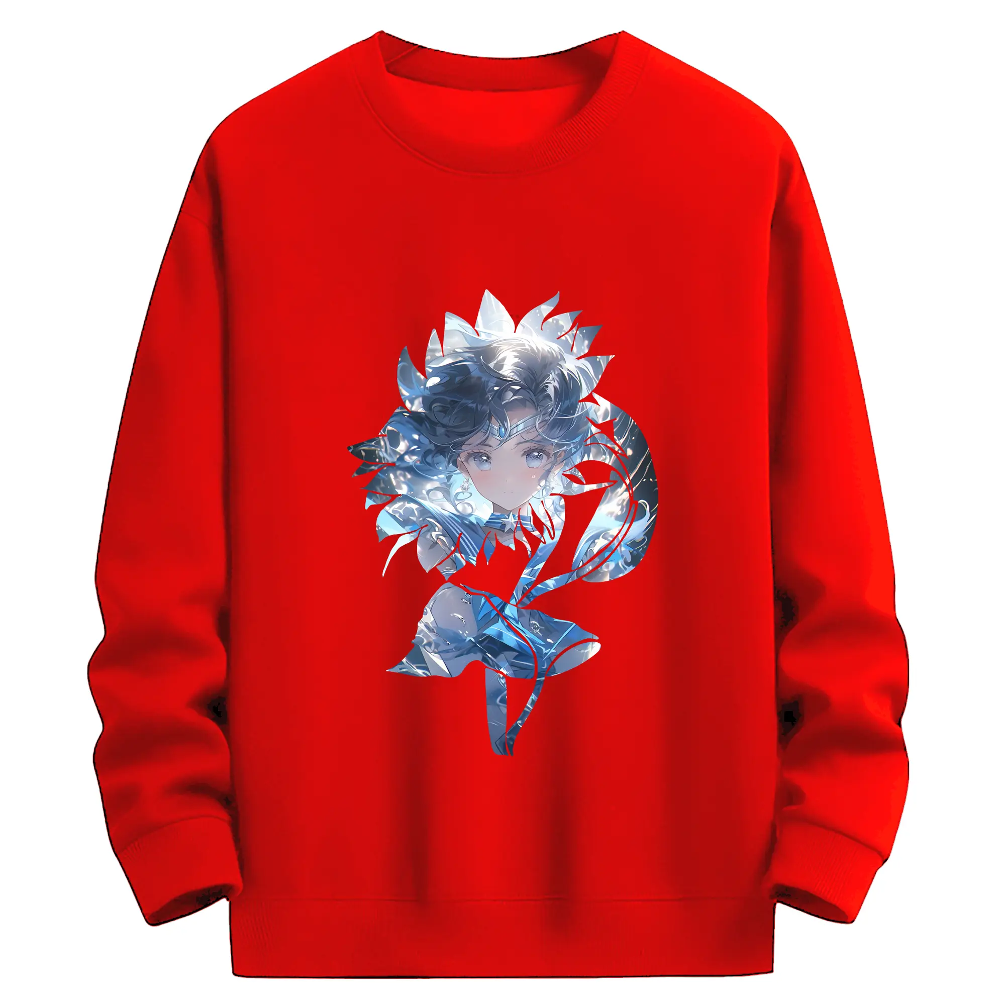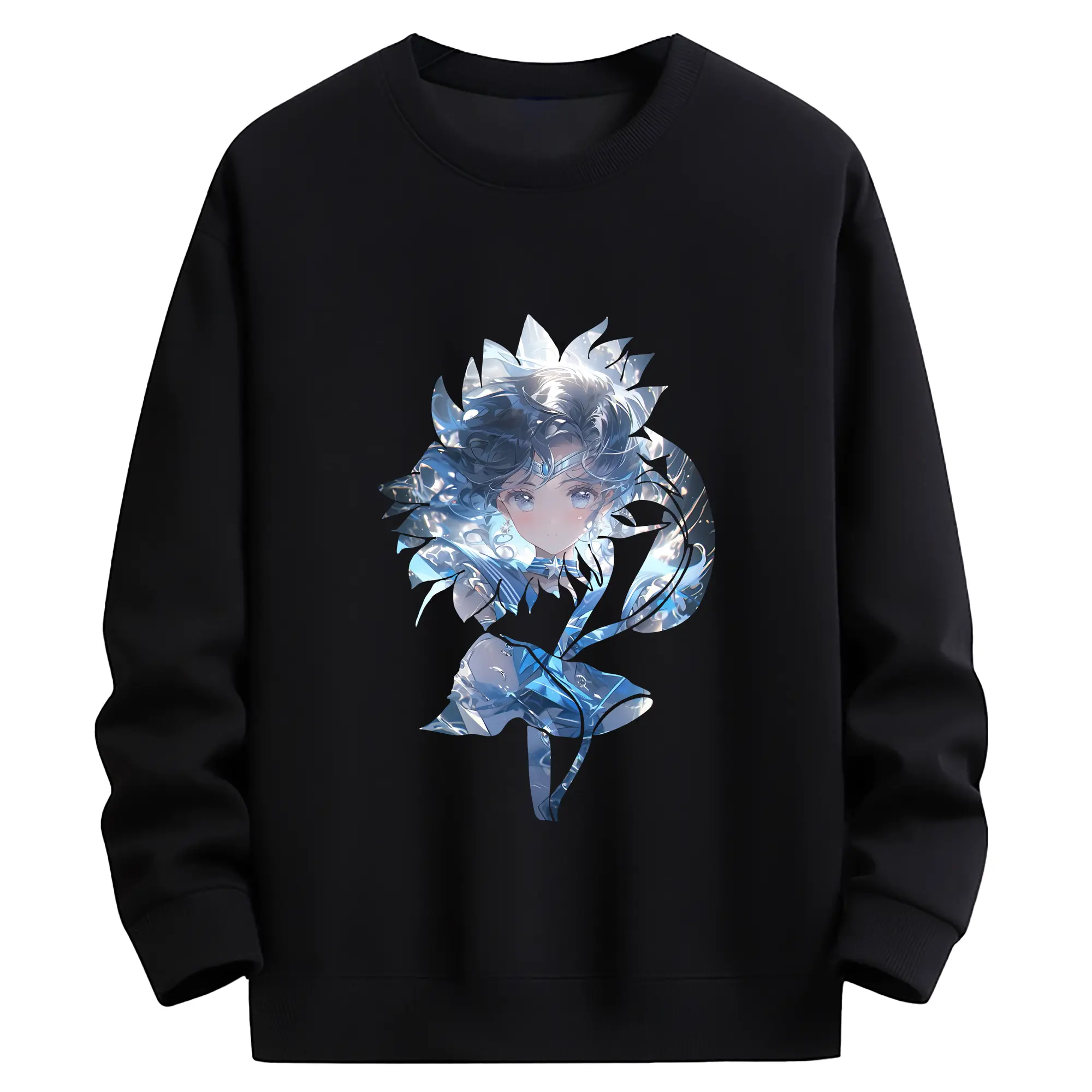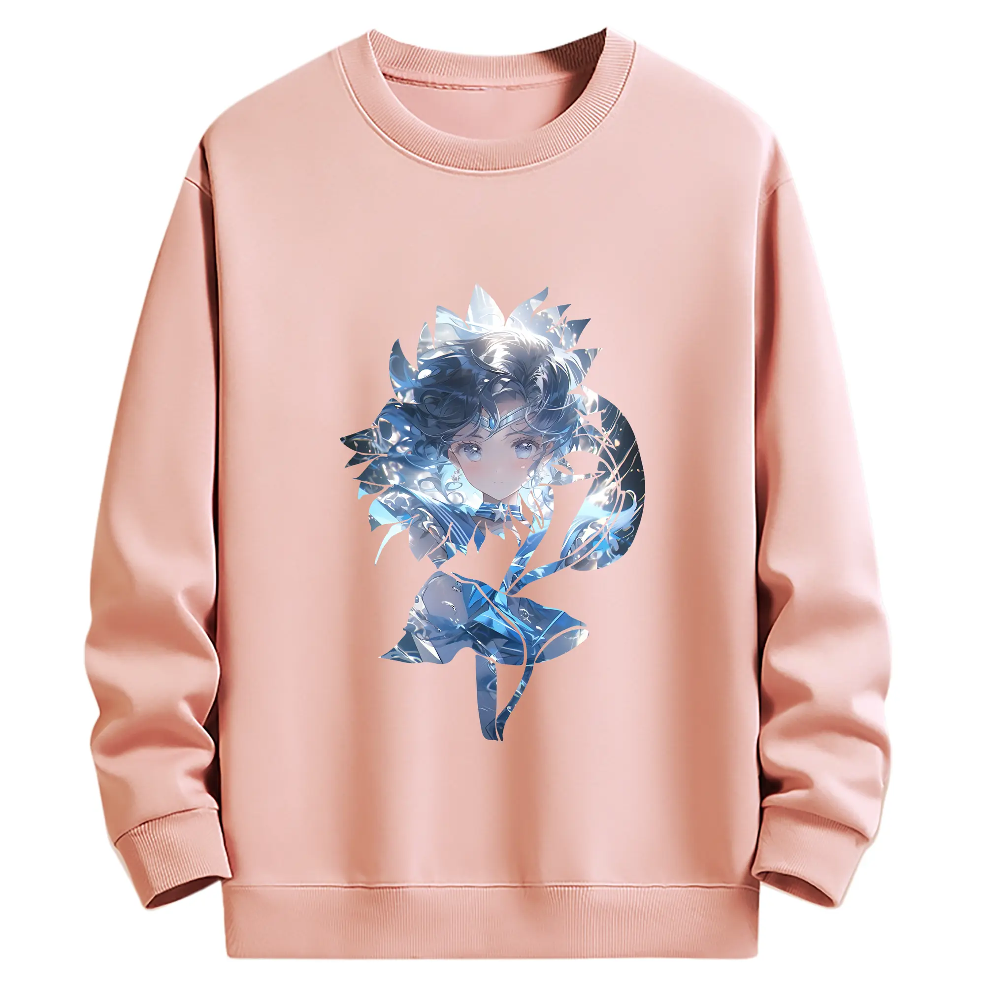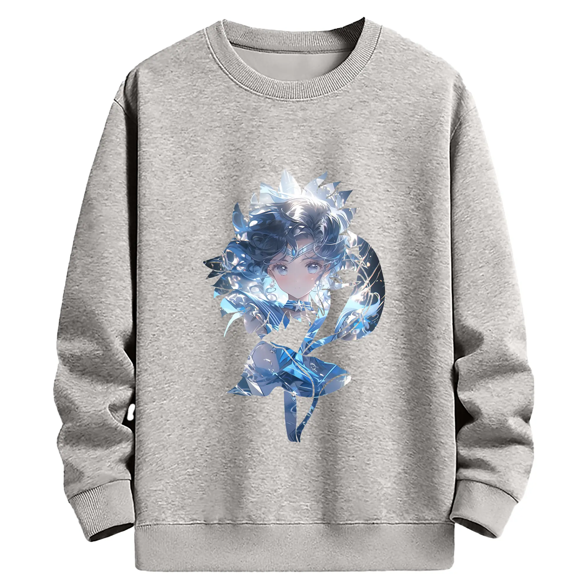美少女戦士セーラームーン グッズ 水野 亜美 - 薄手 クルーネック スウェット 裏毛260g · ポリエステル 春秋向け カジュアル 男女兼用 · トレーナー デイリー スポーツ 散歩に最適
