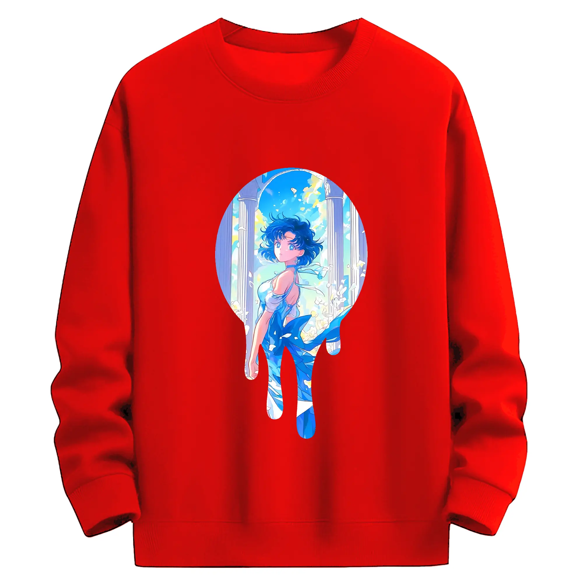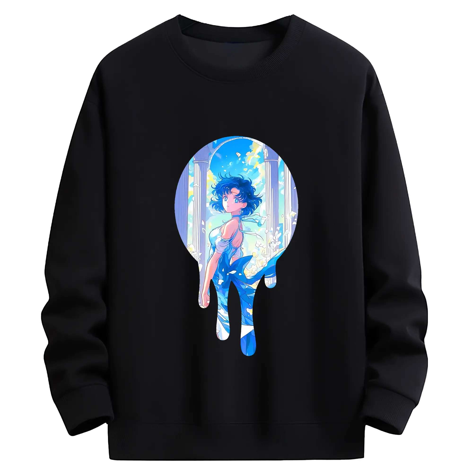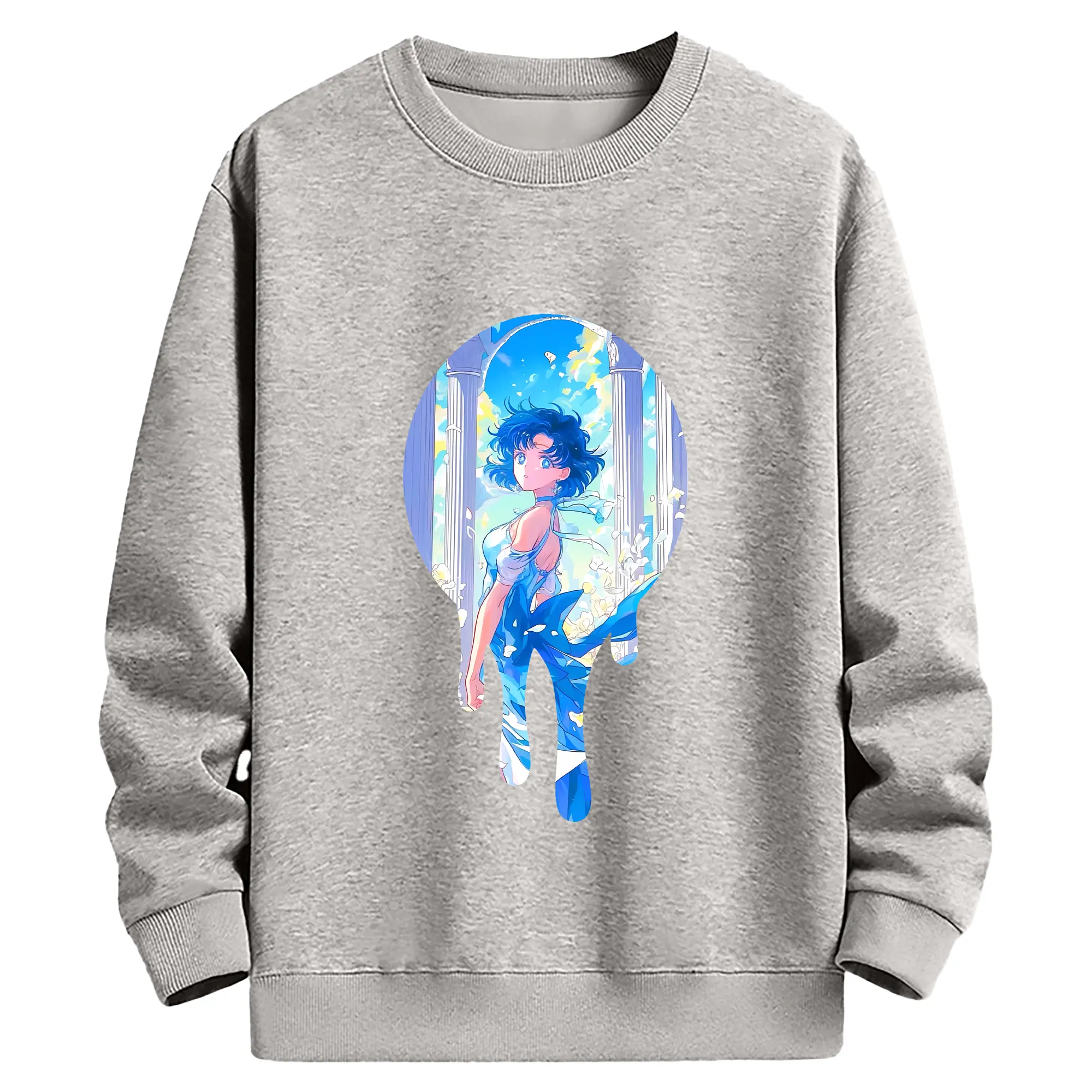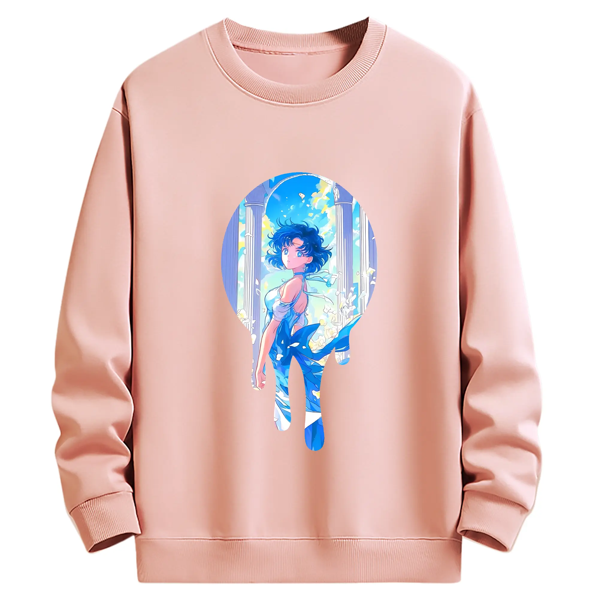 美少女戦士セーラームーン グッズ 水野 亜美 - 薄手 クルーネック スウェット 裏毛260g · ポリエステル 春秋向け カジュアル 男女兼用 · トレーナー デイリー スポーツ 散歩に最適