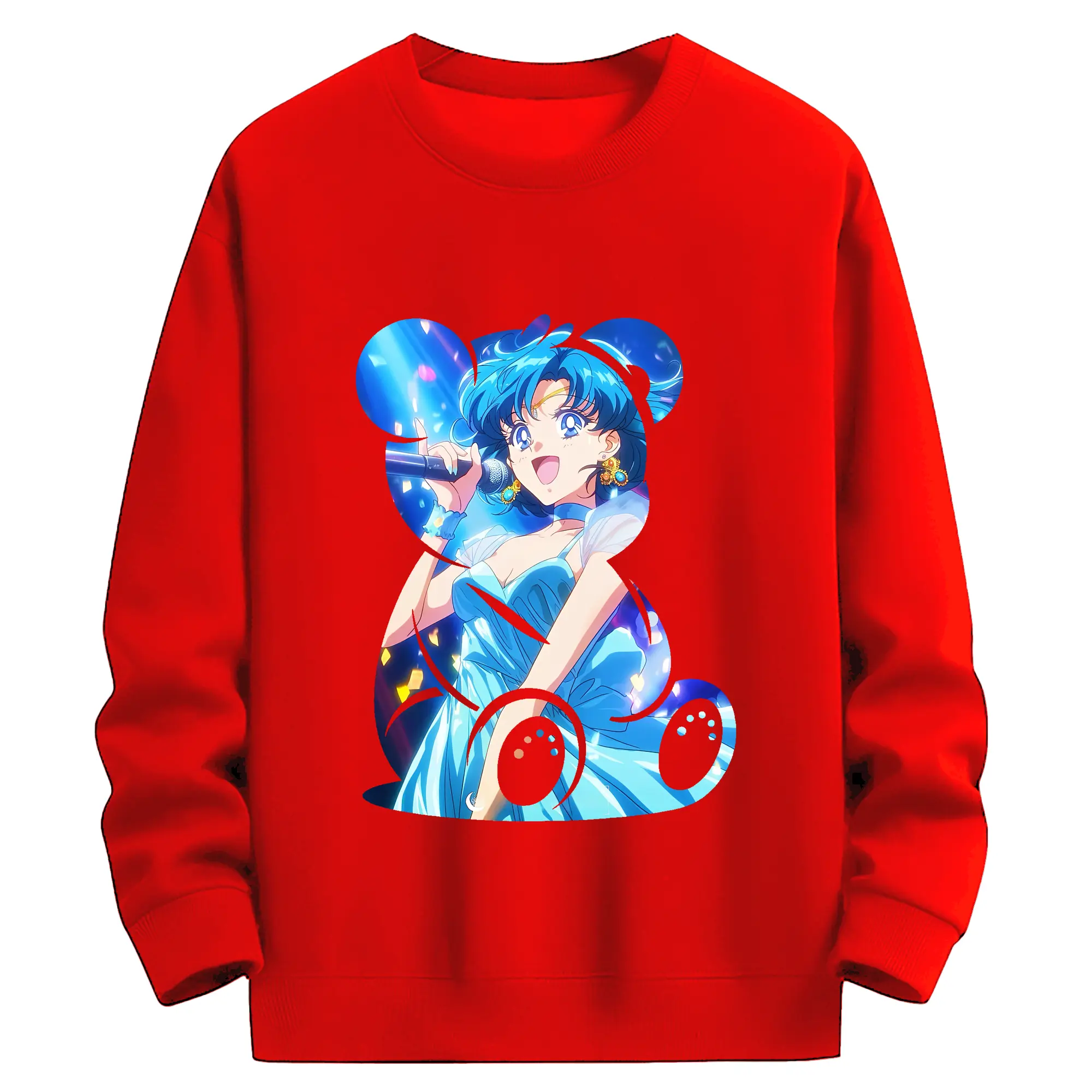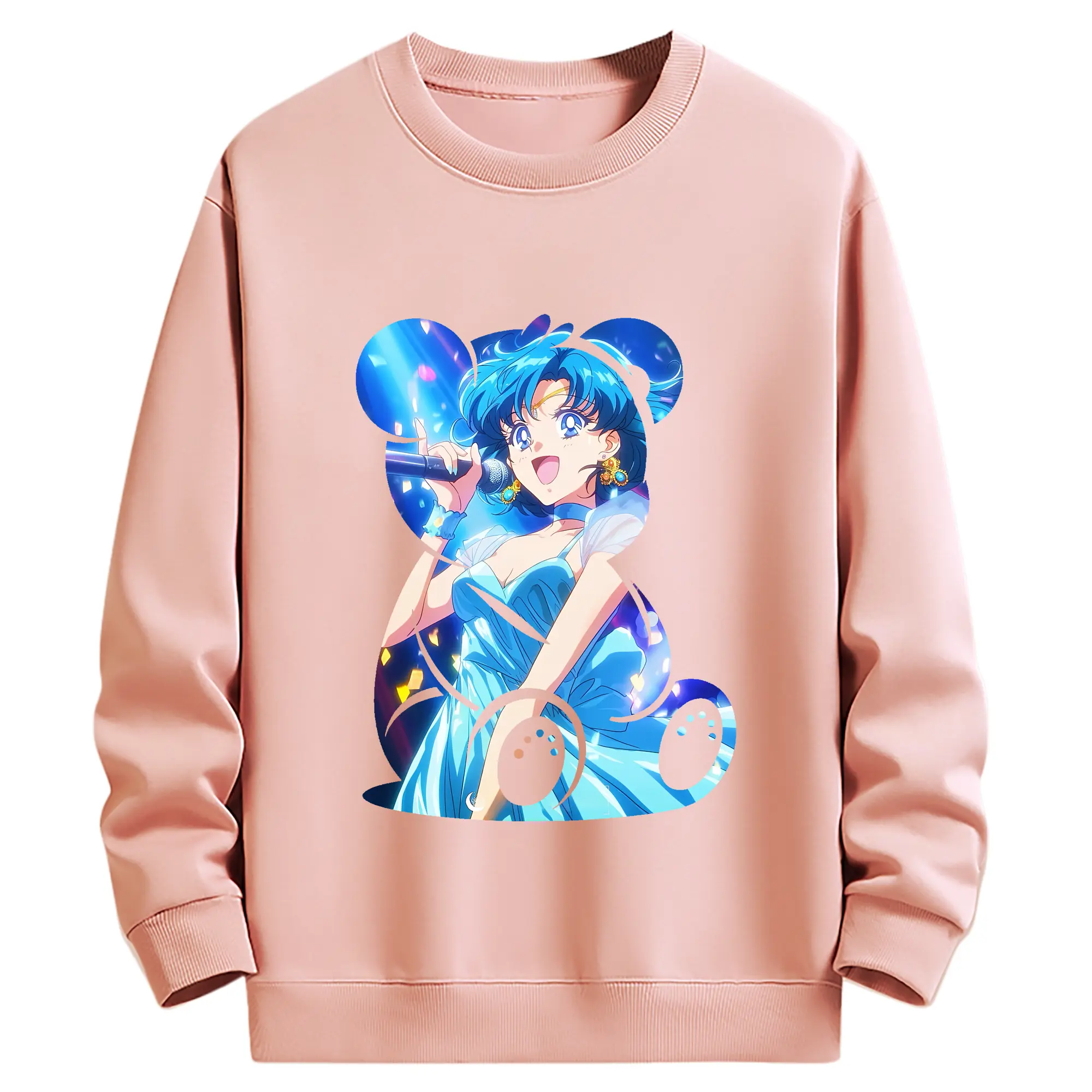 美少女戦士セーラームーン グッズ 水野 亜美 - 薄手 クルーネック スウェット 裏毛260g · ポリエステル 春秋向け カジュアル 男女兼用 · トレーナー デイリー スポーツ 散歩に最適