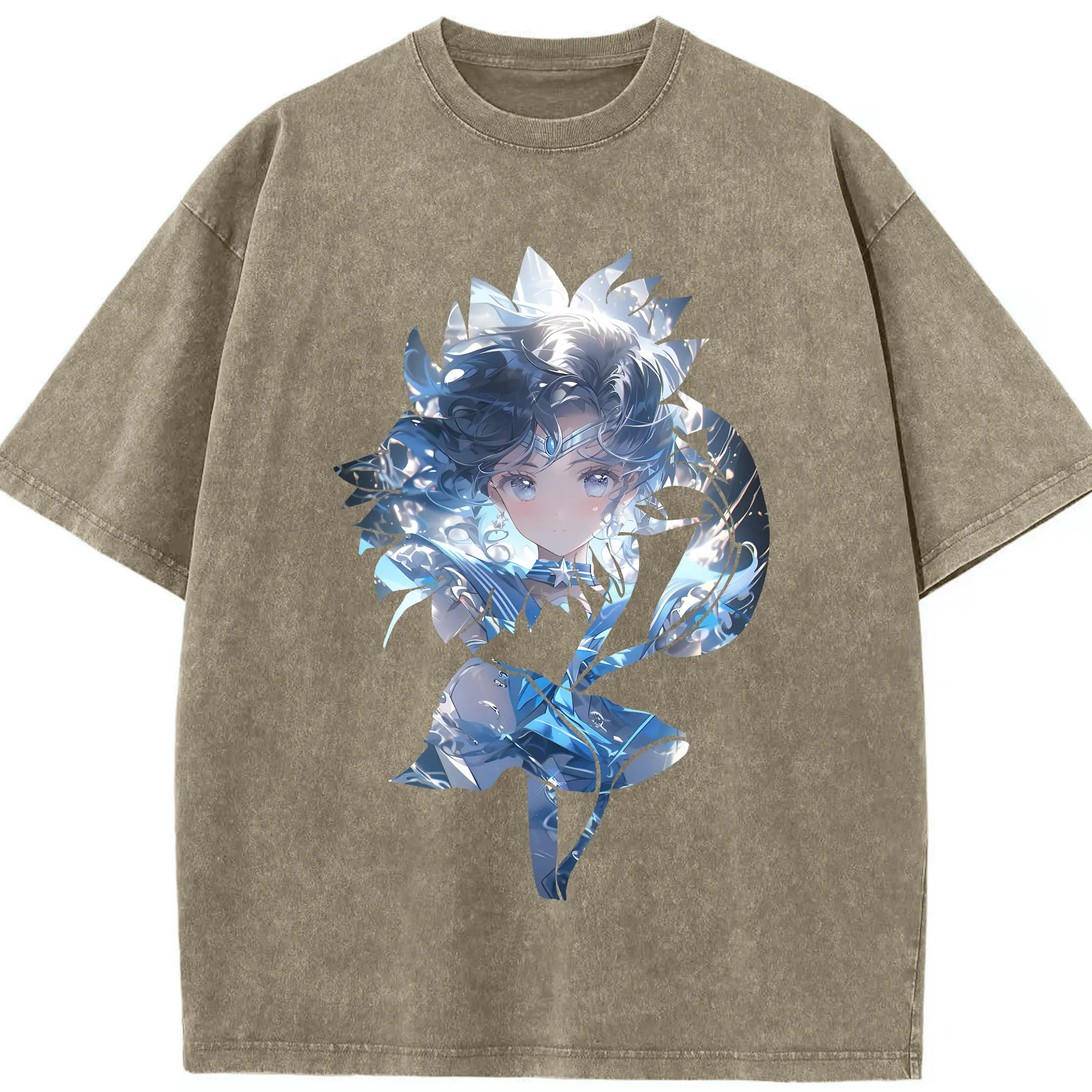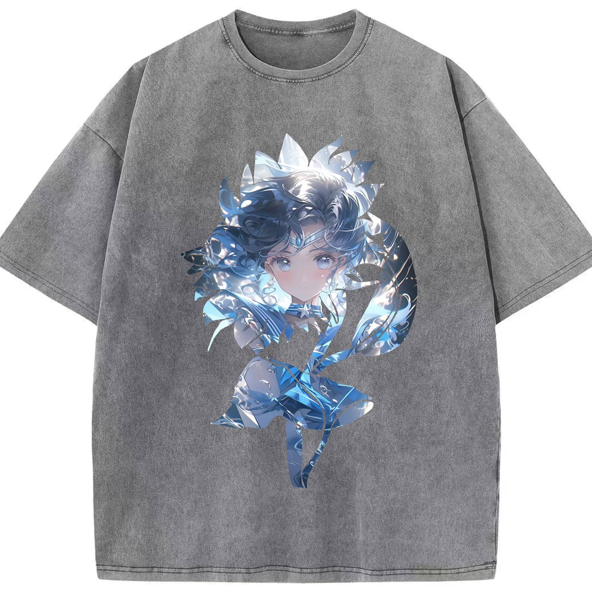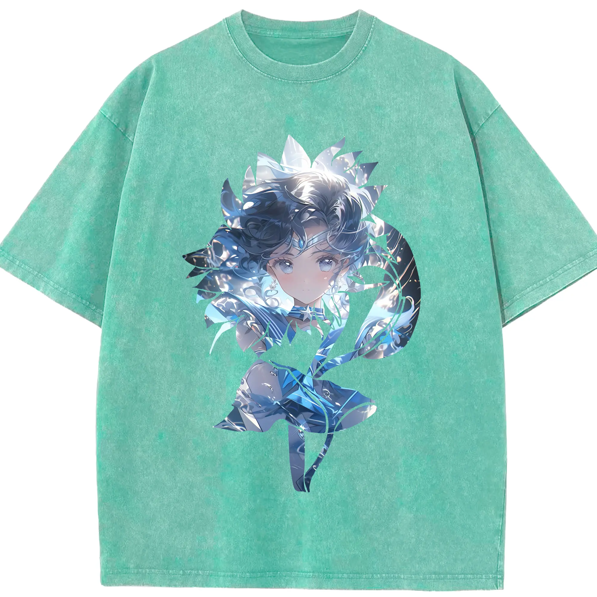 美少女戦士セーラームーン グッズ 水野 亜美 - 綿100% ヴィンテージ風 半袖Tシャツ ・ 背面プリント ・ 柔らか肌触り ・ 通気性 快適 ・ スポーツ カジュアル 外出用