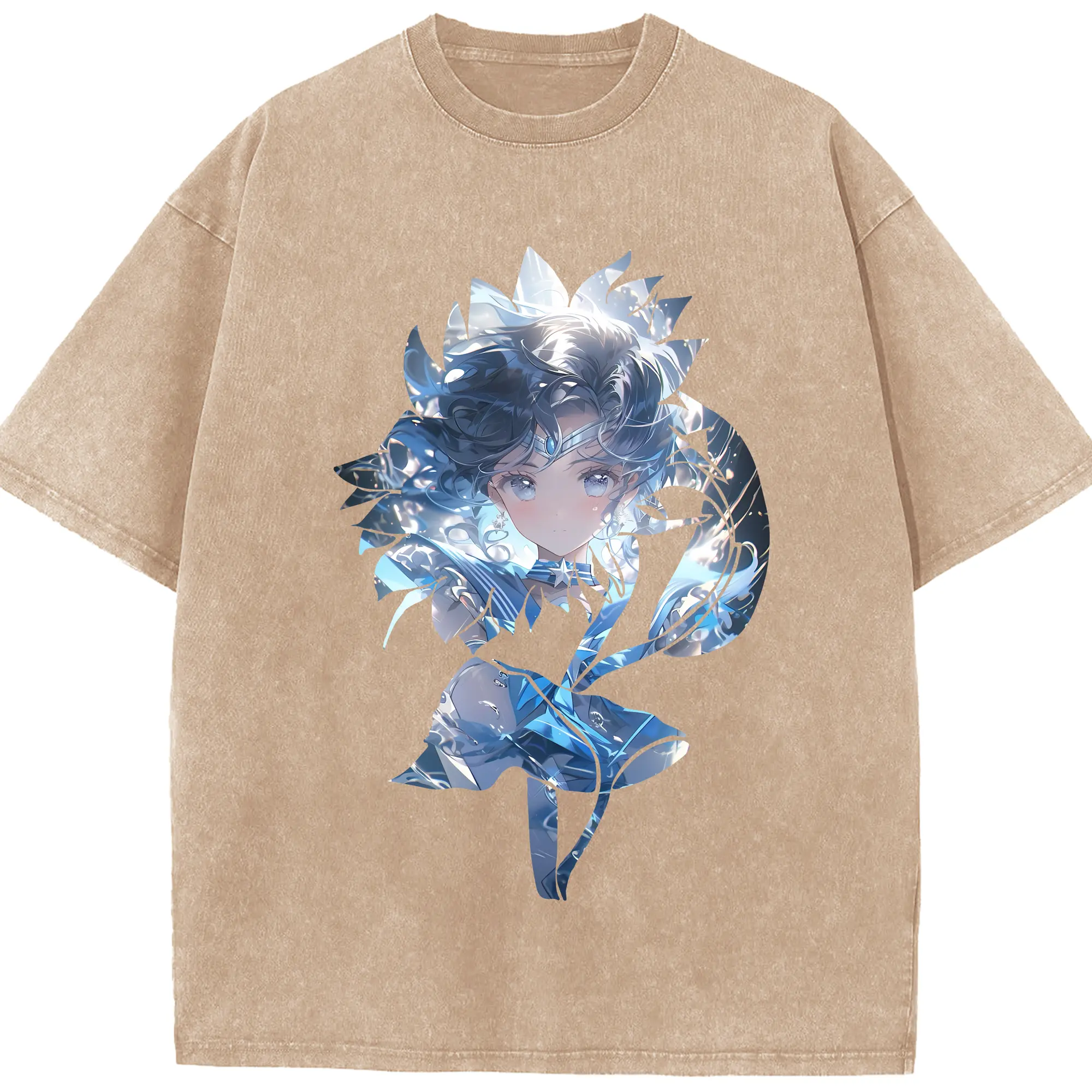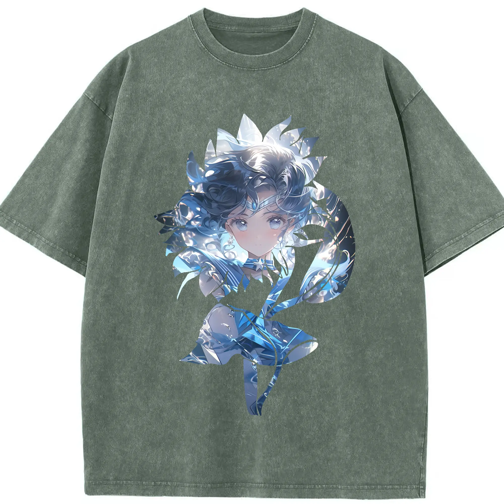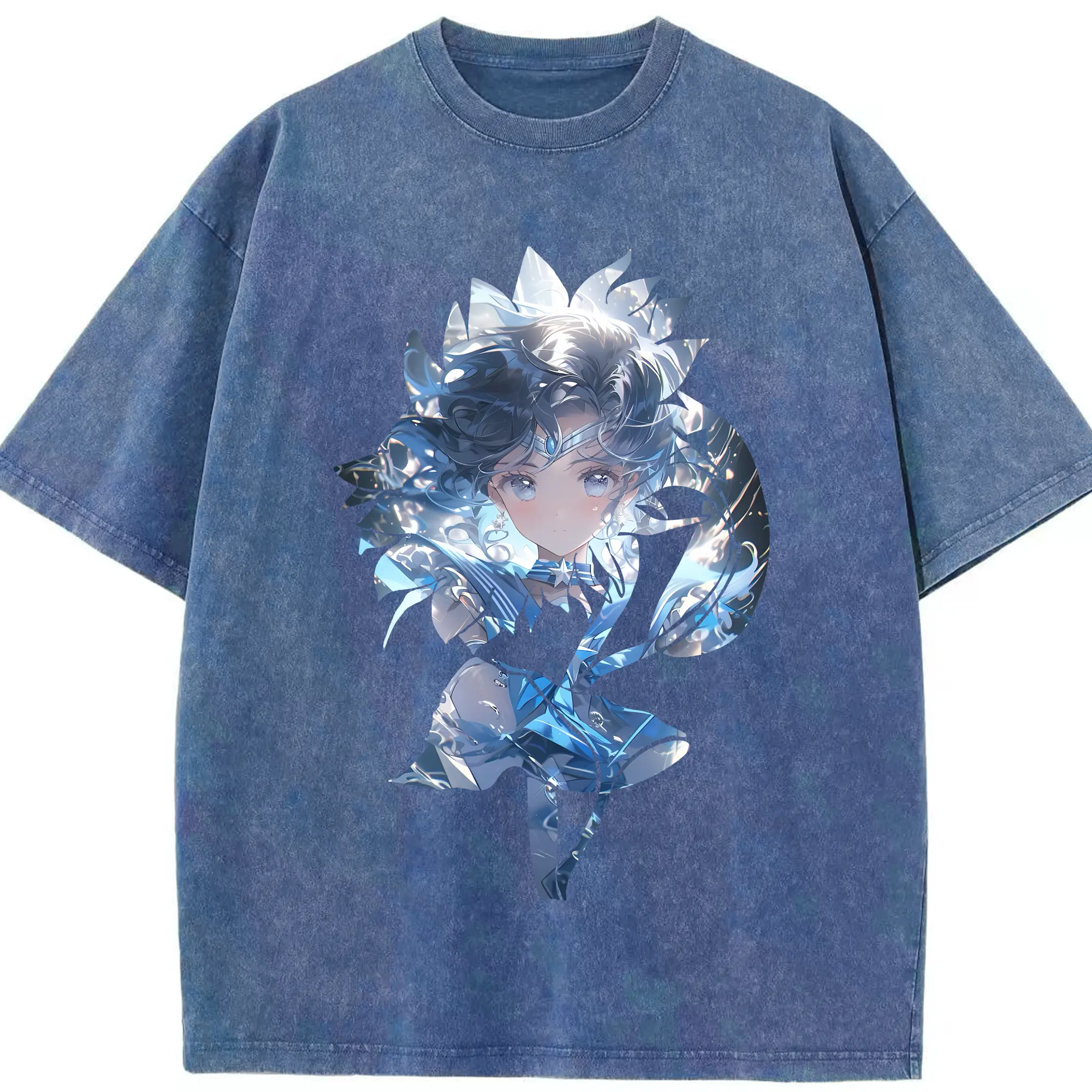 美少女戦士セーラームーン グッズ 水野 亜美 - 綿100% ヴィンテージ風 半袖Tシャツ ・ 背面プリント ・ 柔らか肌触り ・ 通気性 快適 ・ スポーツ カジュアル 外出用
