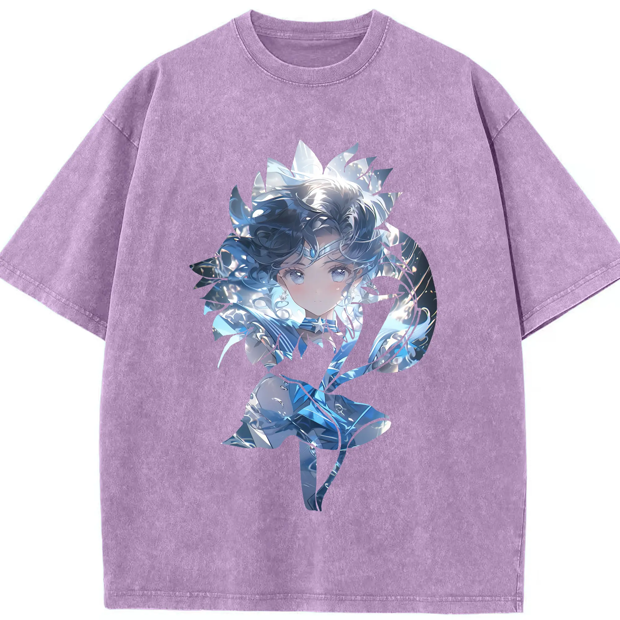 美少女戦士セーラームーン グッズ 水野 亜美 - 綿100% 半袖Tシャツ ・ フロントプリント ・ 快適 通気性 ・ 日常使い 散歩 スポーツ用