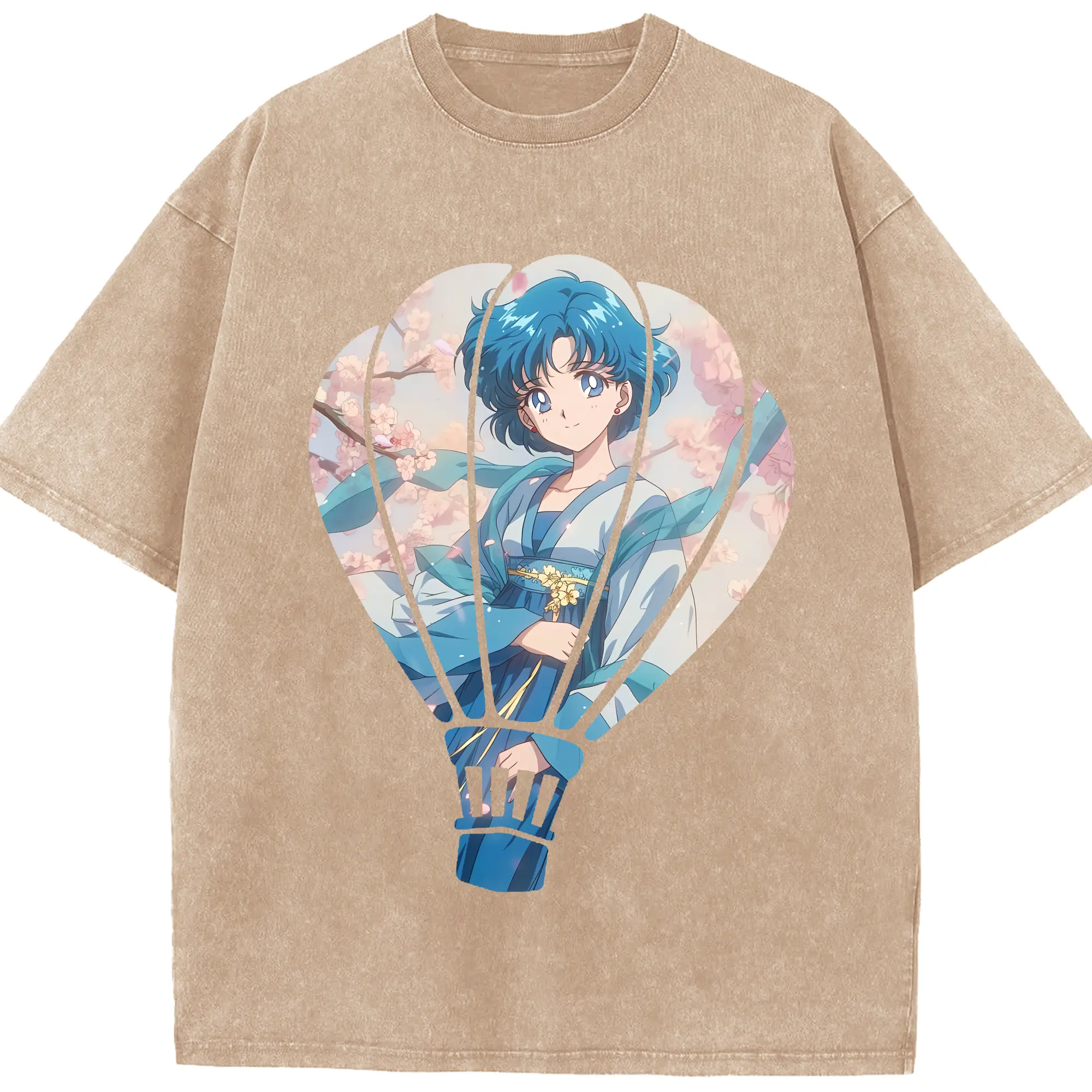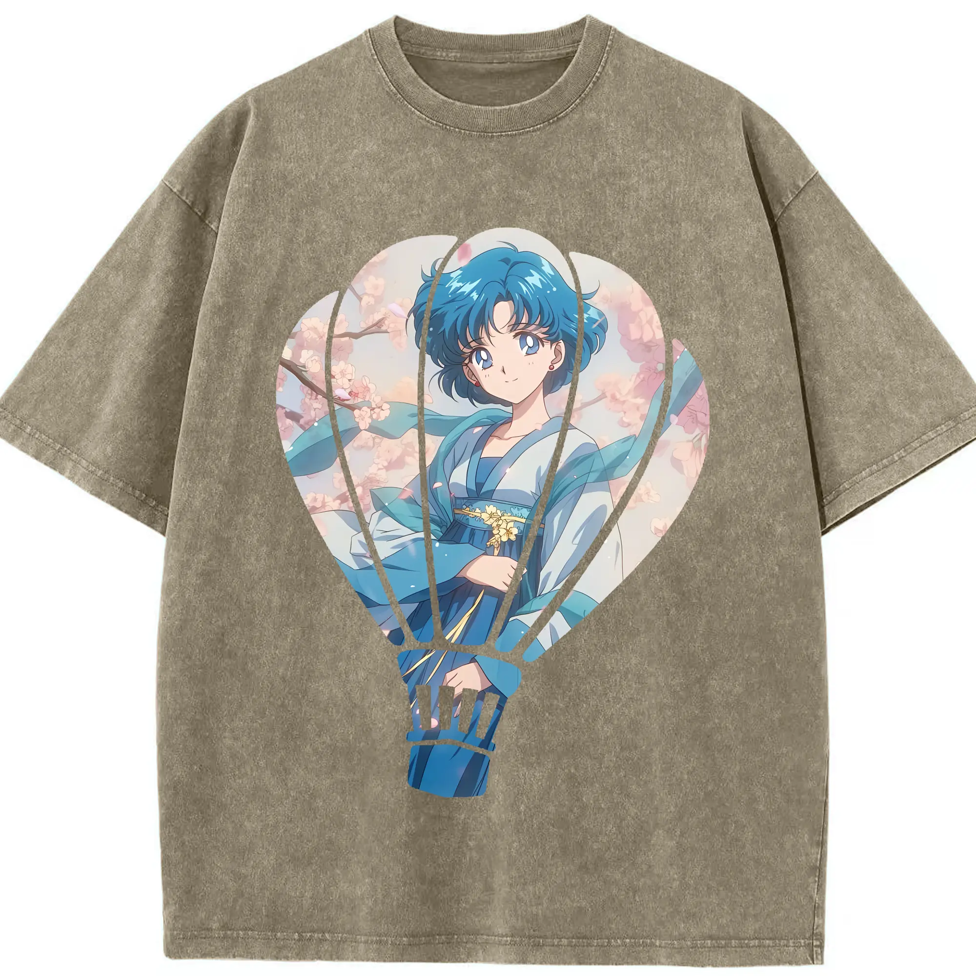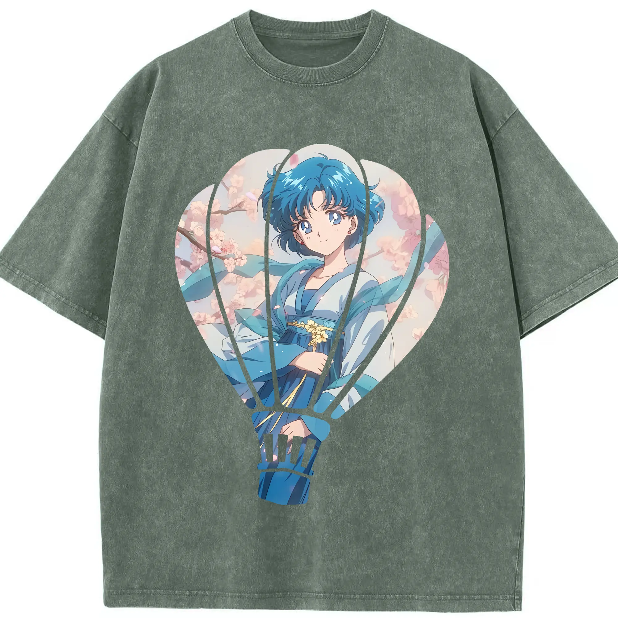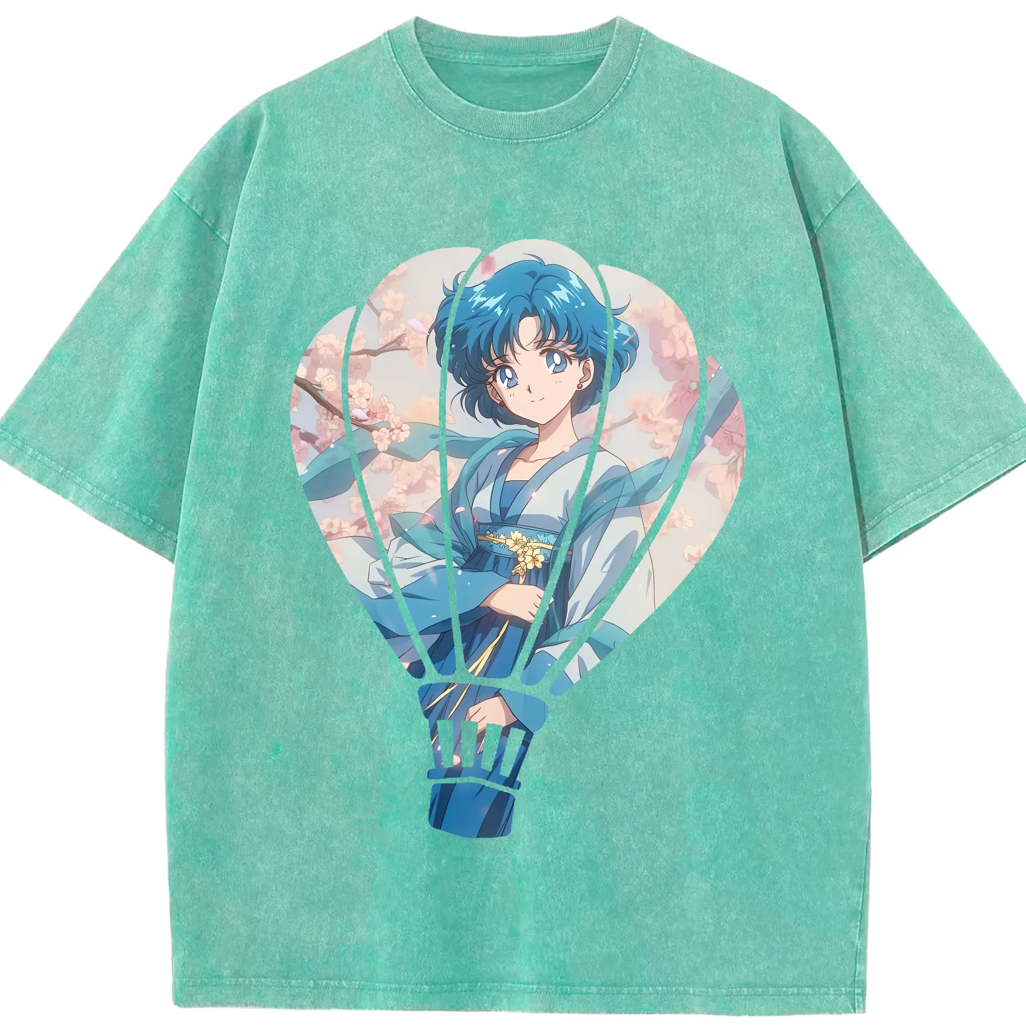 美少女戦士セーラームーン グッズ 水野 亜美 - 綿100% ヴィンテージ風 半袖Tシャツ ・ 背面プリント ・ 柔らか肌触り ・ 通気性 快適 ・ スポーツ カジュアル 外出用