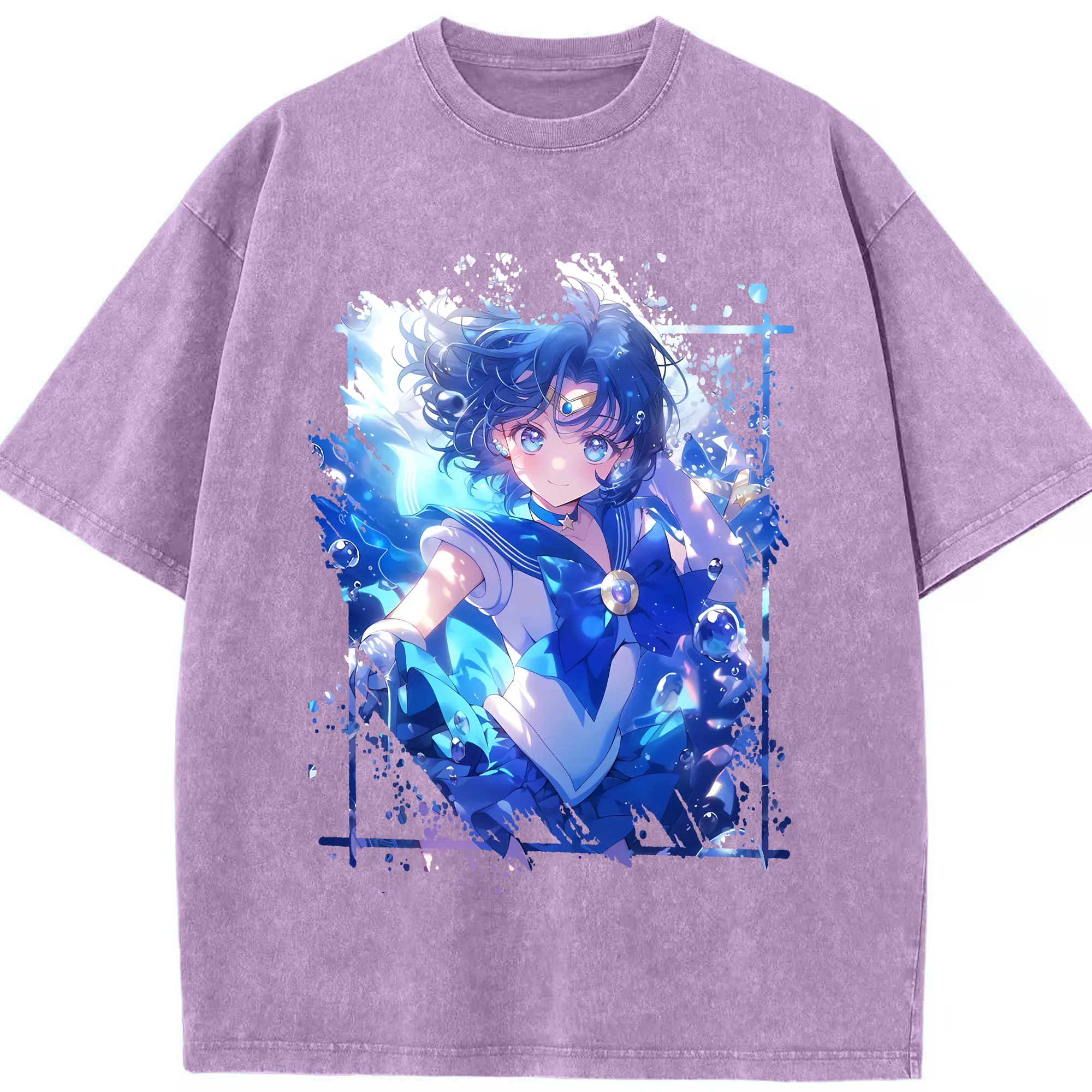 美少女戦士セーラームーン グッズ 水野 亜美 - 綿100% 半袖Tシャツ ・ フロントプリント ・ 快適 通気性 ・ 日常使い 散歩 スポーツ用
