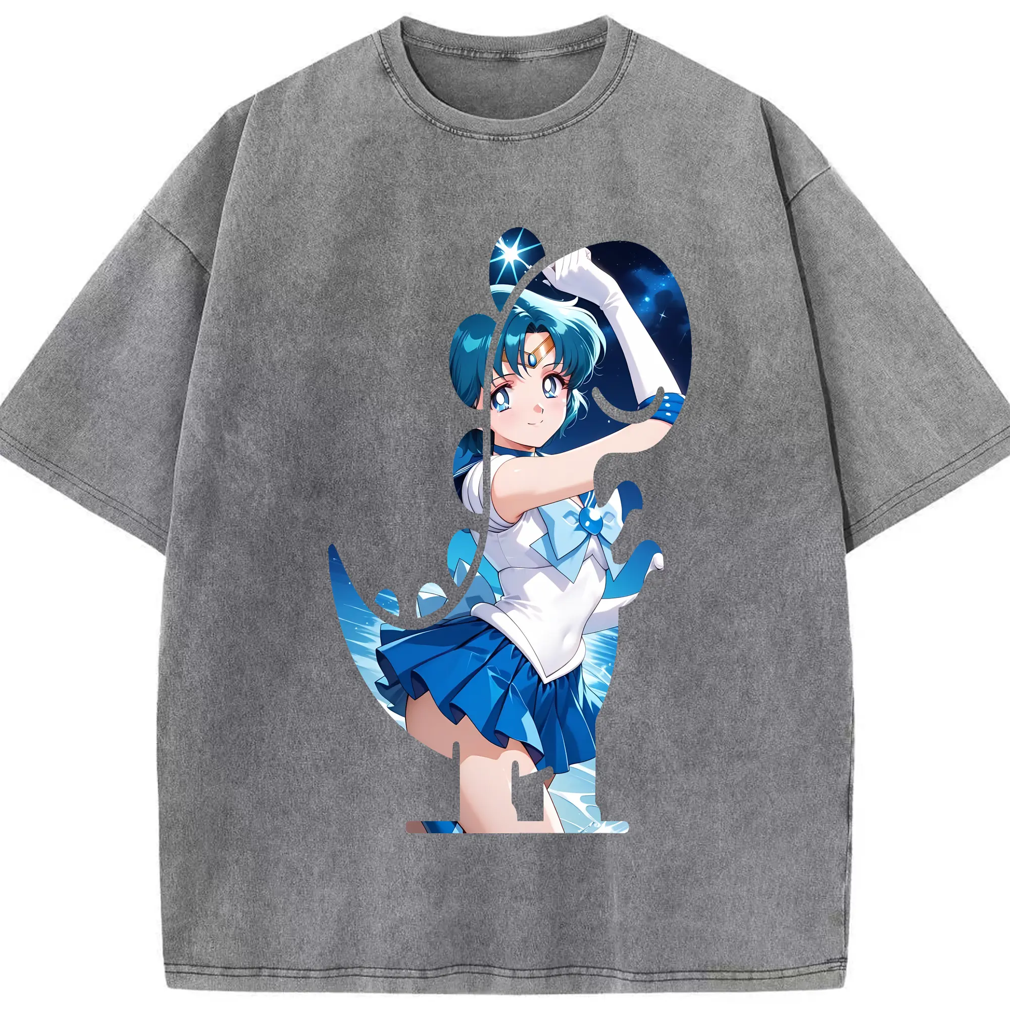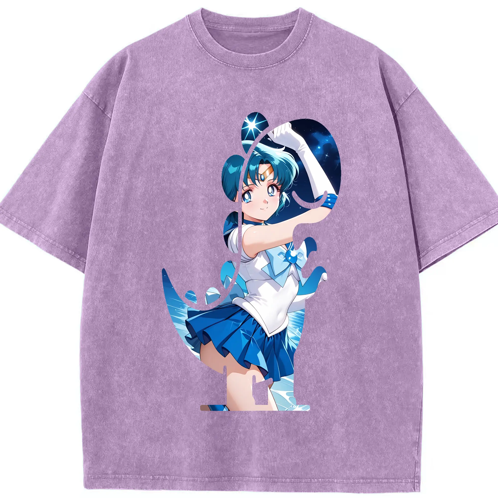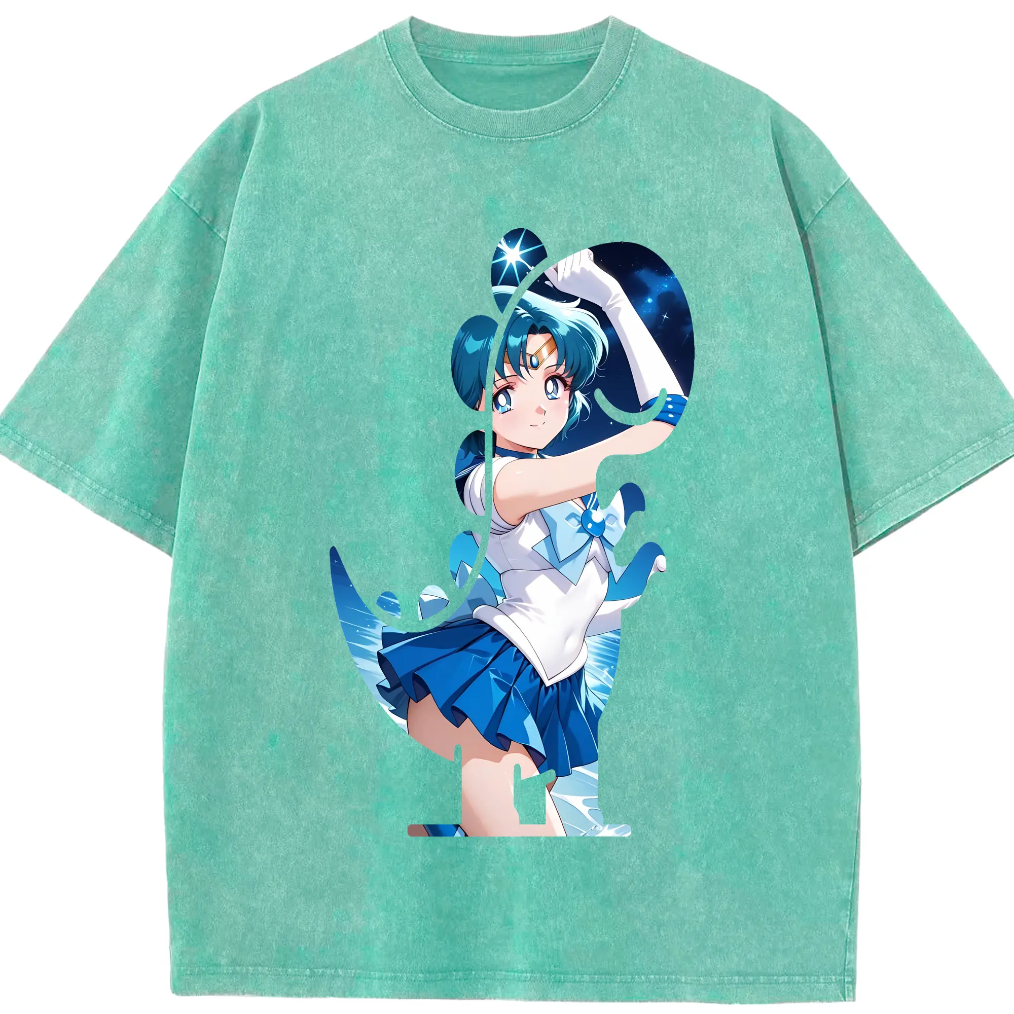 美少女戦士セーラームーン グッズ 水野 亜美 - 綿100% 半袖Tシャツ ・ フロントプリント ・ 快適 通気性 ・ 日常使い 散歩 スポーツ用
