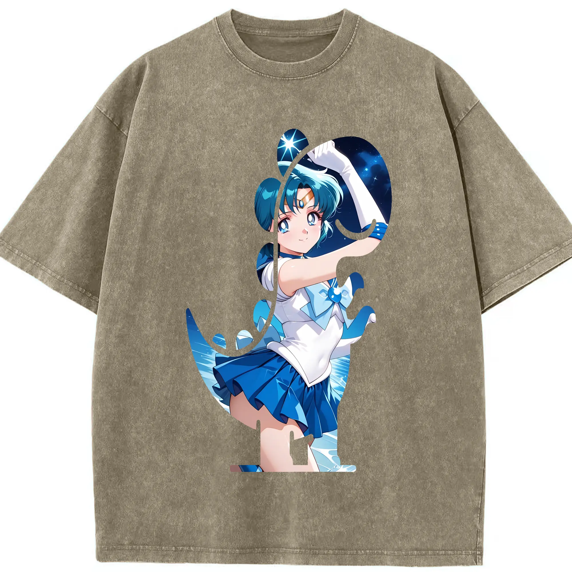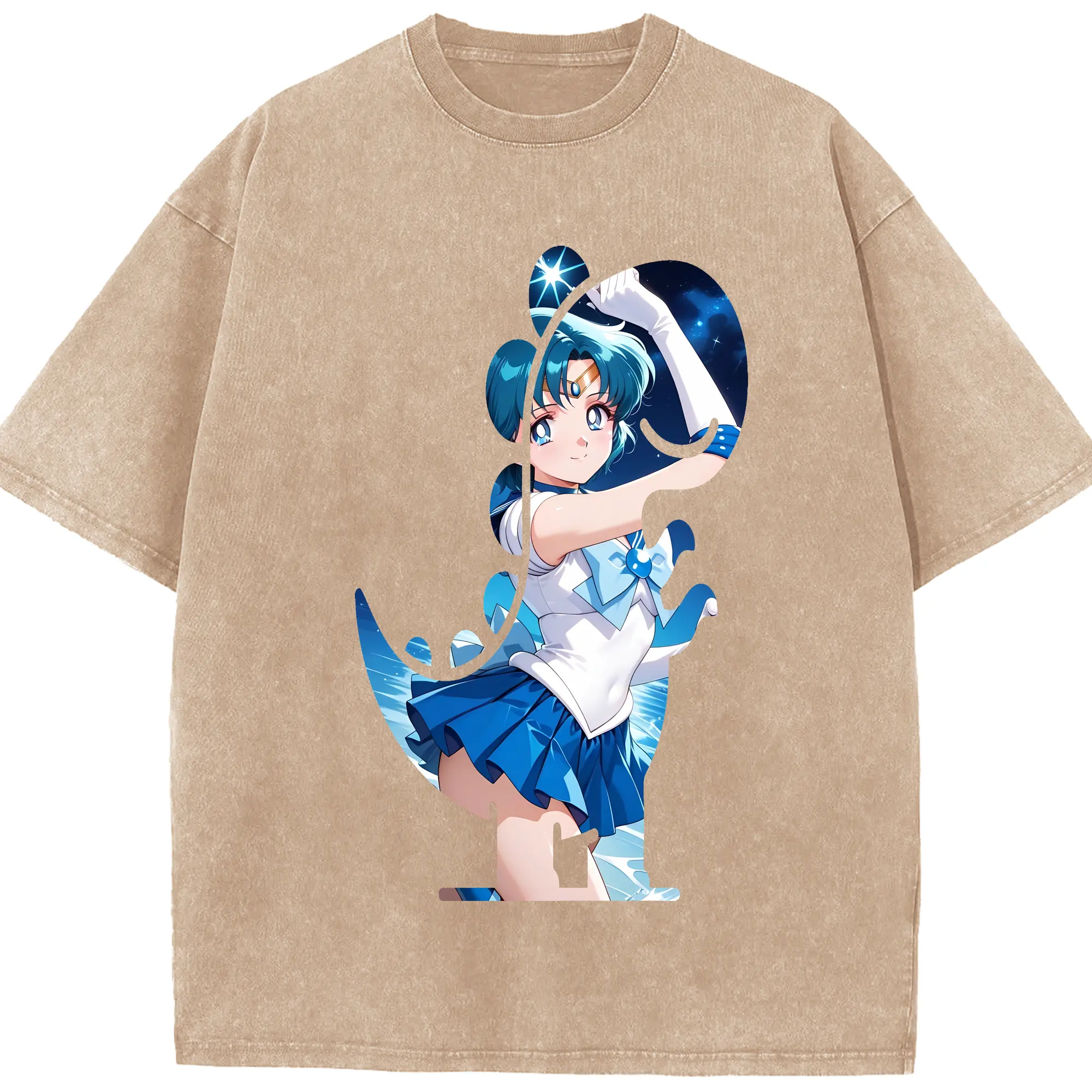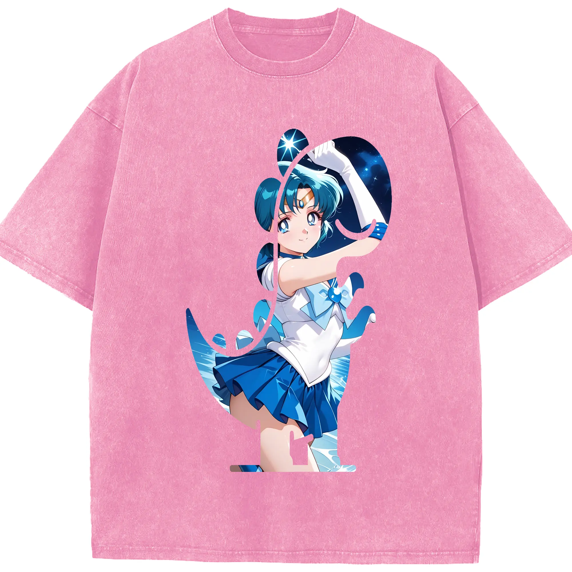 美少女戦士セーラームーン グッズ 水野 亜美 - 綿100% 半袖Tシャツ ・ フロントプリント ・ 快適 通気性 ・ 日常使い 散歩 スポーツ用