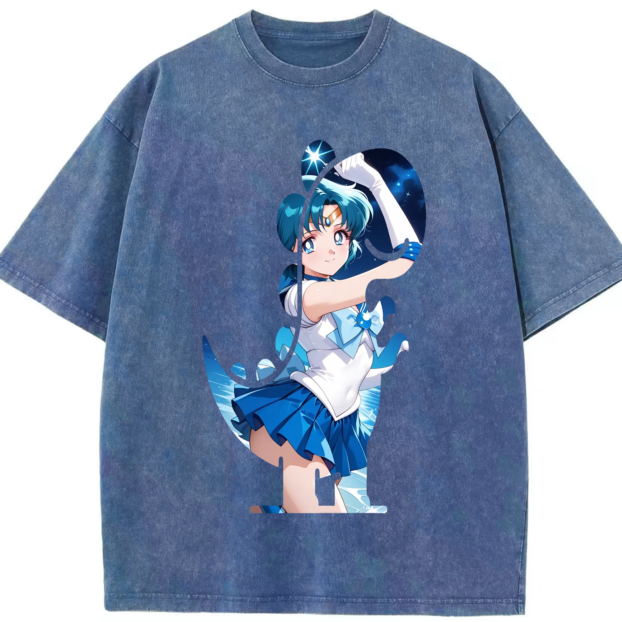 美少女戦士セーラームーン グッズ 水野 亜美 - 綿100% ヴィンテージ風 半袖Tシャツ ・ 背面プリント ・ 柔らか肌触り ・ 通気性 快適 ・ スポーツ カジュアル 外出用