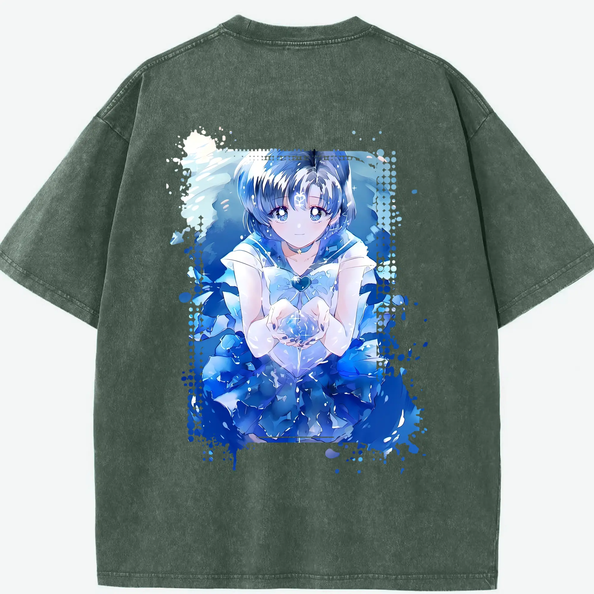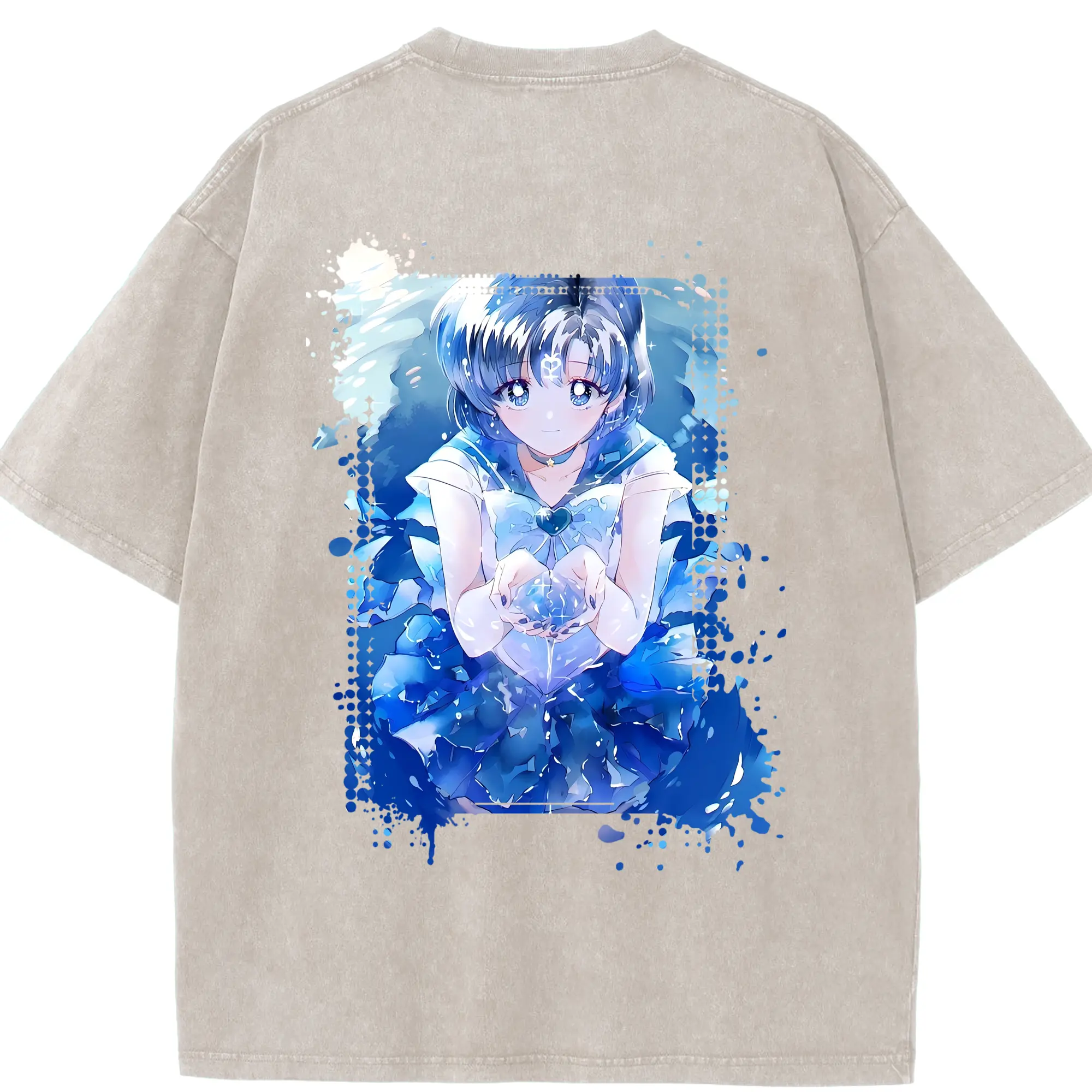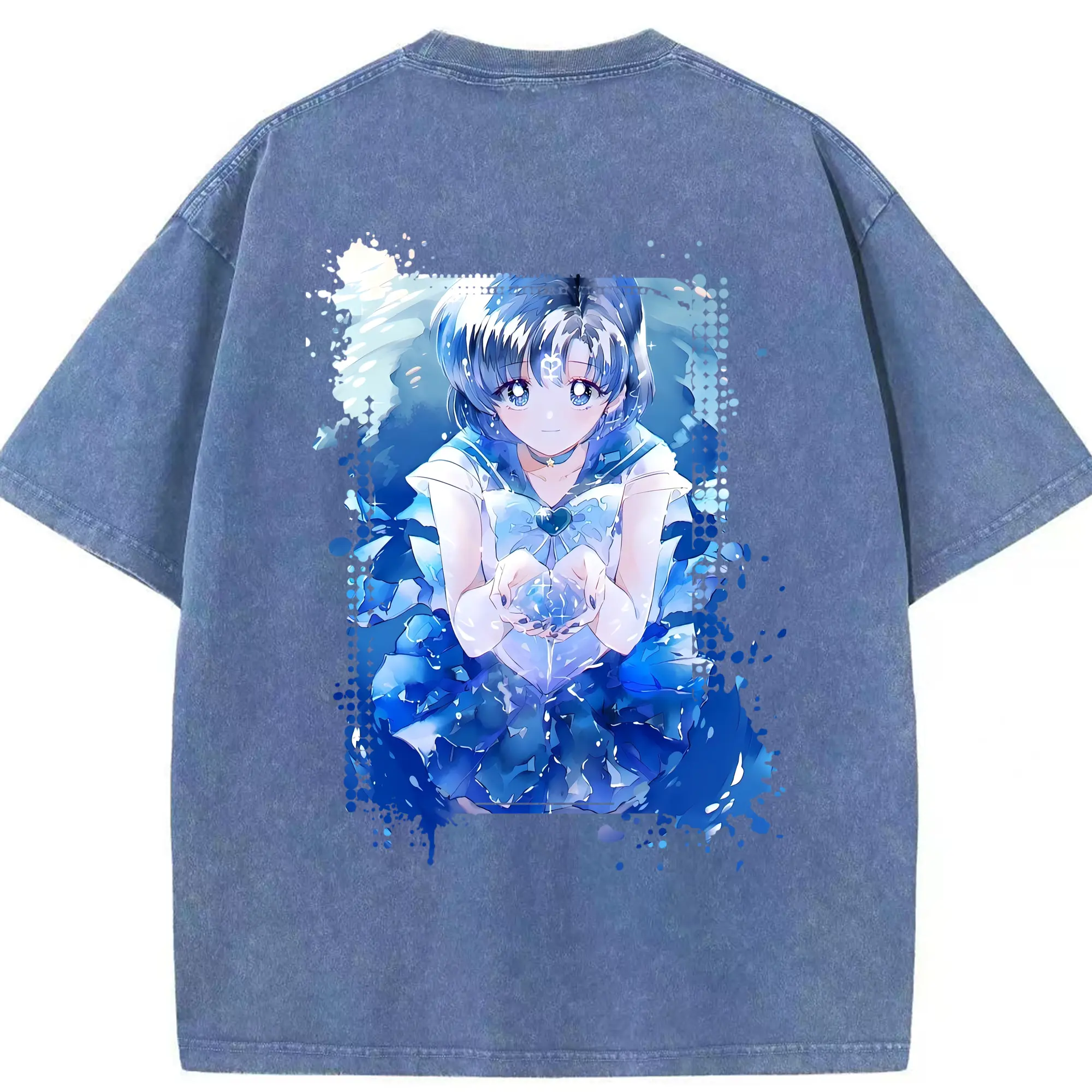 美少女戦士セーラームーン グッズ 水野 亜美 - 綿100% ヴィンテージ風 半袖Tシャツ ・ フロントプリント ・ 柔らか肌触り ・ 通気性 快適 ・ スポーツ カジュアル 外出用