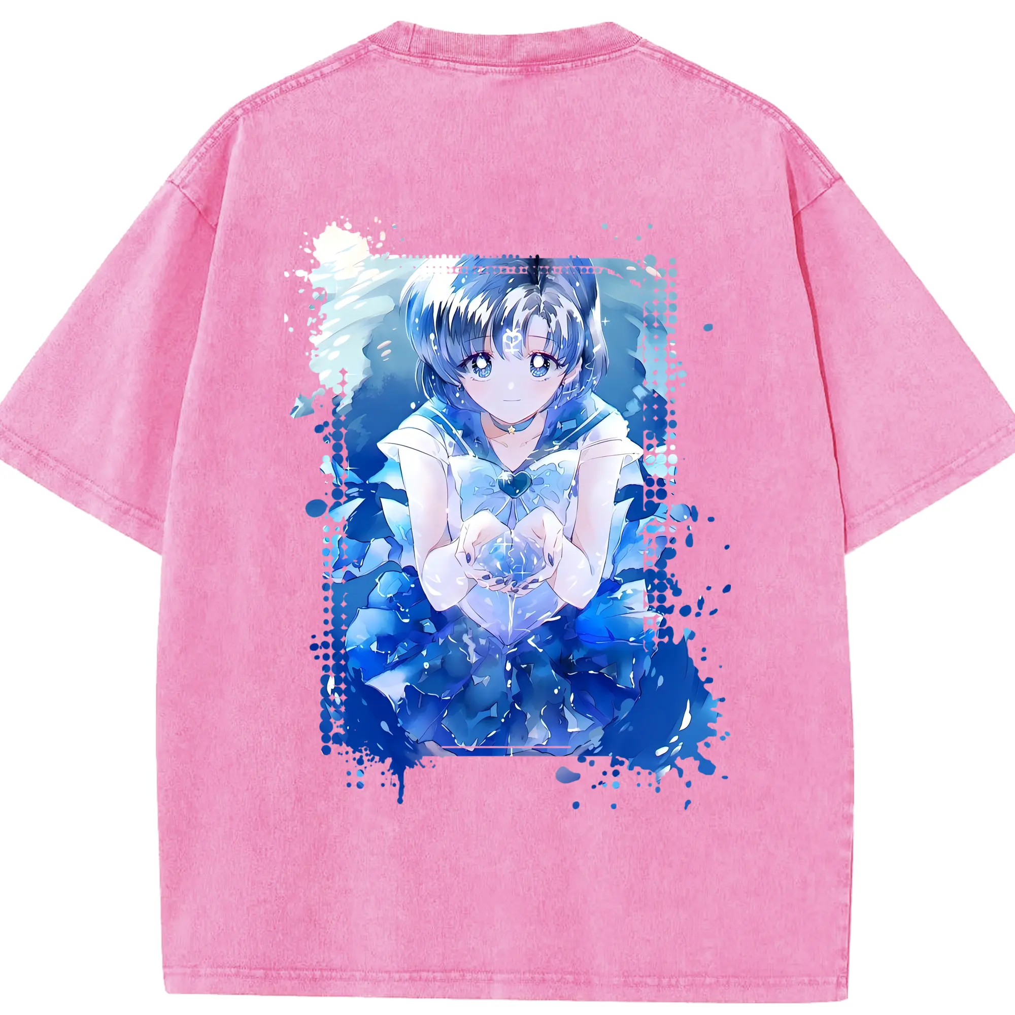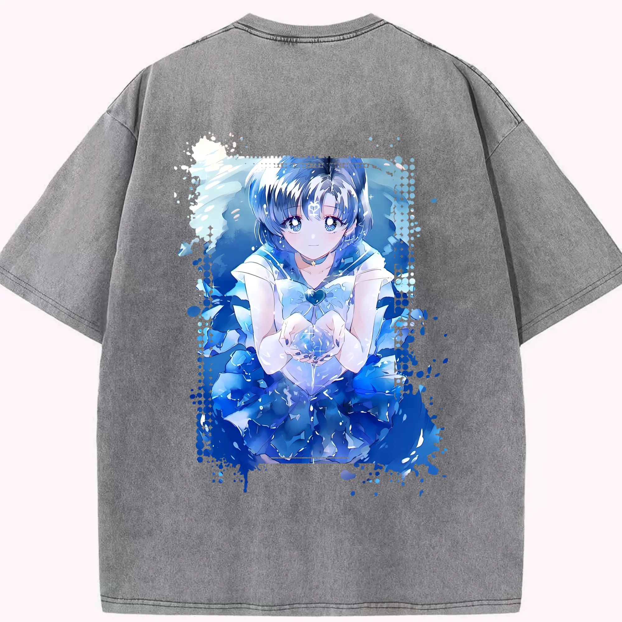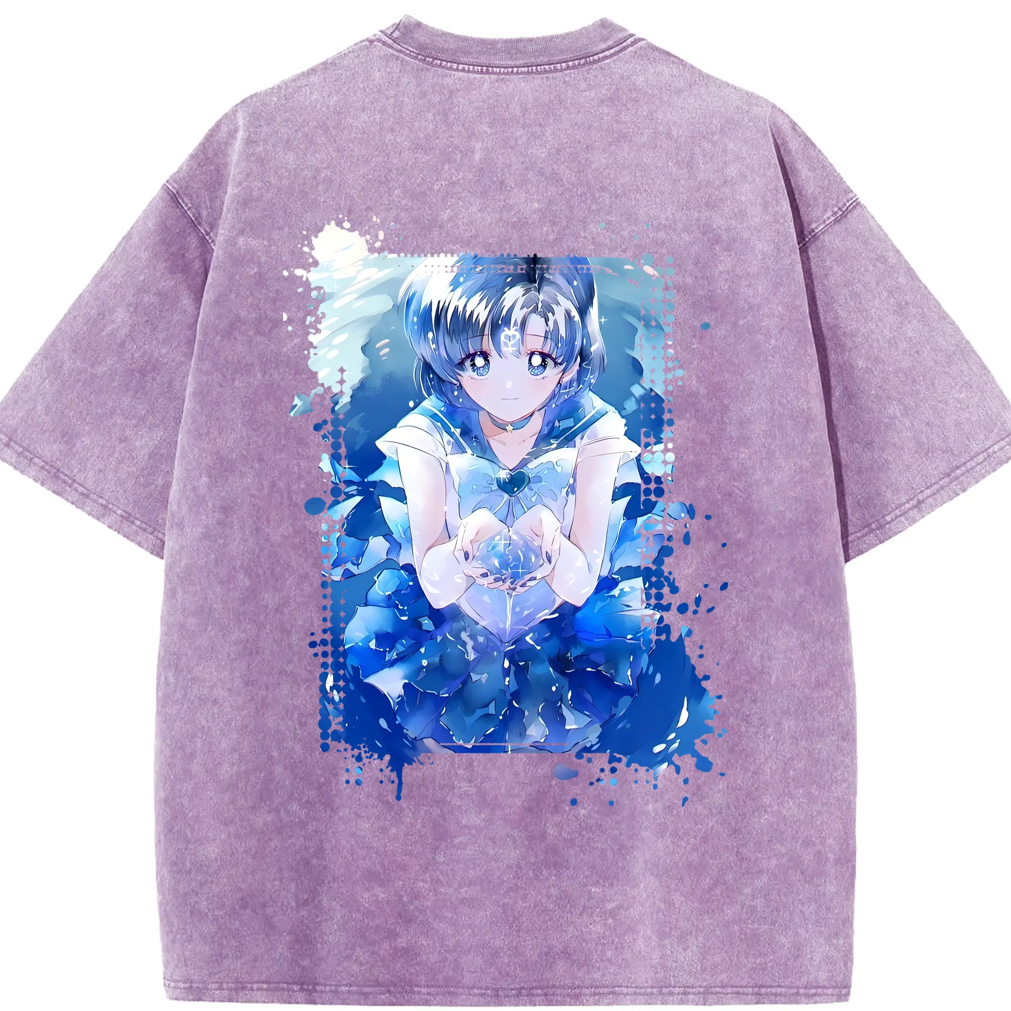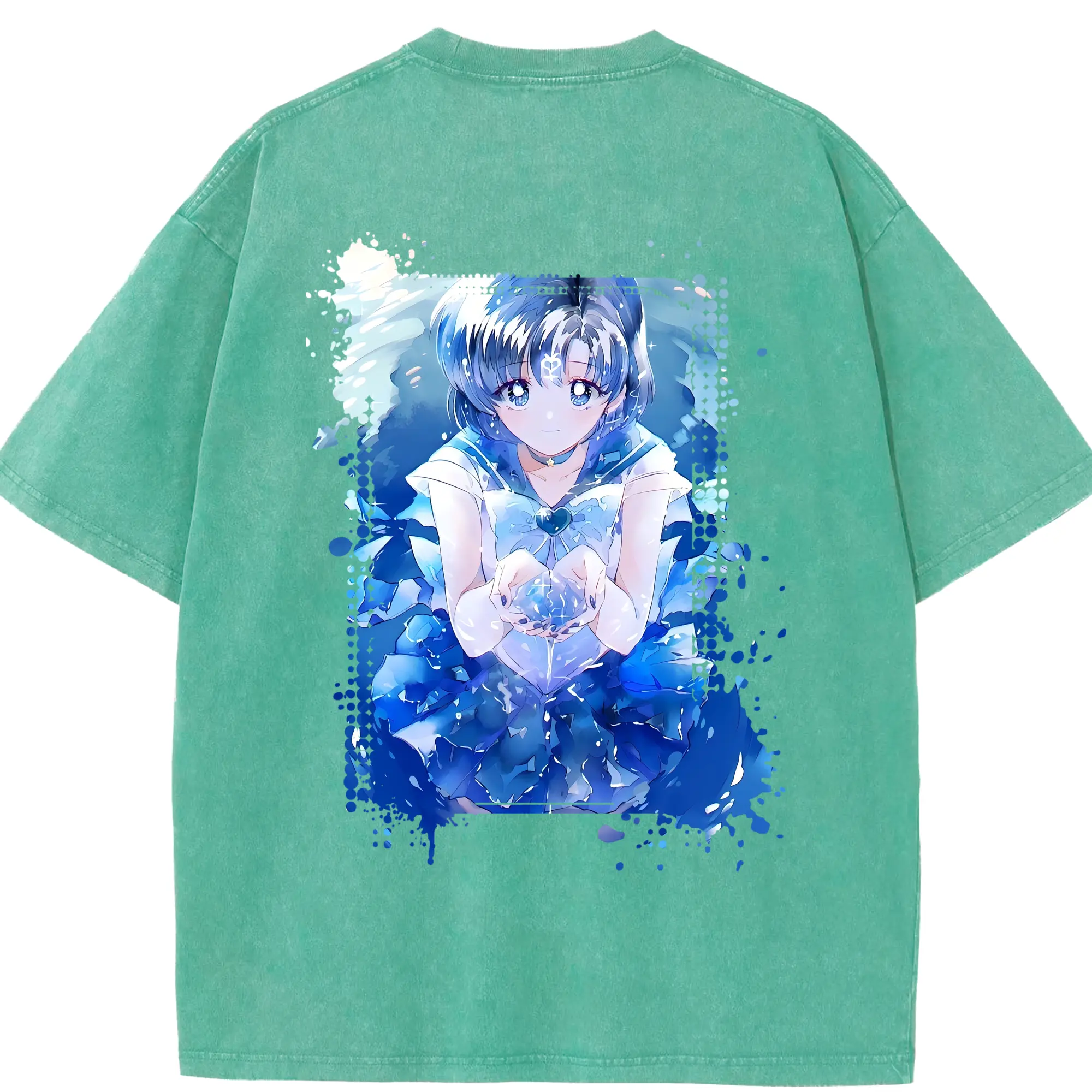 美少女戦士セーラームーン グッズ 水野 亜美 - 綿100% 半袖Tシャツ ・ バックプリント ・ 快適 通気性 ・ 日常使い 散歩 スポーツ用