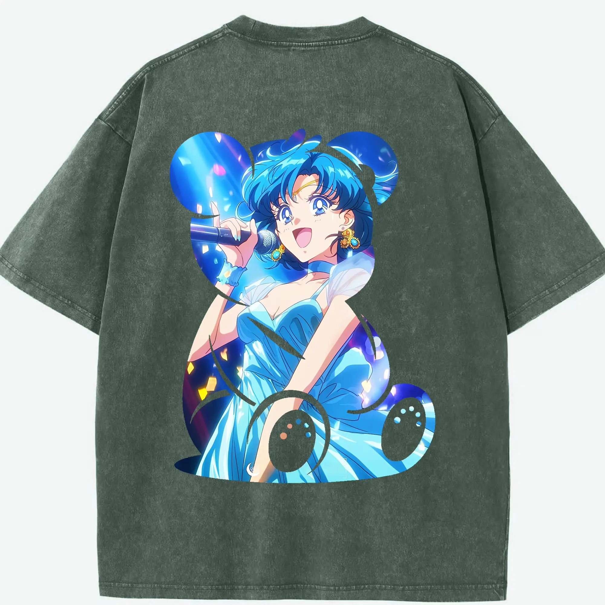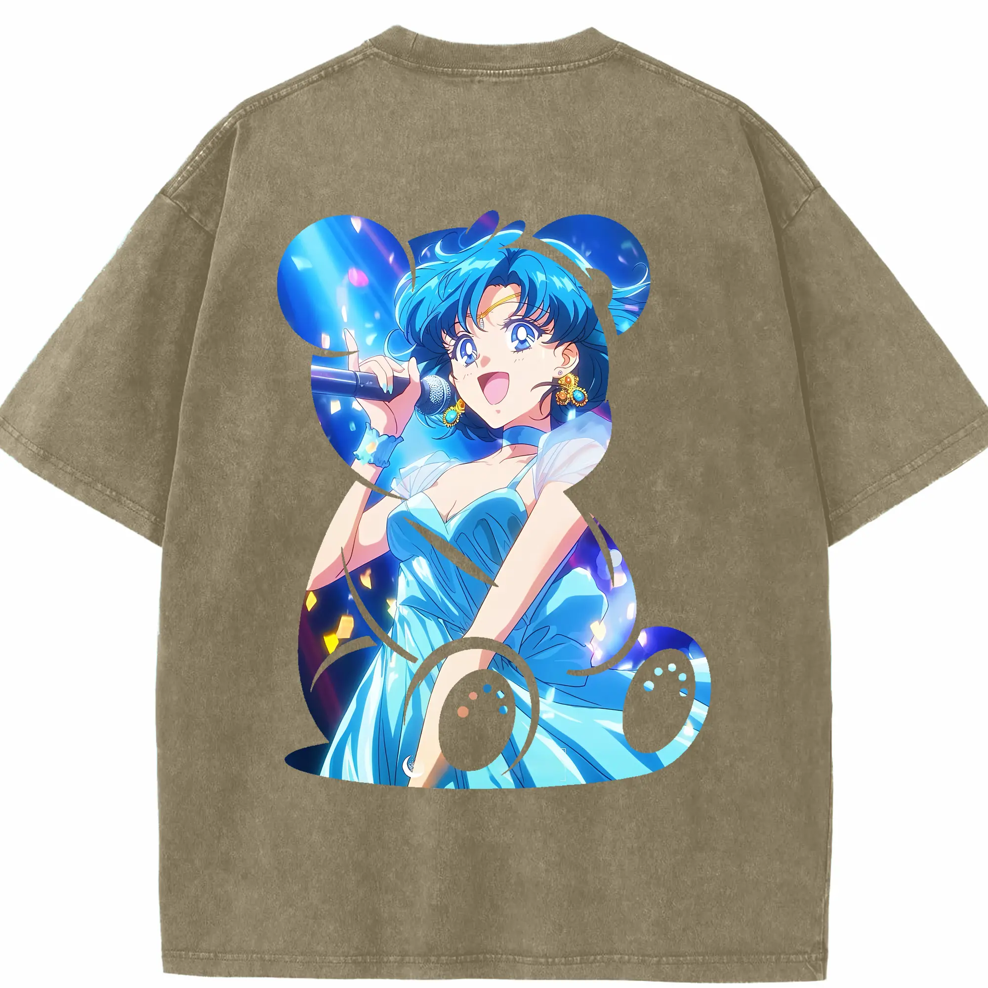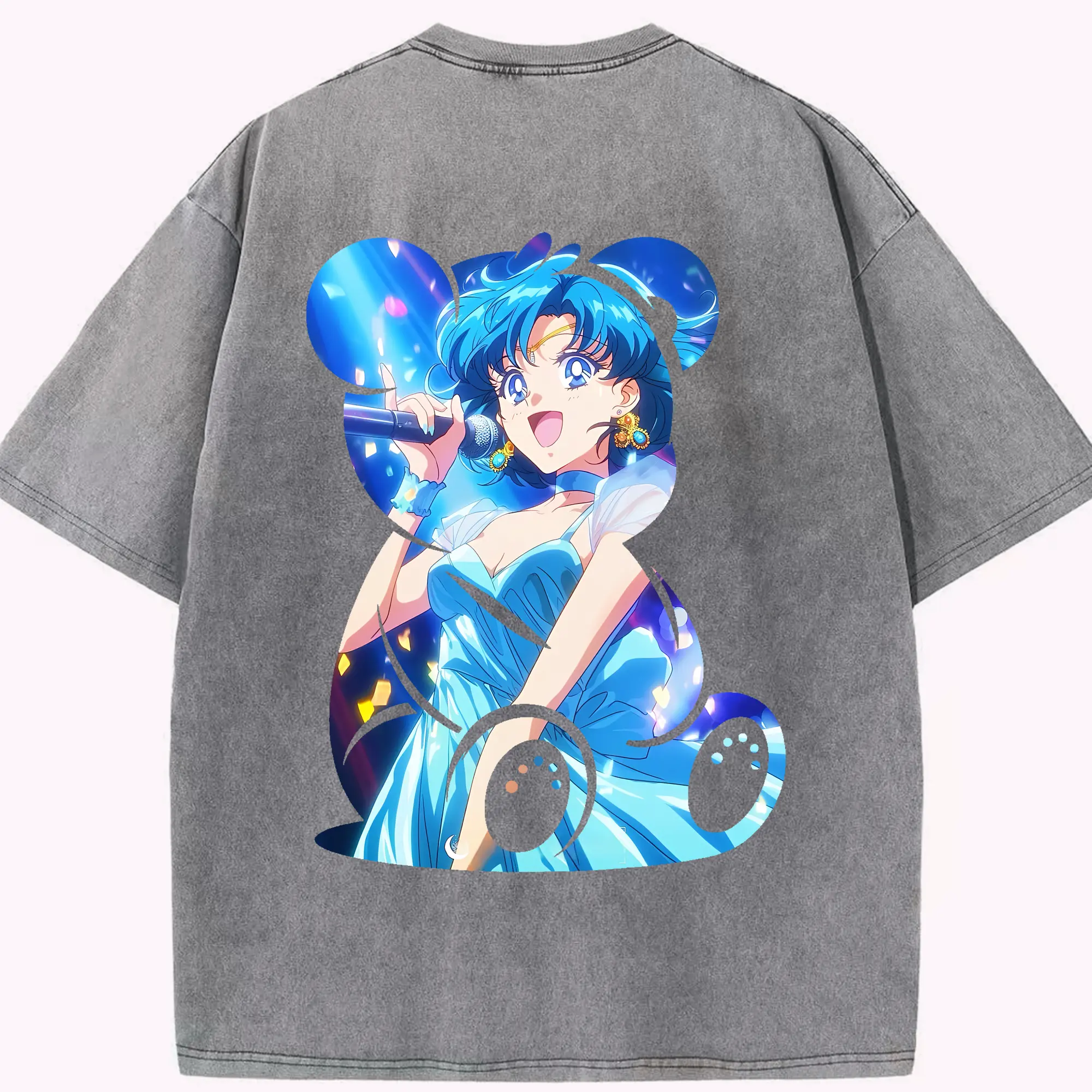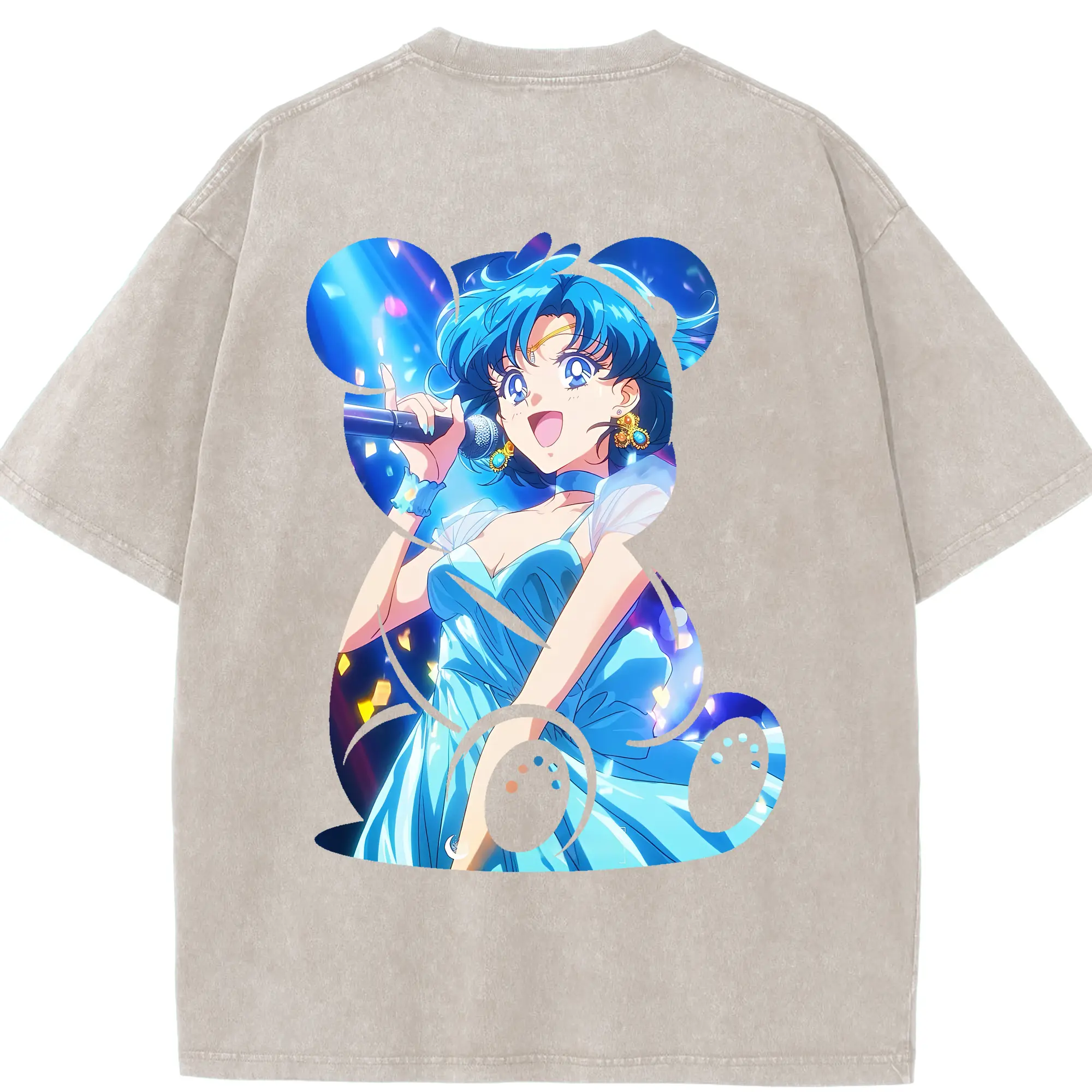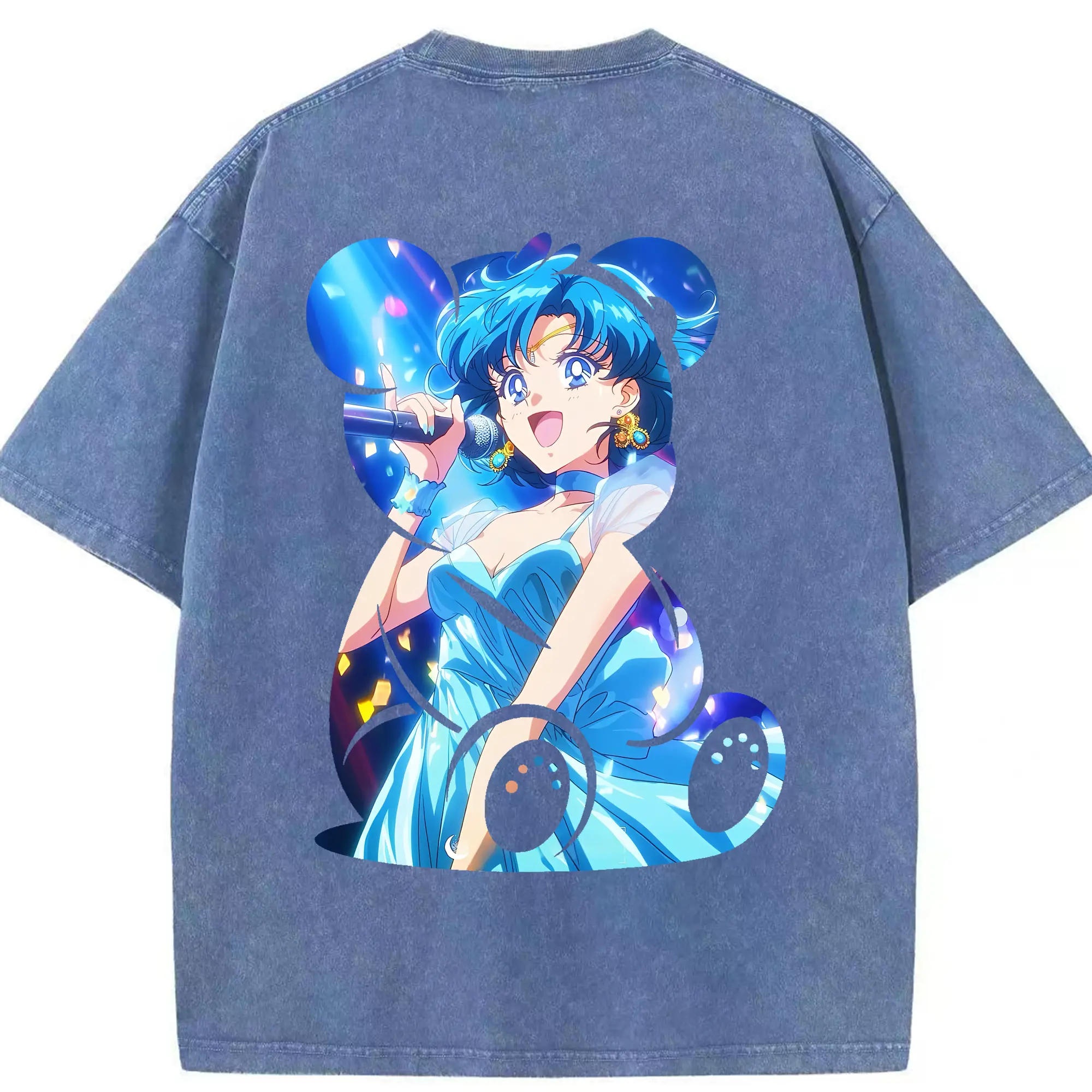美少女戦士セーラームーン グッズ 水野 亜美 - 綿100% ヴィンテージ風 半袖Tシャツ ・ フロントプリント ・ 柔らか肌触り ・ 通気性 快適 ・ スポーツ カジュアル 外出用