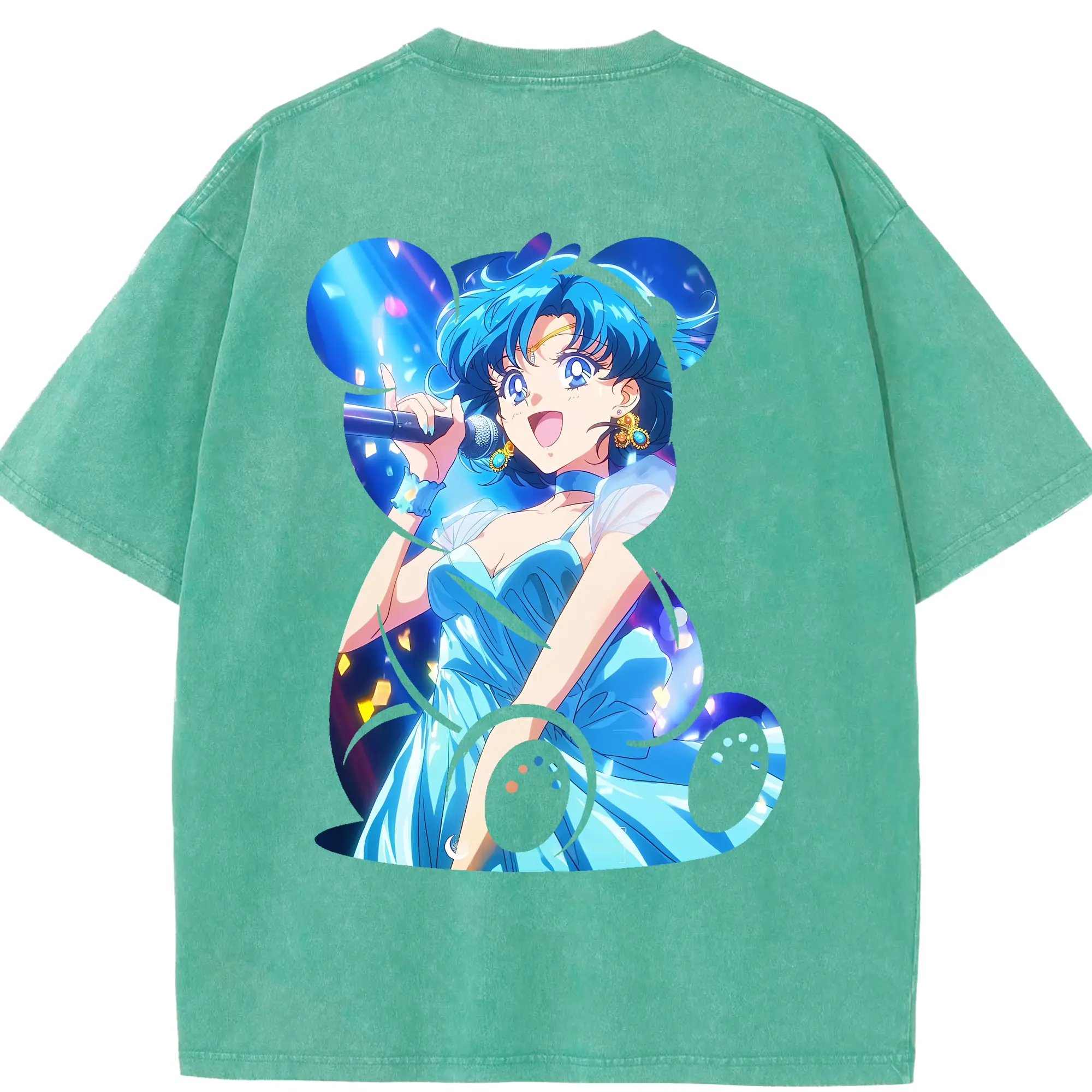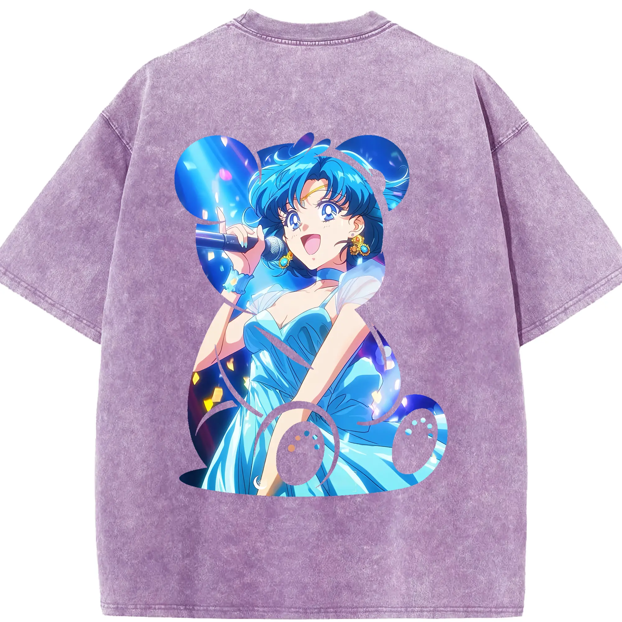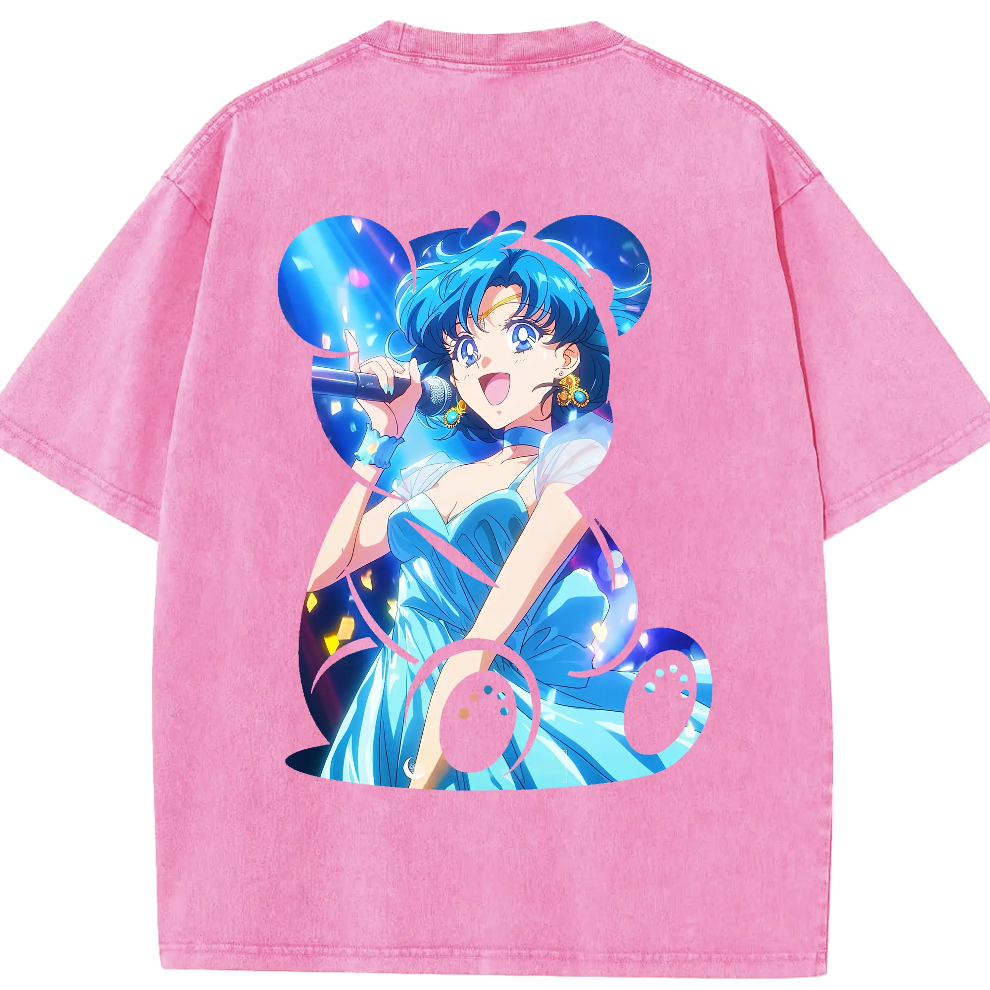 美少女戦士セーラームーン グッズ 水野 亜美 - 綿100% 半袖Tシャツ ・ バックプリント ・ 快適 通気性 ・ 日常使い 散歩 スポーツ用
